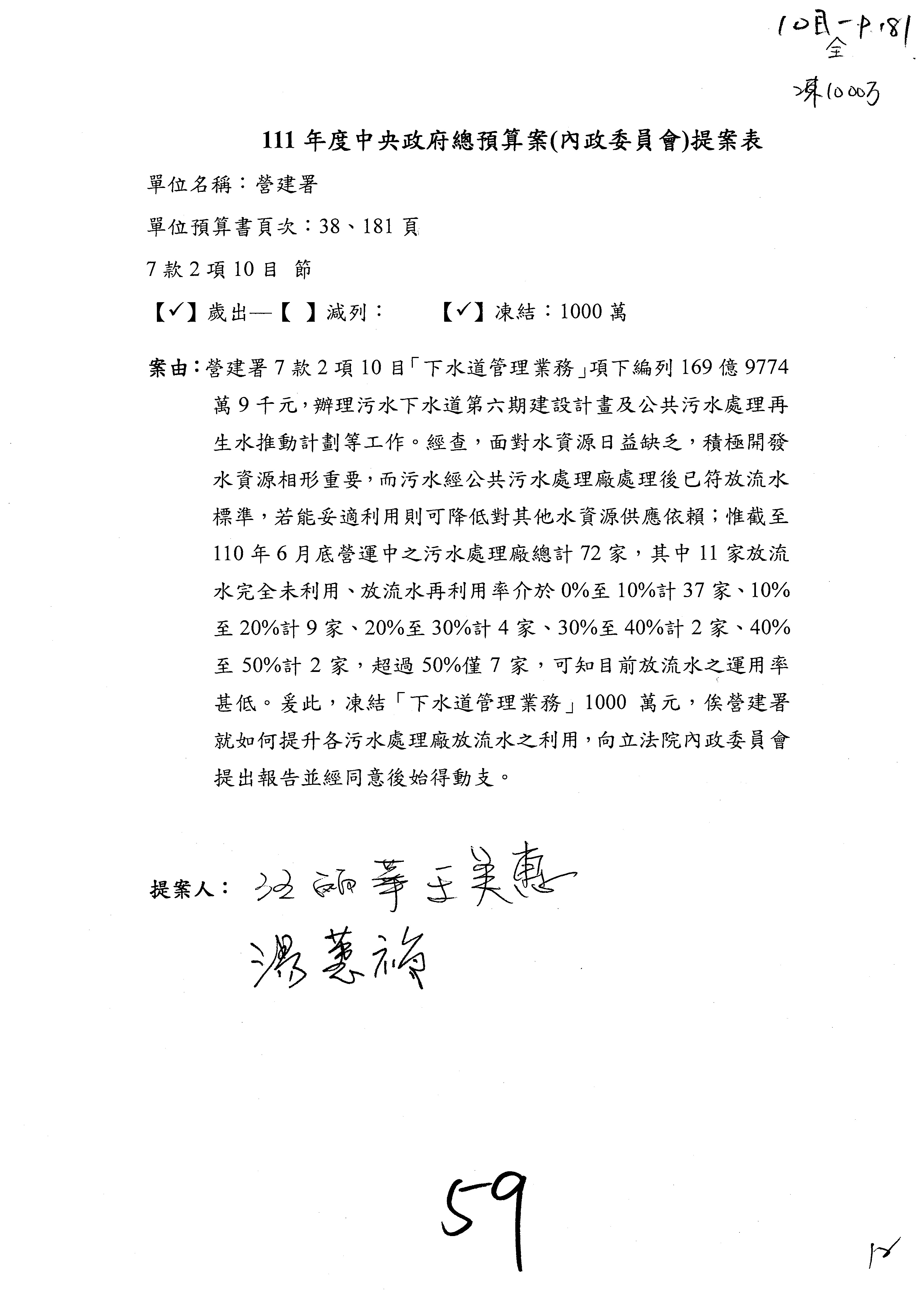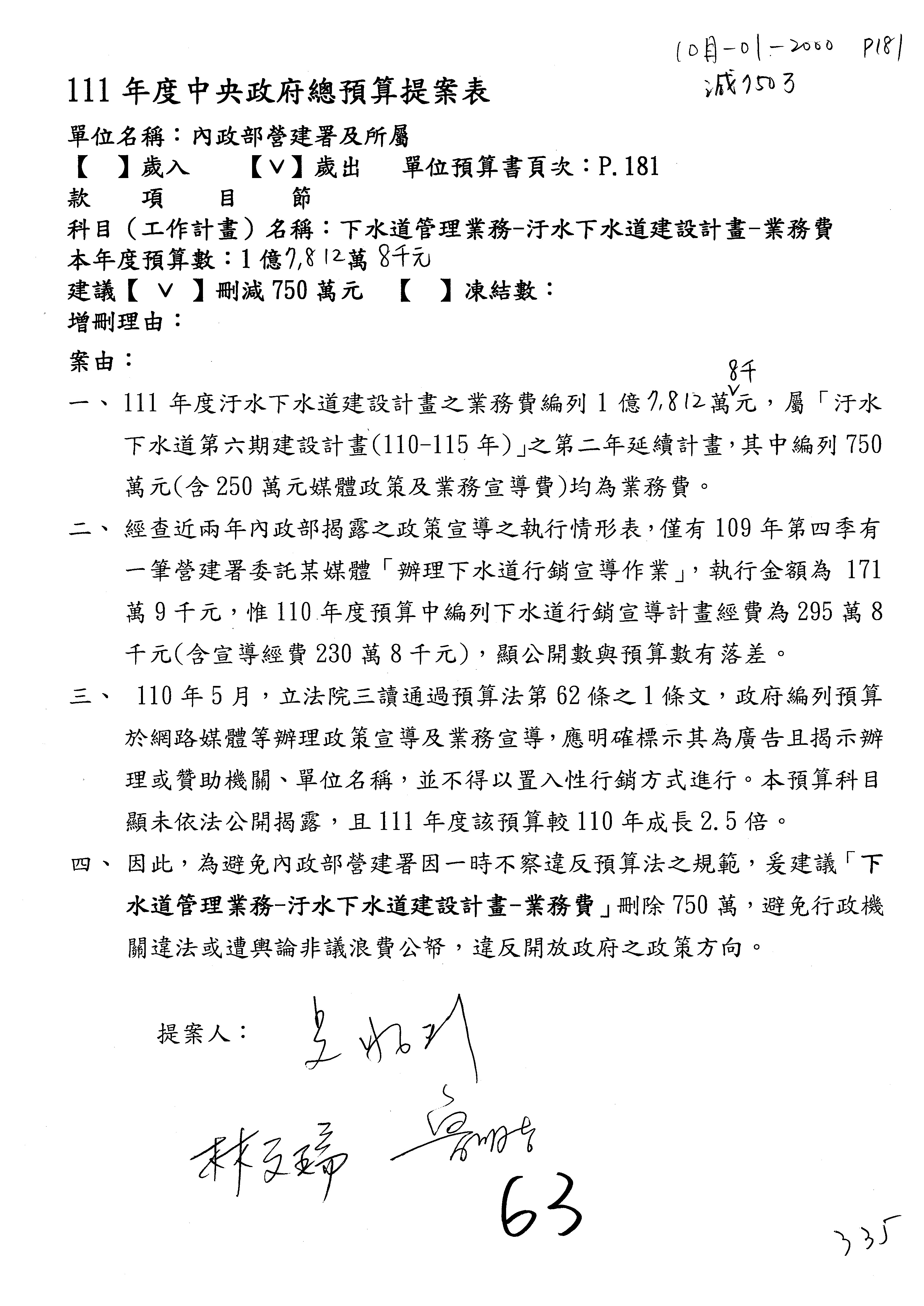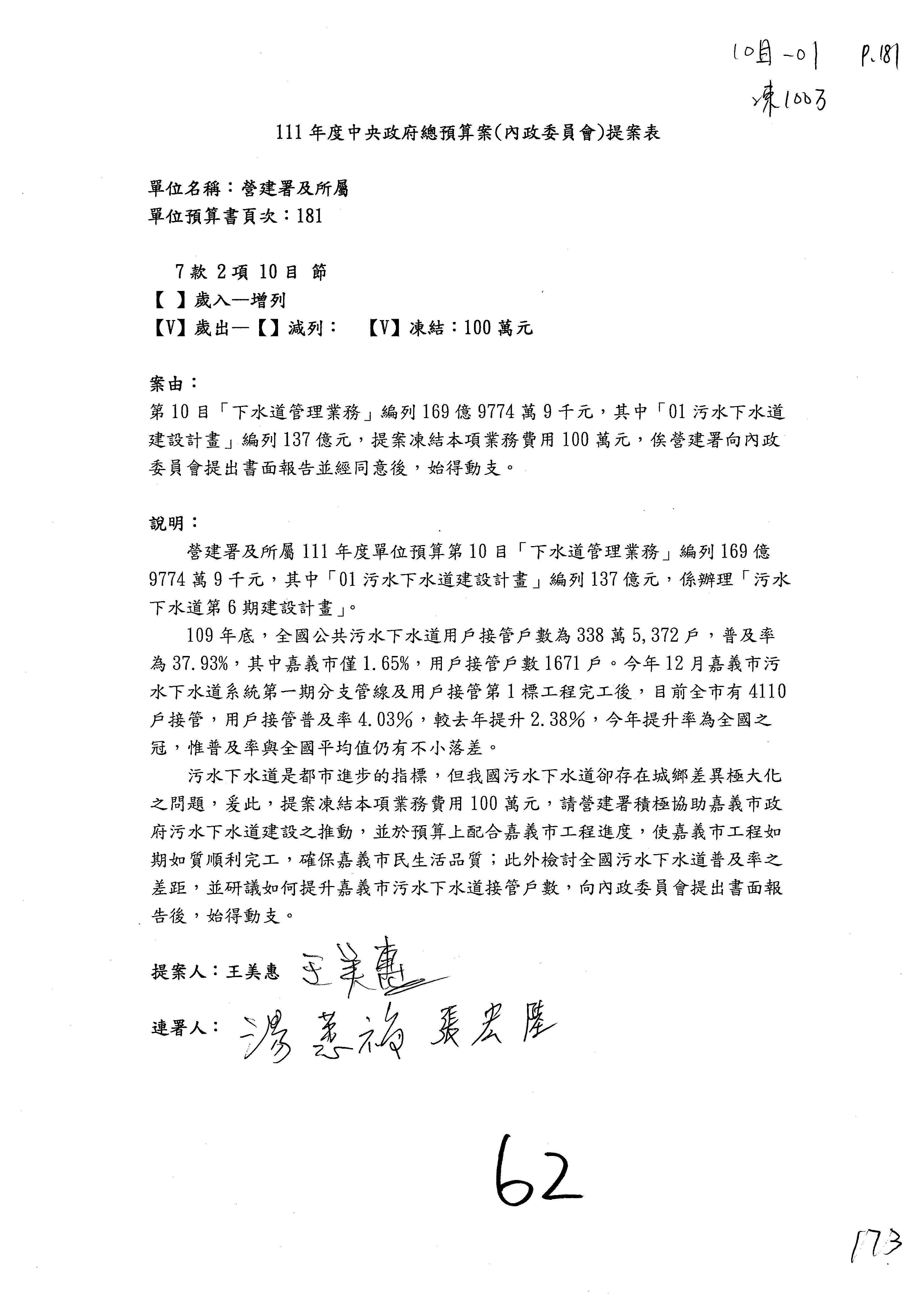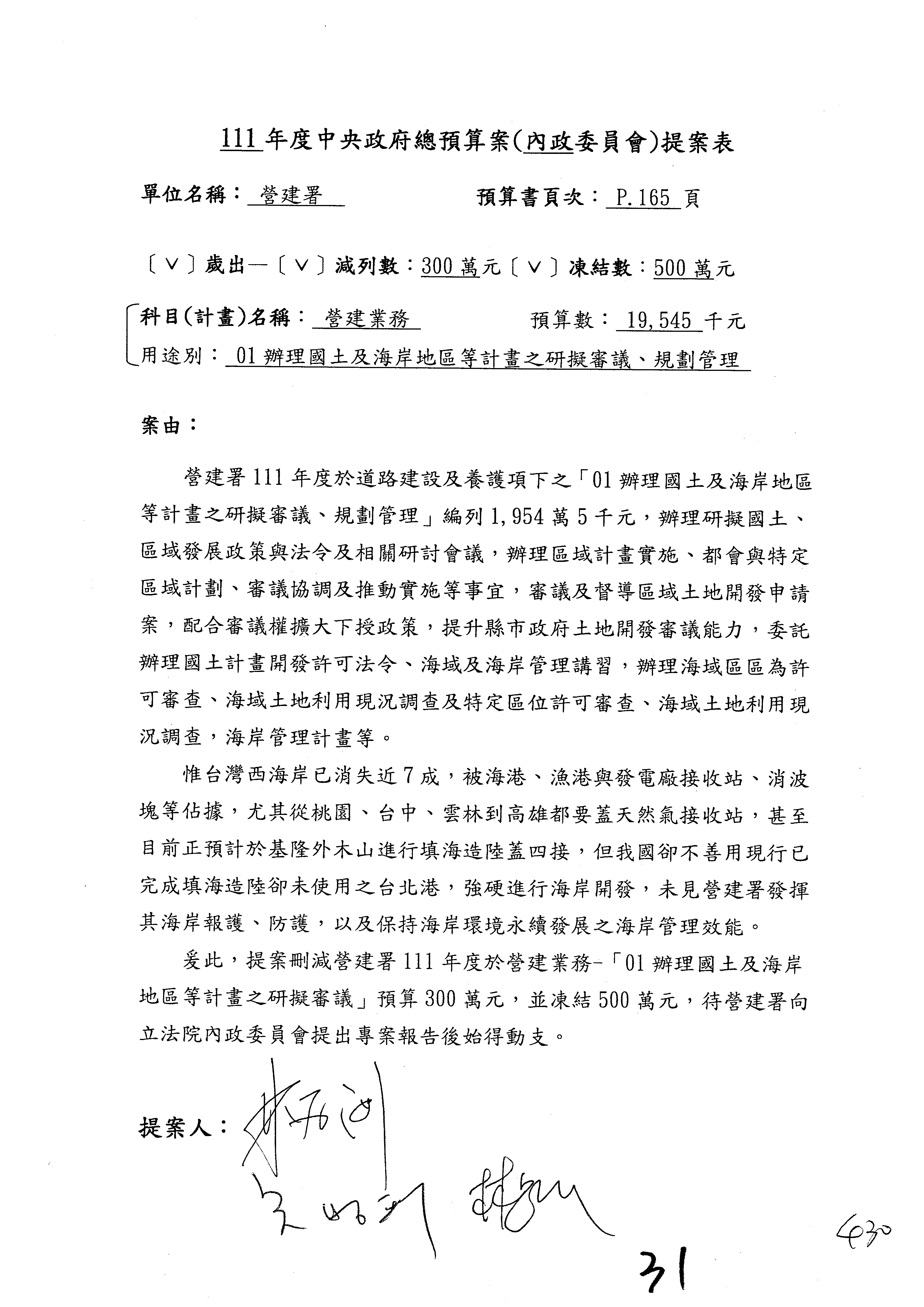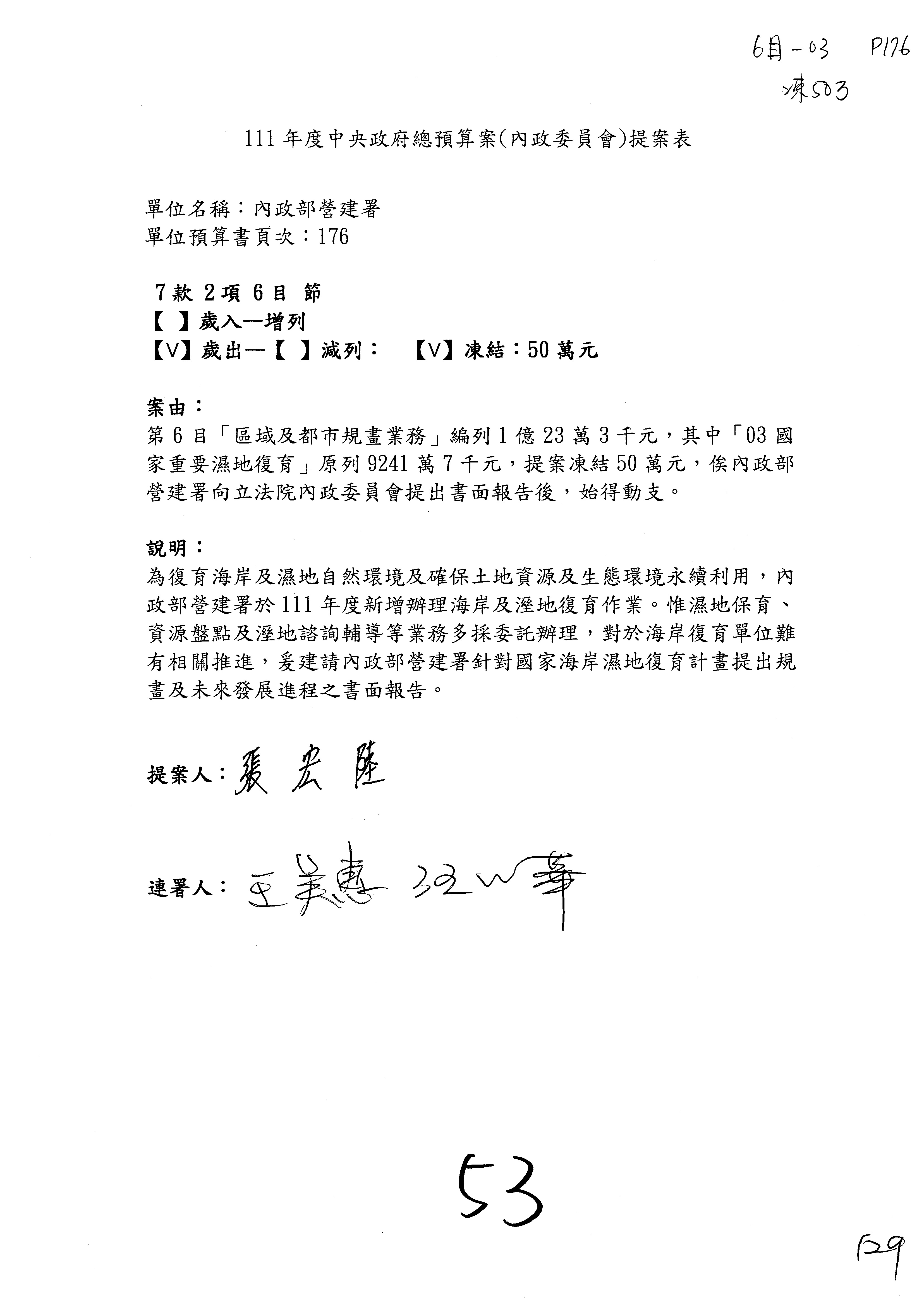 王所長榮進:這個部分我們有跟委員做說明,委員同意減列的部分就不再減列,凍結的部分這案是撤案,提書面報告。
