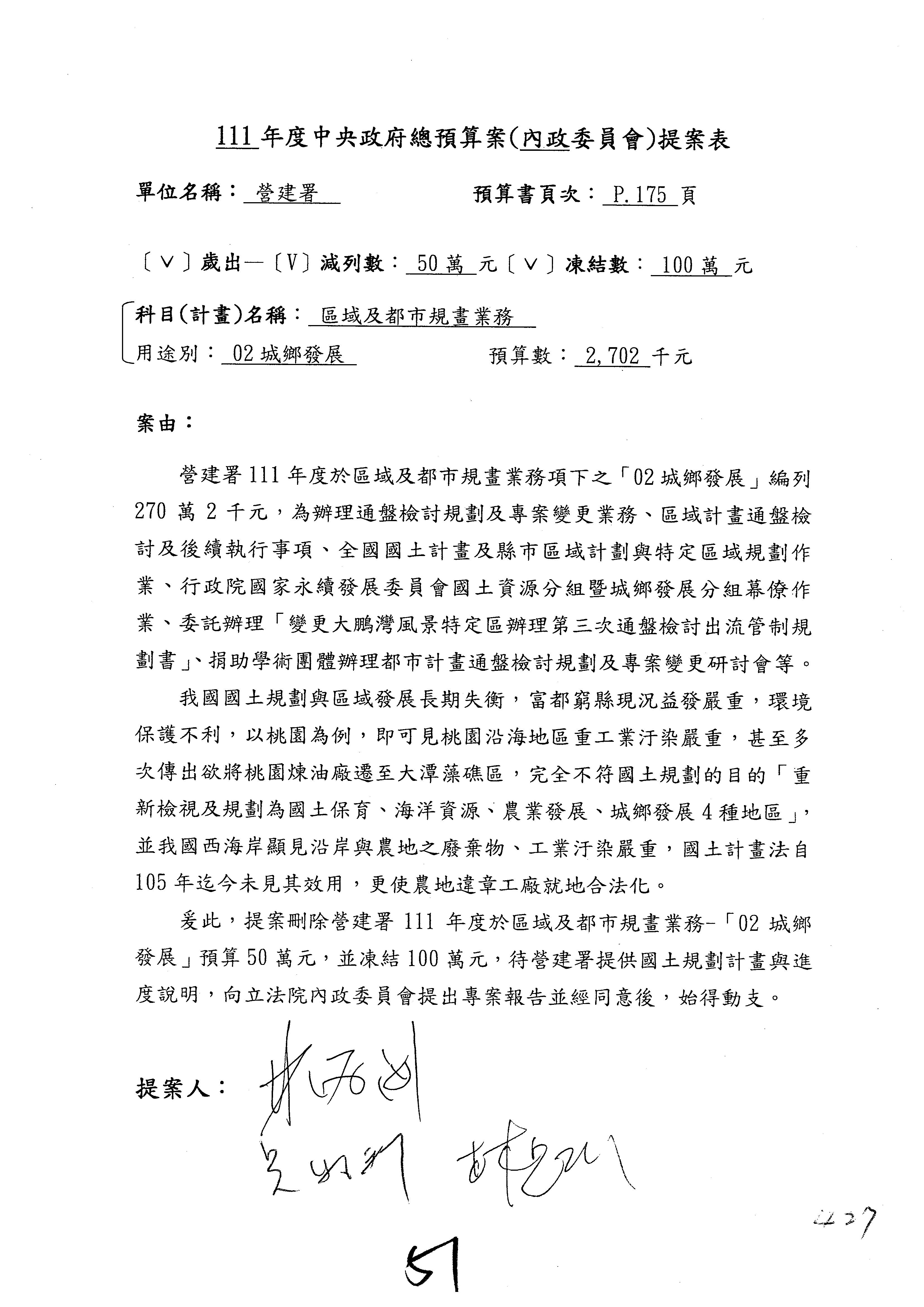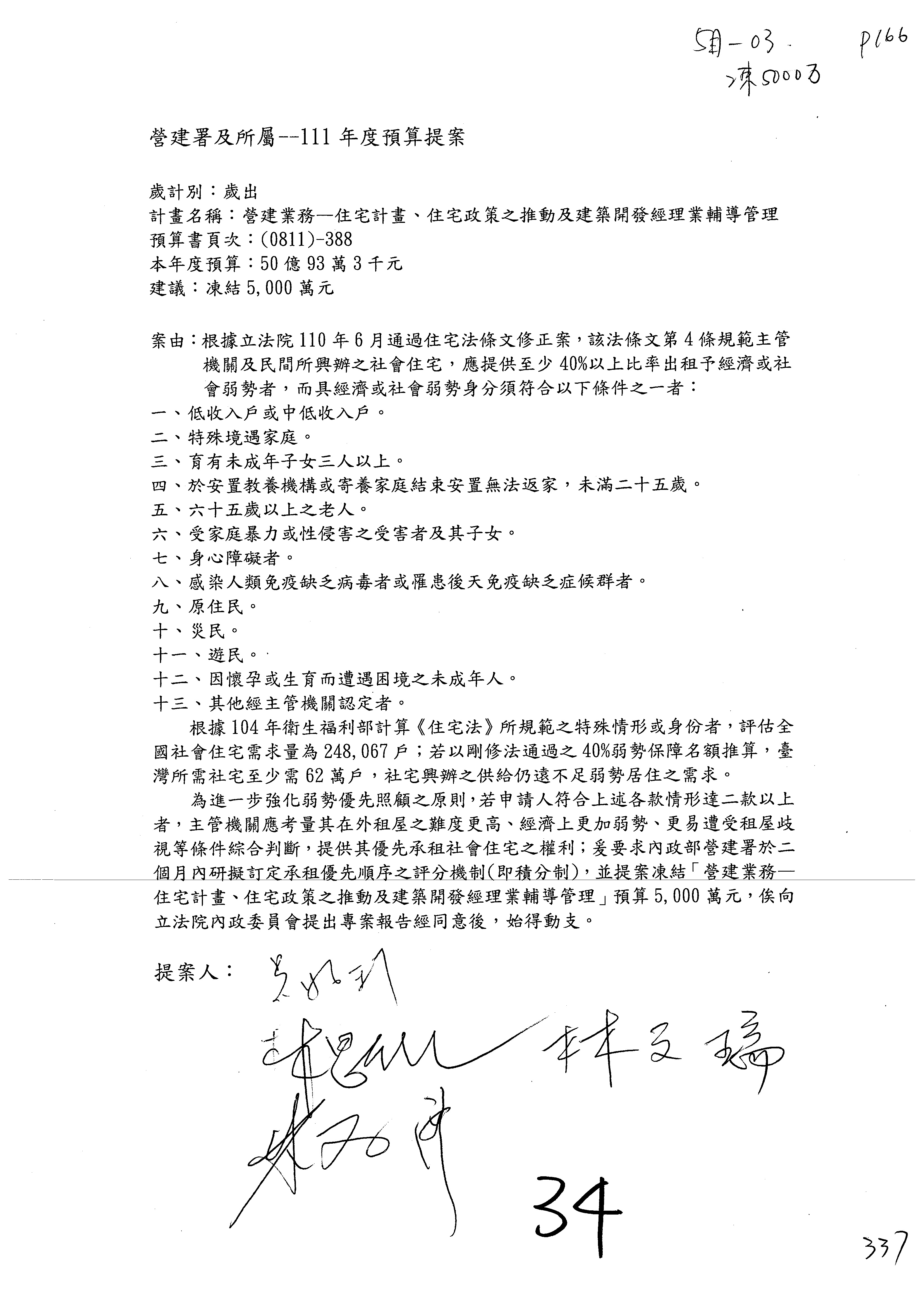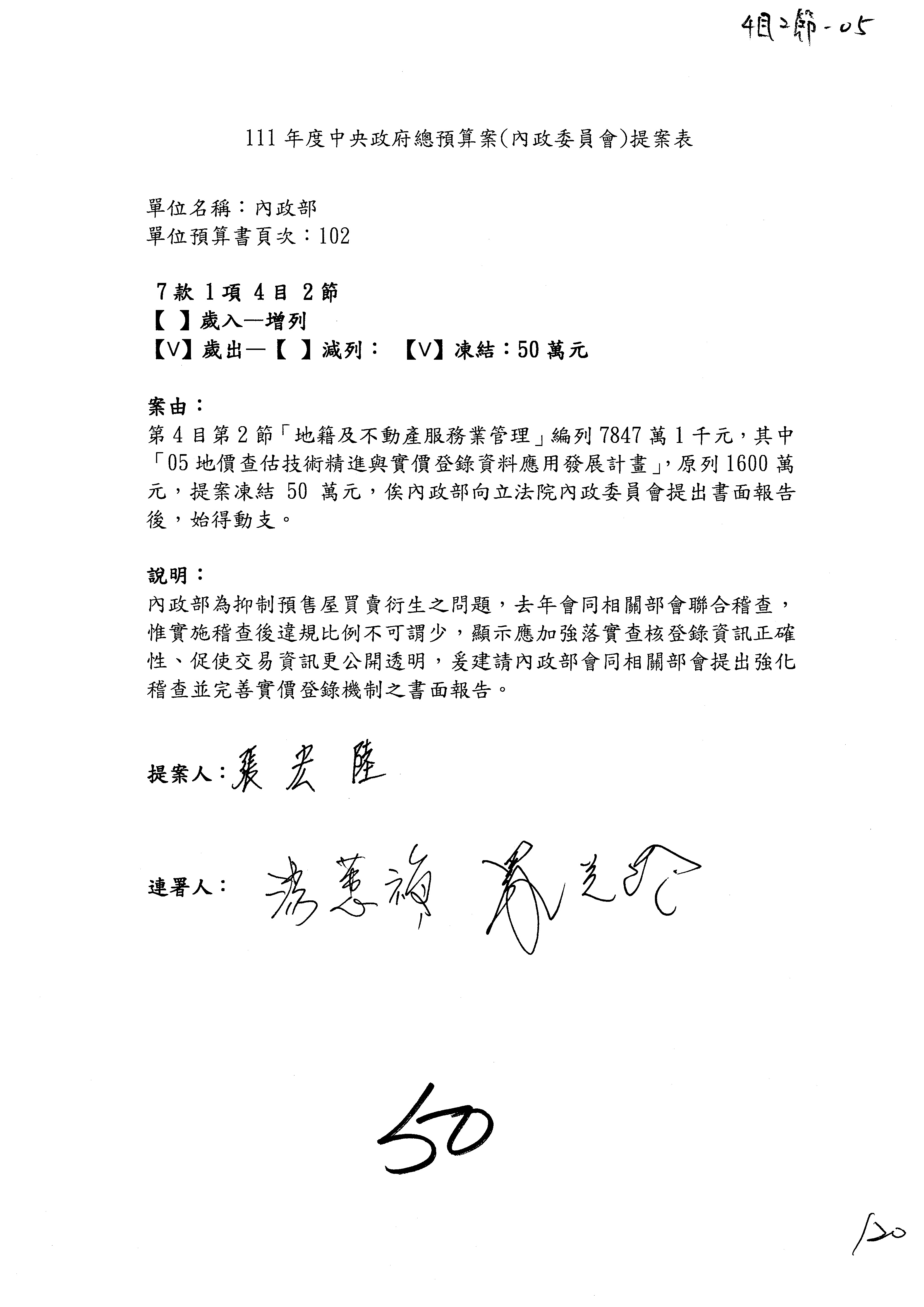 主席:好啦!我很好講話,凍結50萬元,提書面報告。