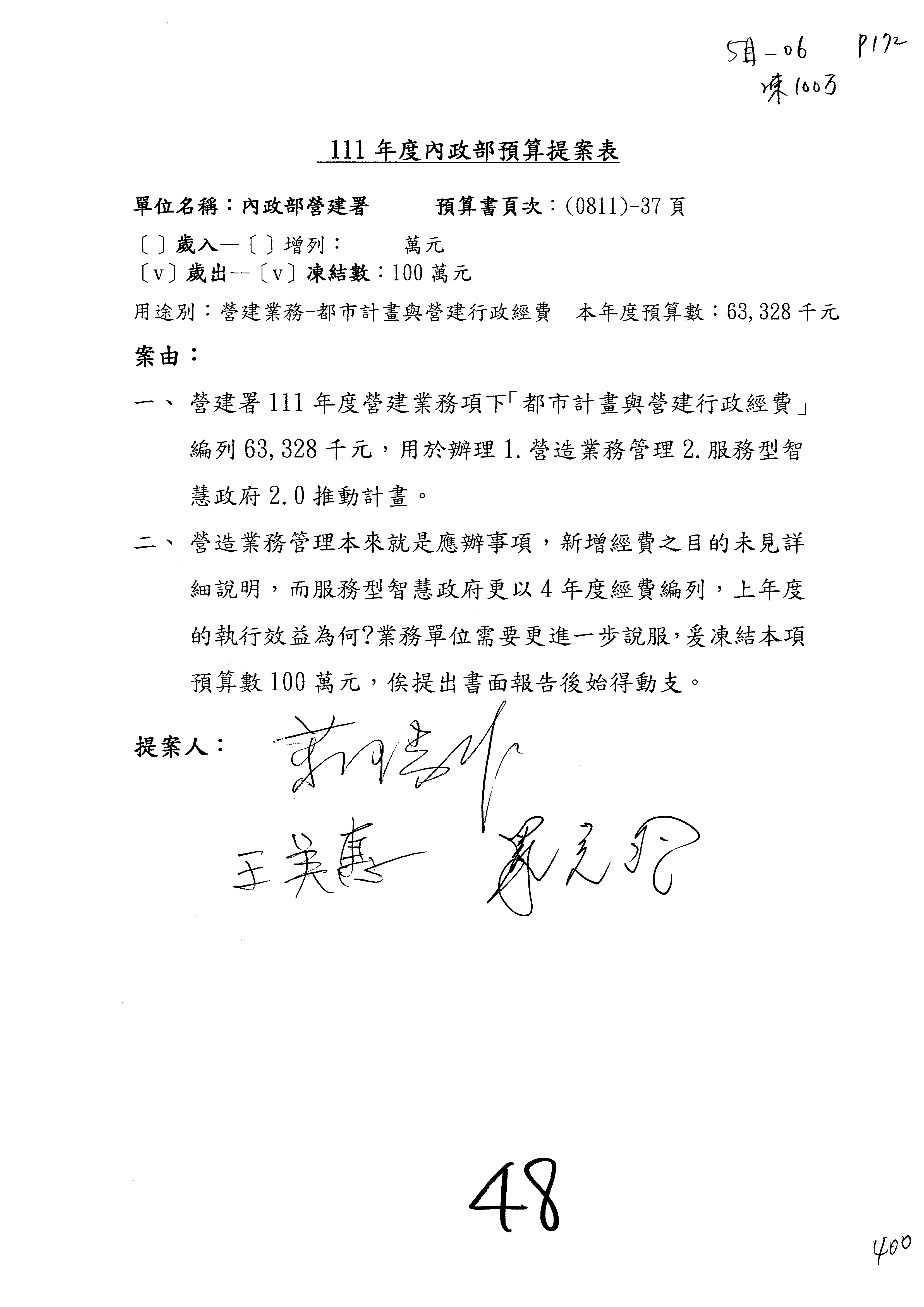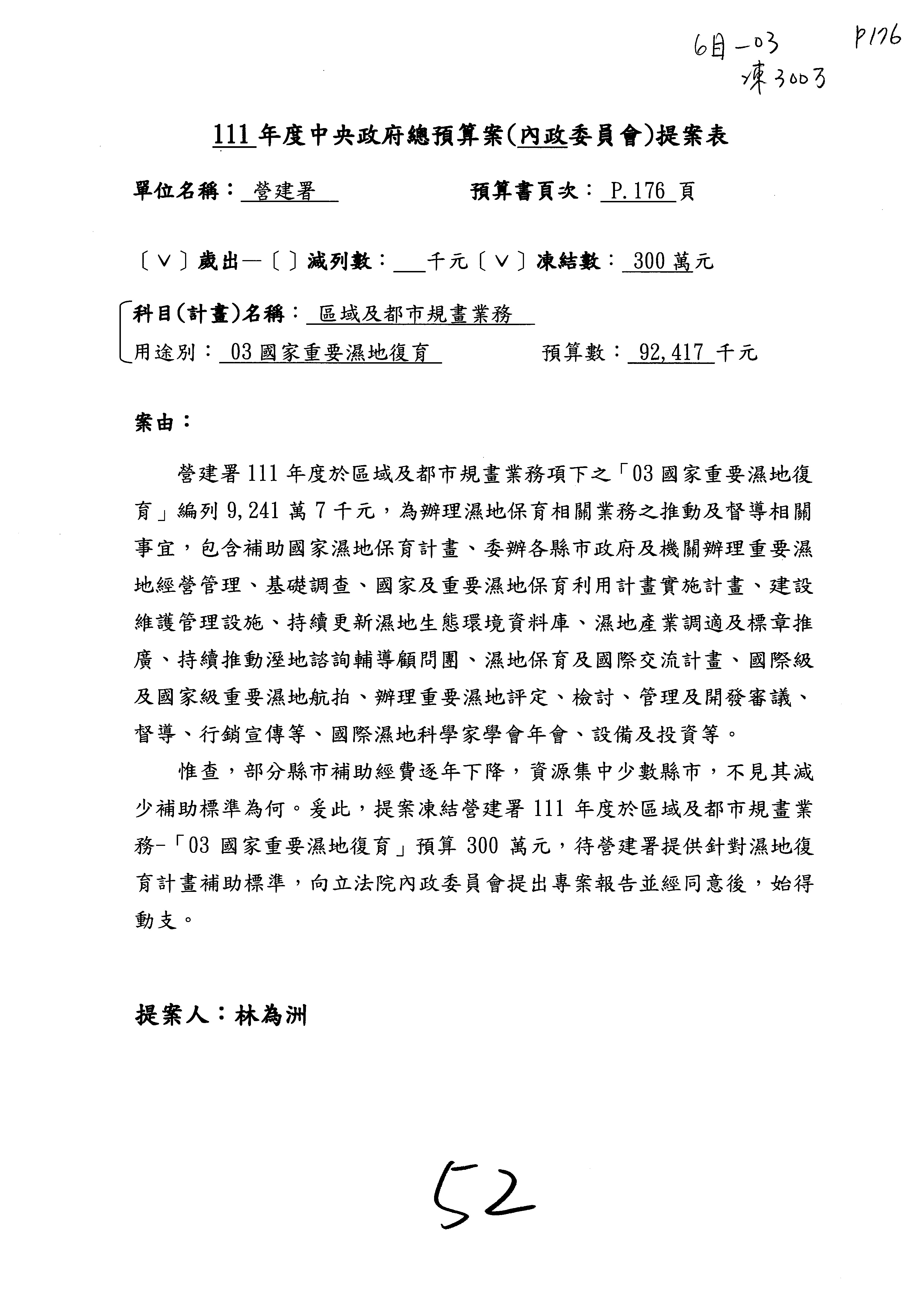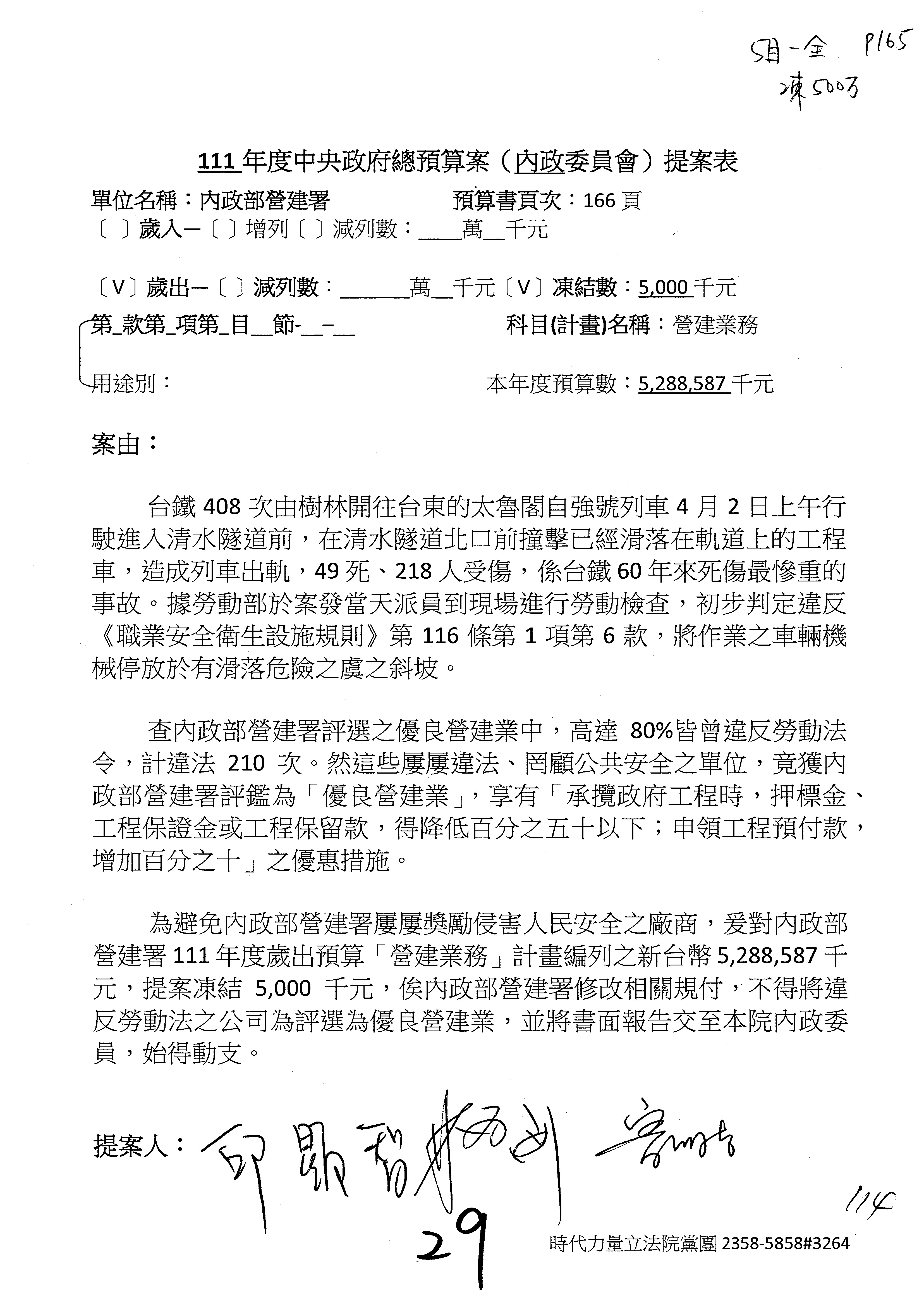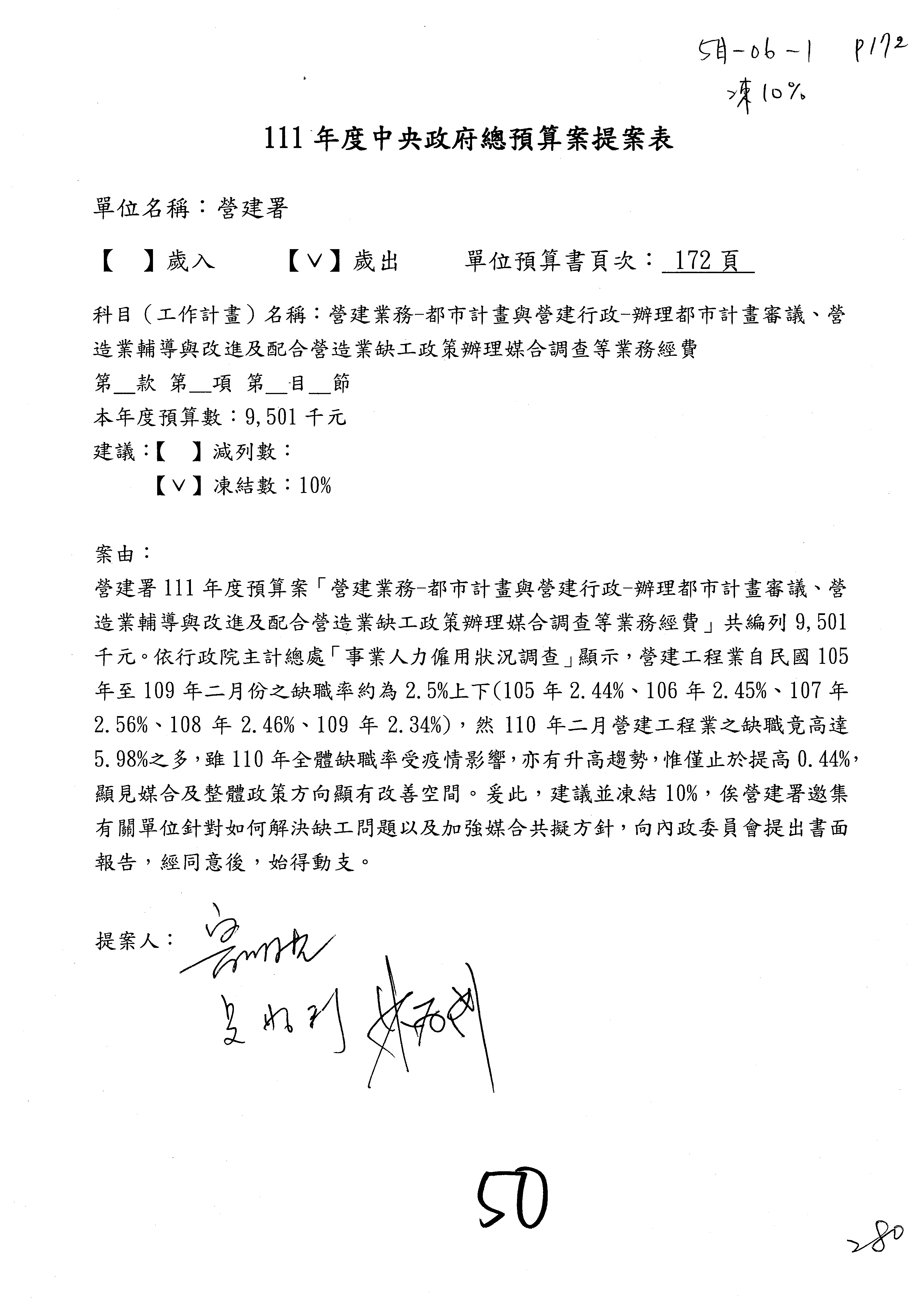 主席:好啦!我很好講話,凍結50萬元,提書面報告。