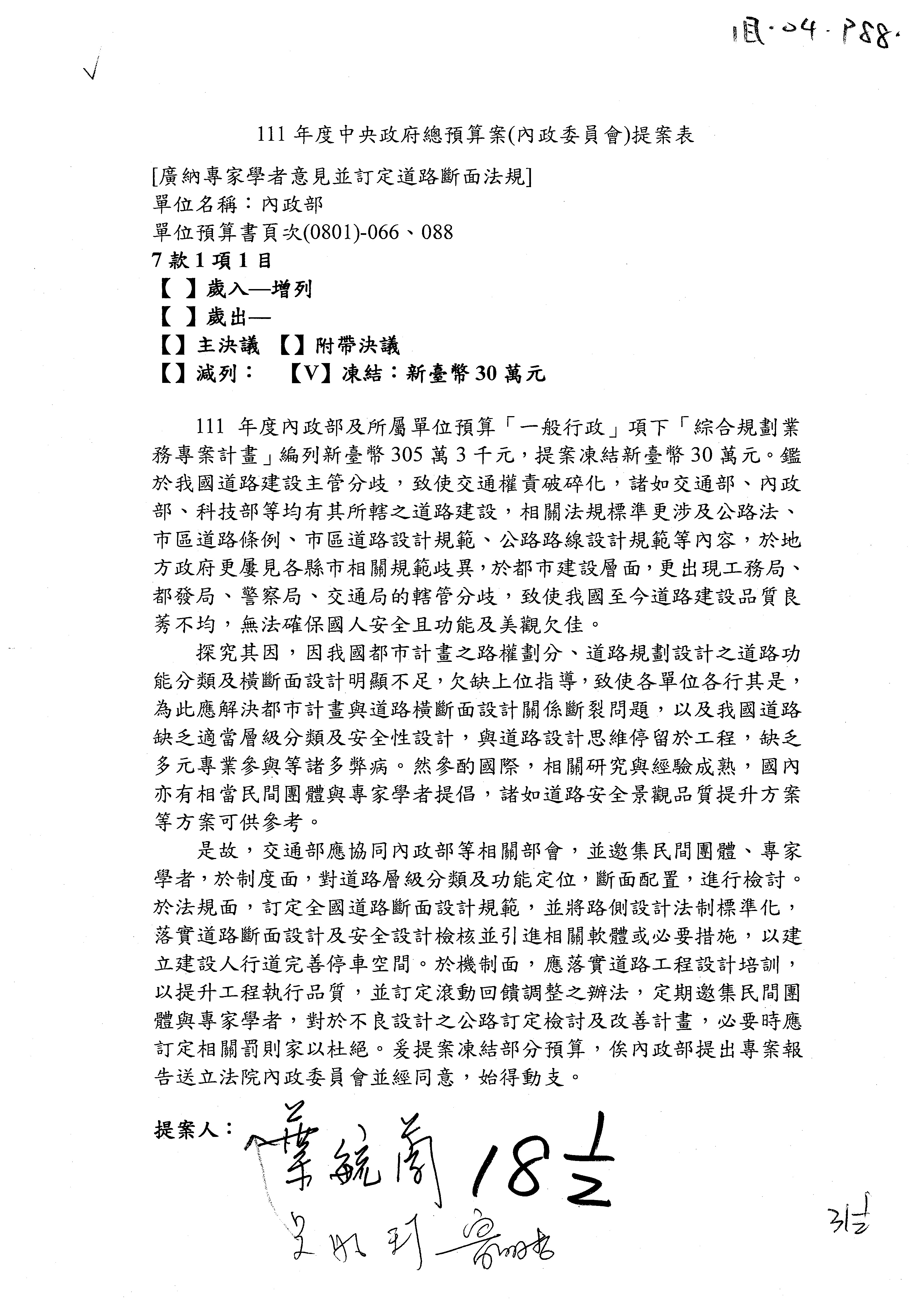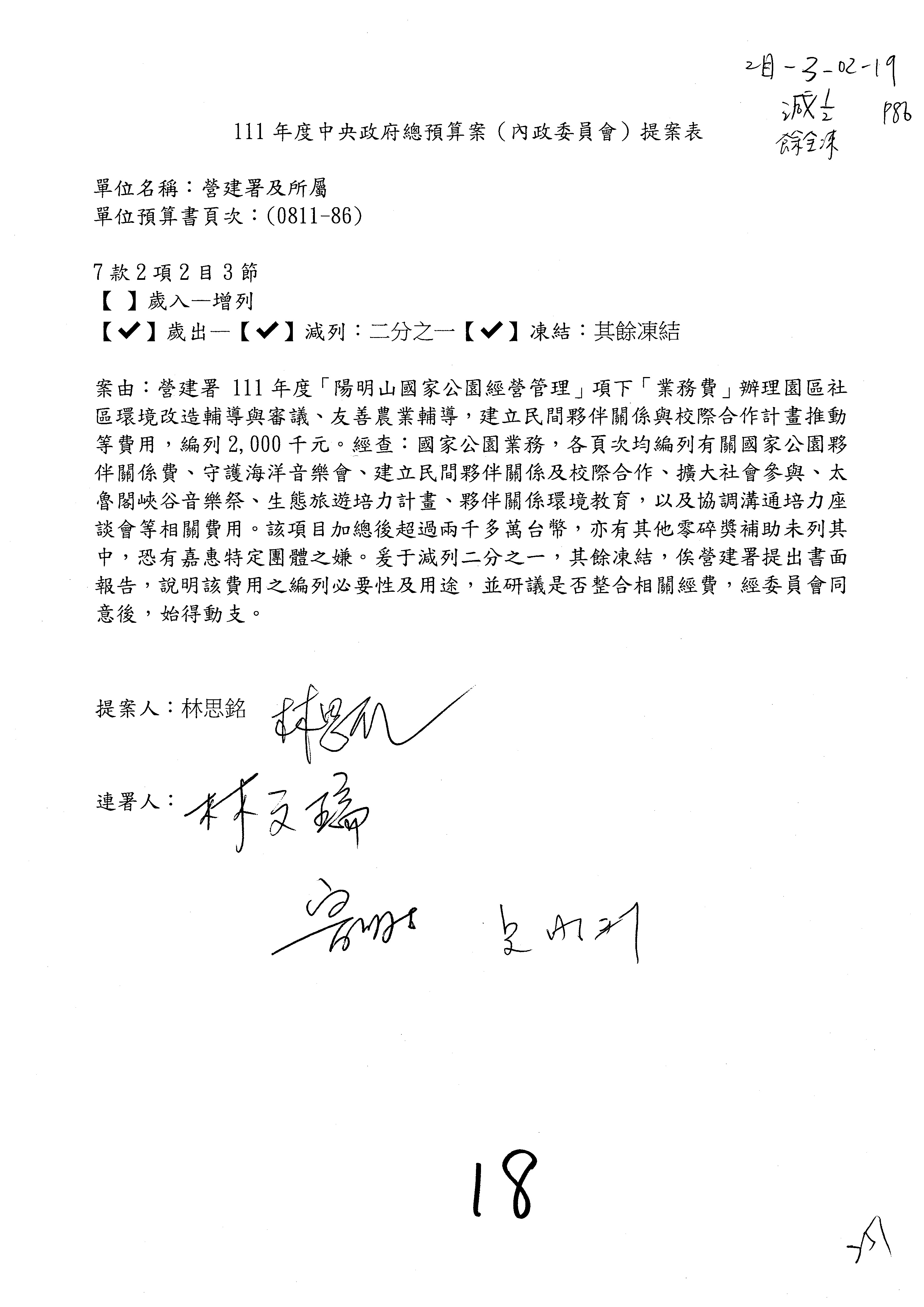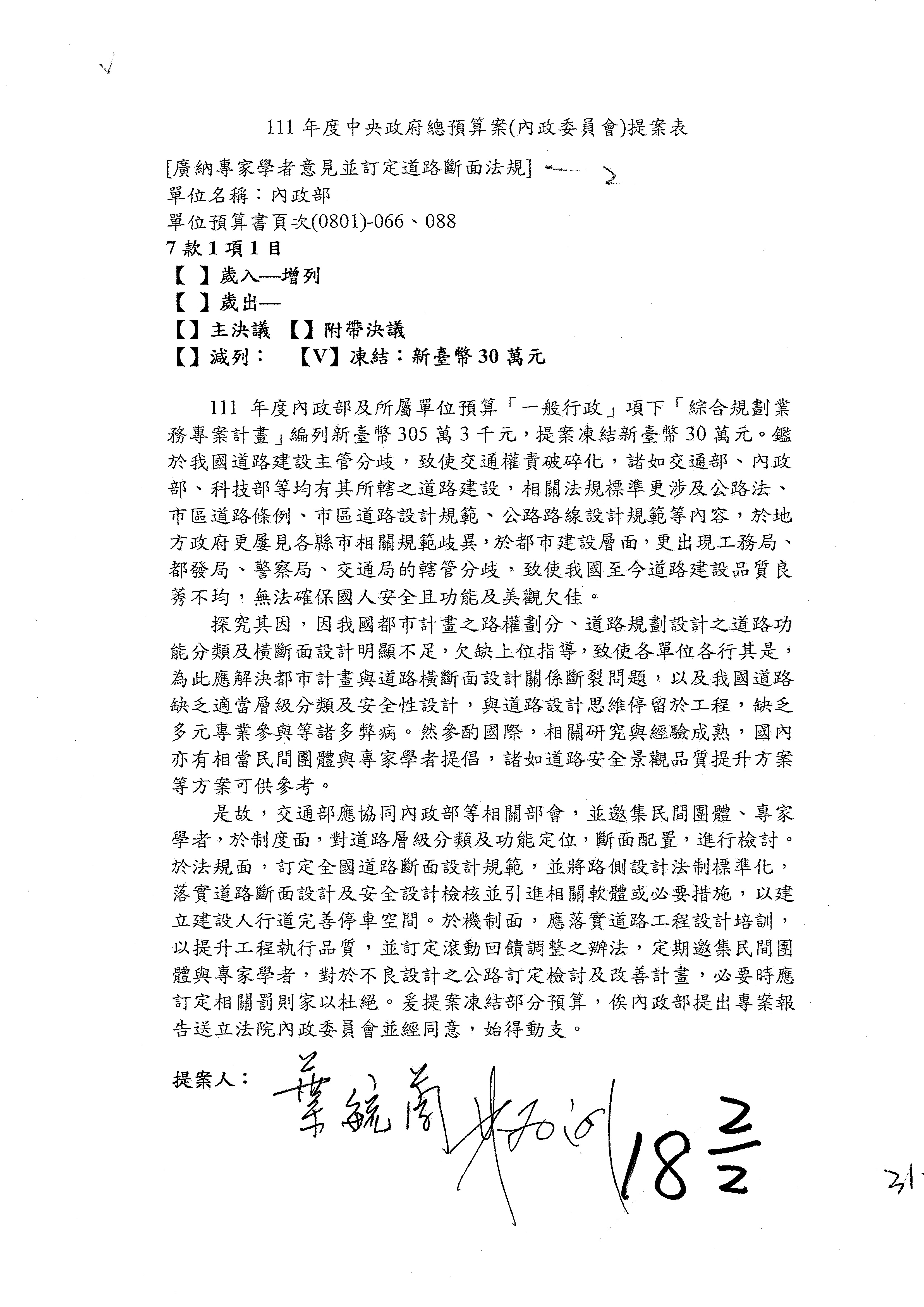 第18案第一行及第二行均予以刪除;倒數第二行修正為「爰請內政部提出書面報告,送立法院內政委員會」。
