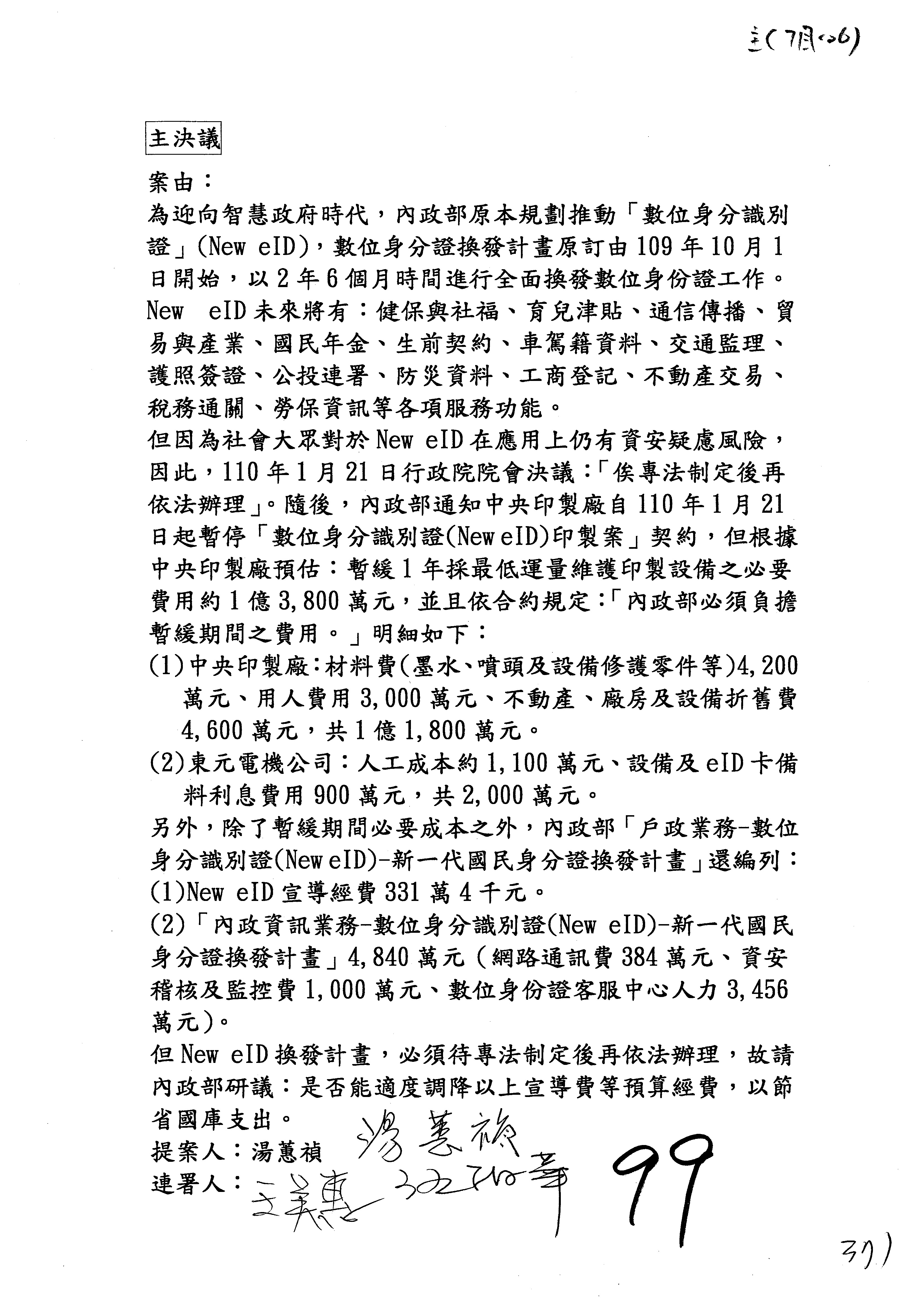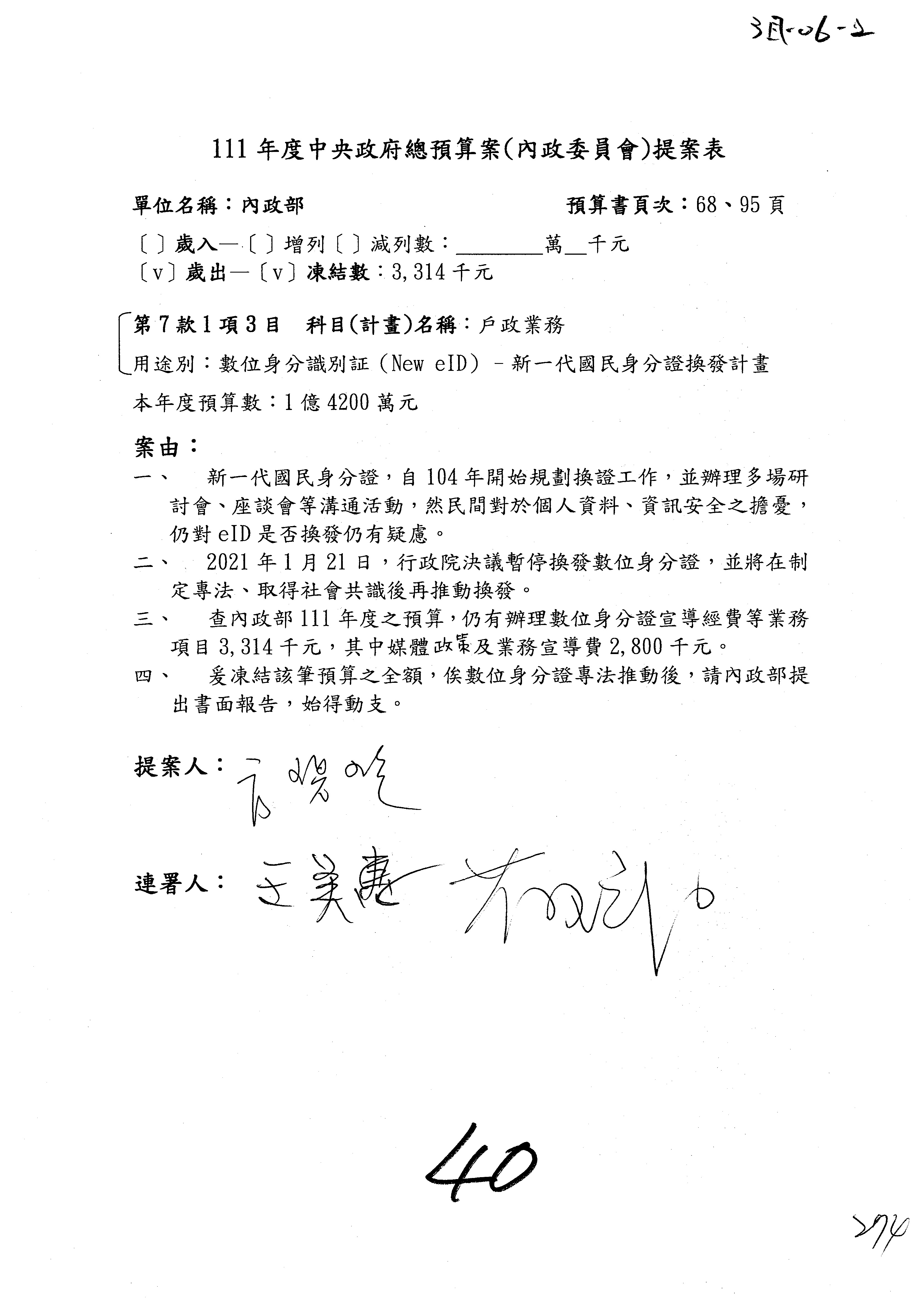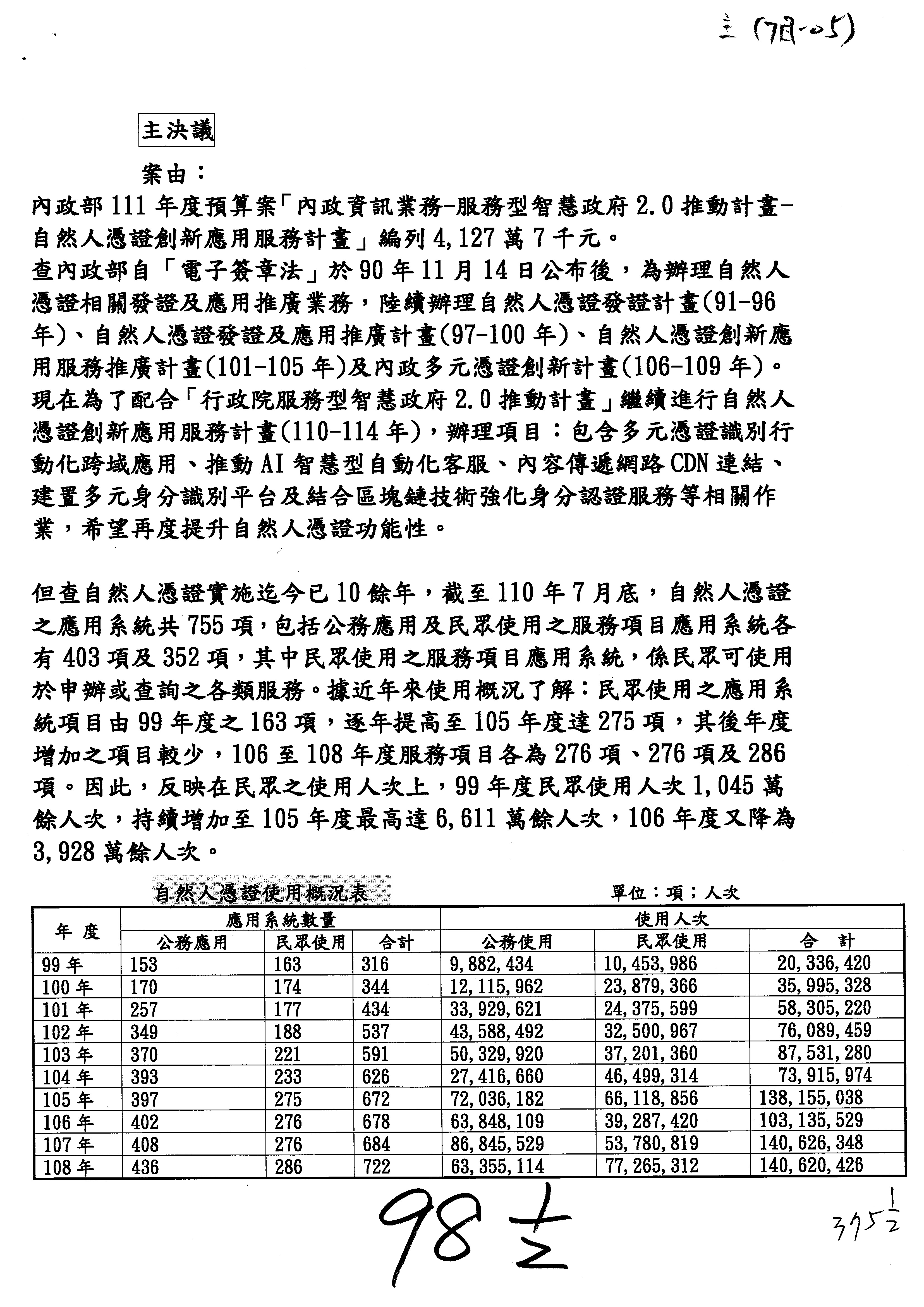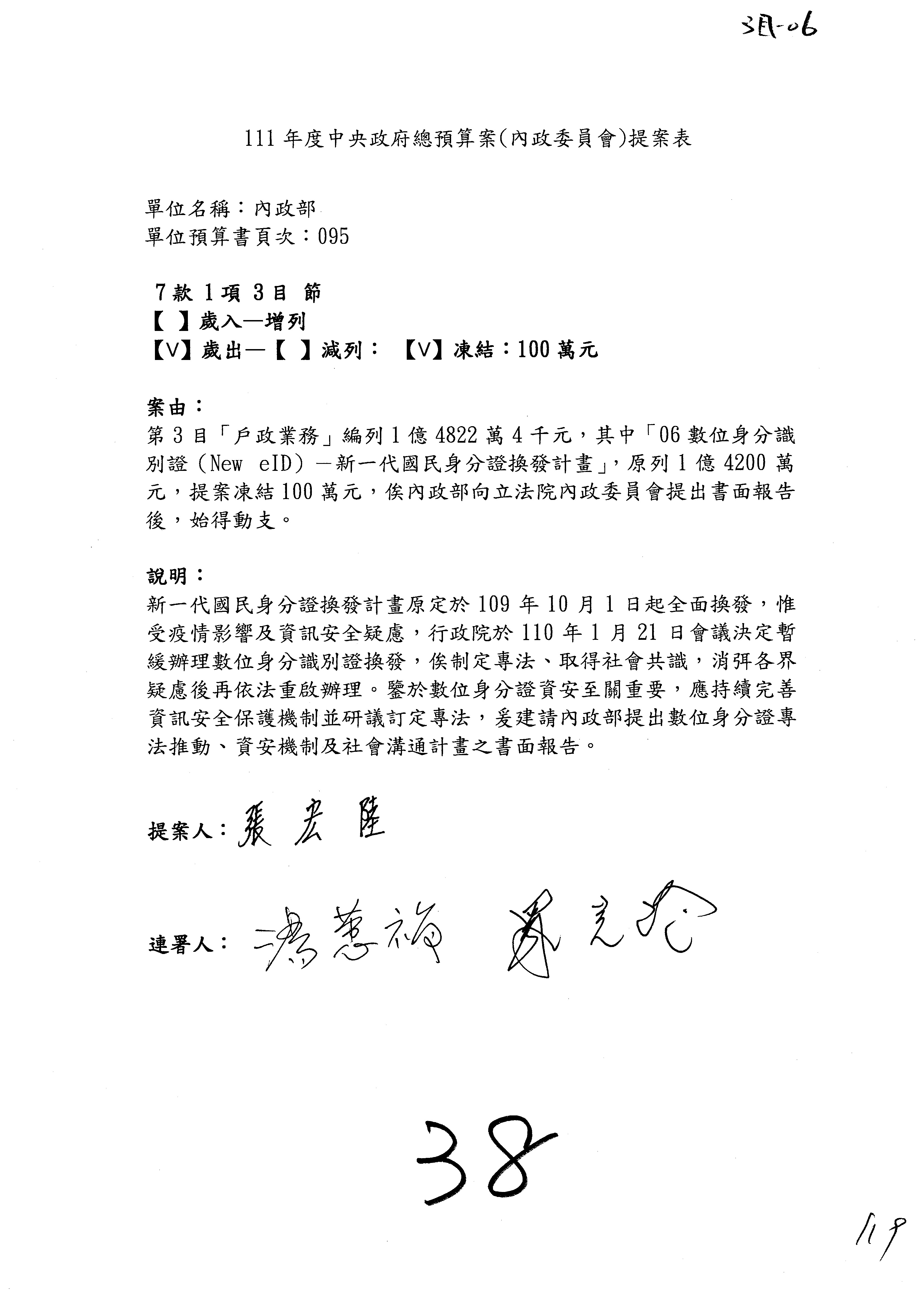 主席:這個一定要講清楚,不然預算書那樣寫,但明明就沒有數位身分證……