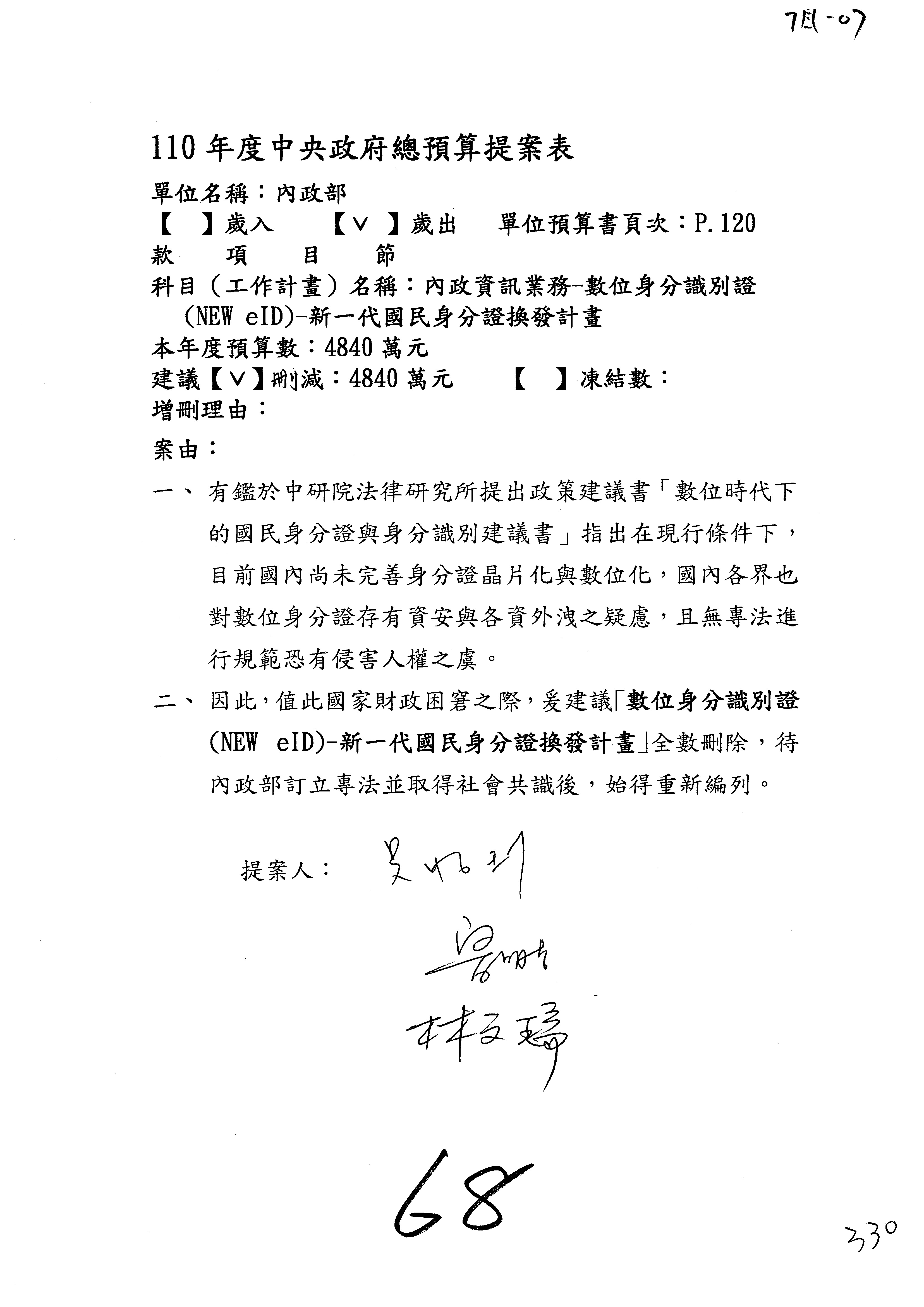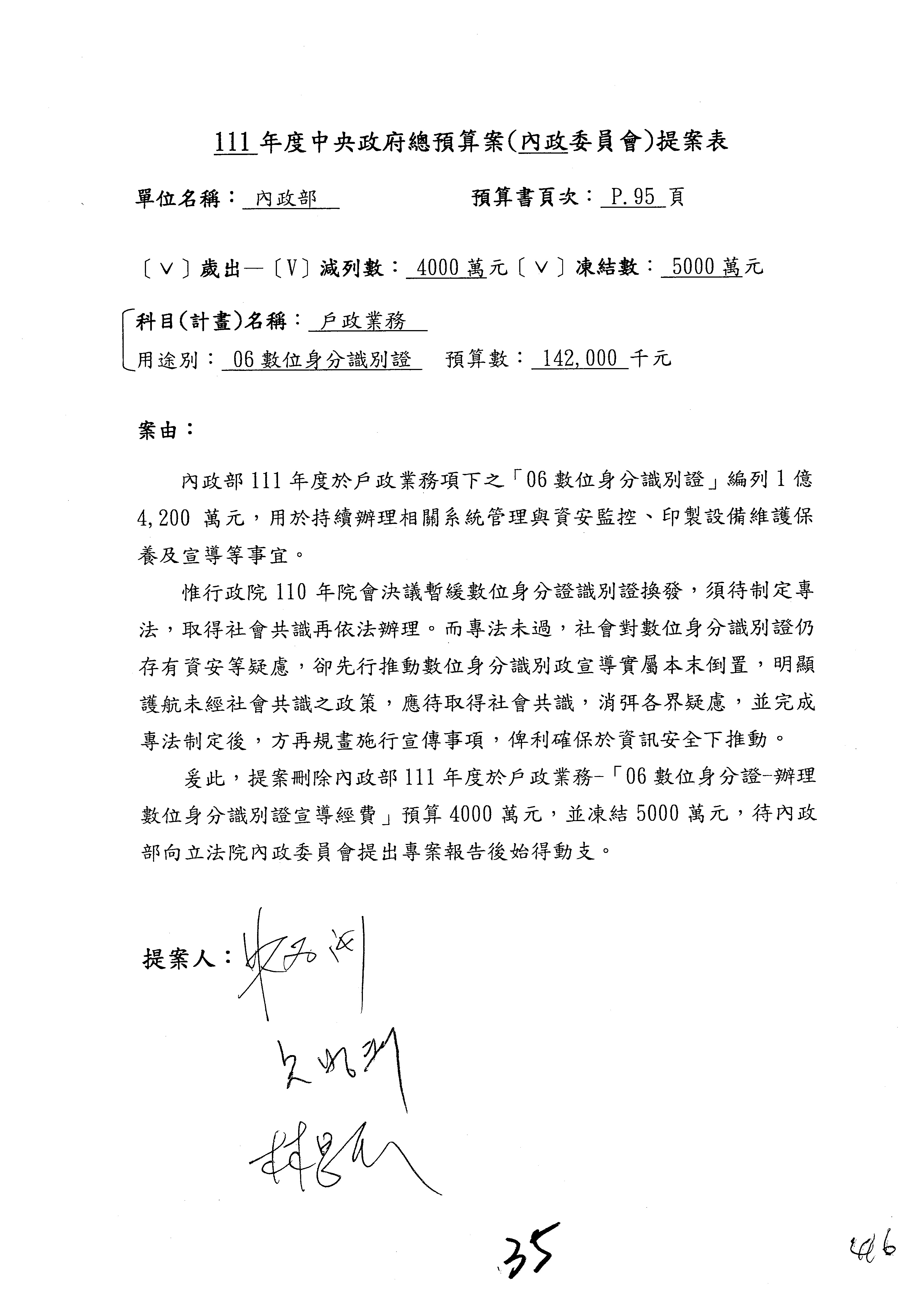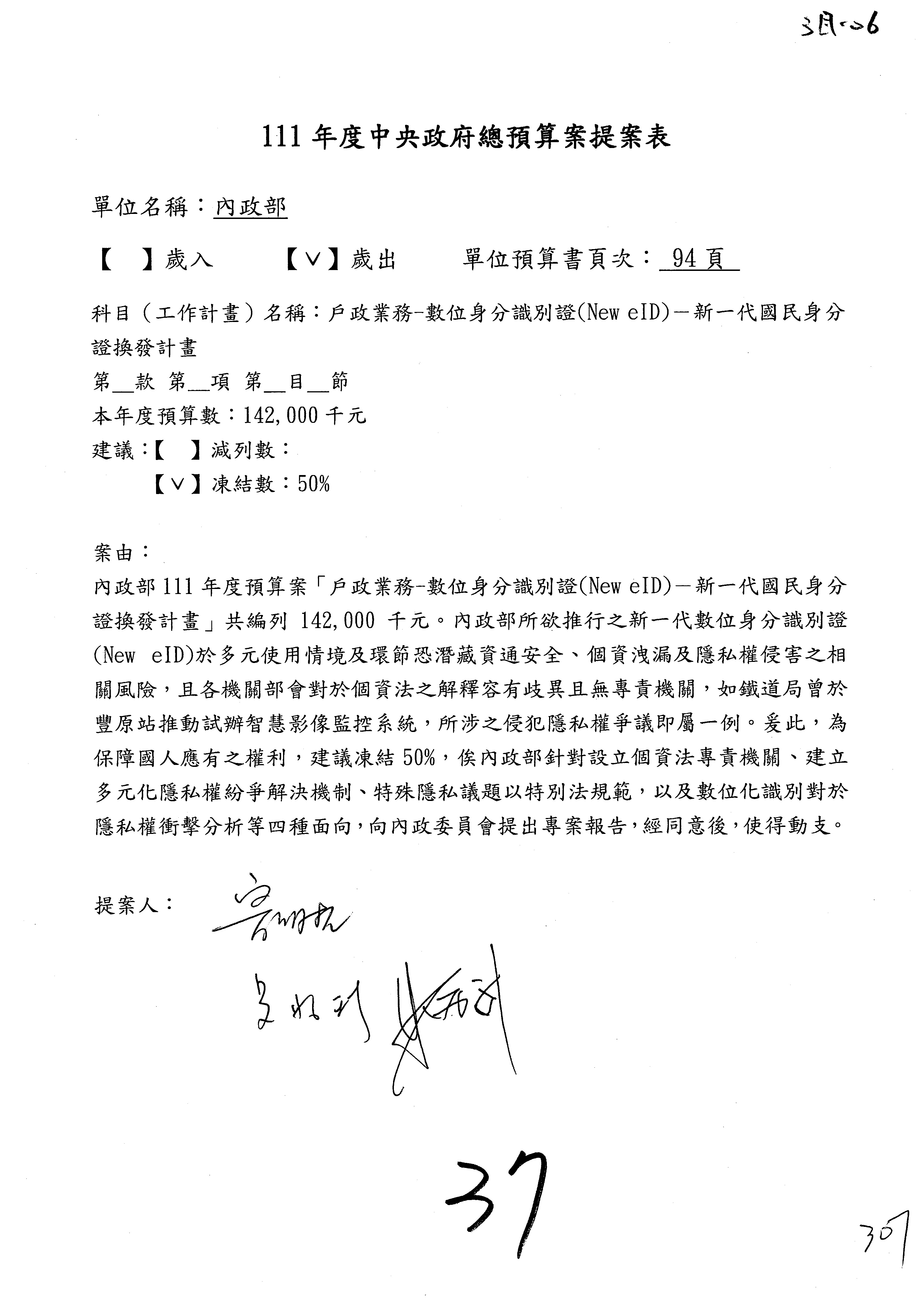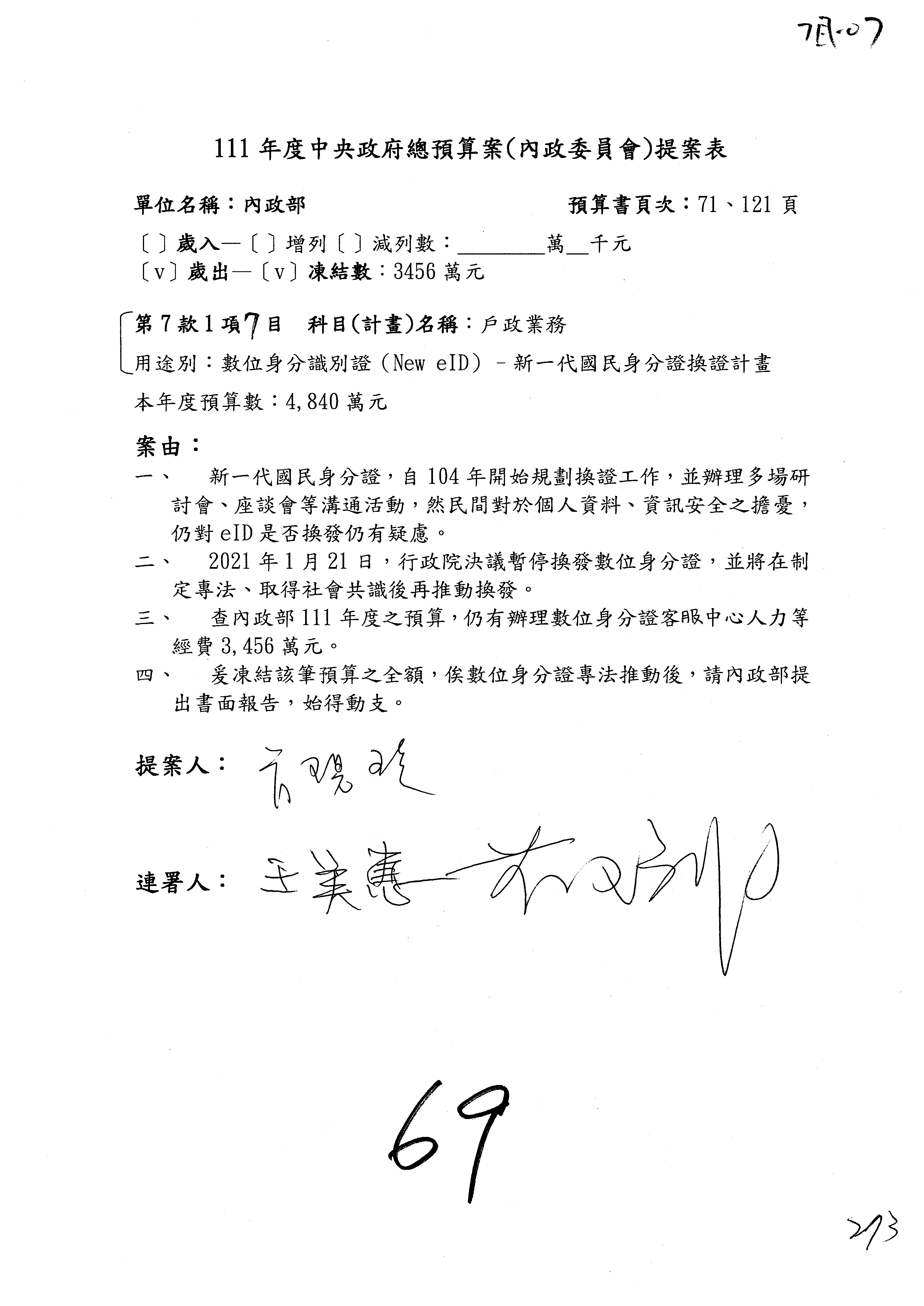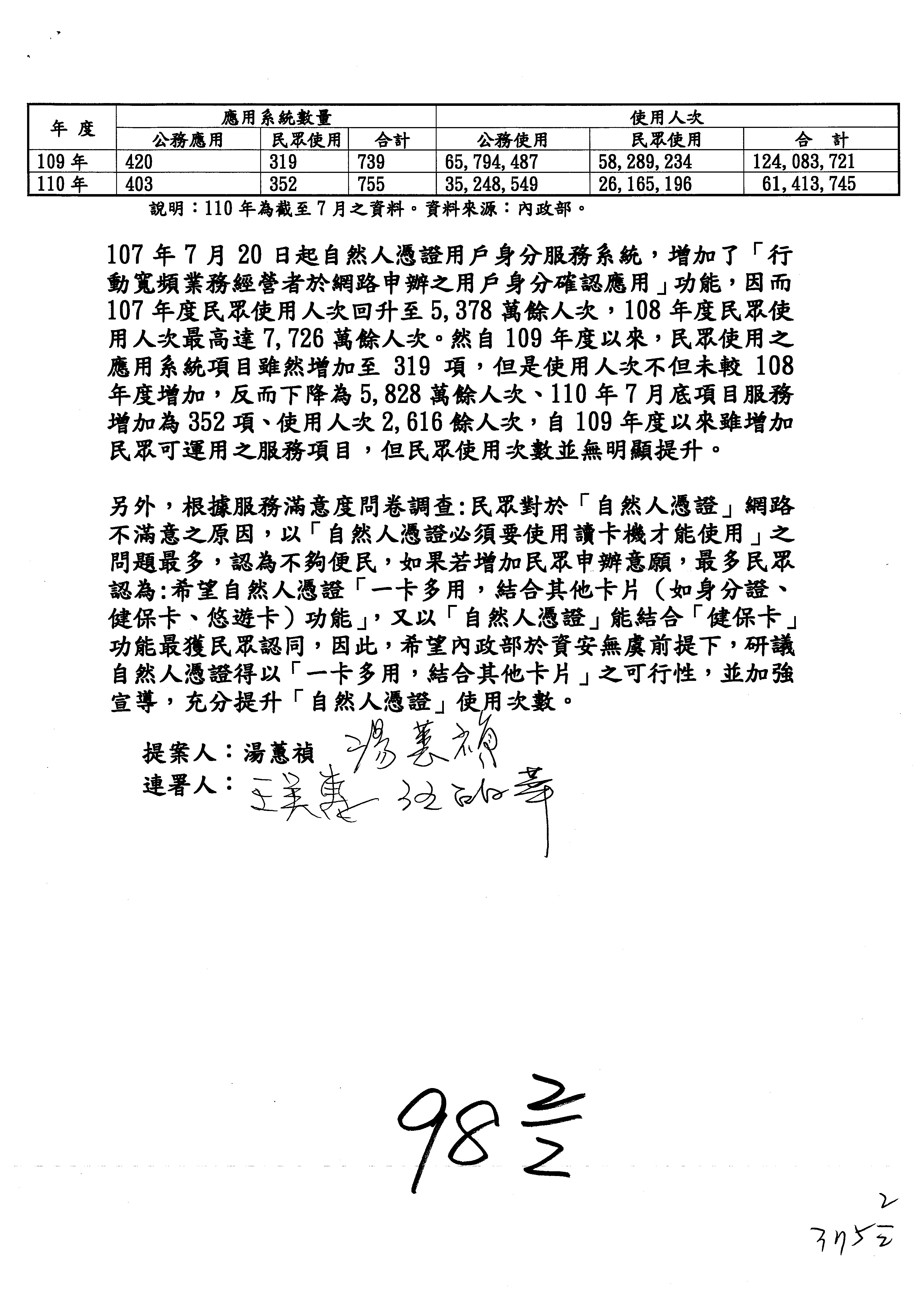 主席:這個一定要講清楚,不然預算書那樣寫,但明明就沒有數位身分證……