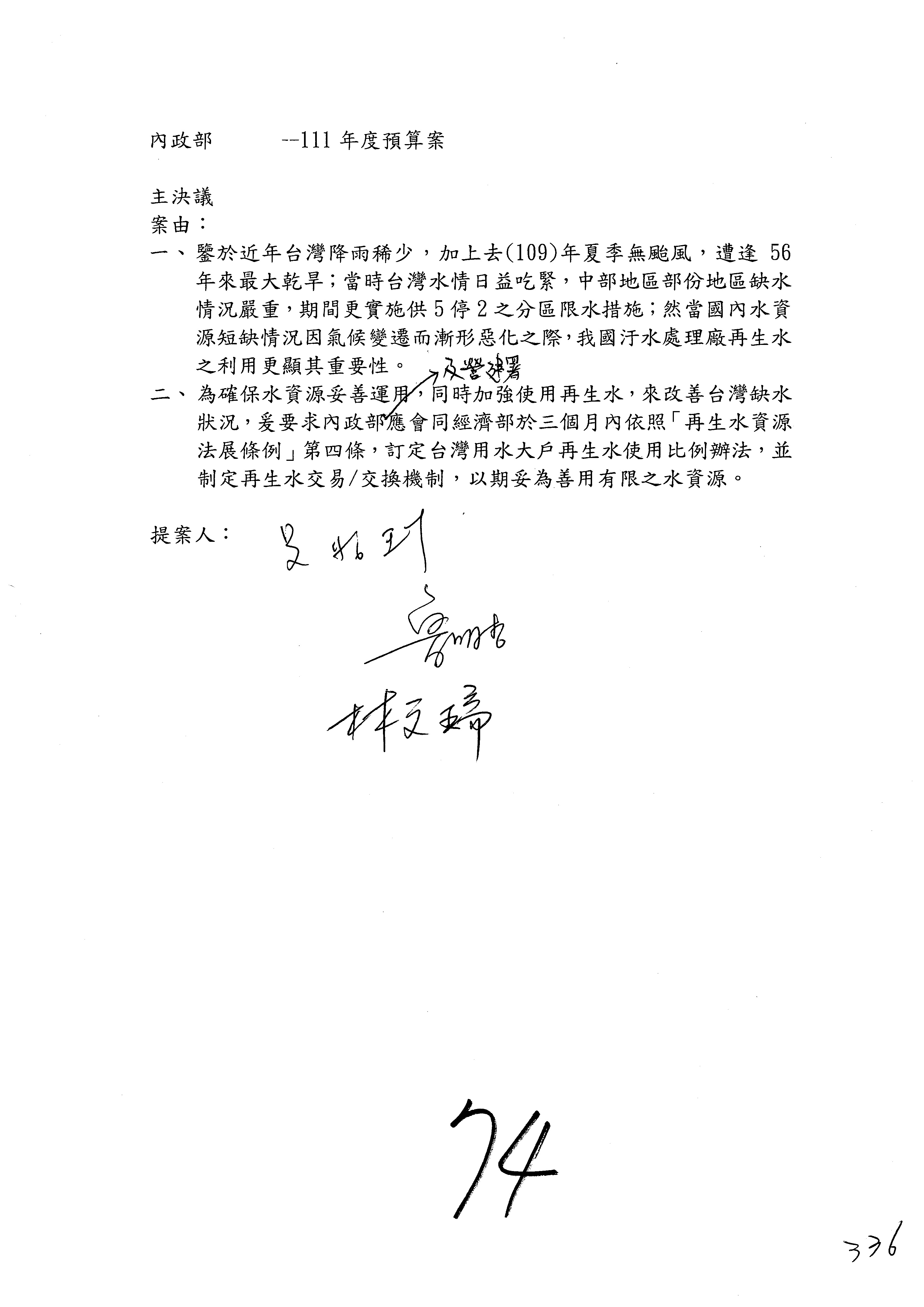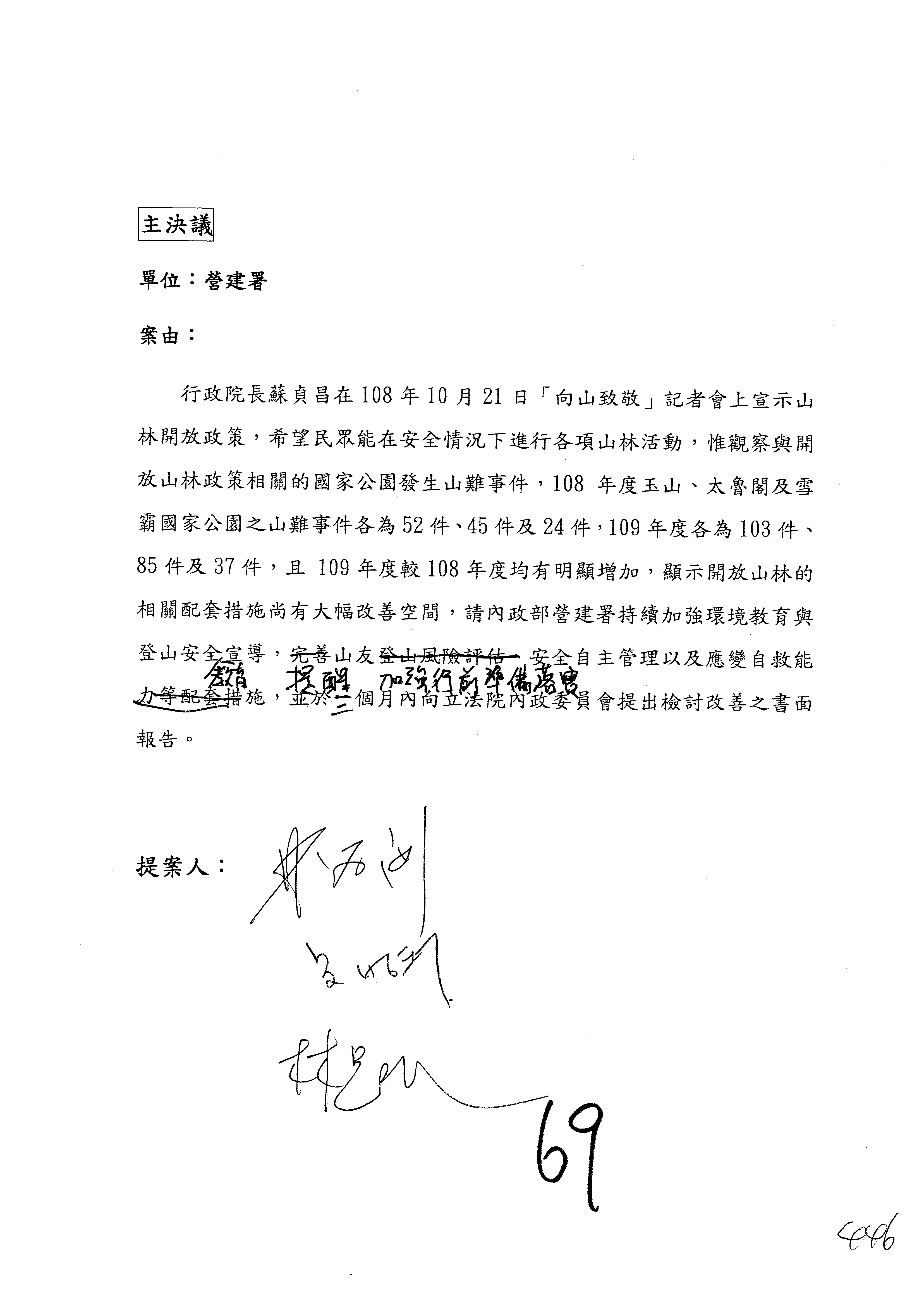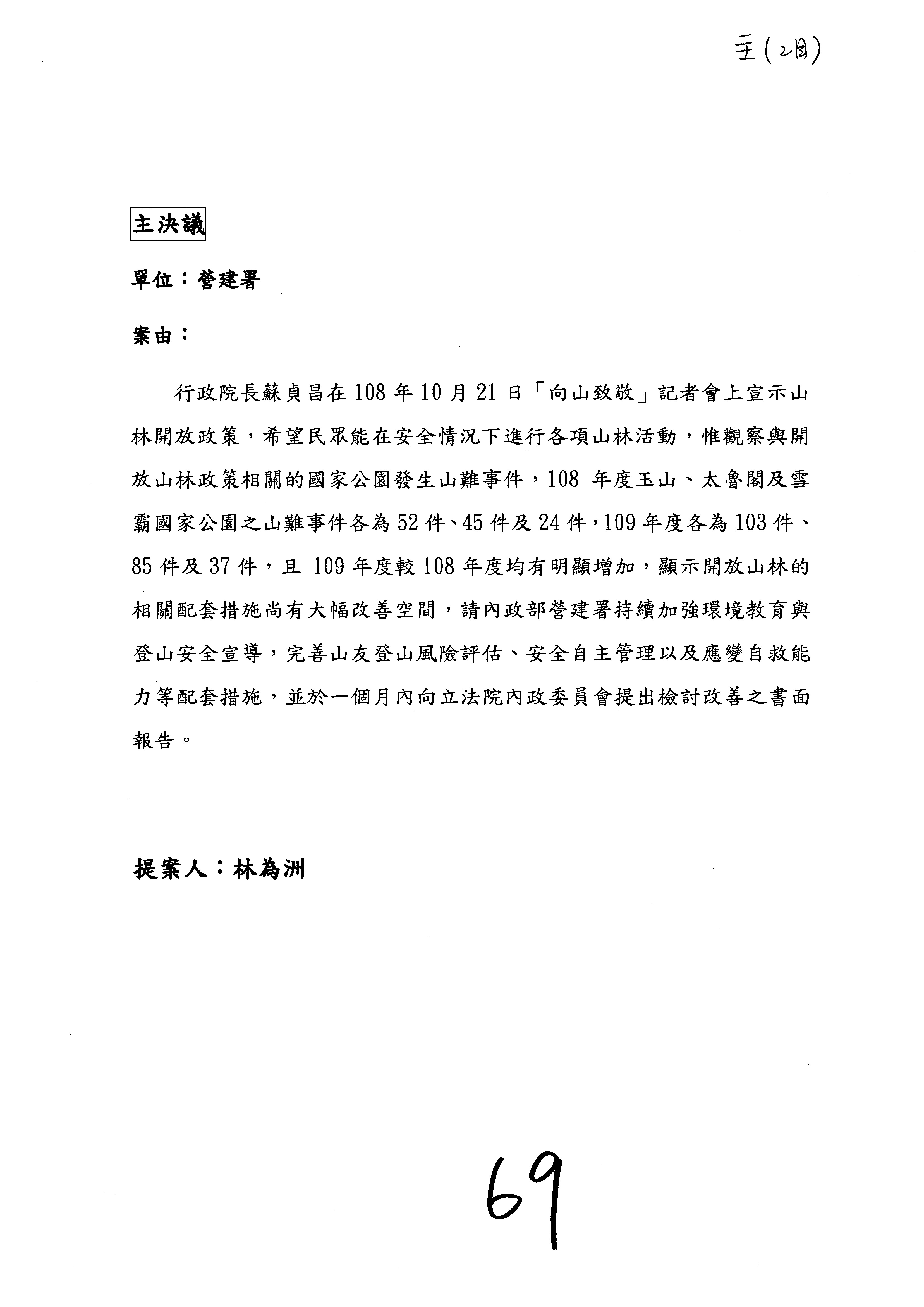 主席:剛剛委員提案改主決議部分,請相關單位趕快擬出文字。