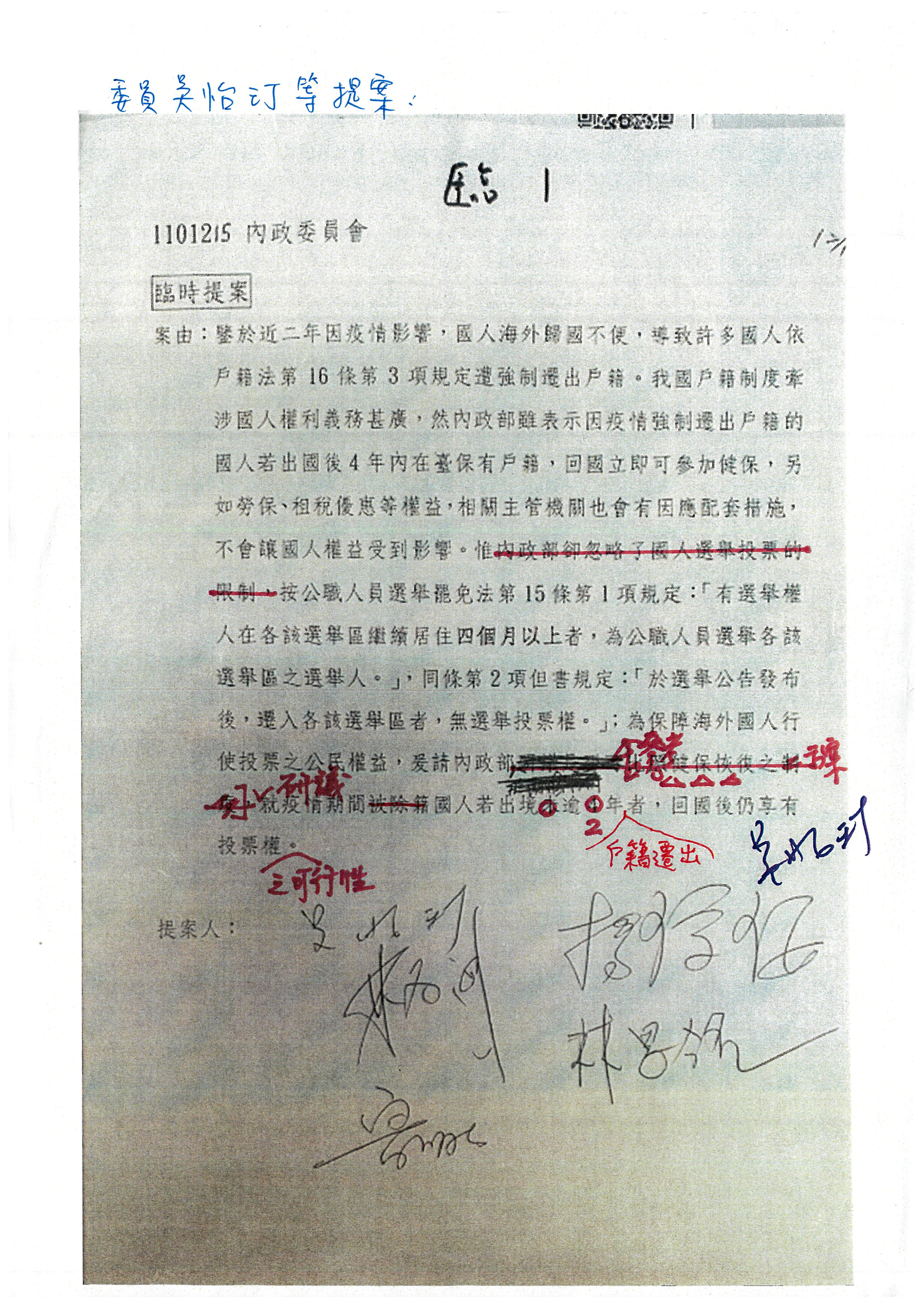 徐部長國勇:不要說撤掉啦!我沒有要委員撤案,這是立委的職權行使,我們不會這樣要求,除非委員願意撤,我們是建議改主決議,然後明天再說明。