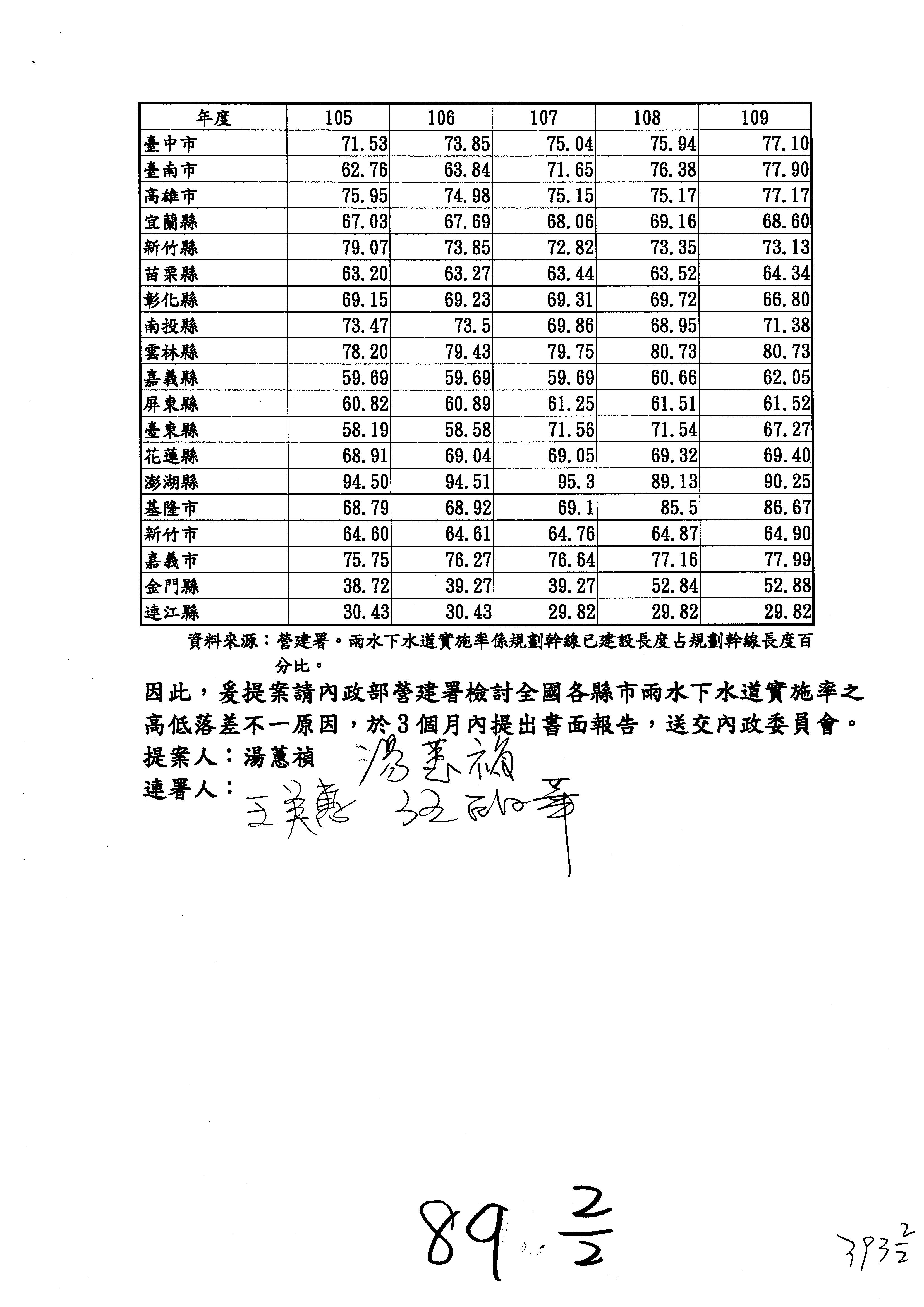 主席:好,第90案修正通過;第91案邱顯智委員的提案修正通過;第92案邱顯智委員撤案;第93案王美惠委員提案照案通過;第94案魯明哲委員提案照案通過。