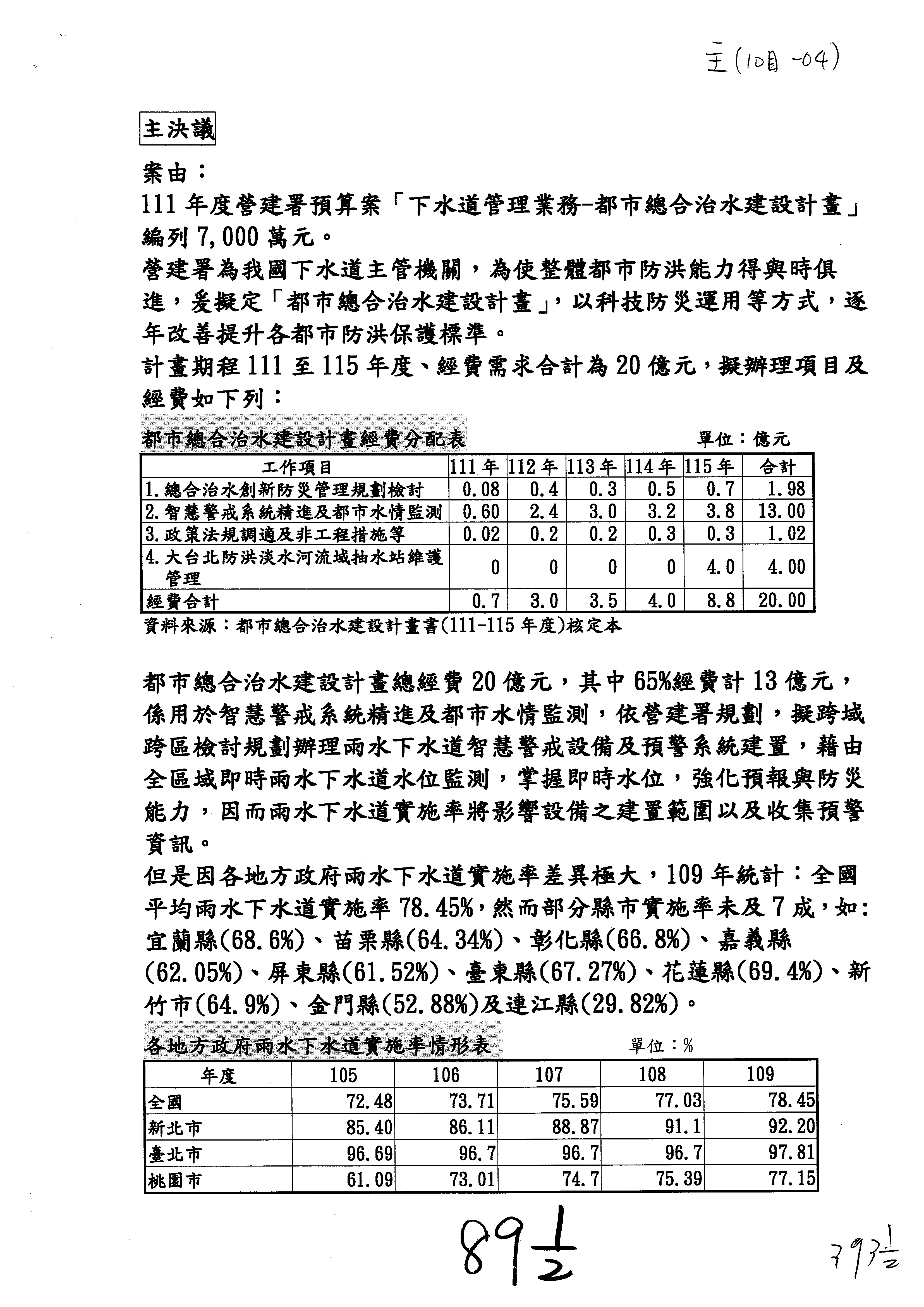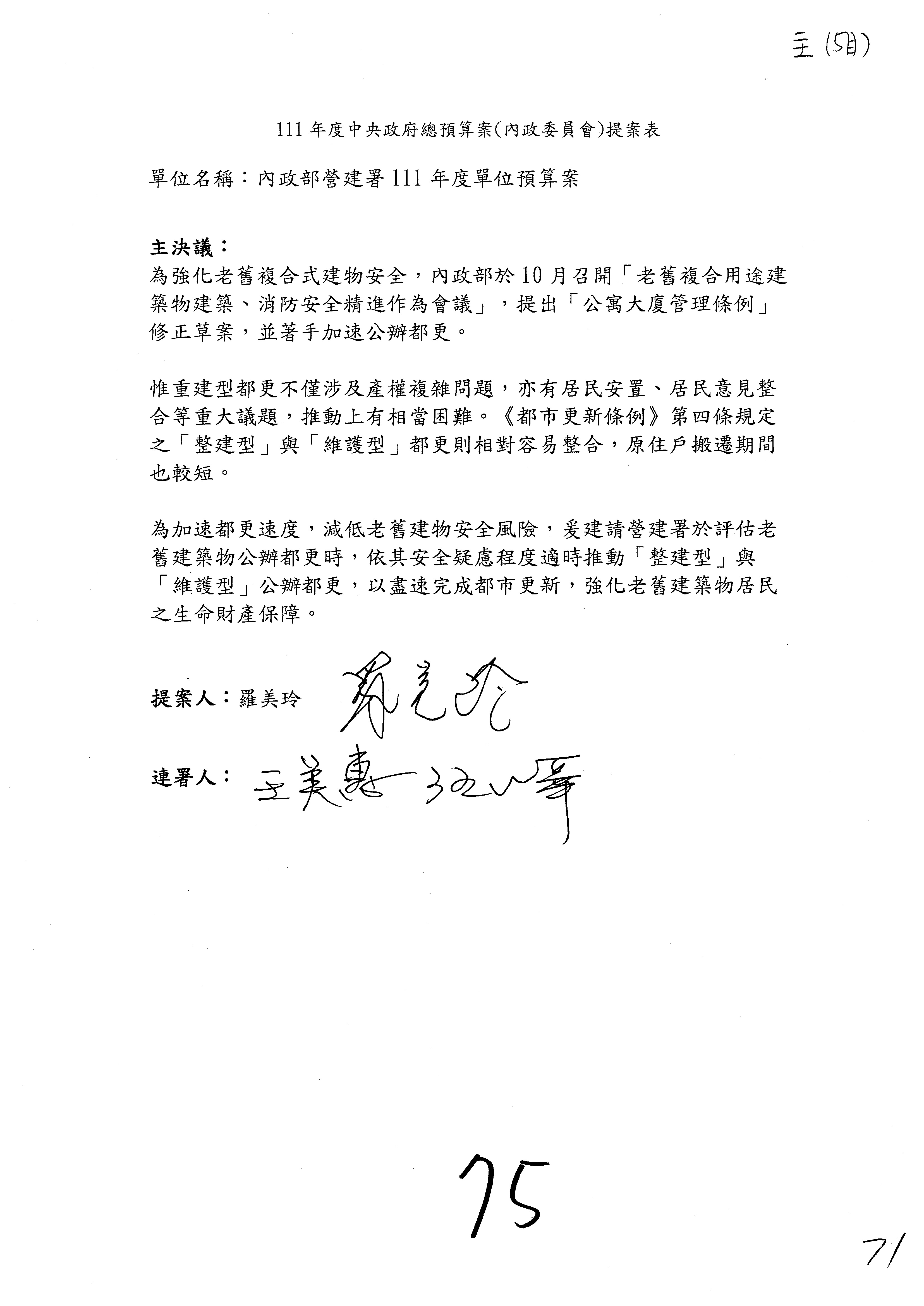 第10目「社會行政業務」,第71案、第72案均改為主決議。