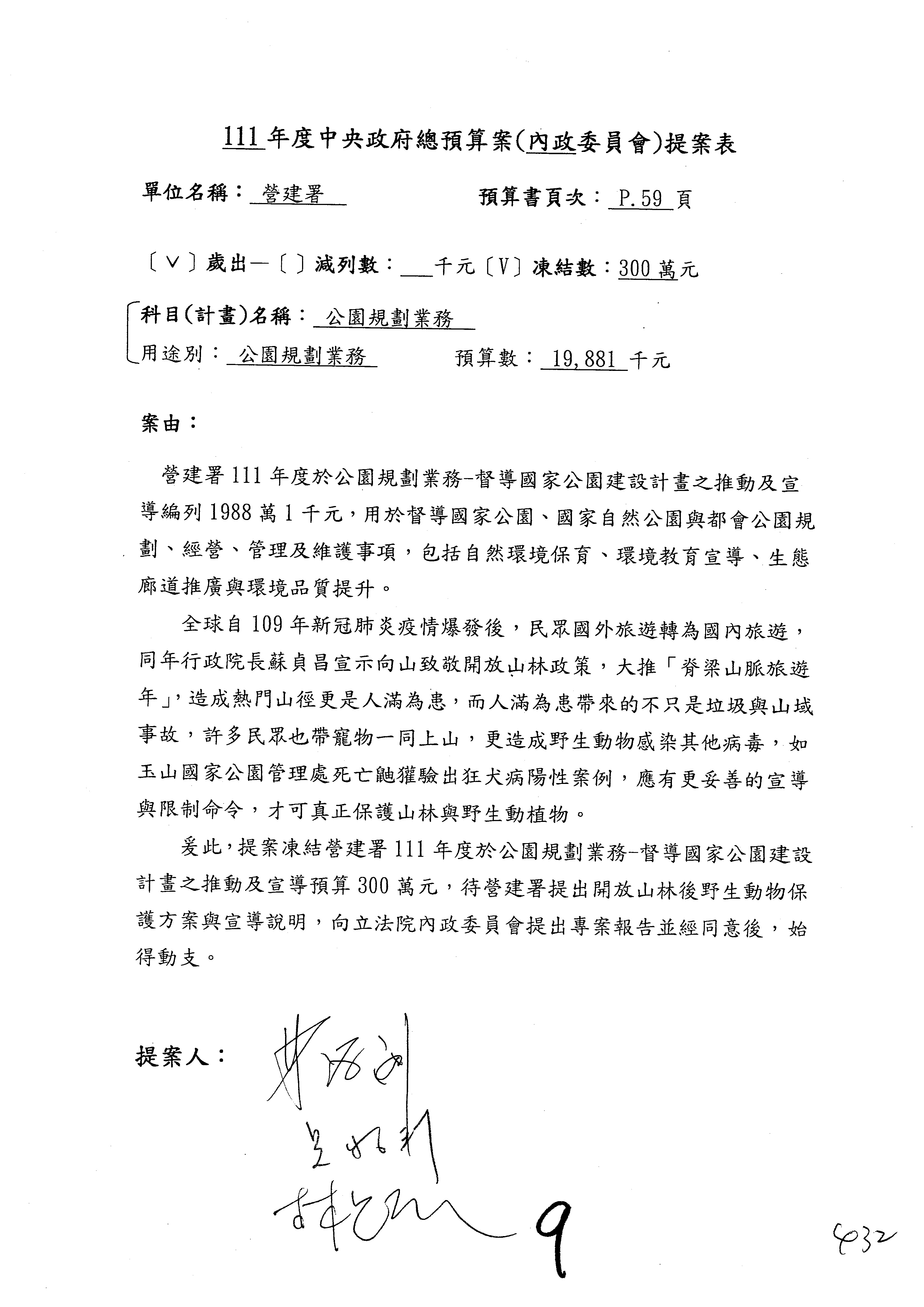 王所長榮進:第8案的部分我們也有跟主席辦公室協調,已經同意免減列,改為凍結300萬元,提書面報告。