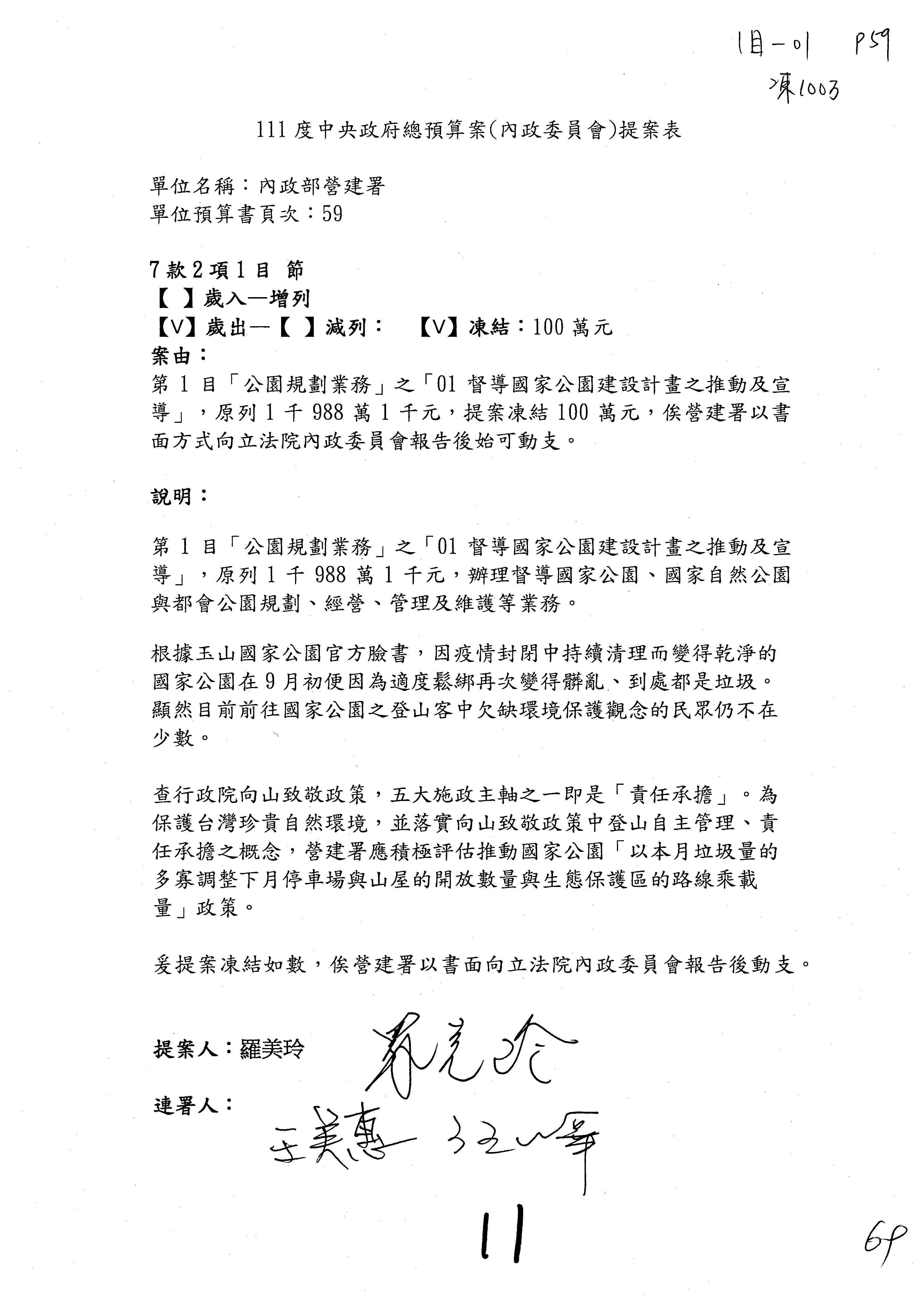 管委員碧玲:如果沒辦法減列,你們可以凍結多少?