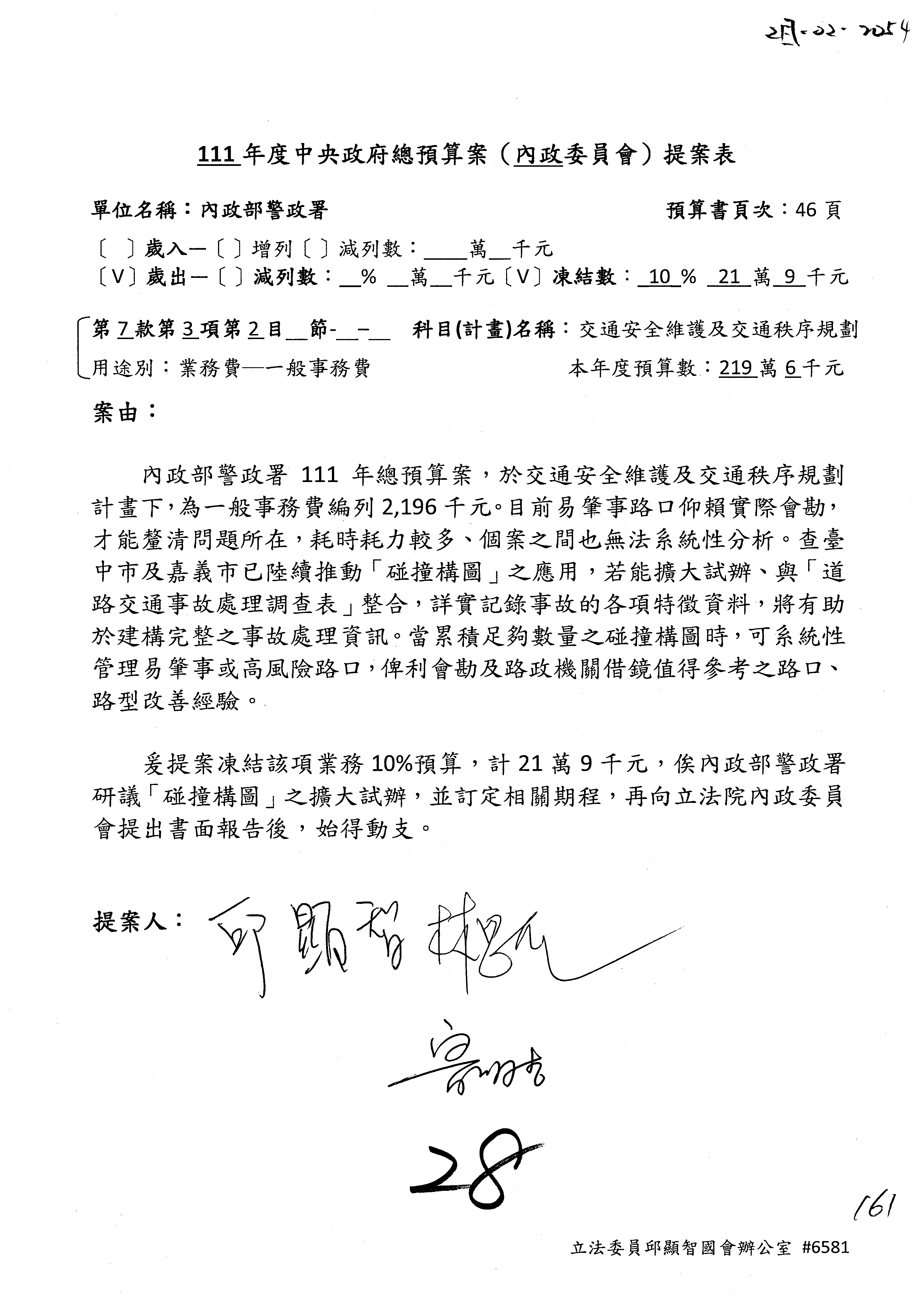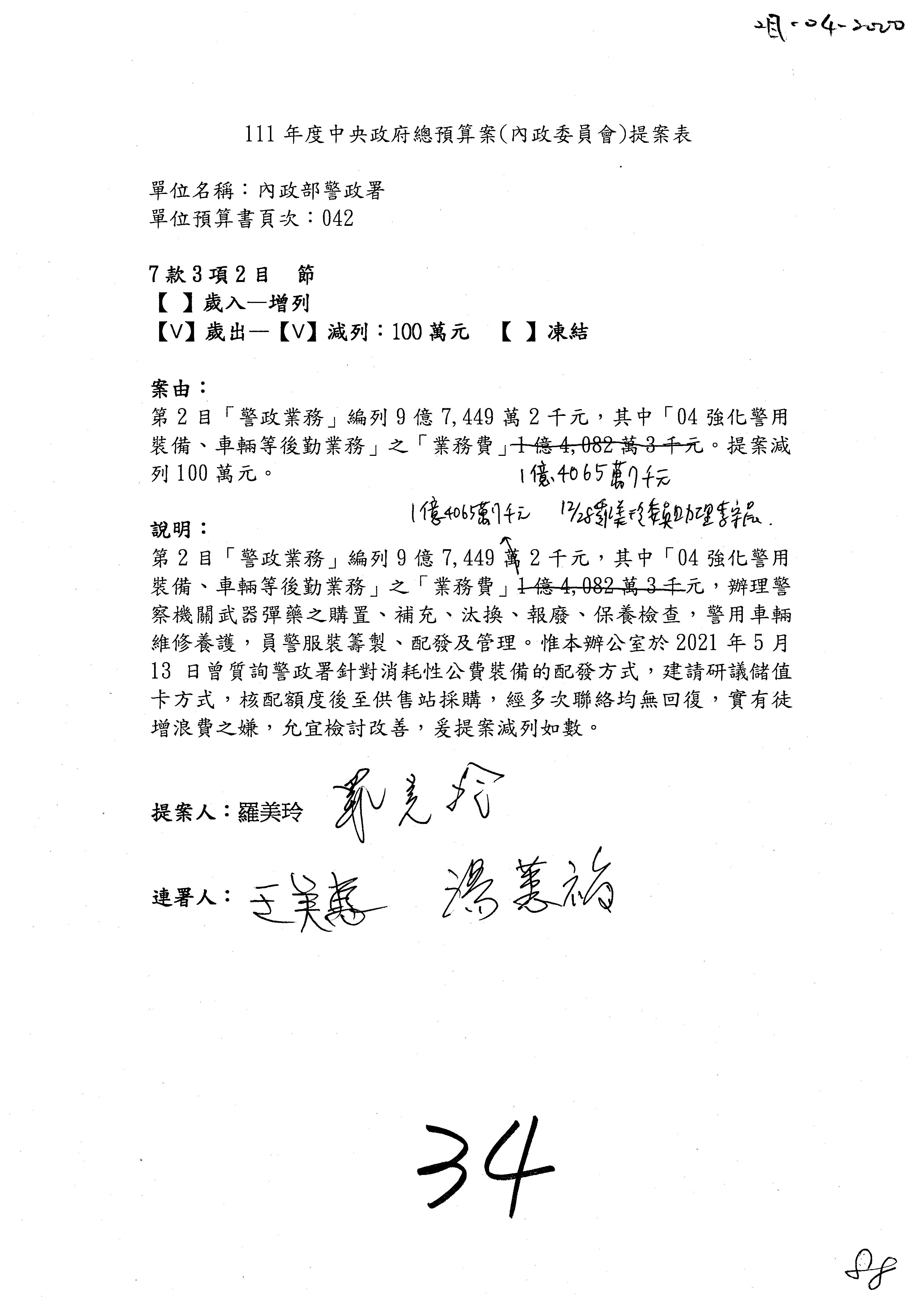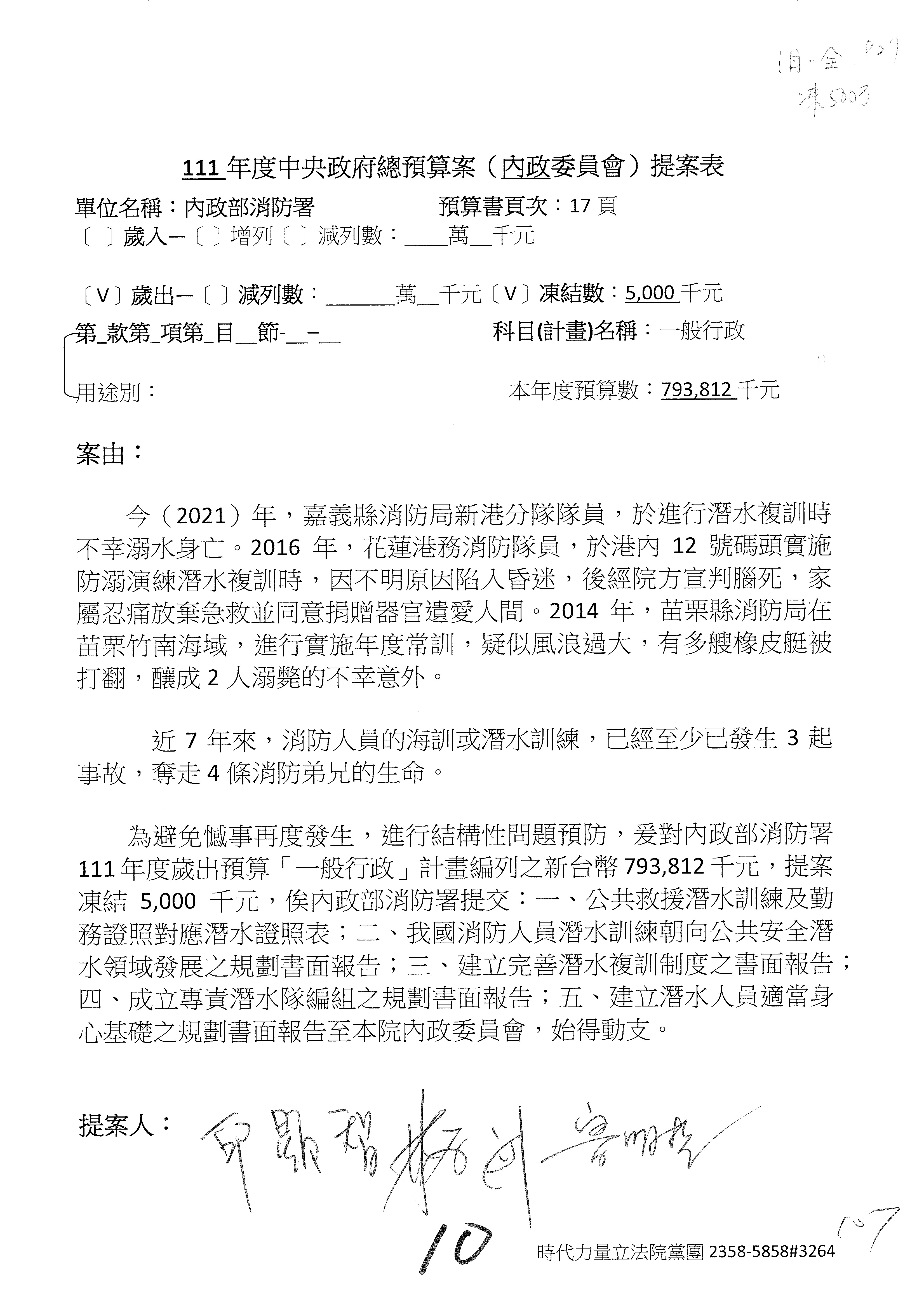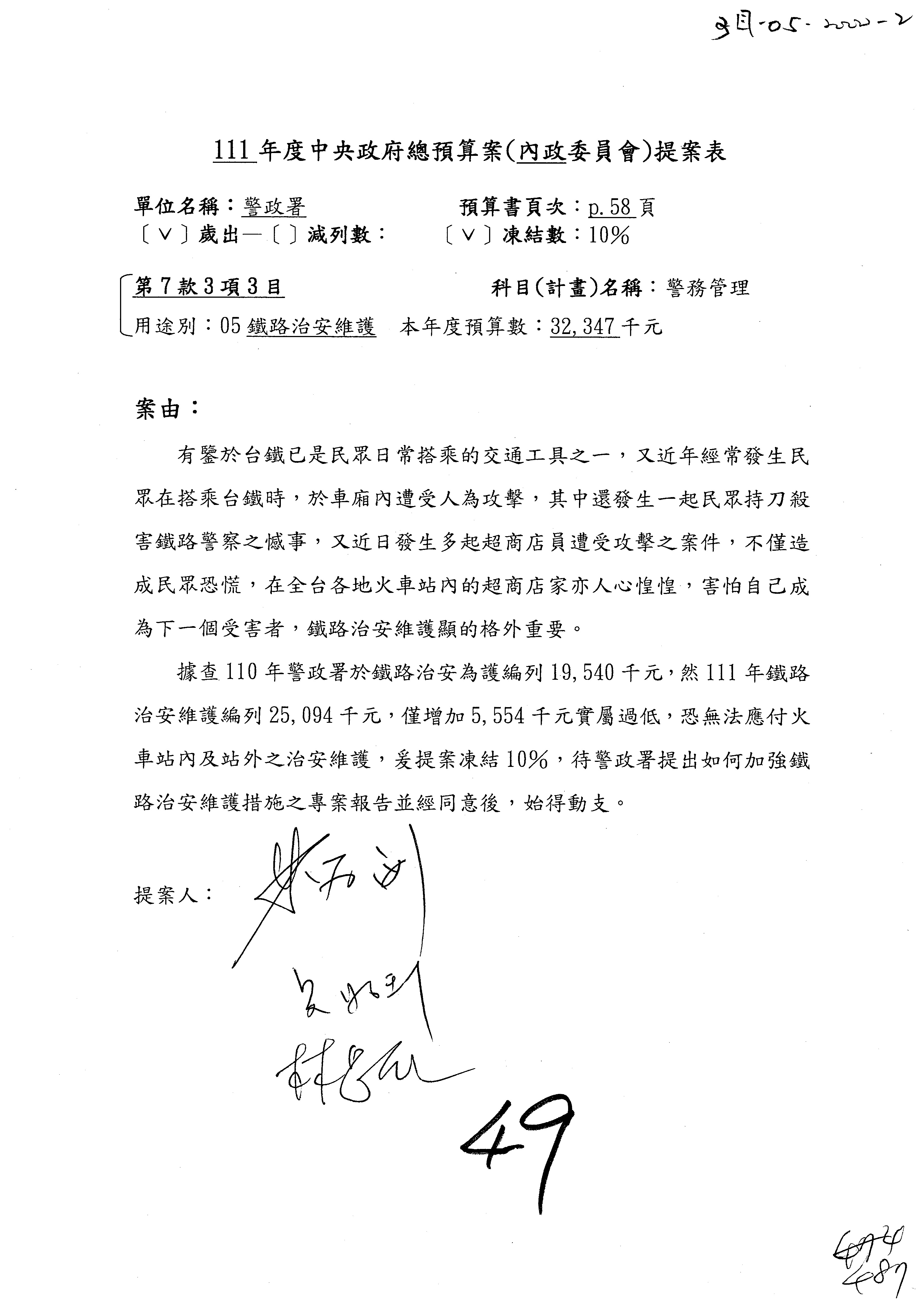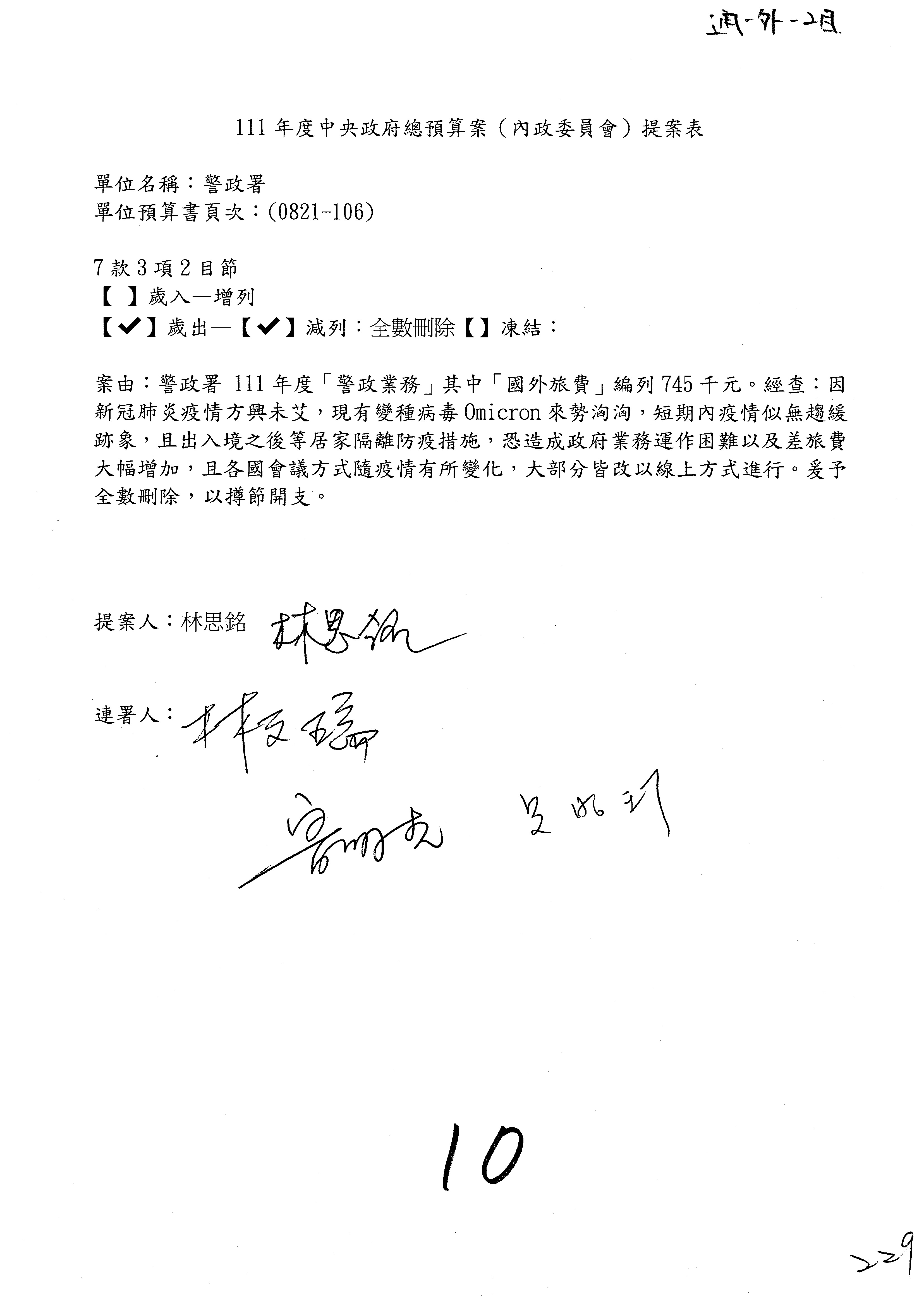 第26案是一樣的科目嗎?不一樣,這是在加強警備應變措施、社會治安維護及國際警察合作之業務費項下,凍結十分之一,OK嗎?要說明嗎?好,請說明。