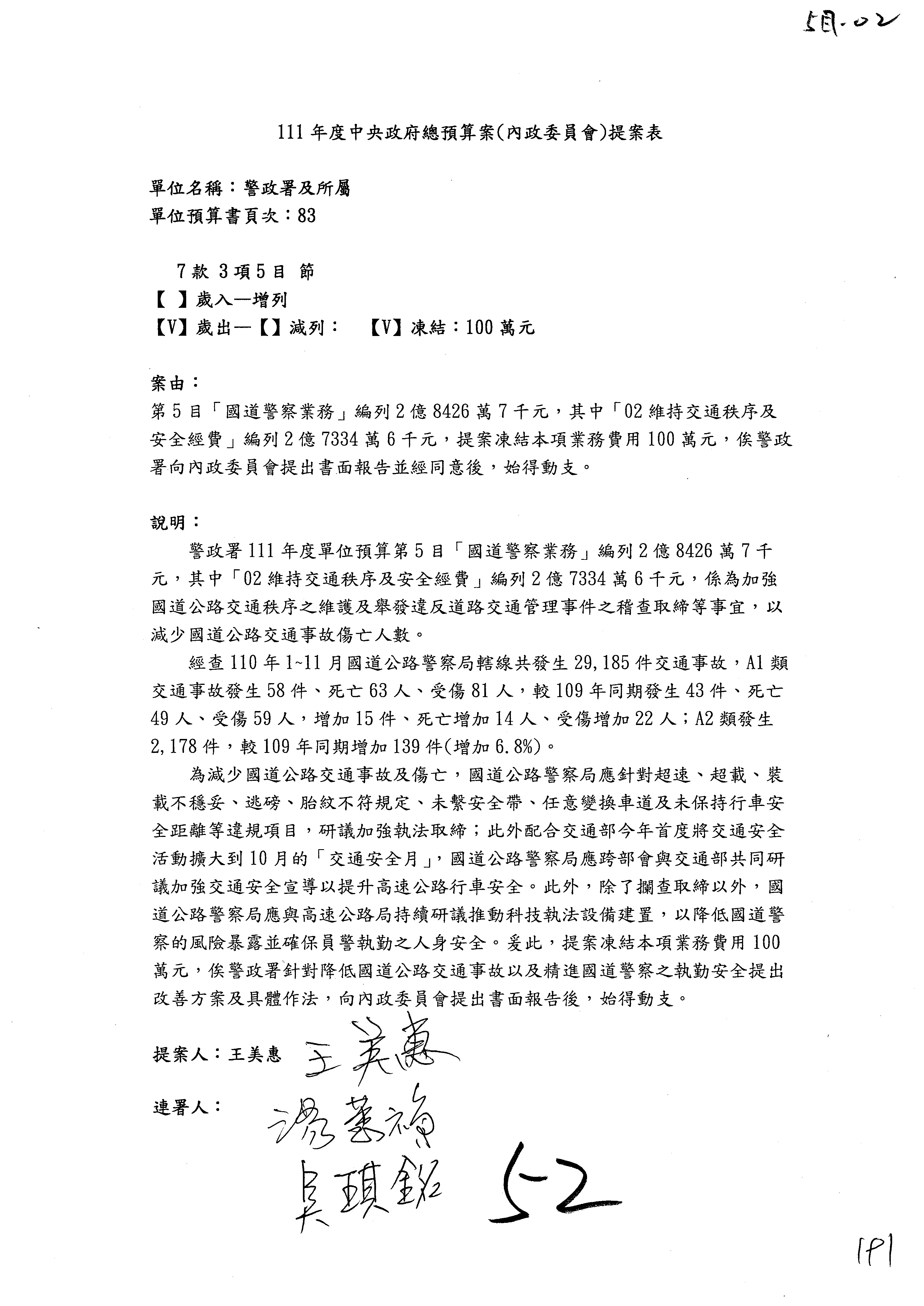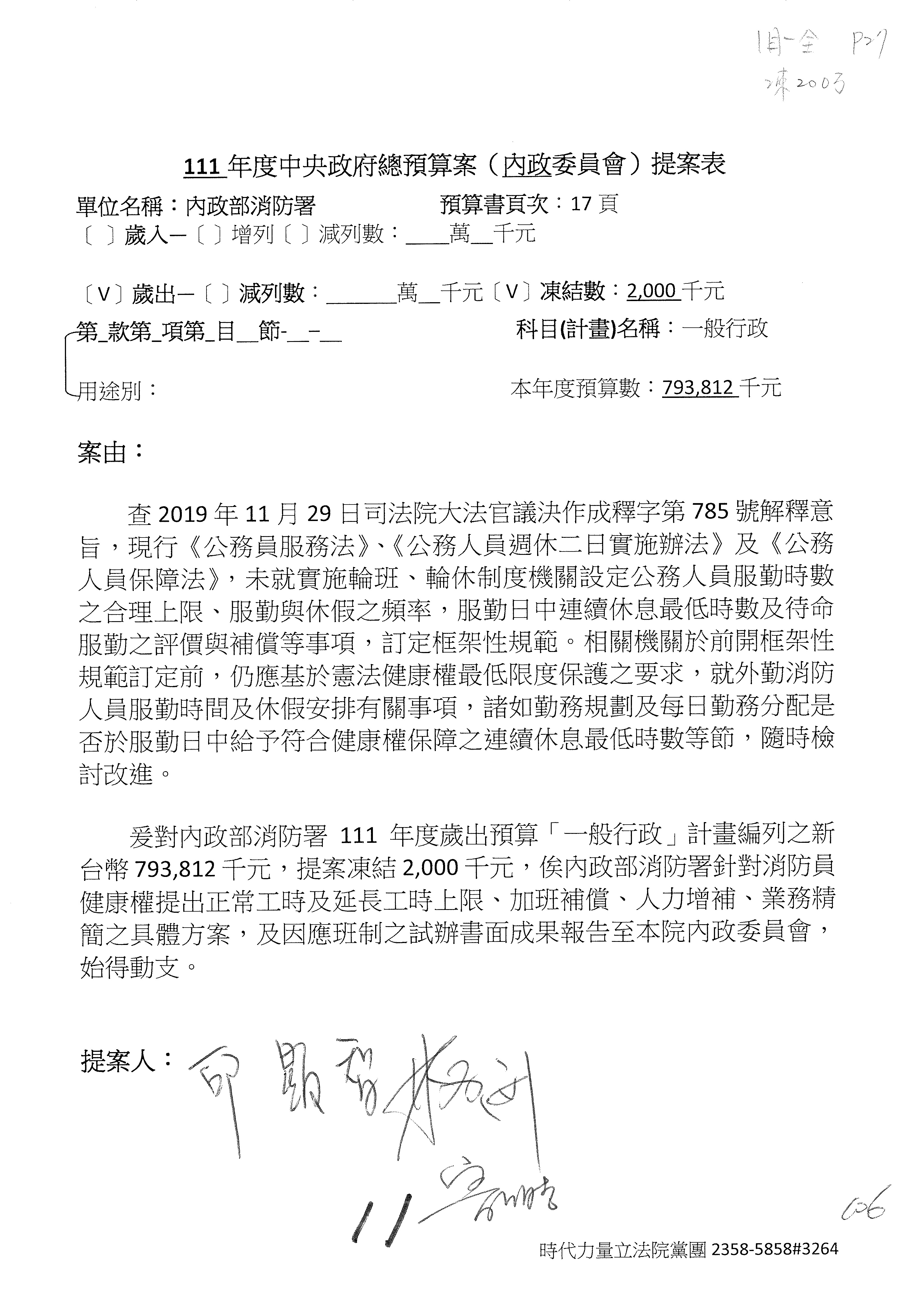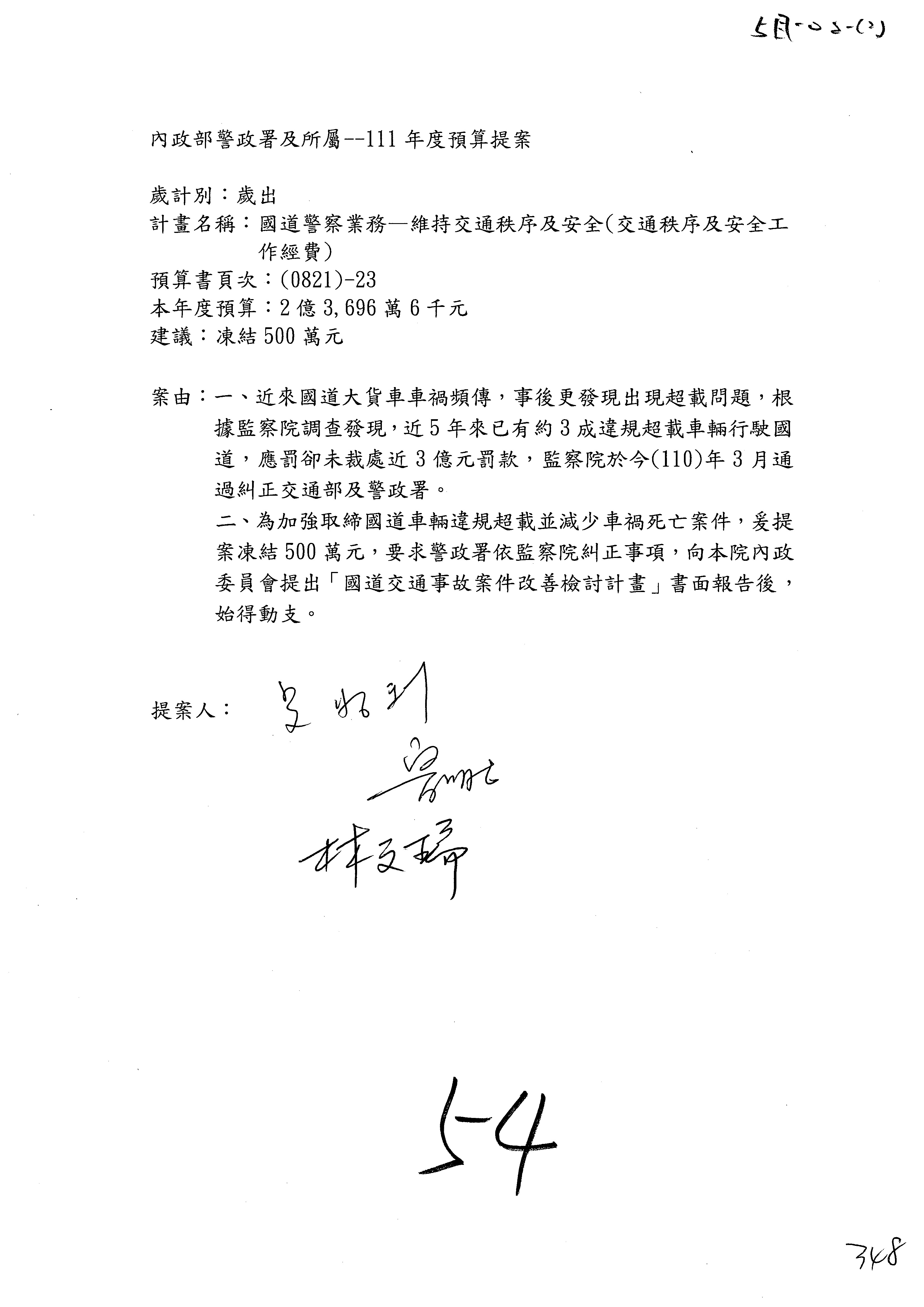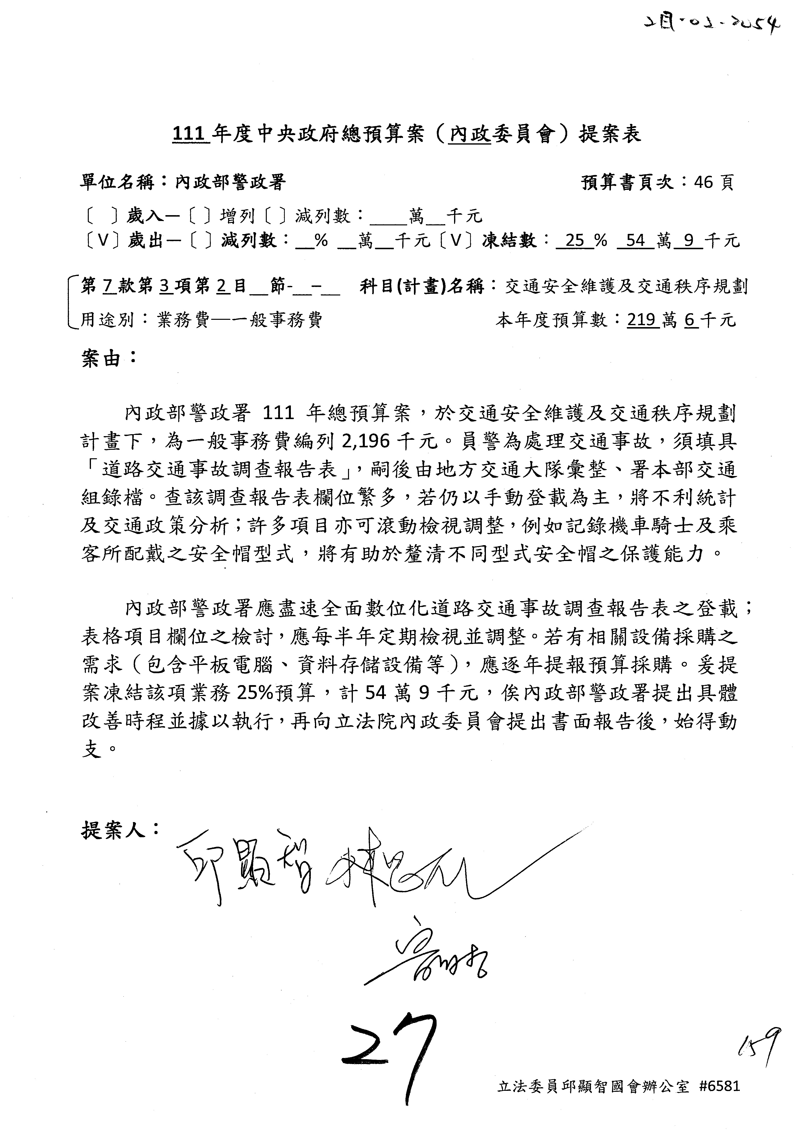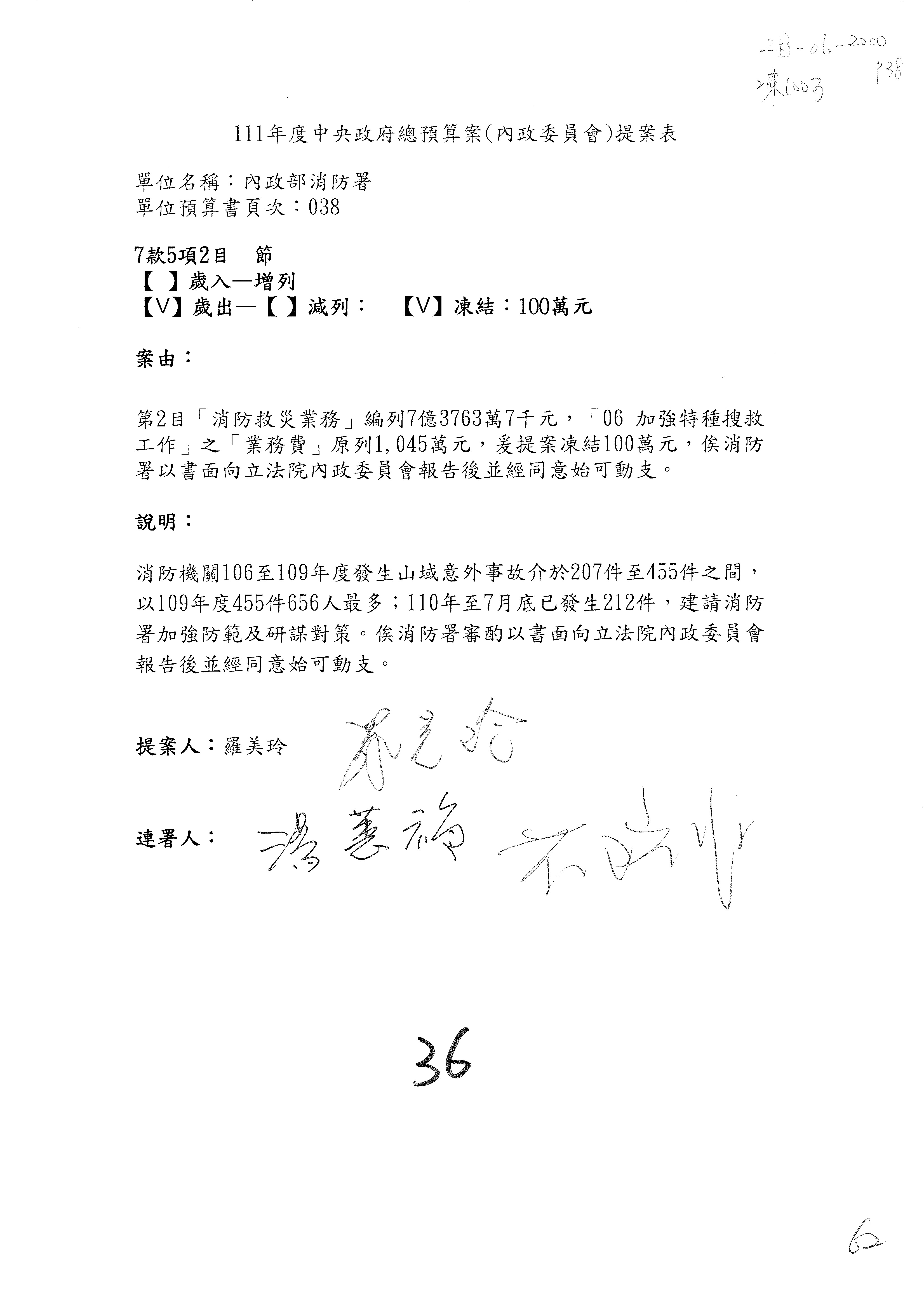 第26案是一樣的科目嗎?不一樣,這是在加強警備應變措施、社會治安維護及國際警察合作之業務費項下,凍結十分之一,OK嗎?要說明嗎?好,請說明。