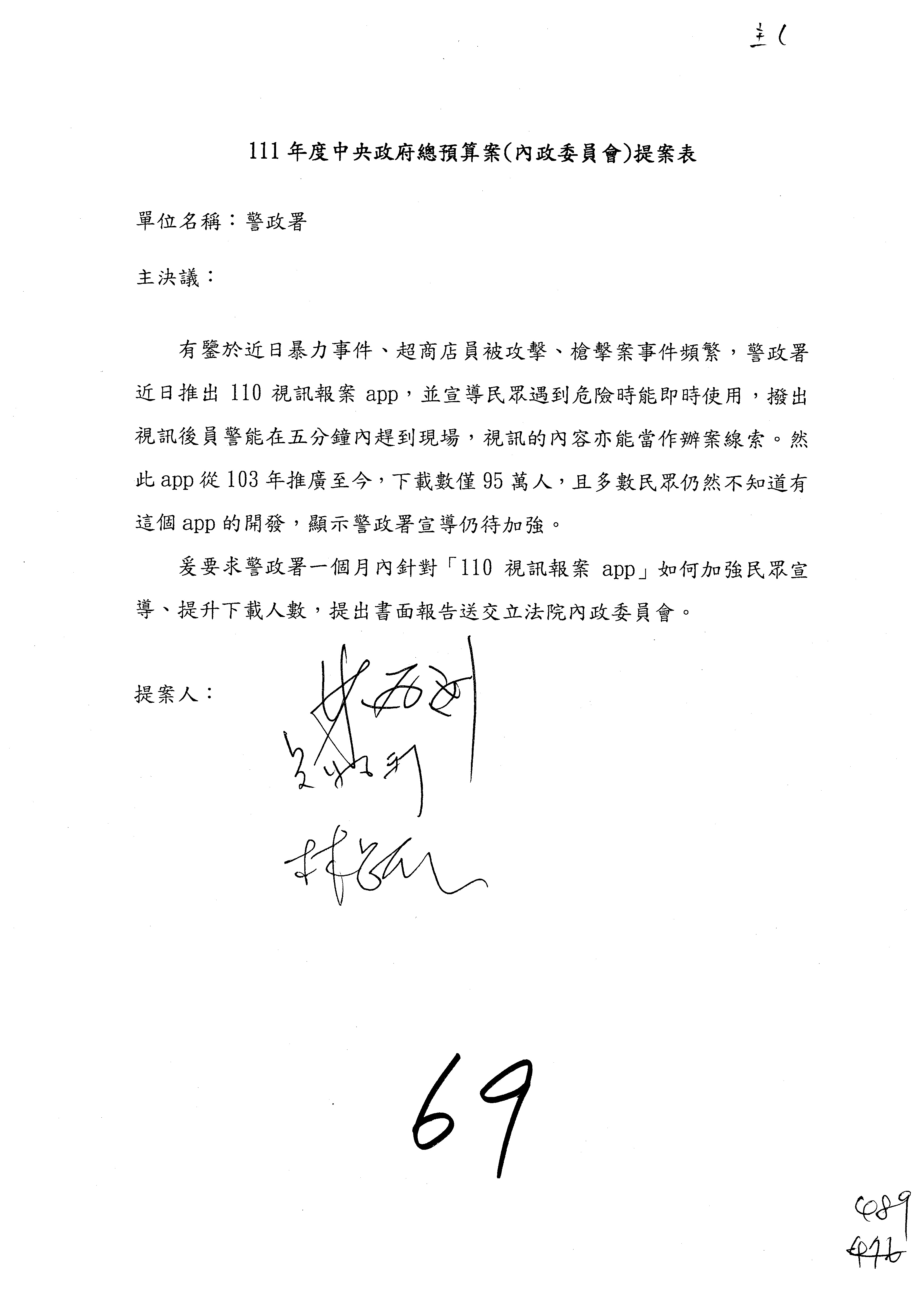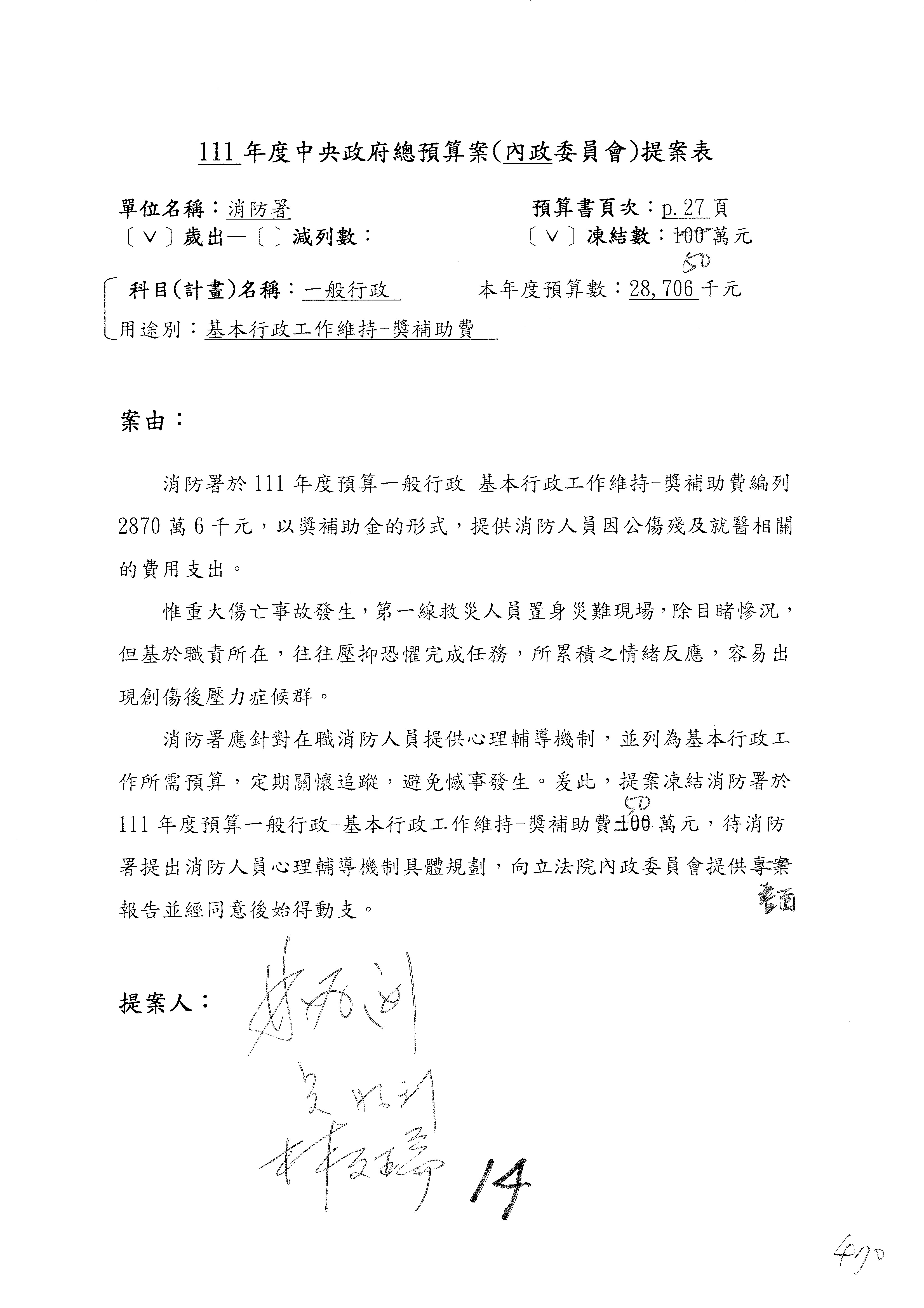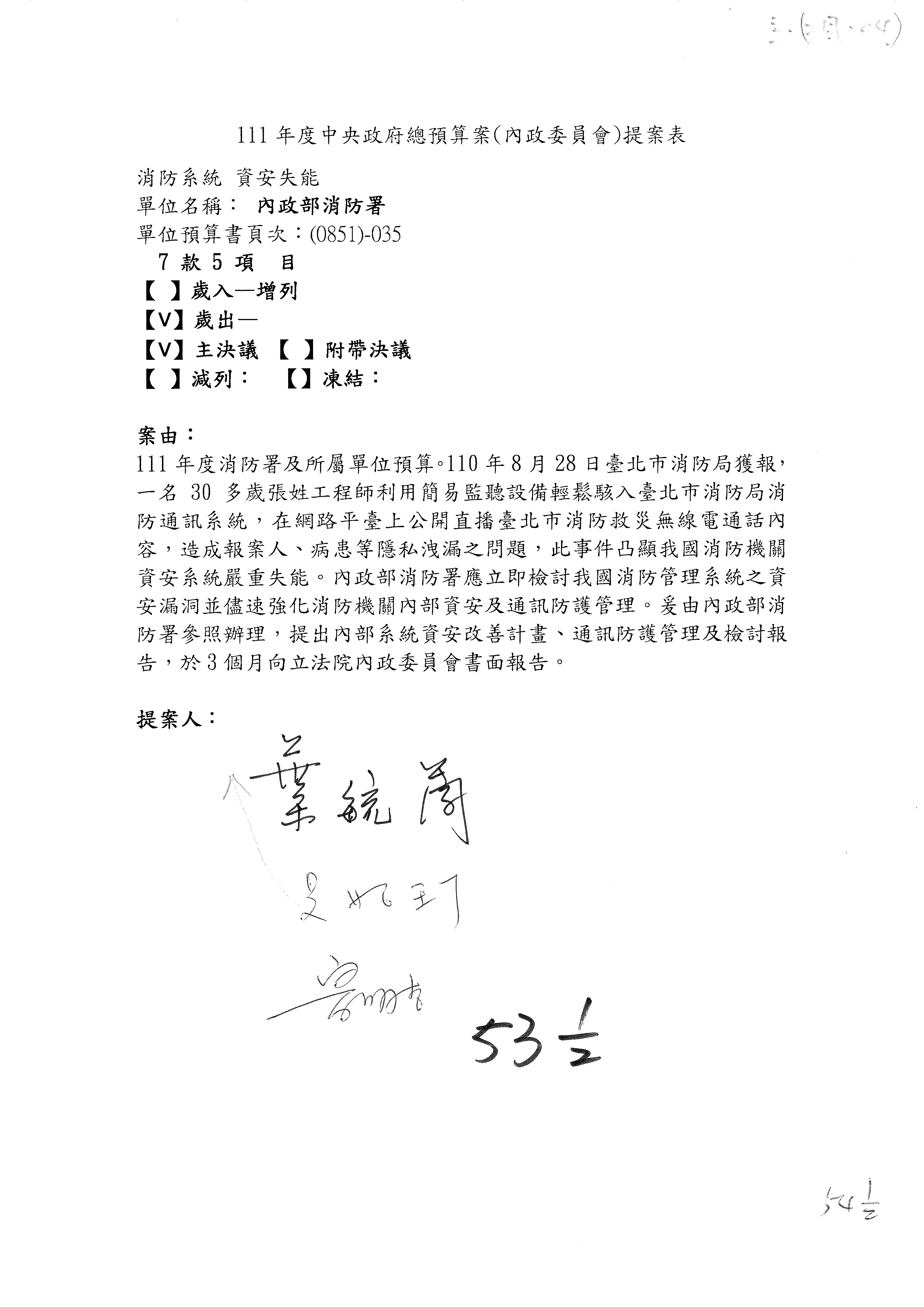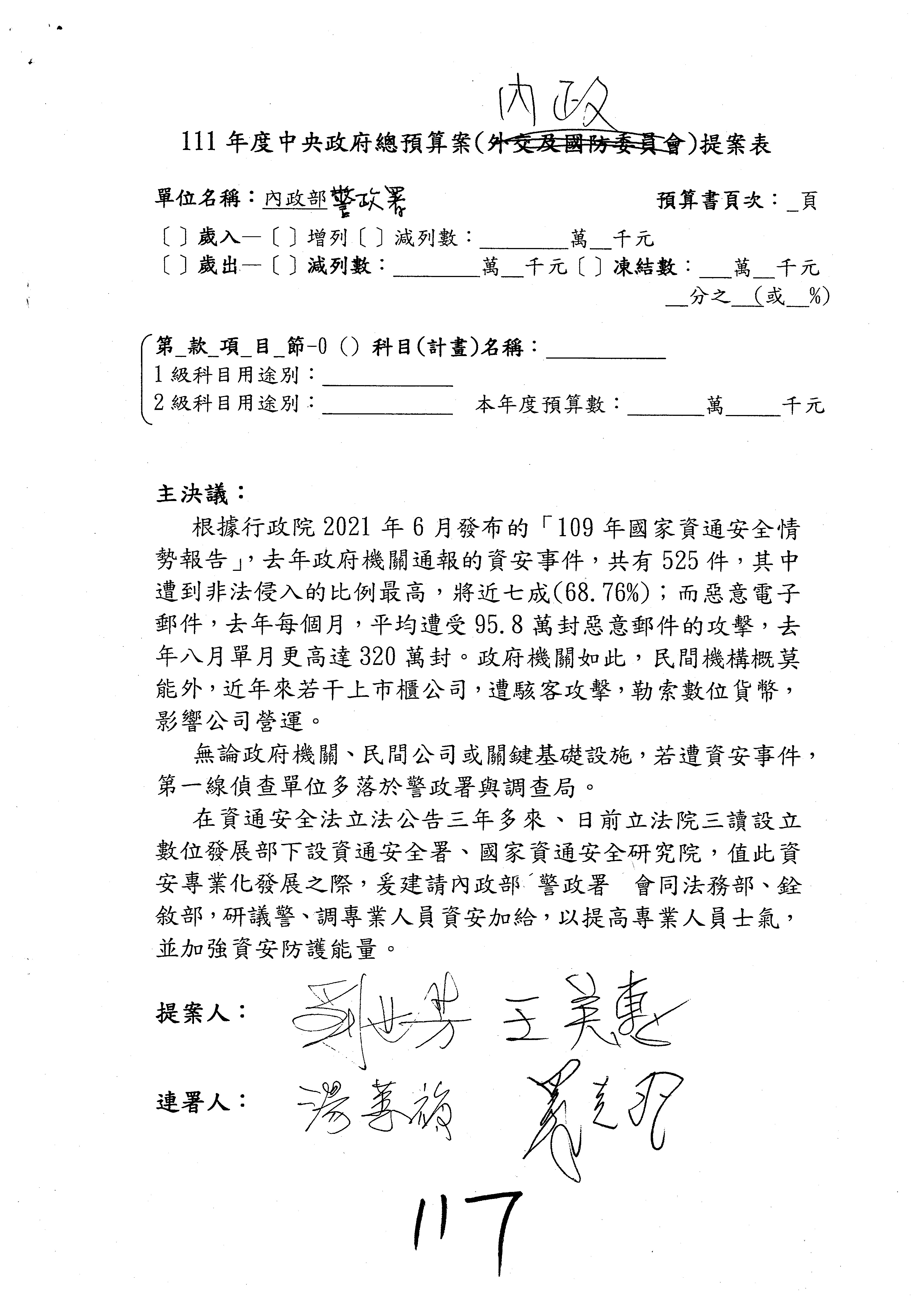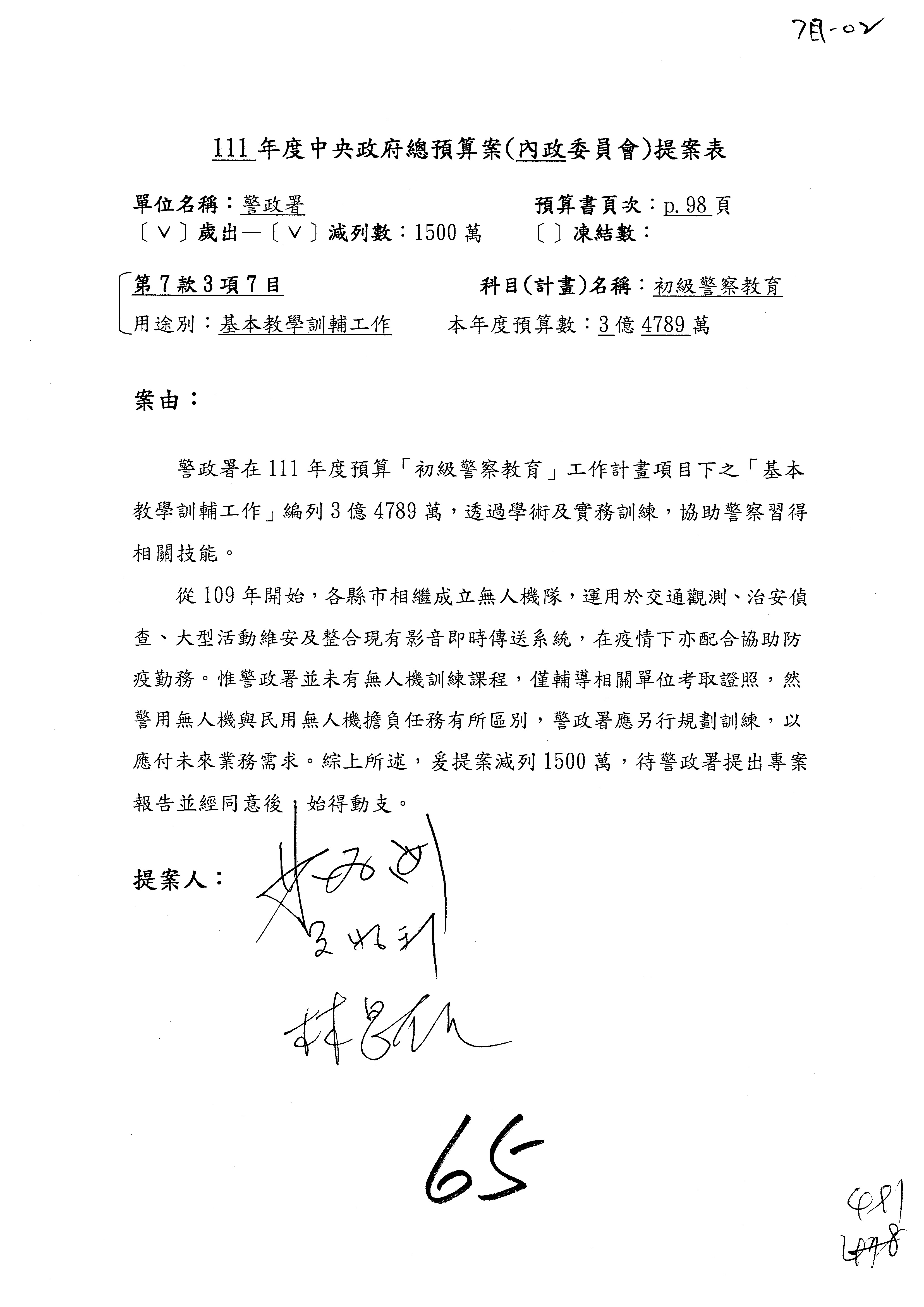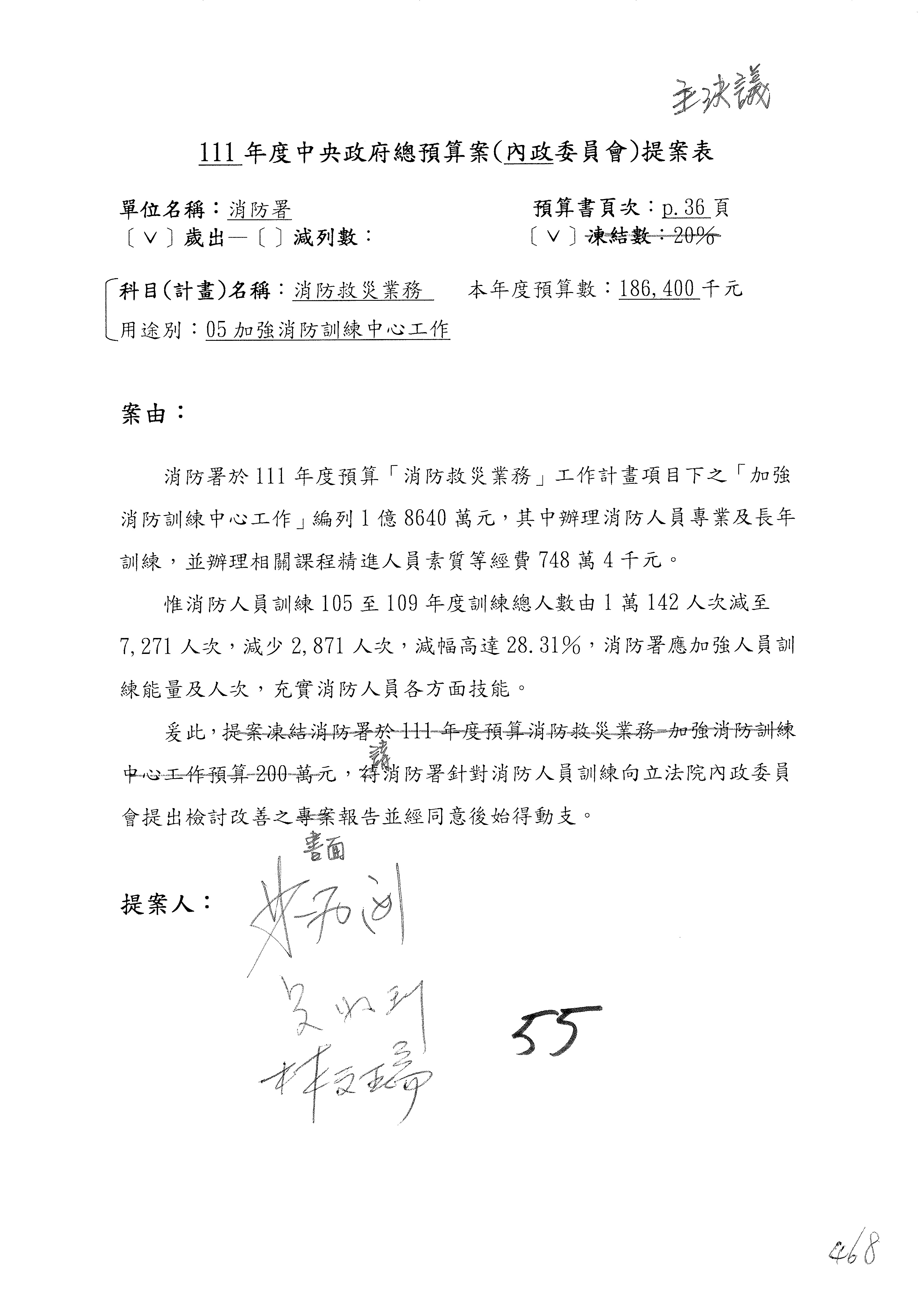 第26案是一樣的科目嗎?不一樣,這是在加強警備應變措施、社會治安維護及國際警察合作之業務費項下,凍結十分之一,OK嗎?要說明嗎?好,請說明。