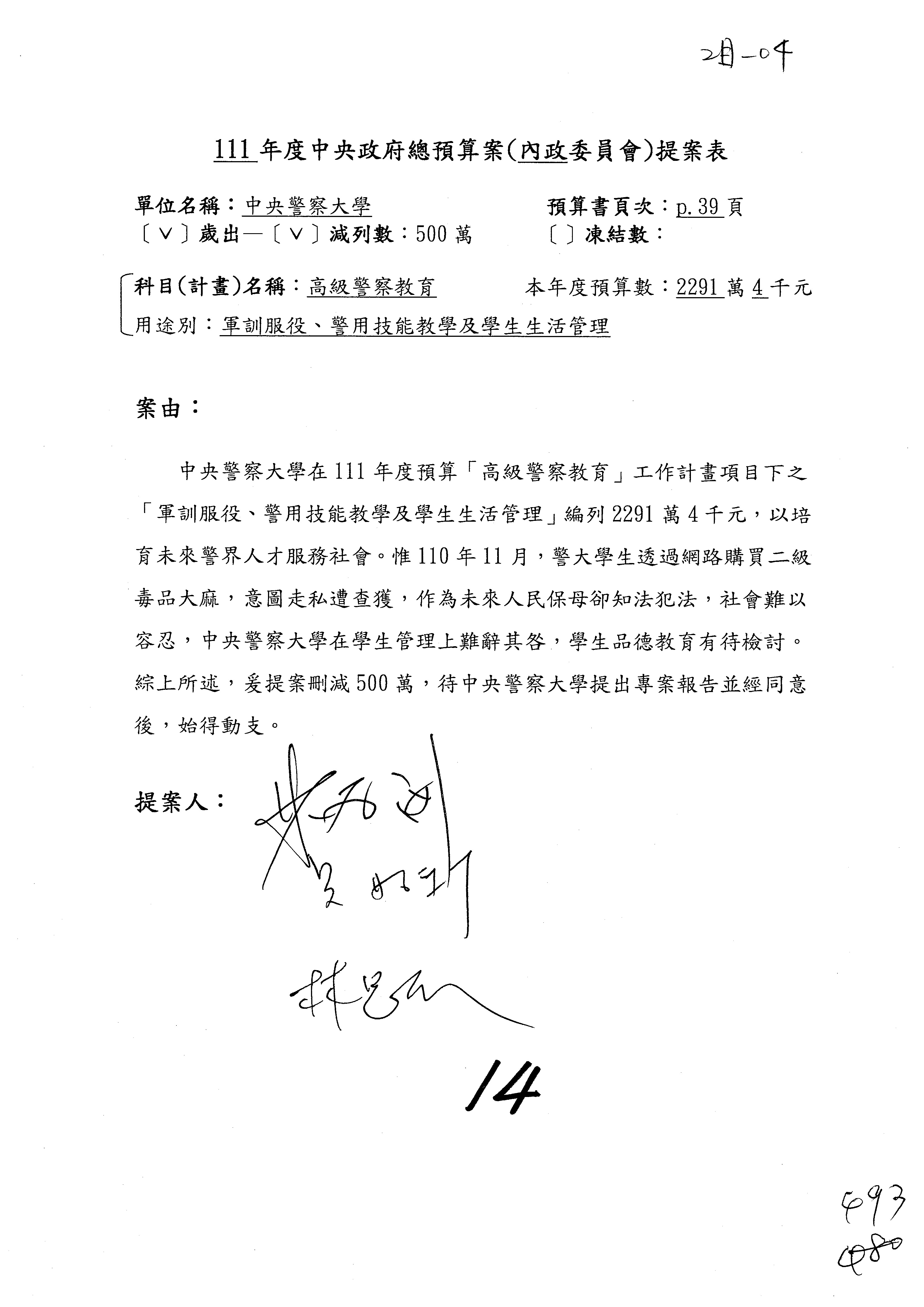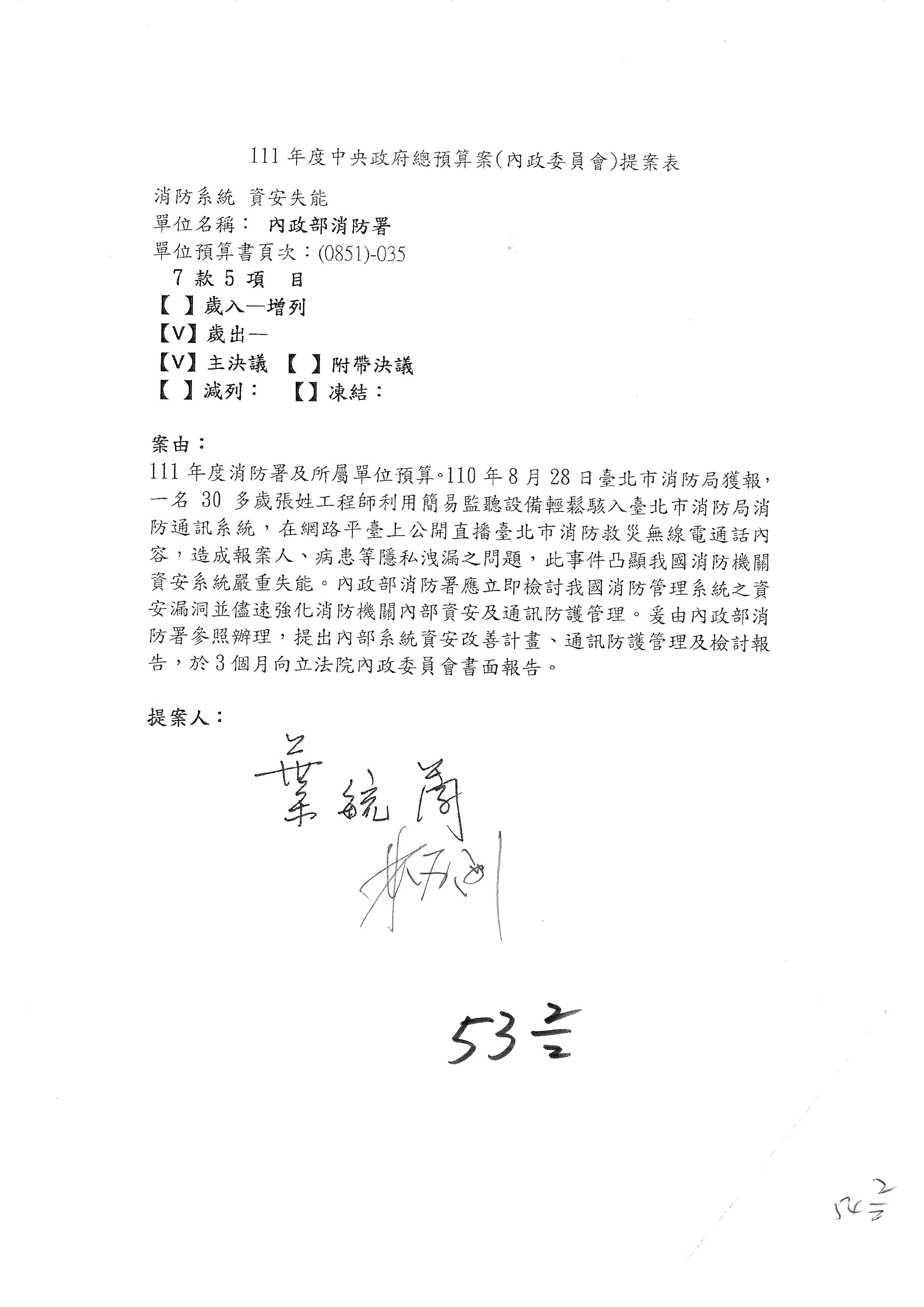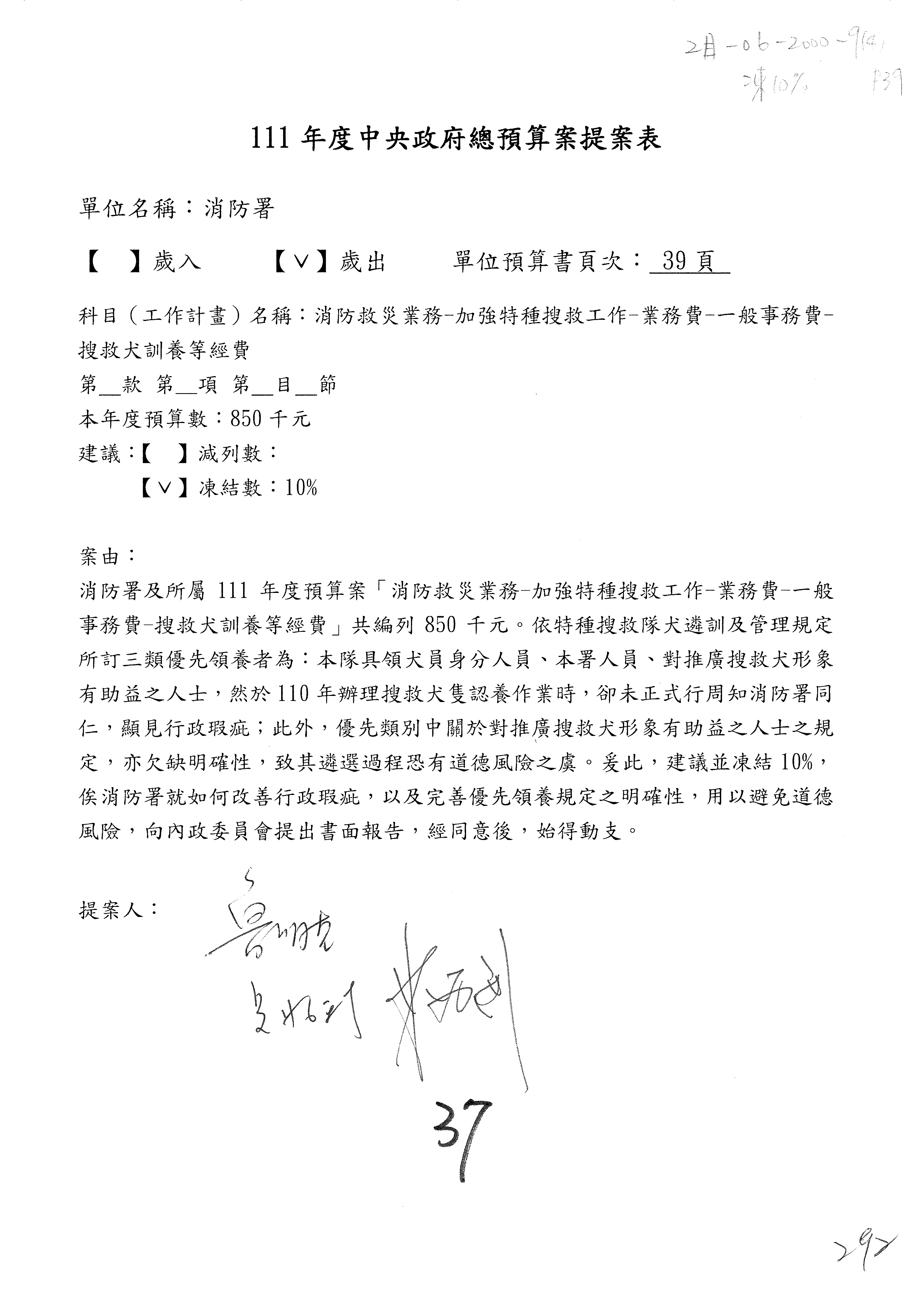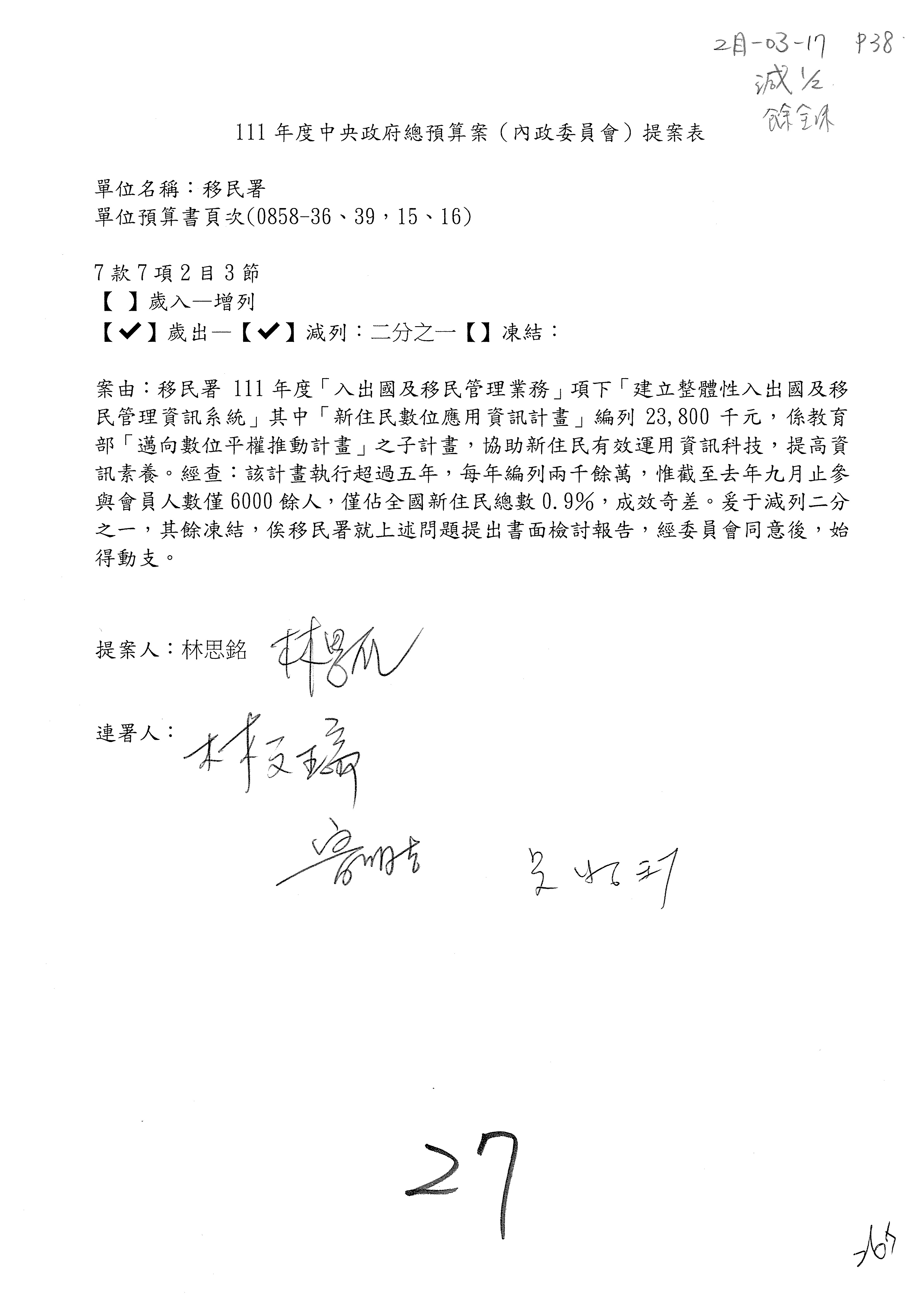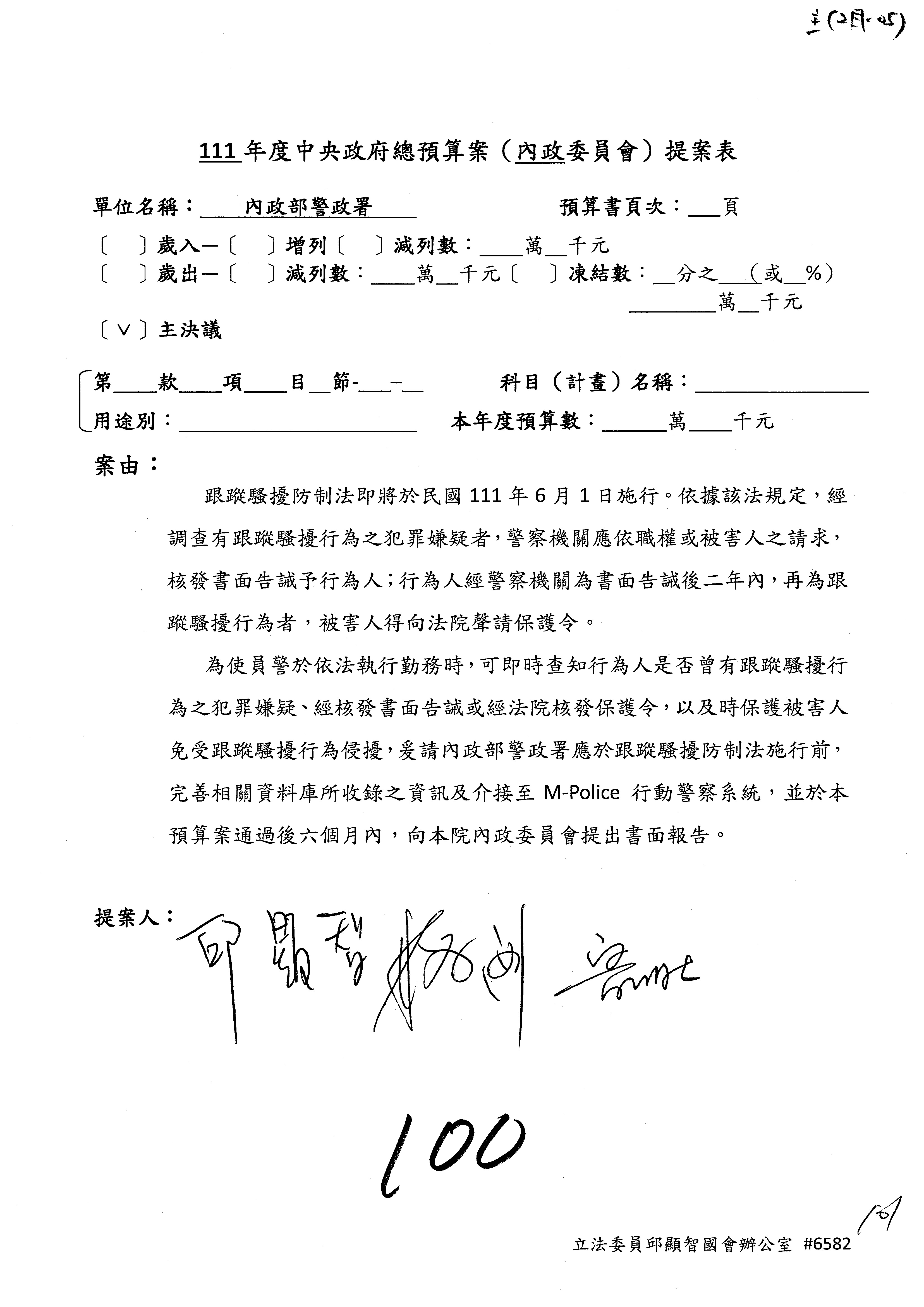 第26案是一樣的科目嗎?不一樣,這是在加強警備應變措施、社會治安維護及國際警察合作之業務費項下,凍結十分之一,OK嗎?要說明嗎?好,請說明。