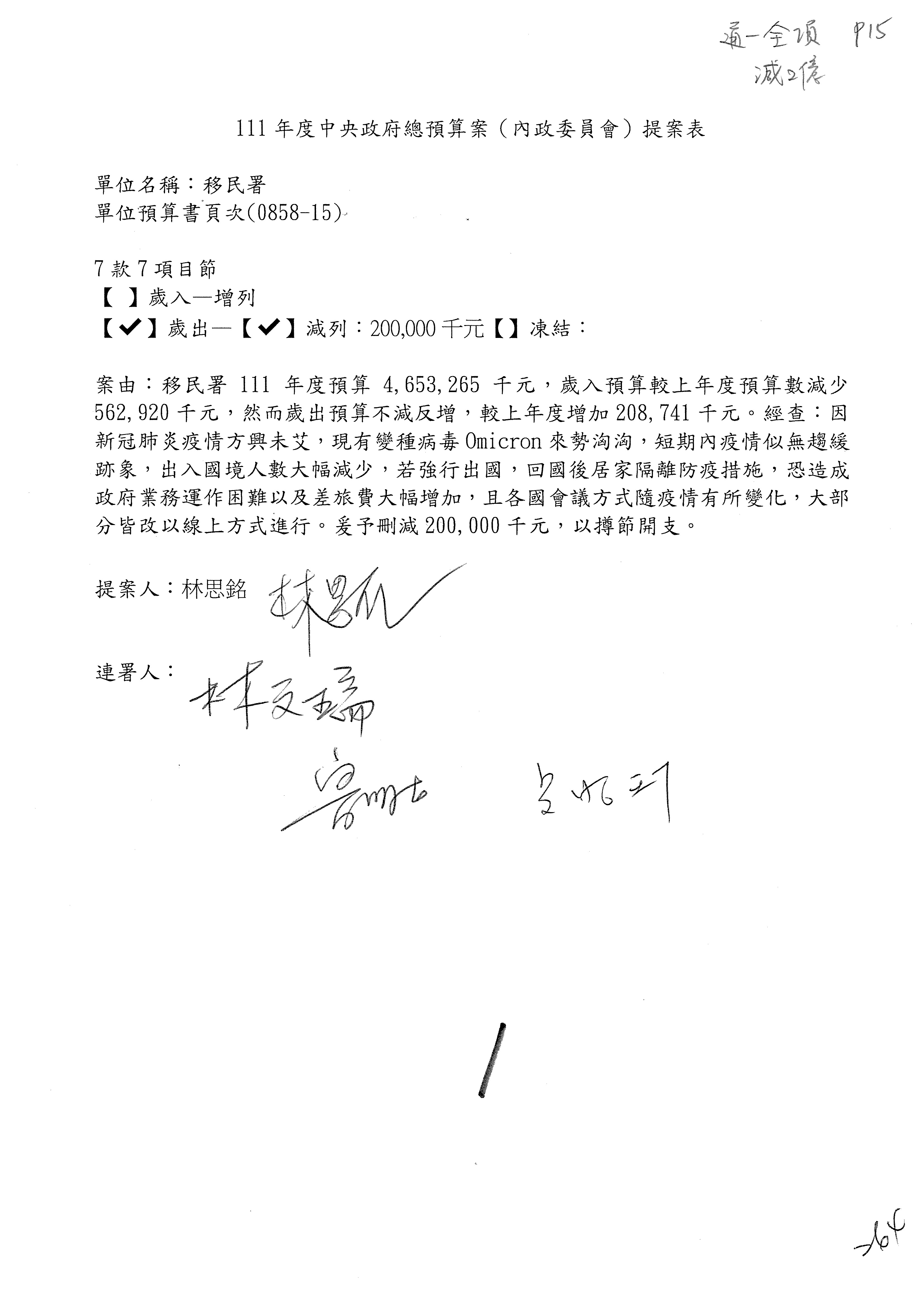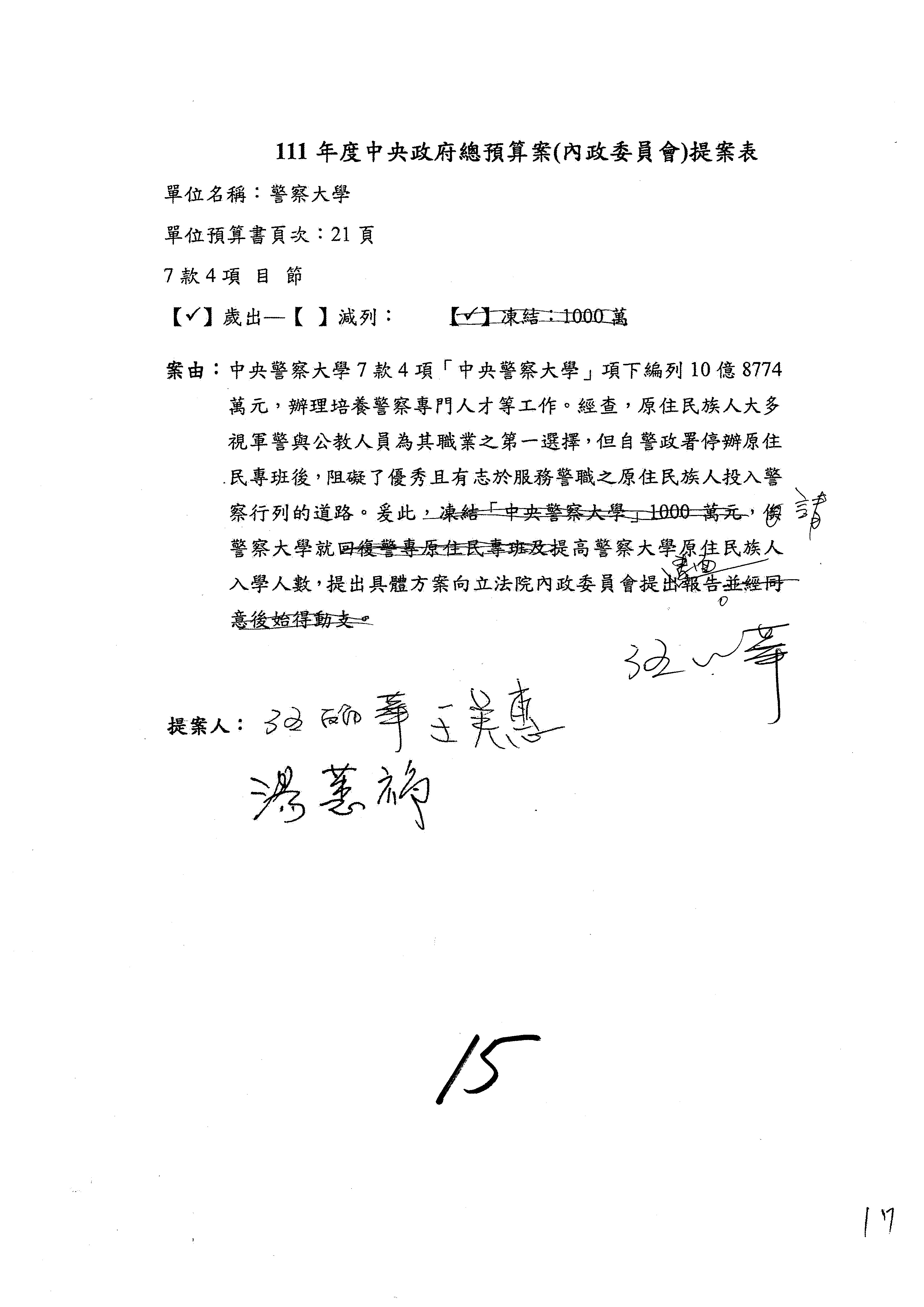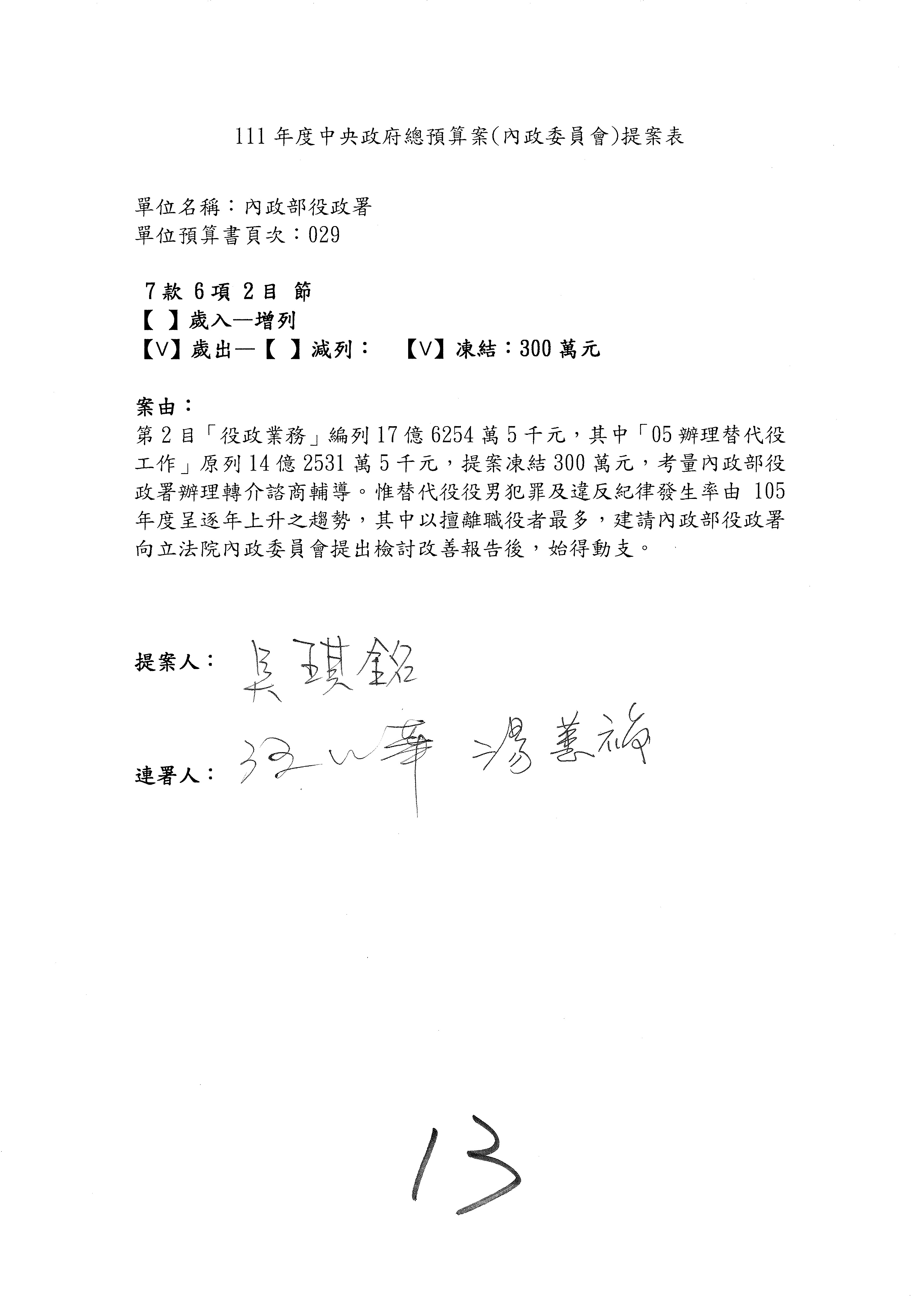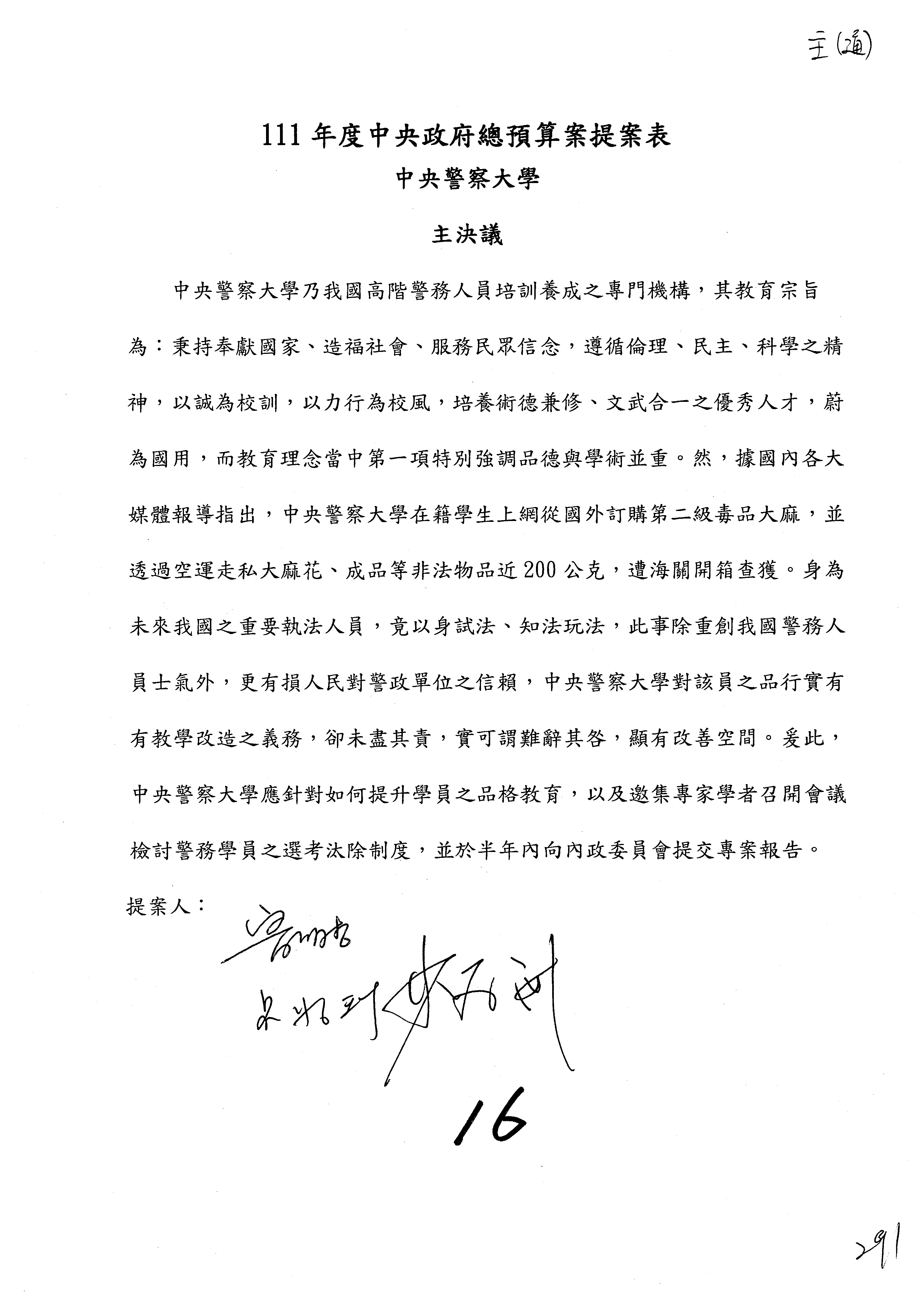 主席:這個是張宏陸委員的建議,然後還有其他的委員提減列的,已經改成主決議,其中第10案改成主決議。另外有撤案的,本席先宣告一下,第13案,撤案;第15案、第16案,撤案;吳琪銘委員有提減列,所以這個……