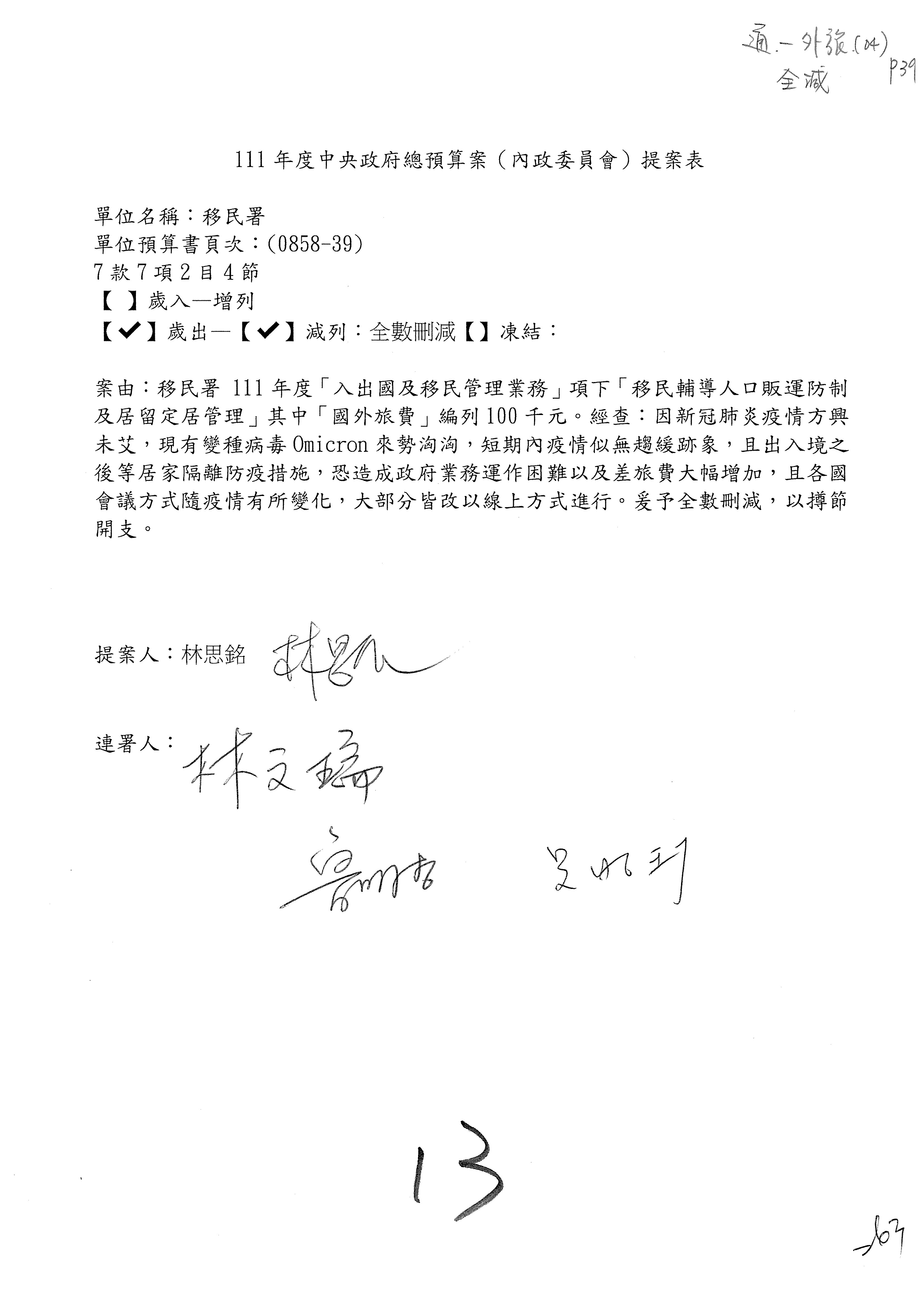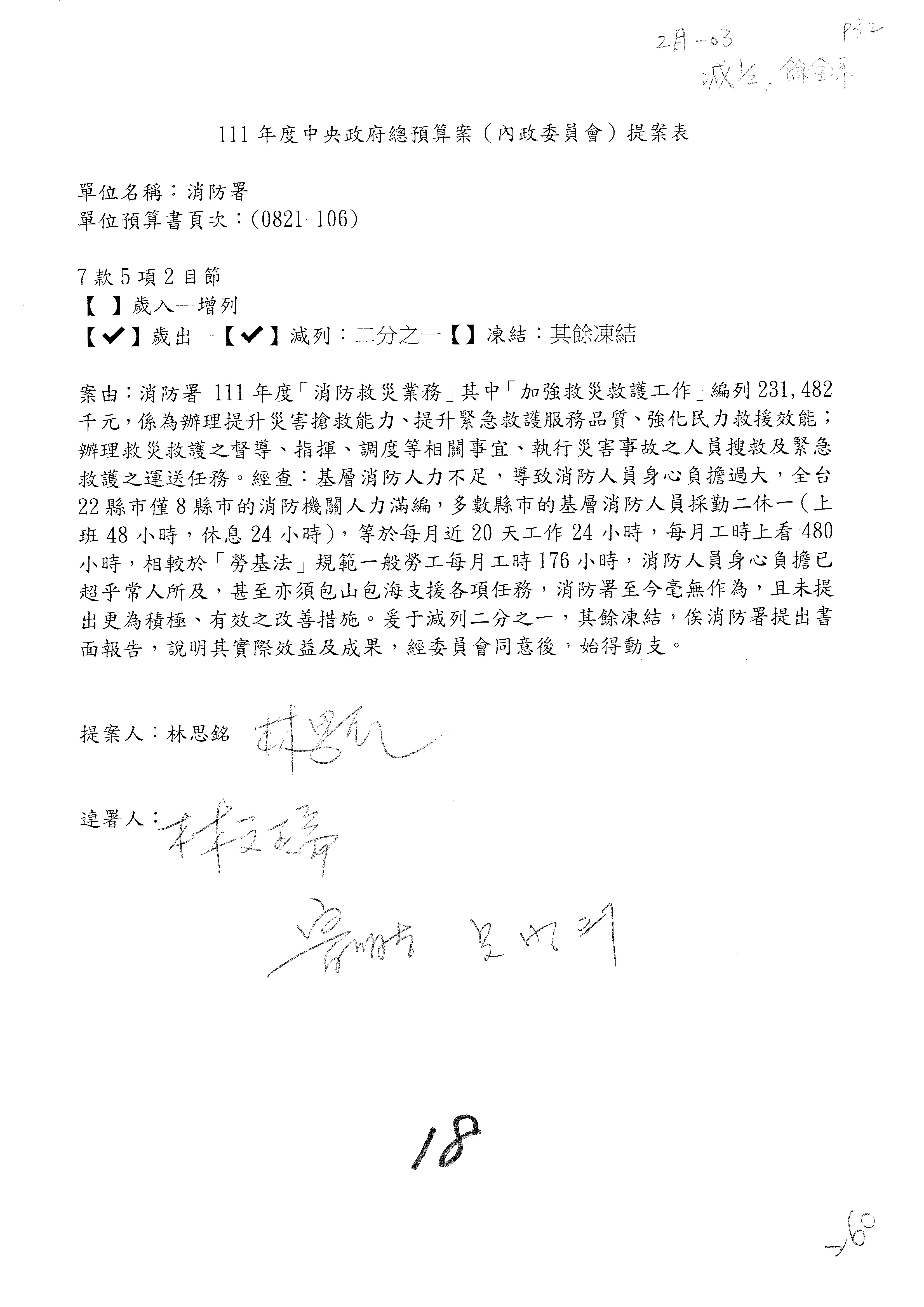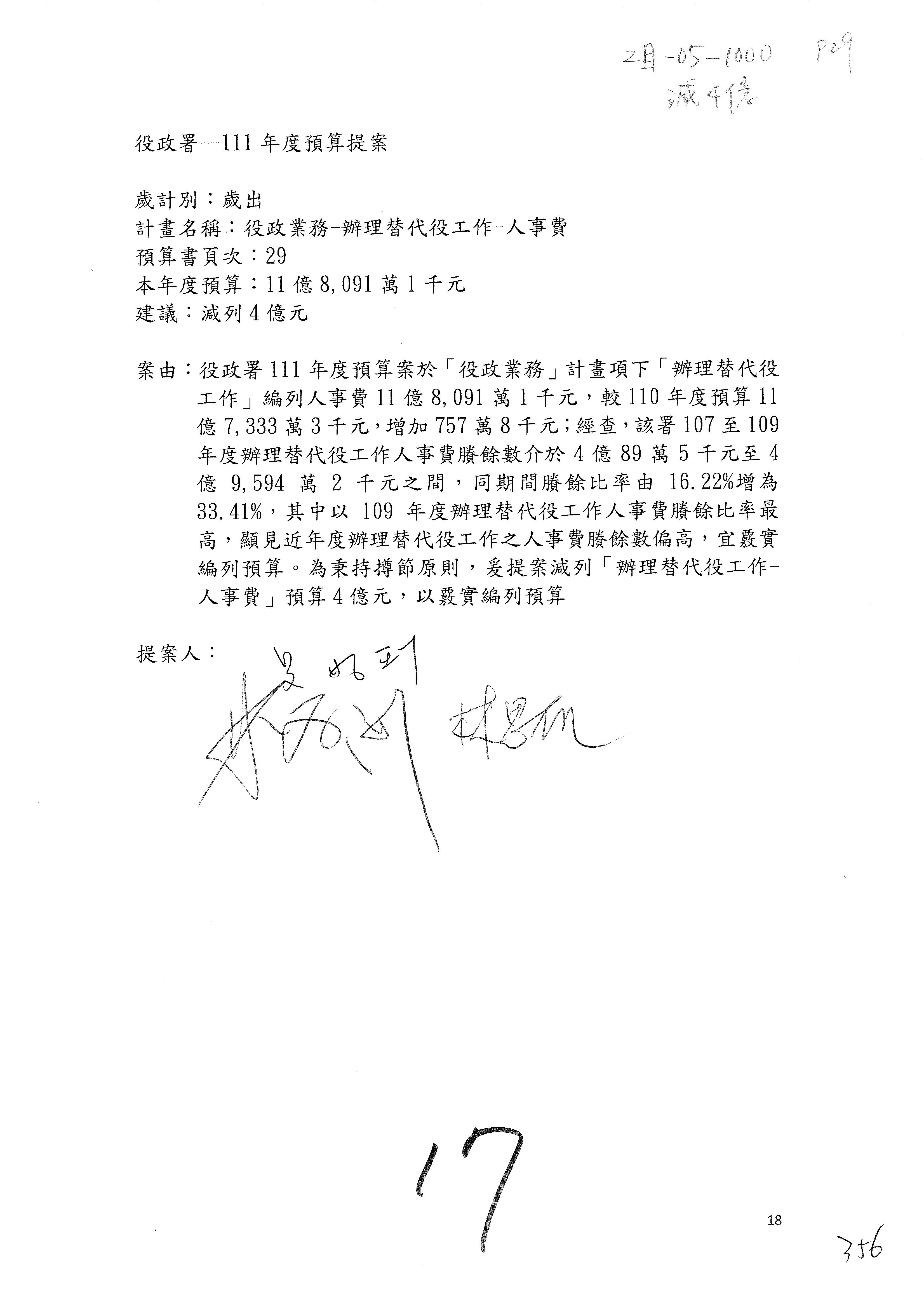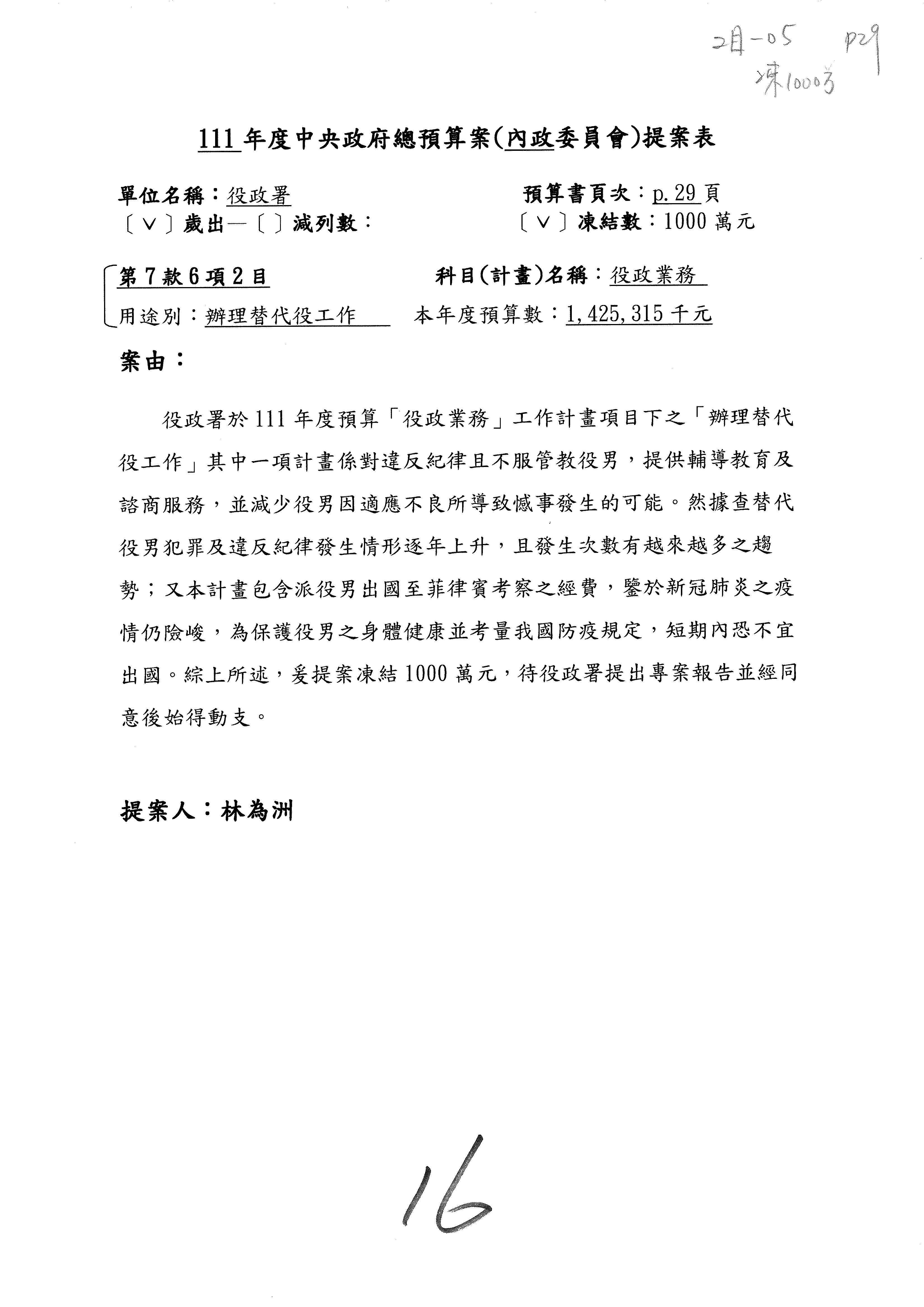 主席:這個是張宏陸委員的建議,然後還有其他的委員提減列的,已經改成主決議,其中第10案改成主決議。另外有撤案的,本席先宣告一下,第13案,撤案;第15案、第16案,撤案;吳琪銘委員有提減列,所以這個……