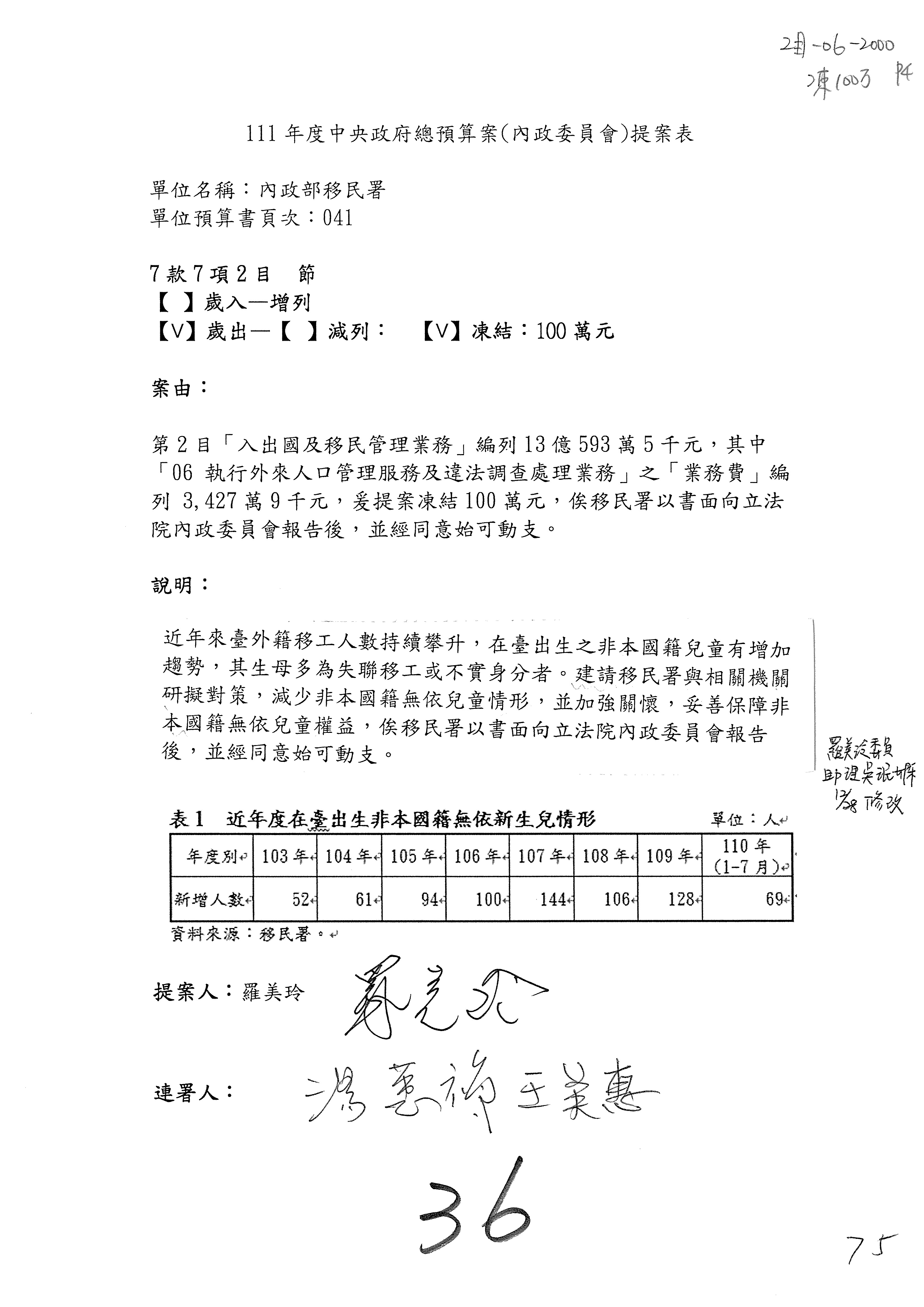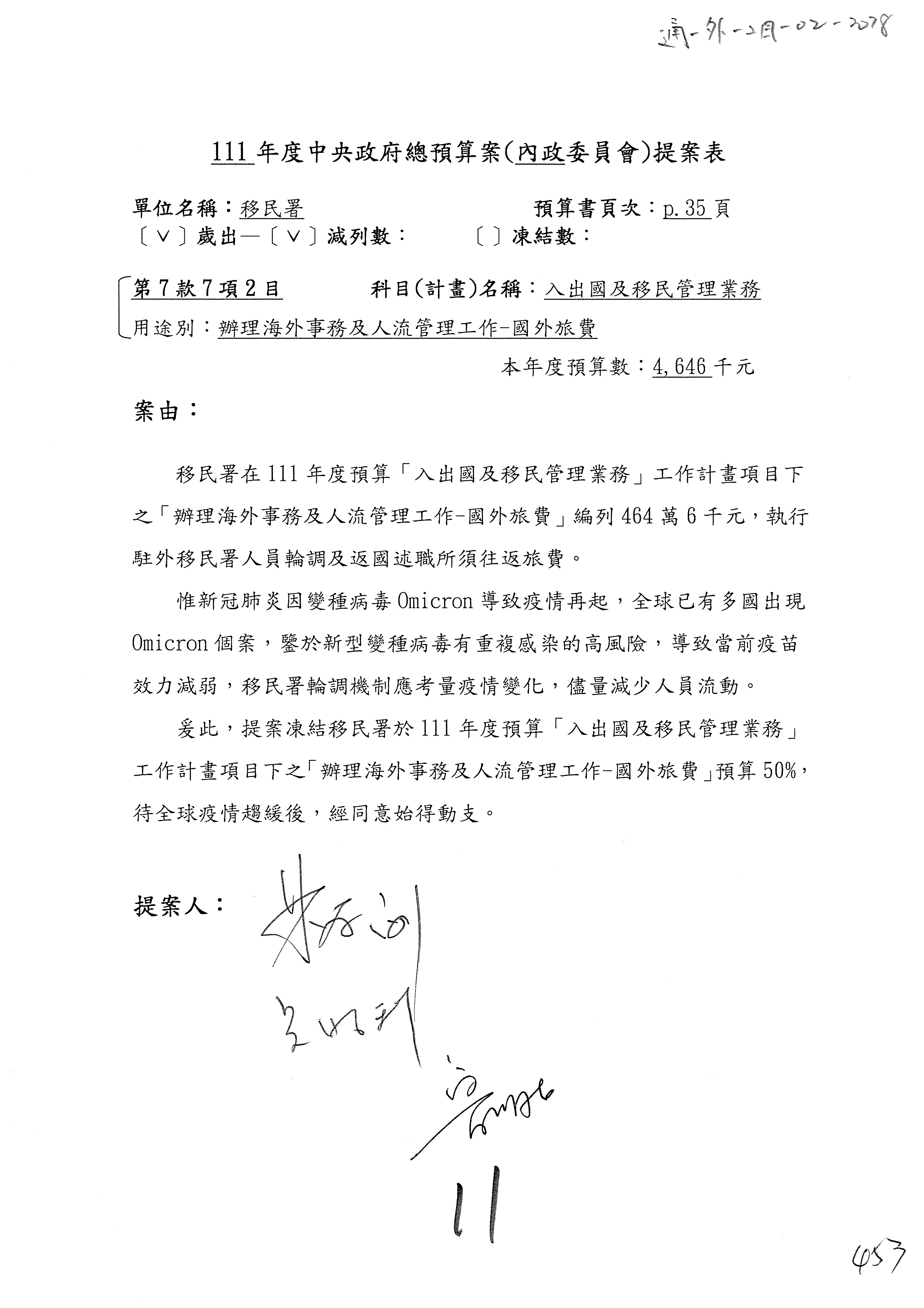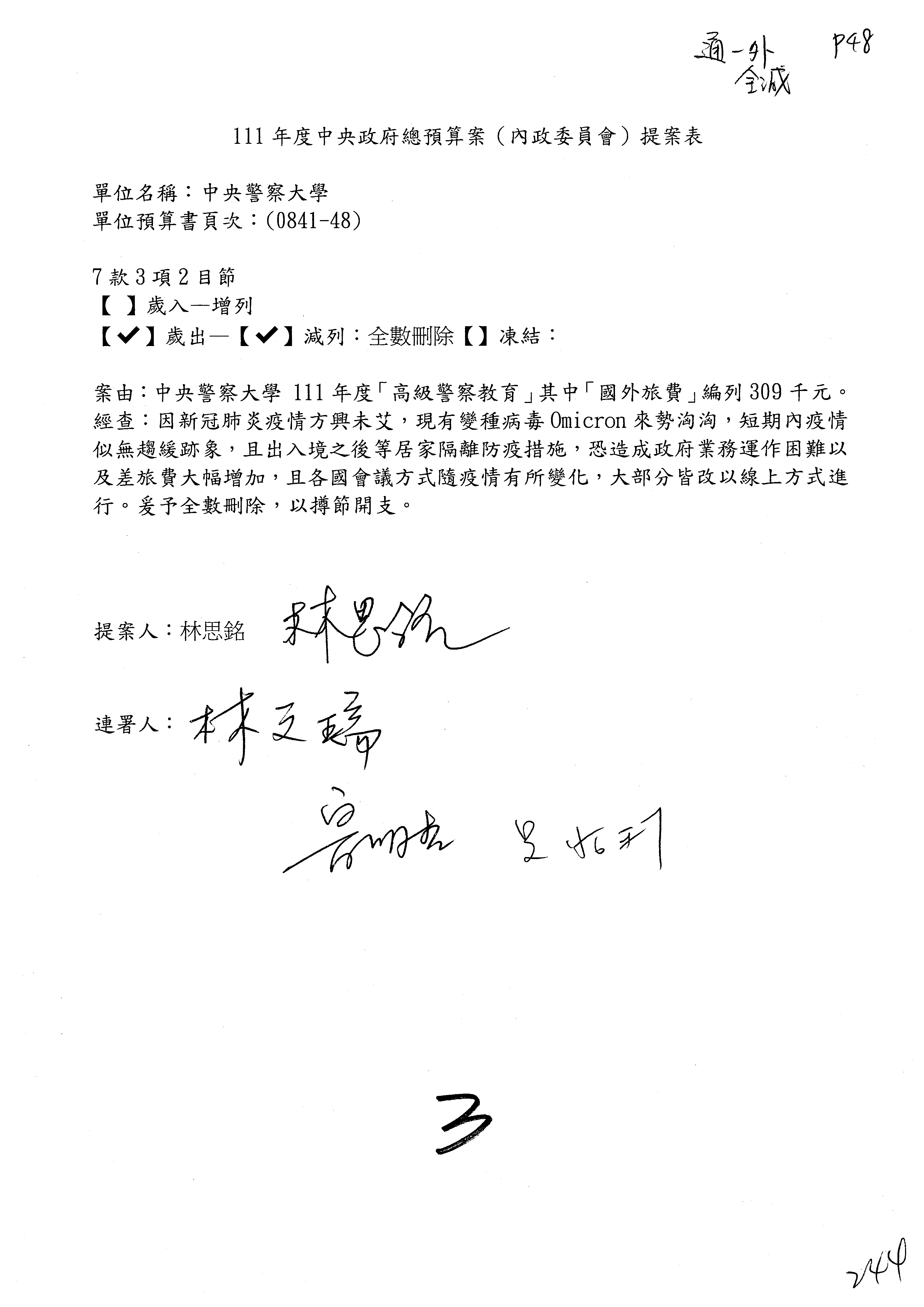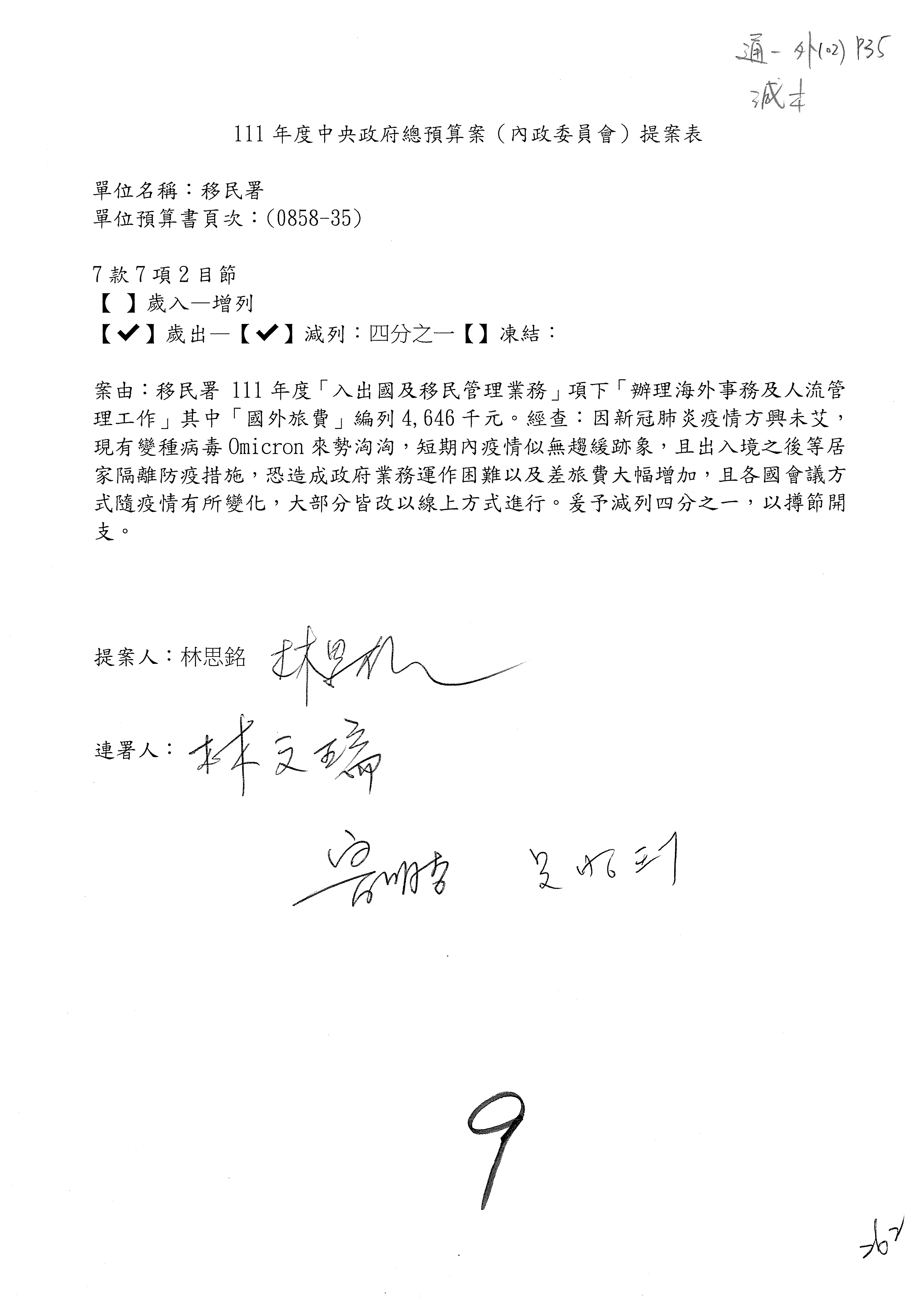 通案部分同樣是針對派員出國計畫及國外旅費的部分,第1案撤案。有關凍結的部分,相關預算總金額為30萬元,到底用不用得到都同樣有這個問題,我建議凍結5萬元、提書面報告。