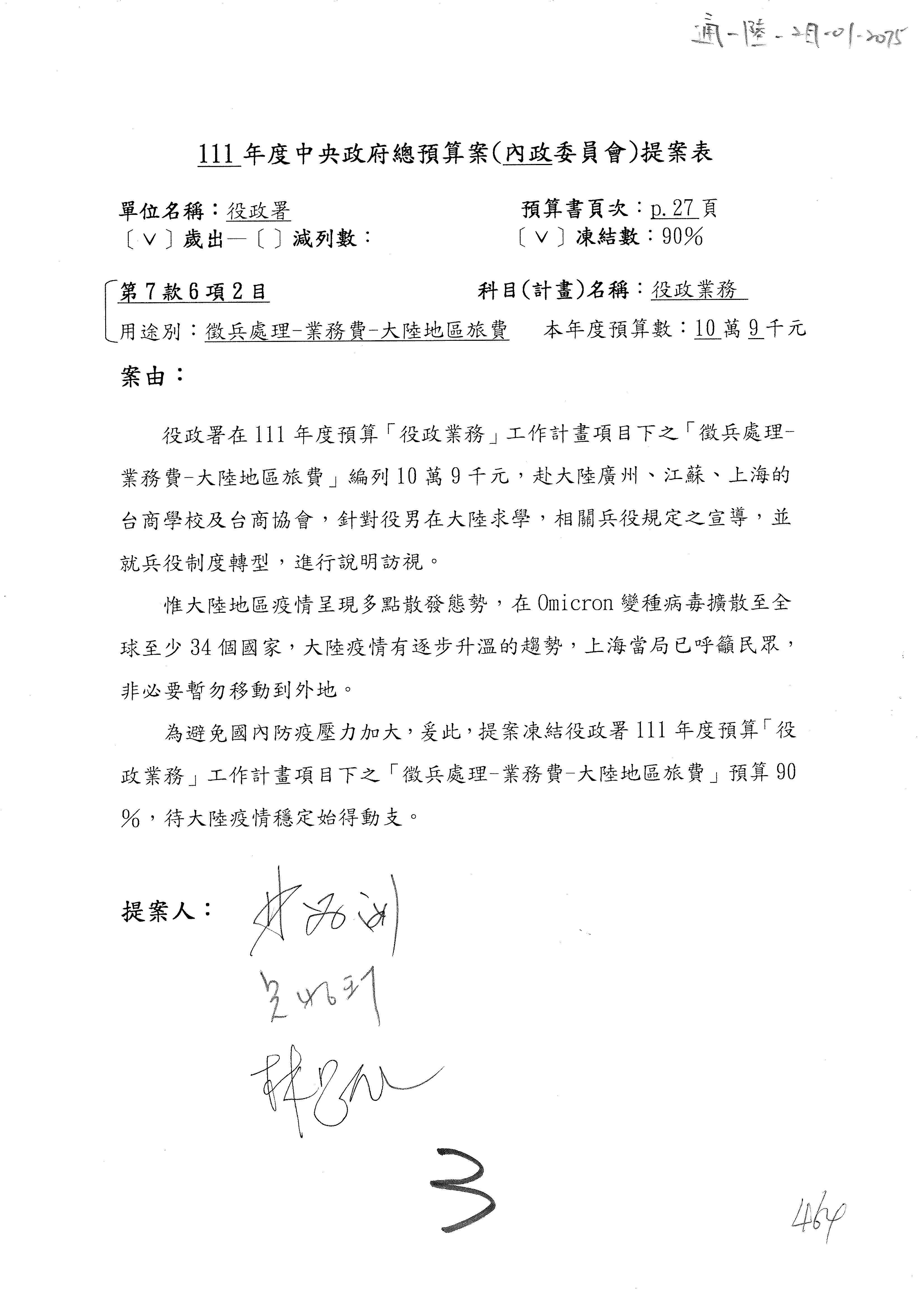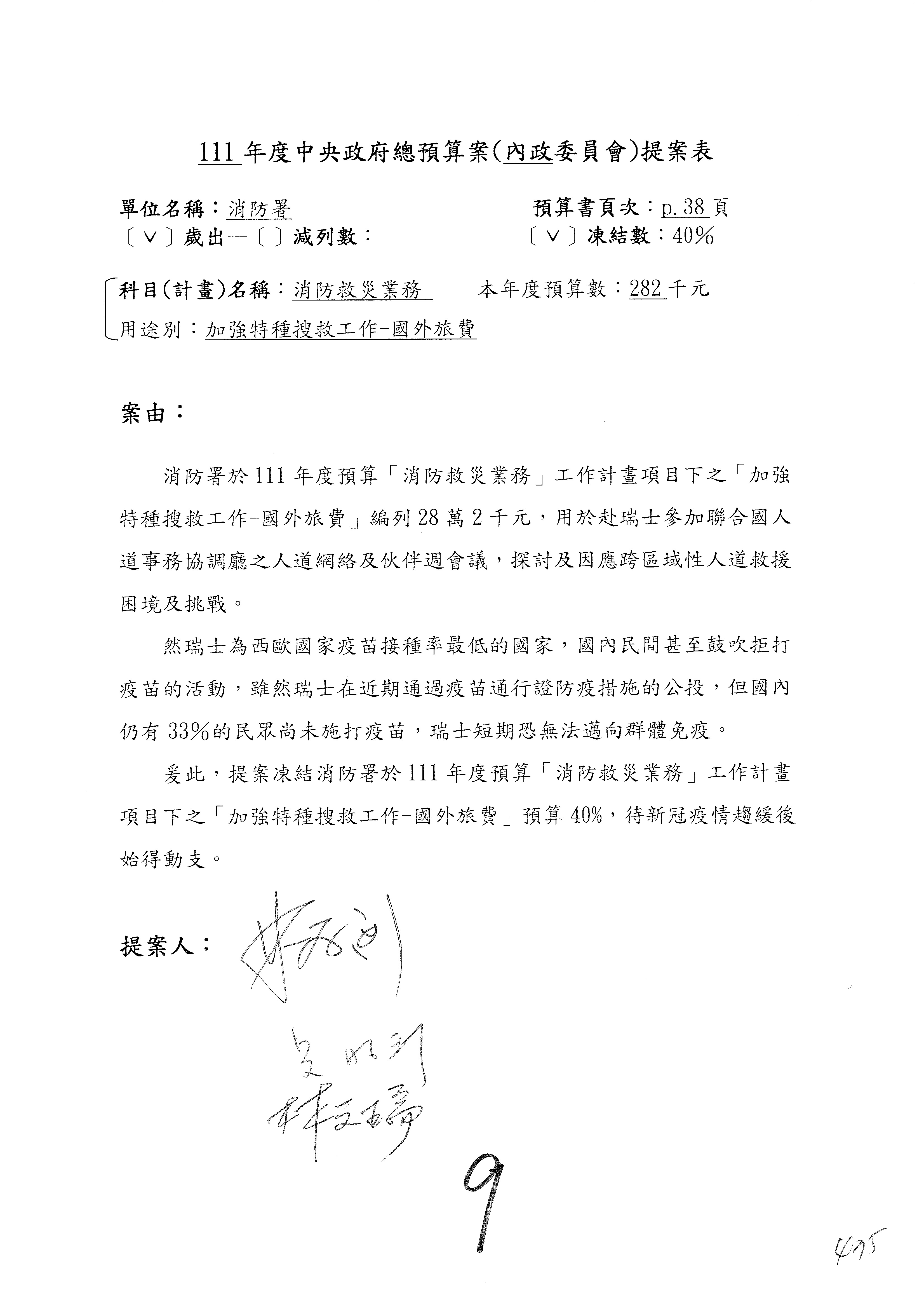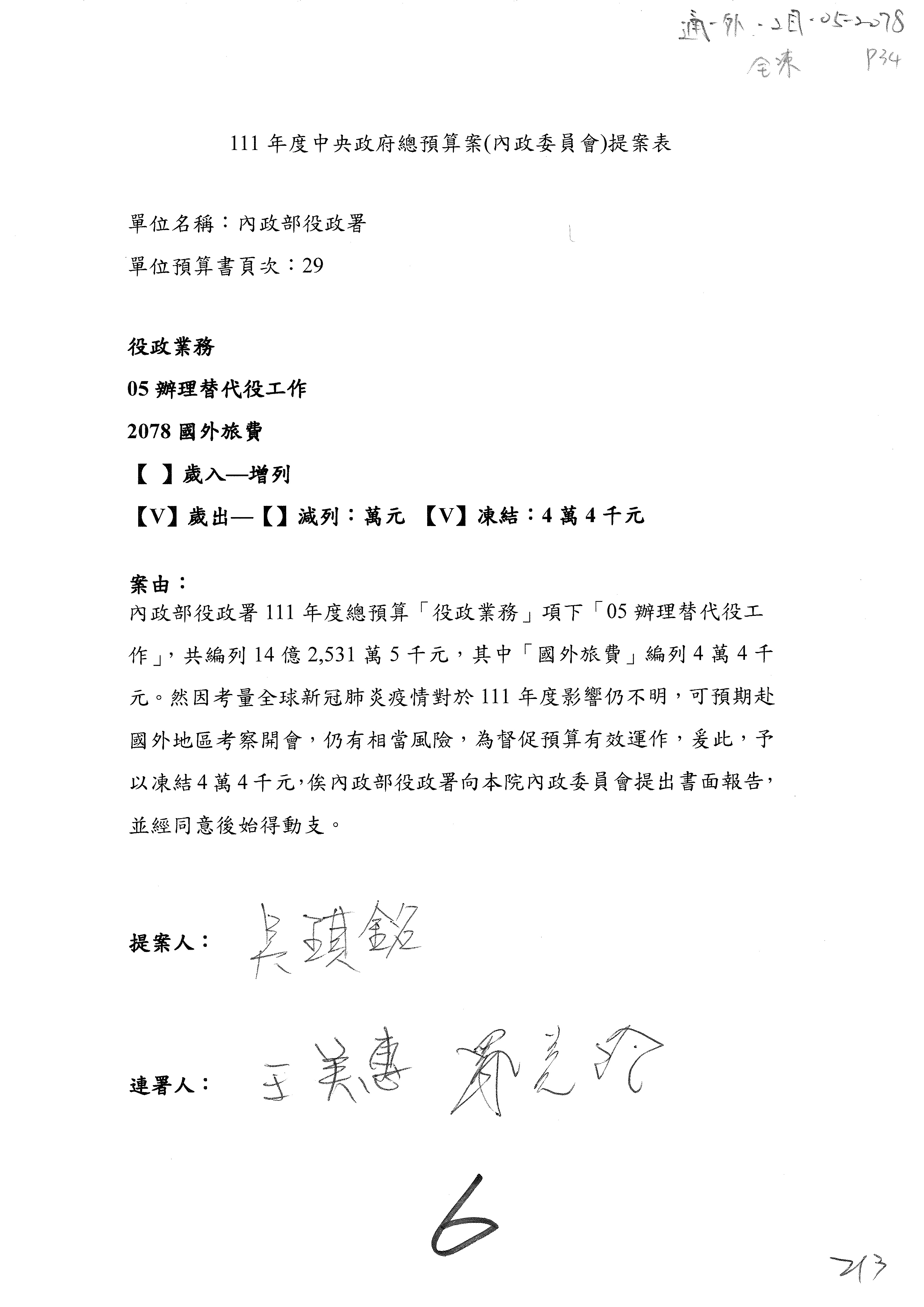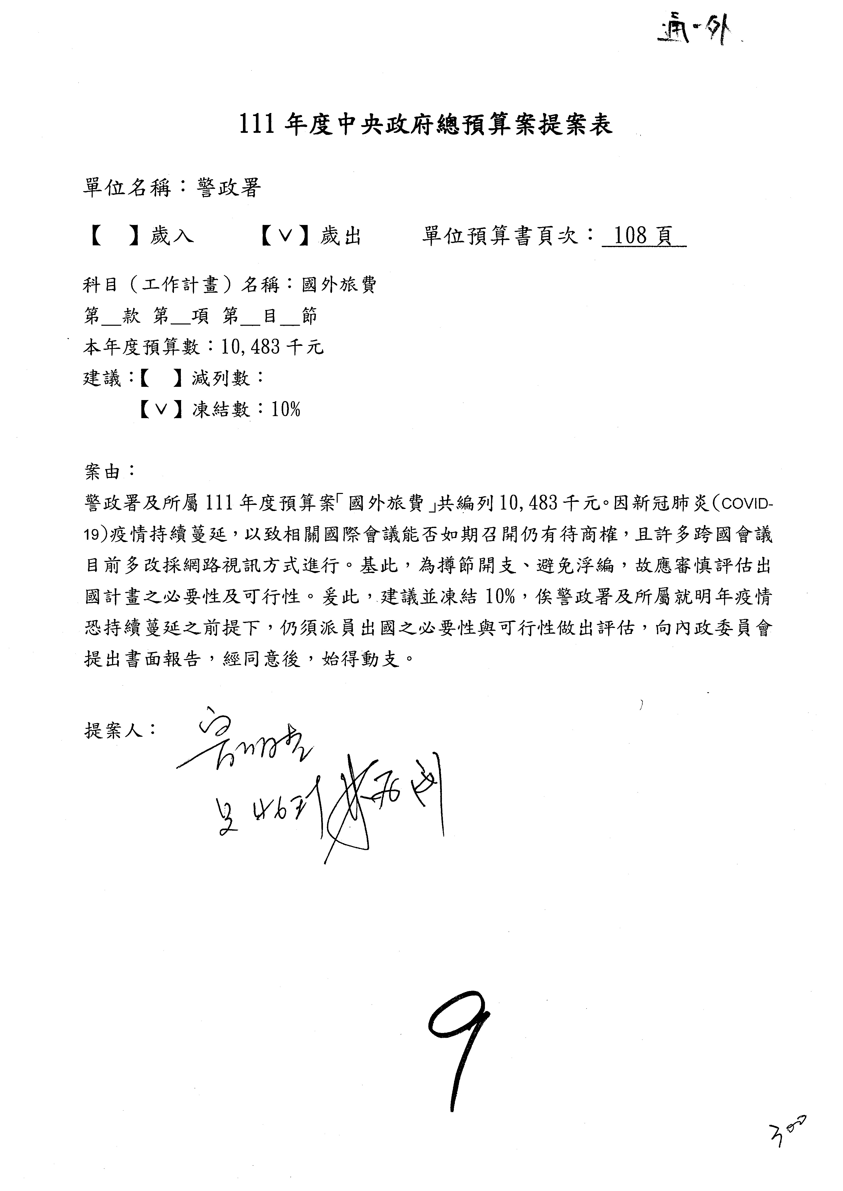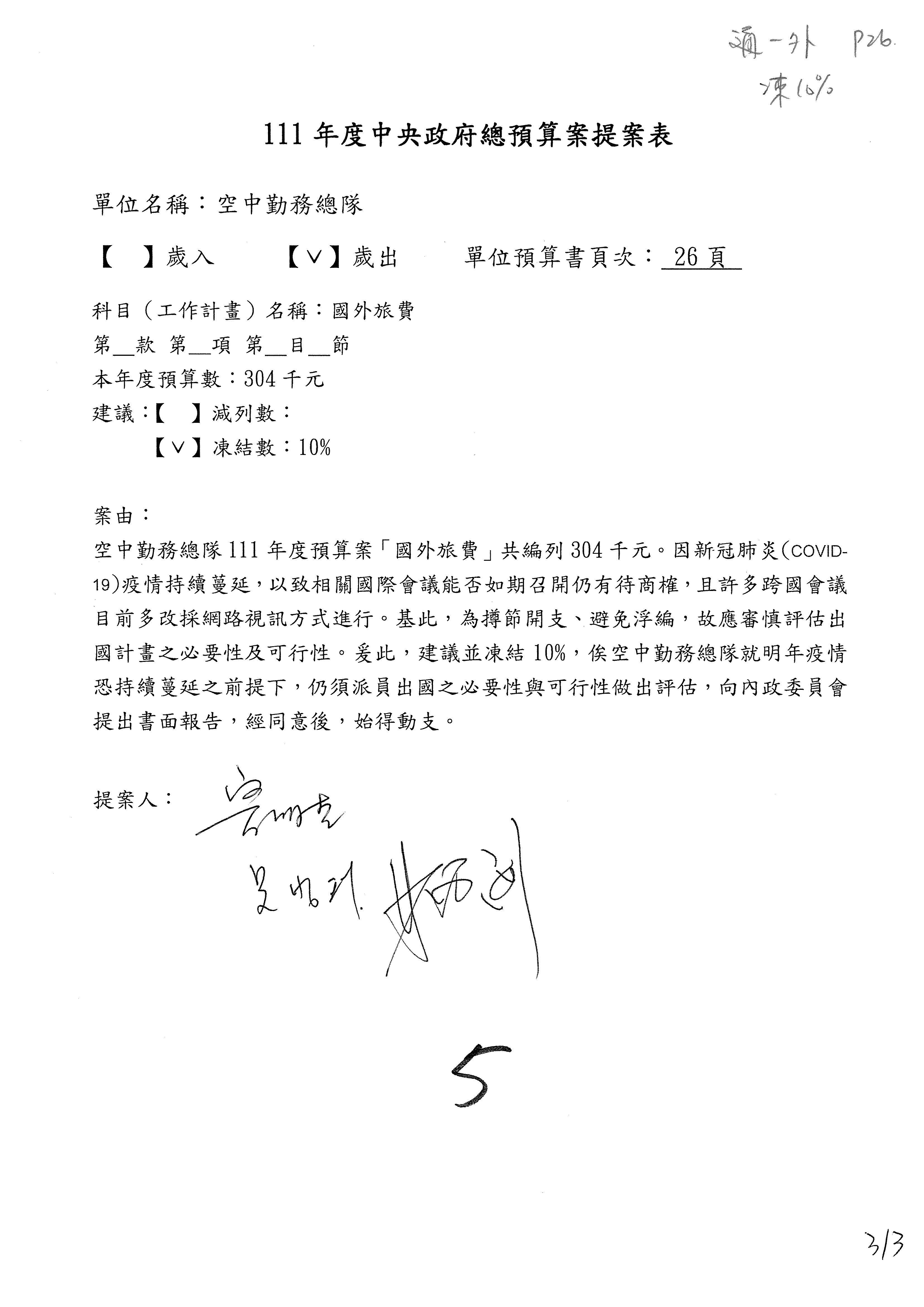 張委員宏陸:召委,我建議,全部國外旅費凍結20%,提書面報告。