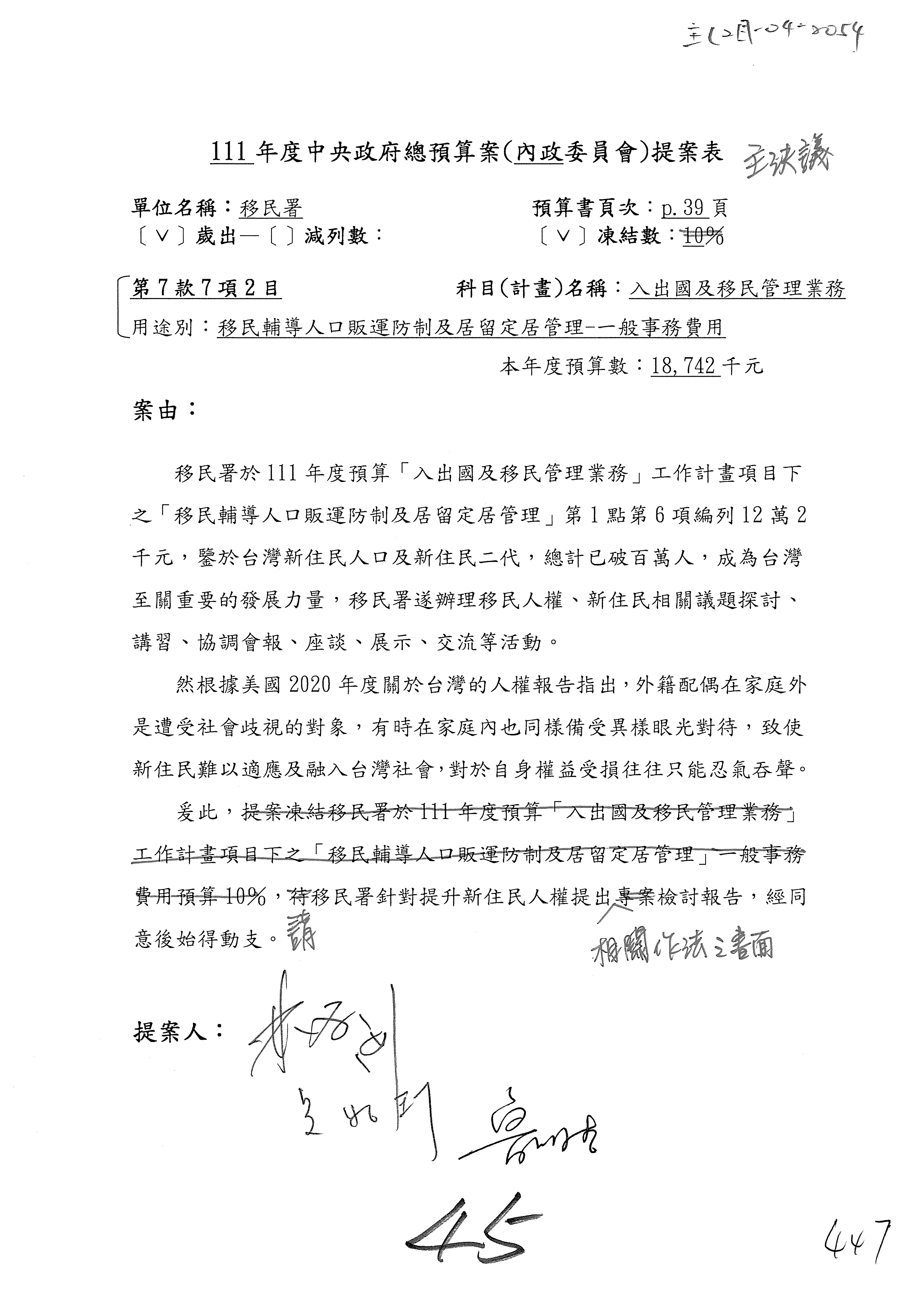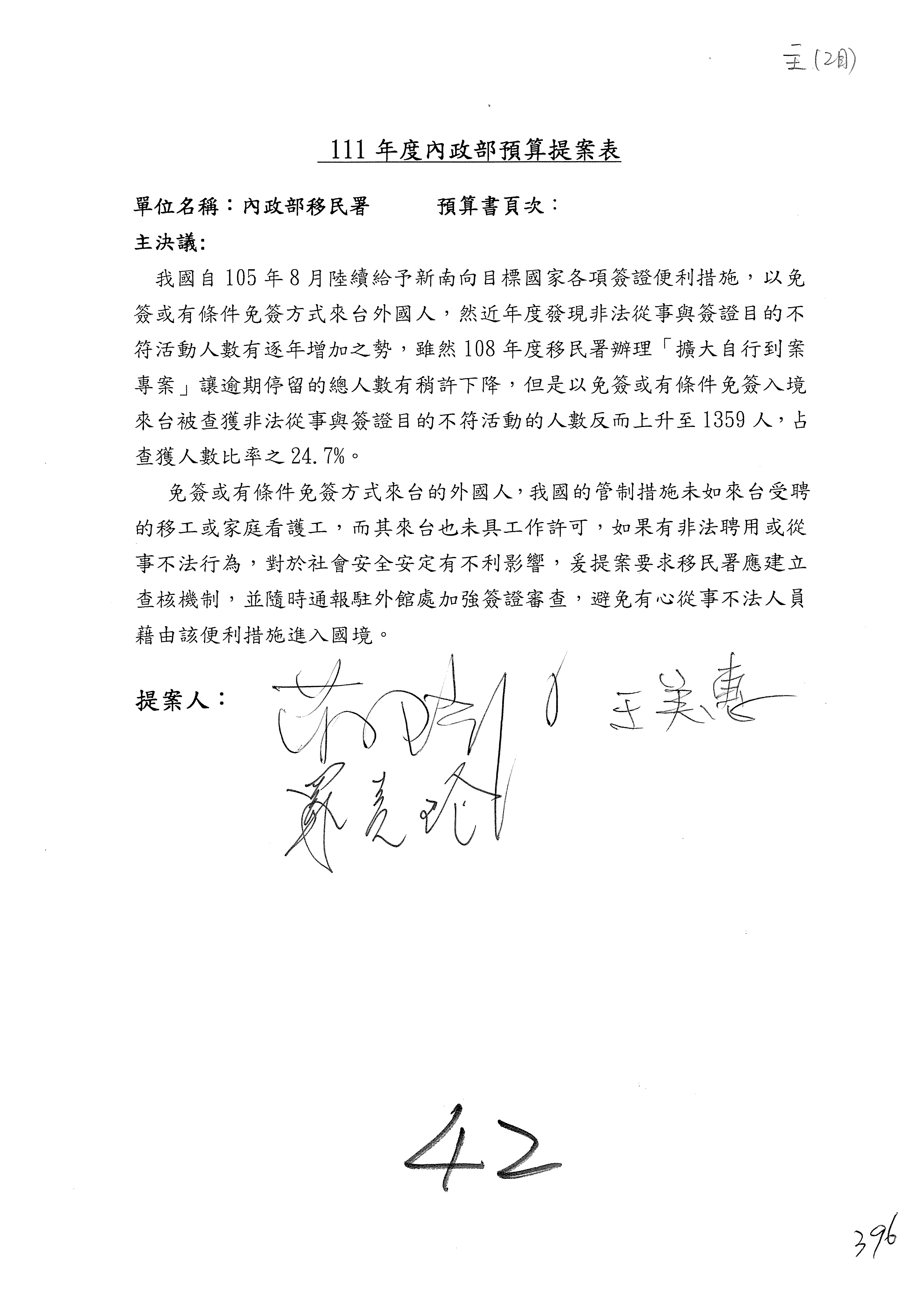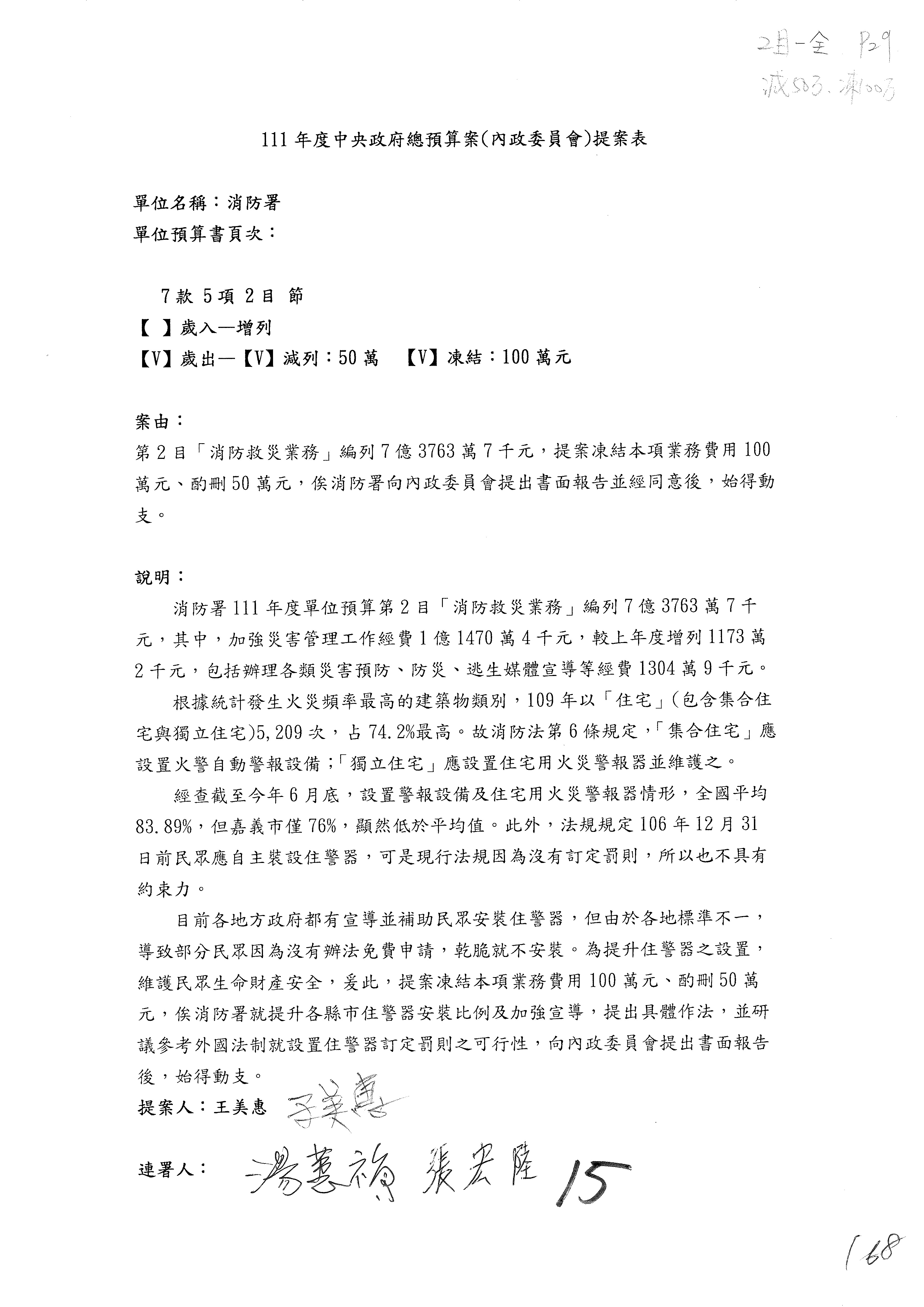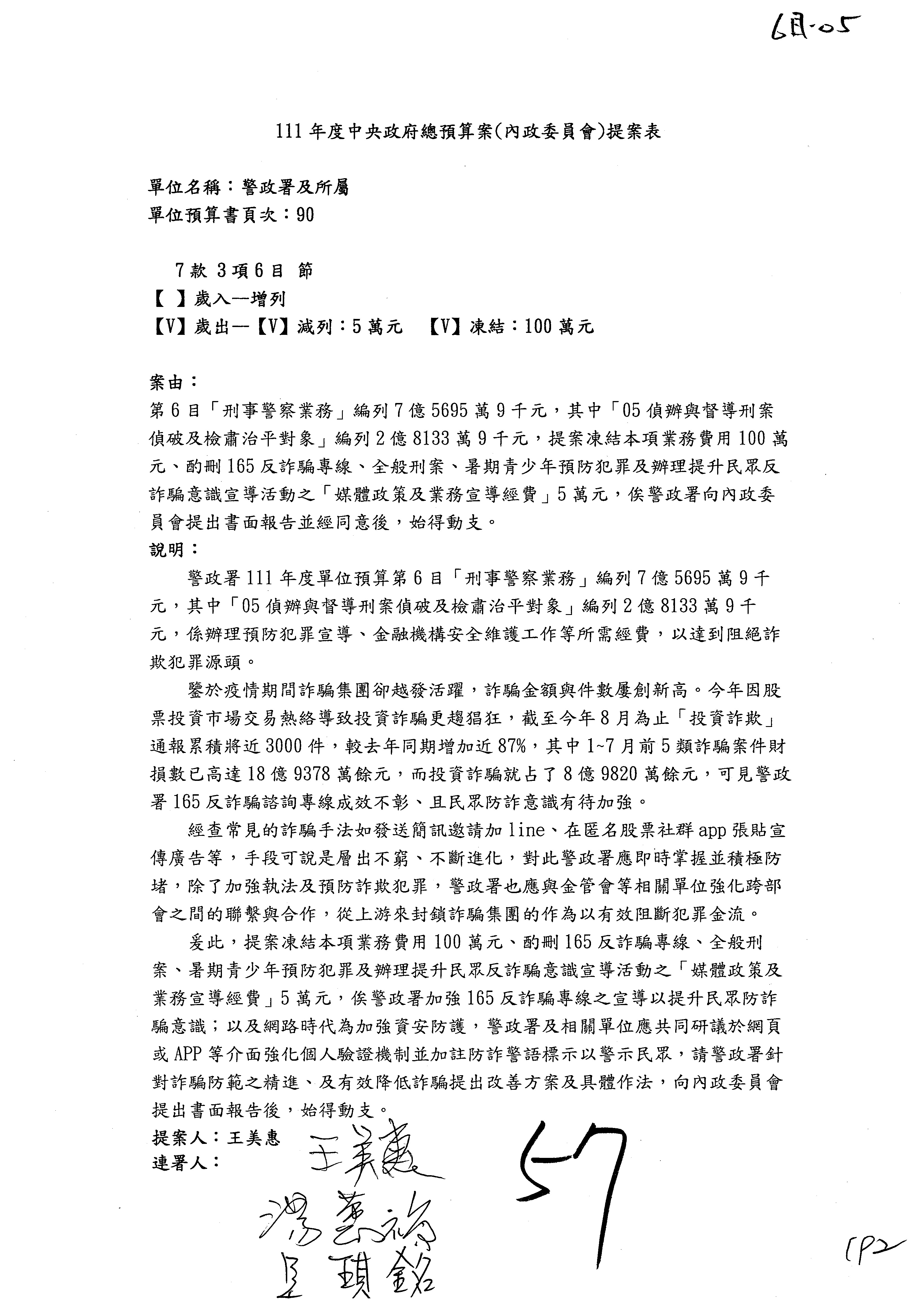 王委員美惠:主席,因為那天他們有來說明,而且剛才署長也有解釋過,所以減列500萬元的部分,我把它刪掉。