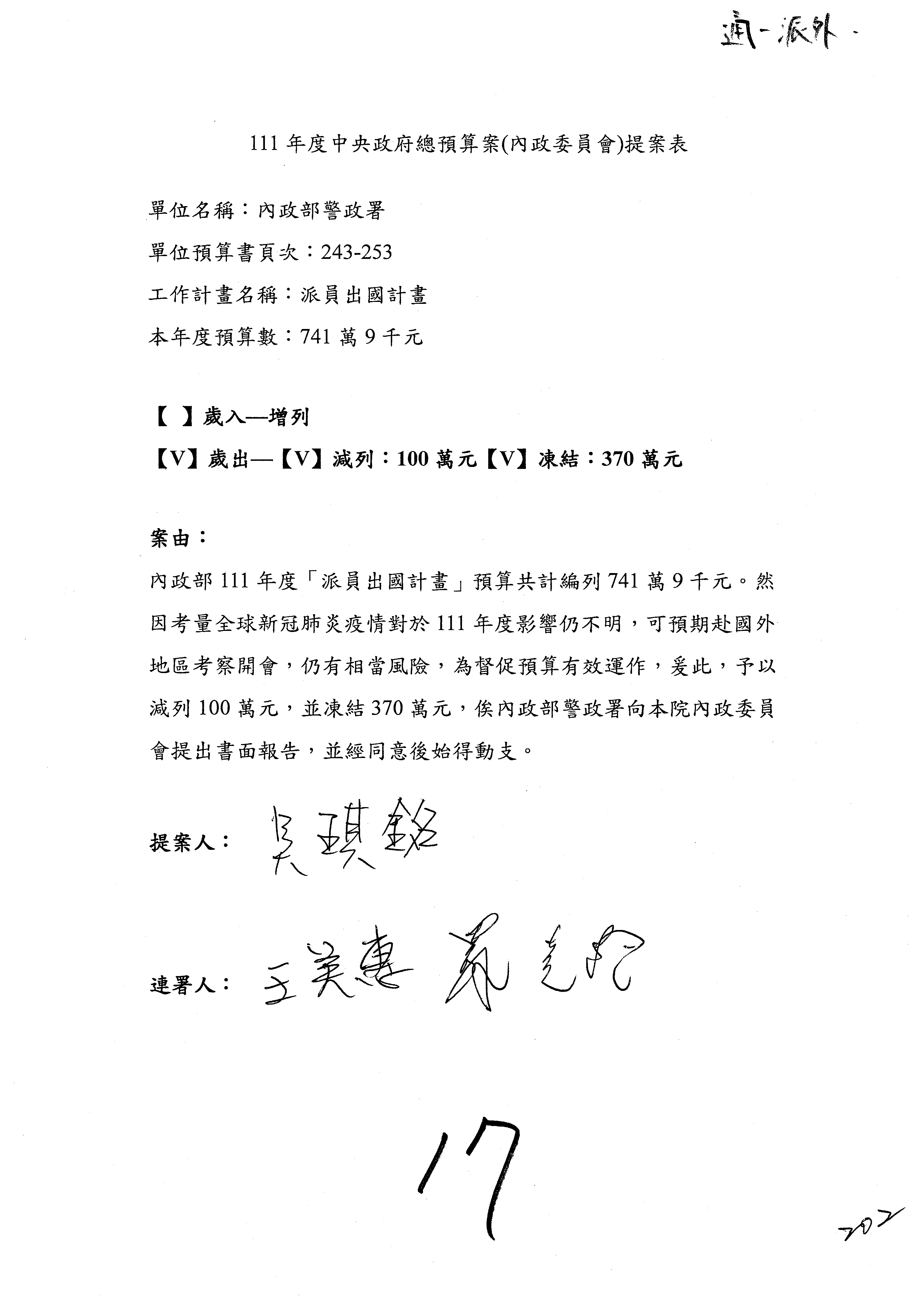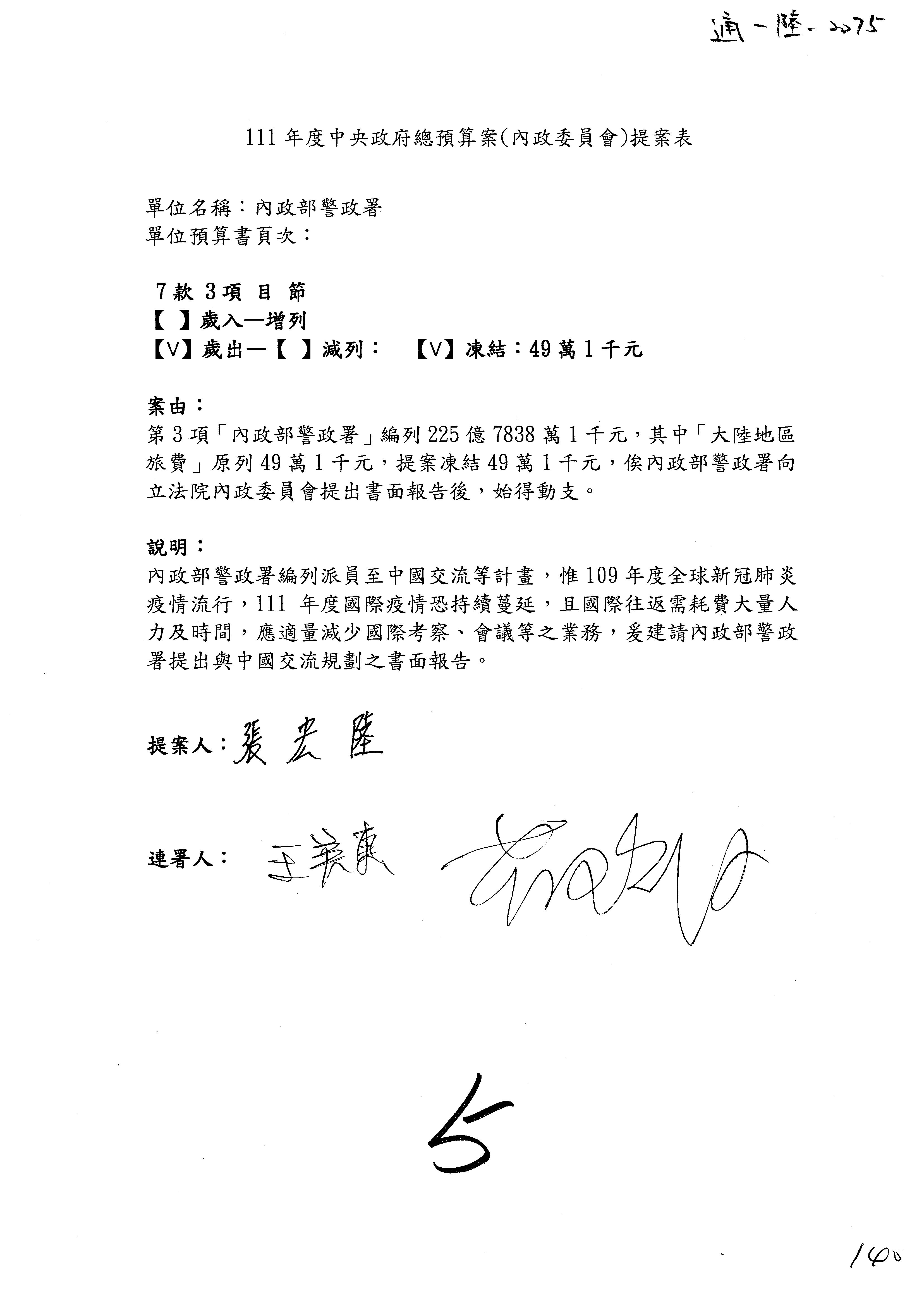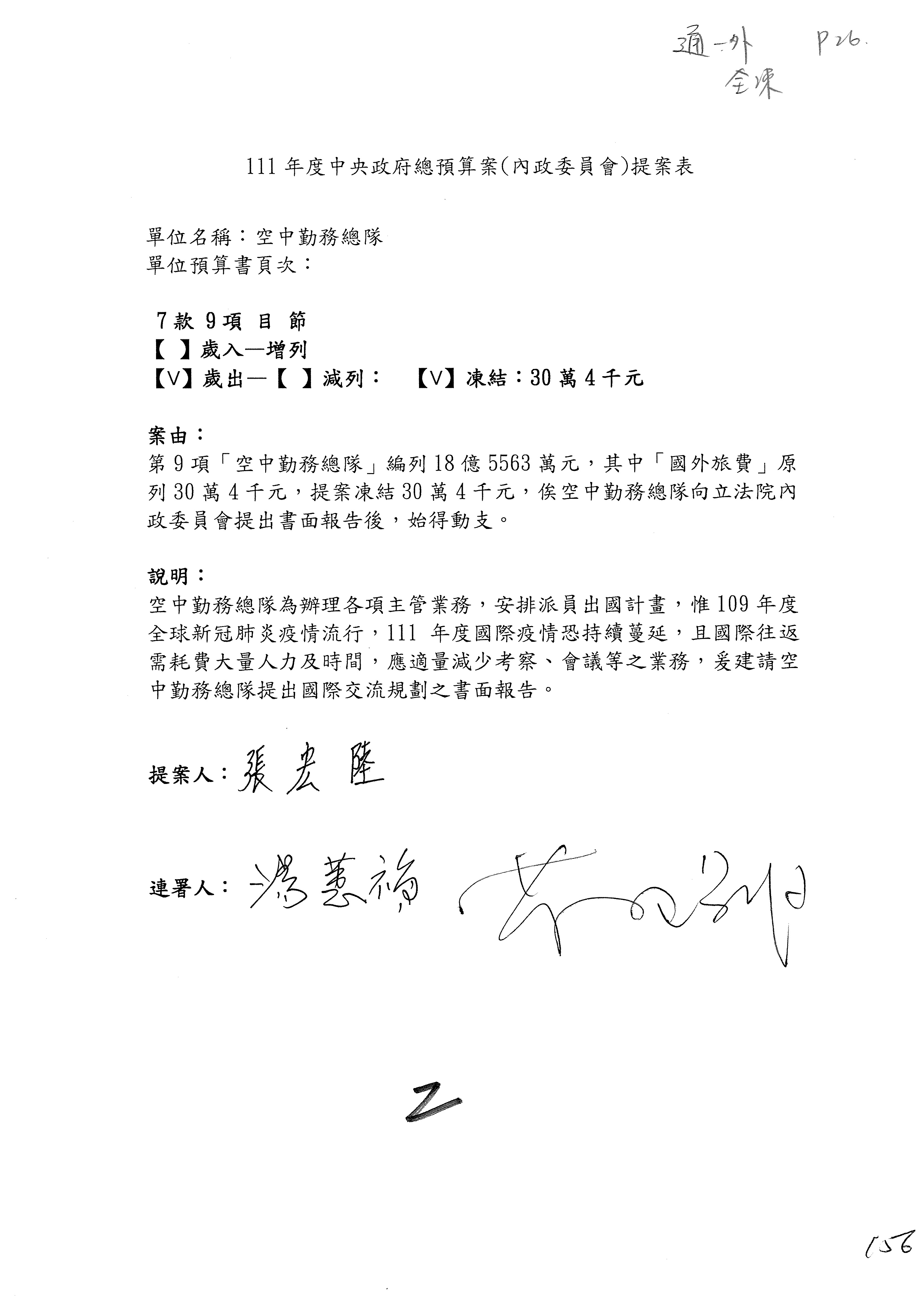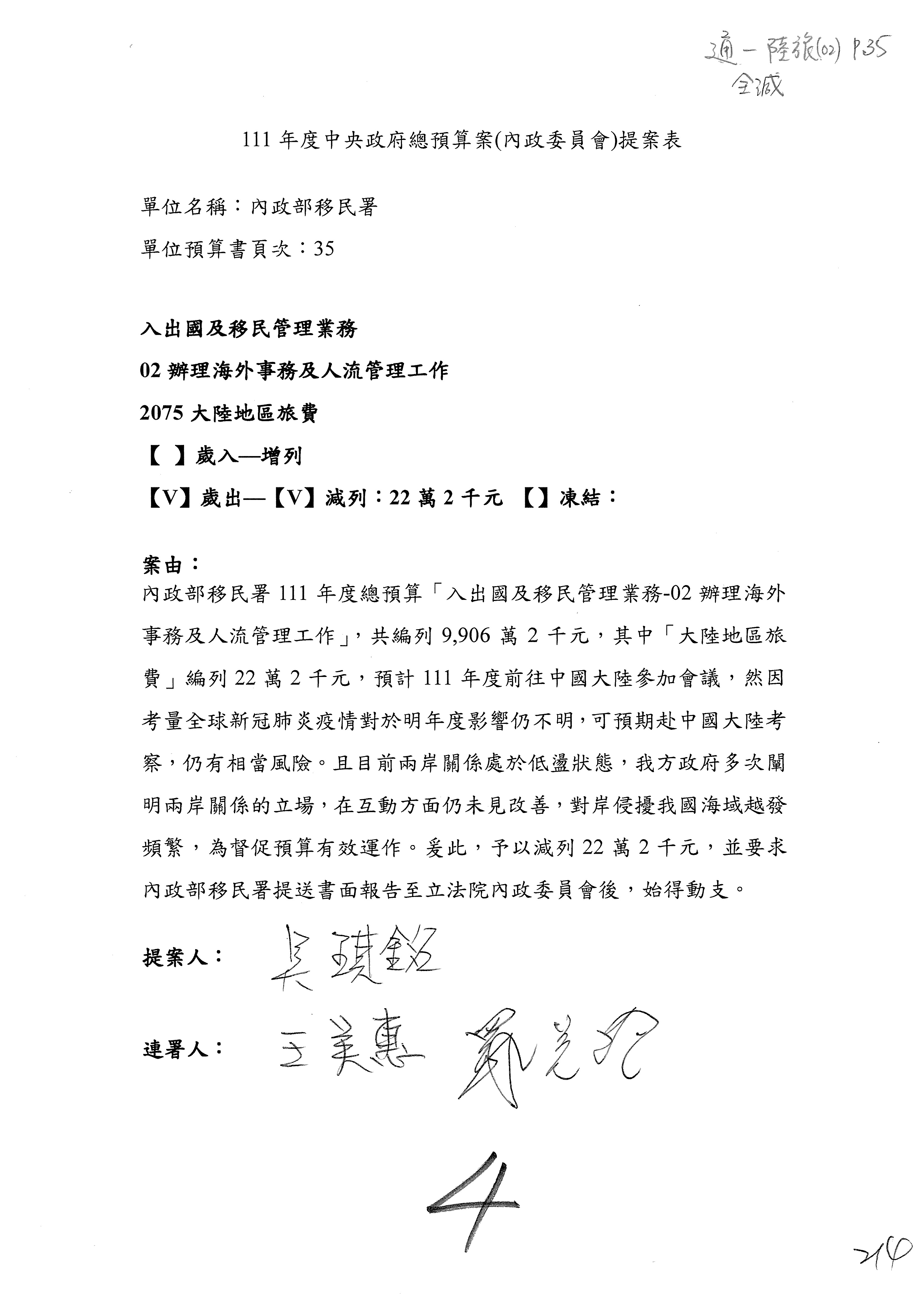 張委員宏陸:我跟吳琪銘委員兩個大陸地區旅費的提案就併到國外的部分一起處理。