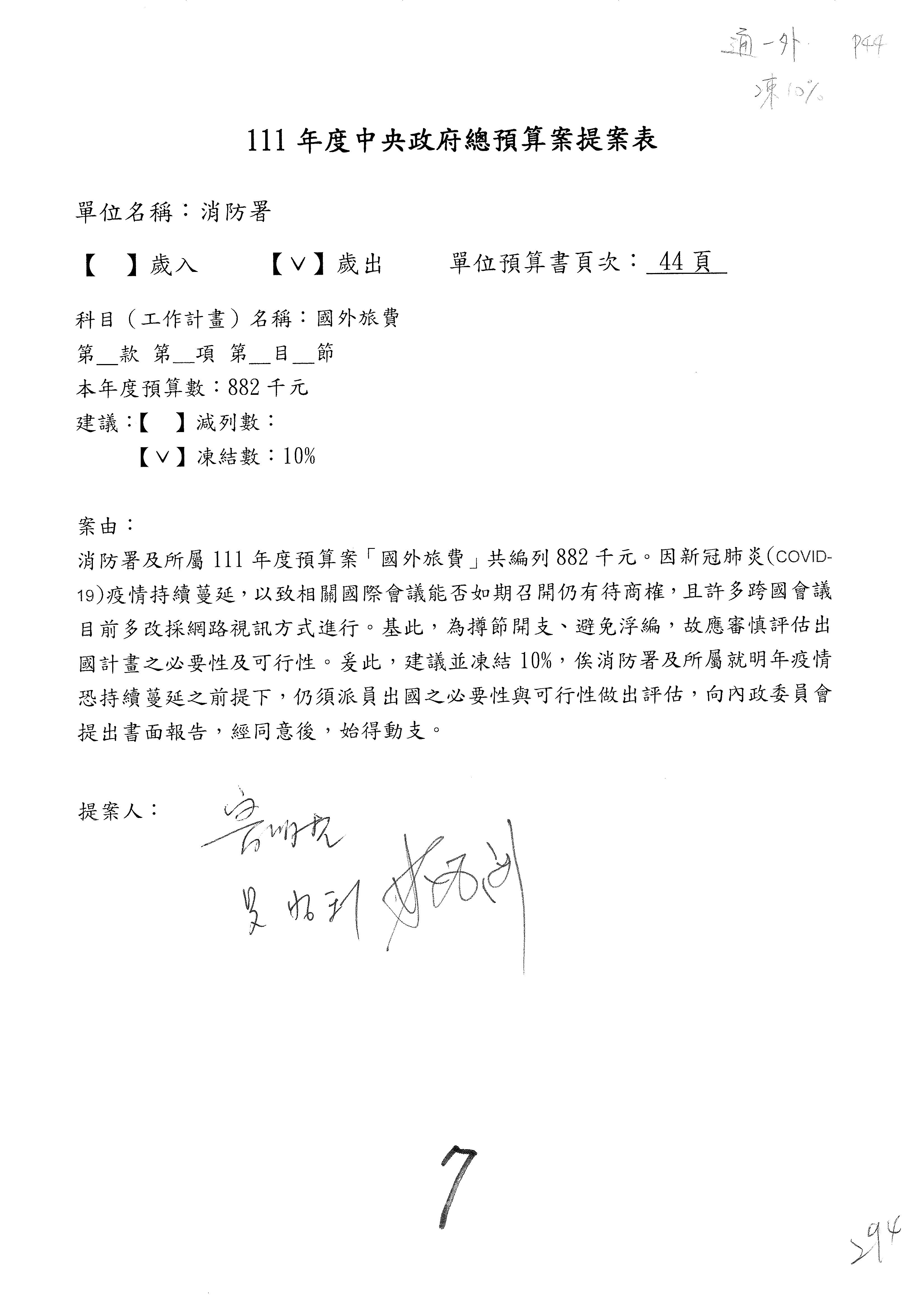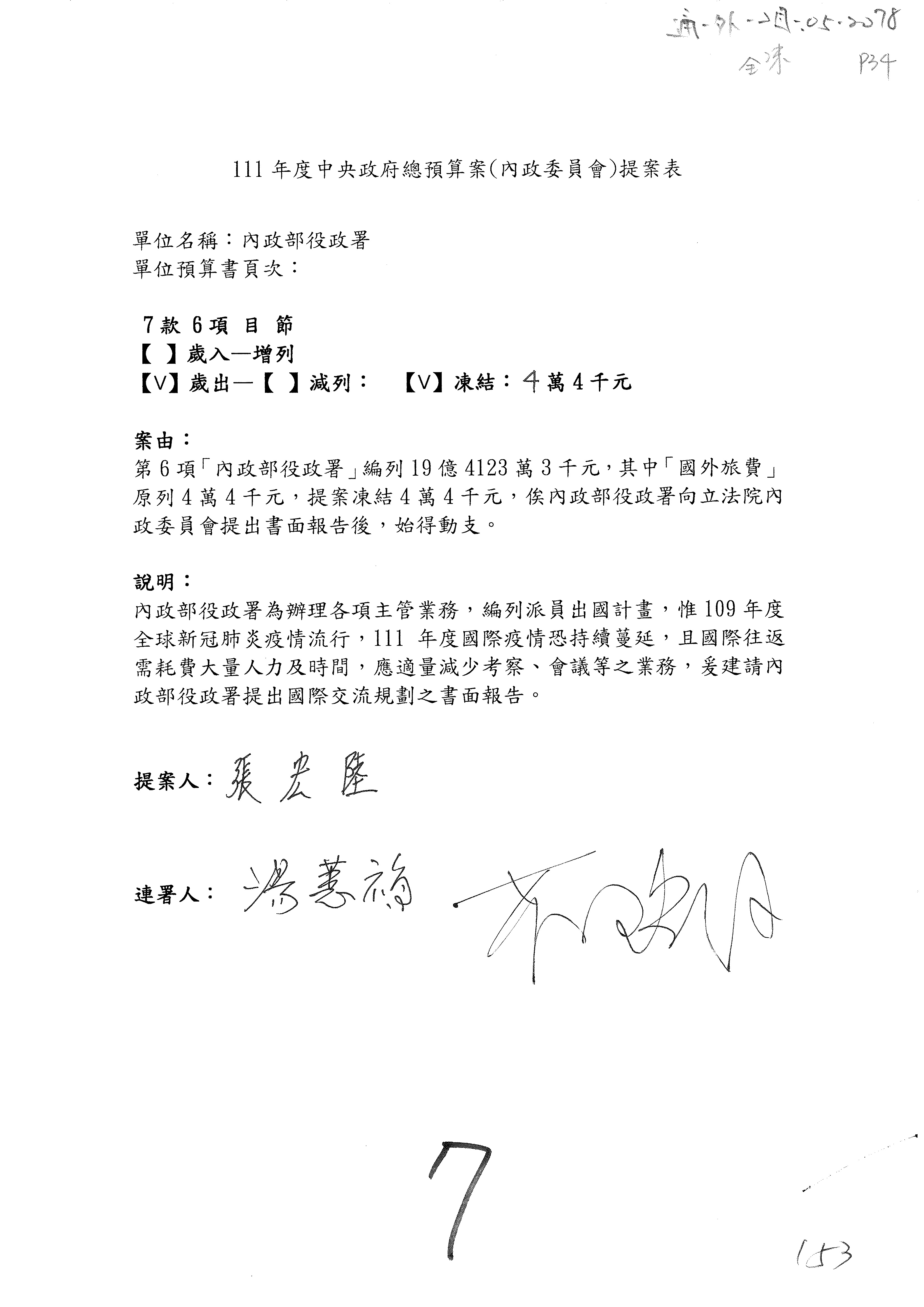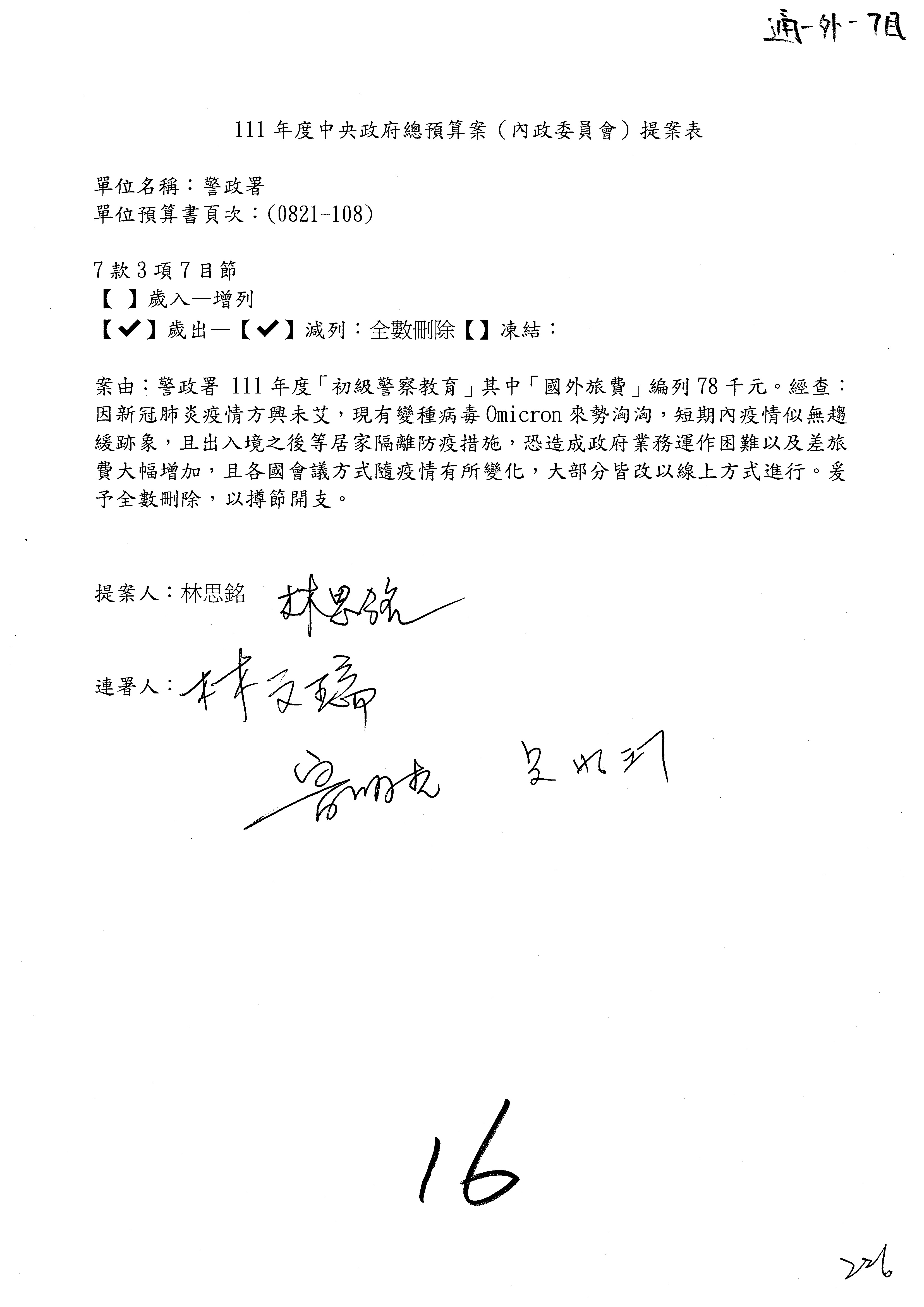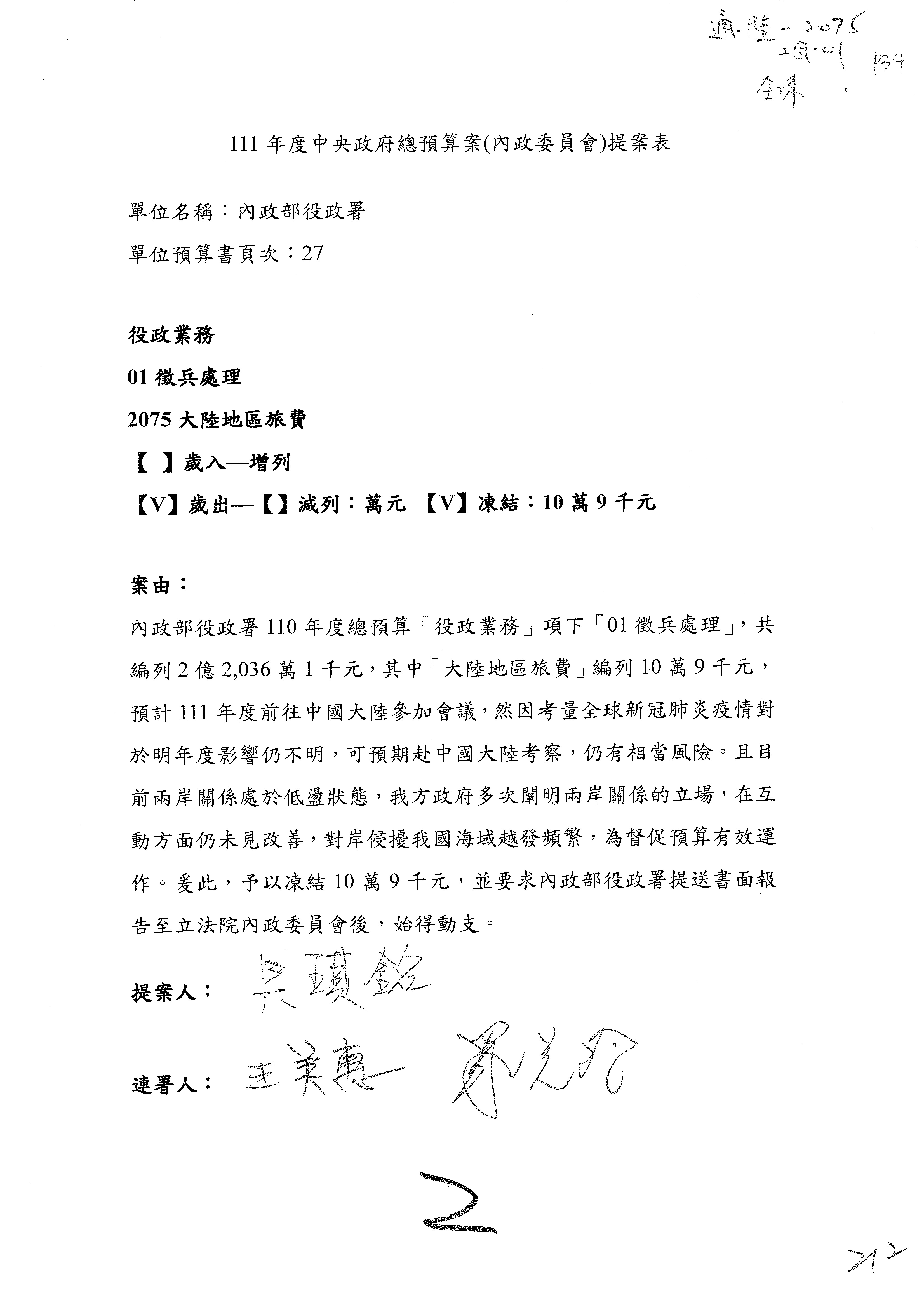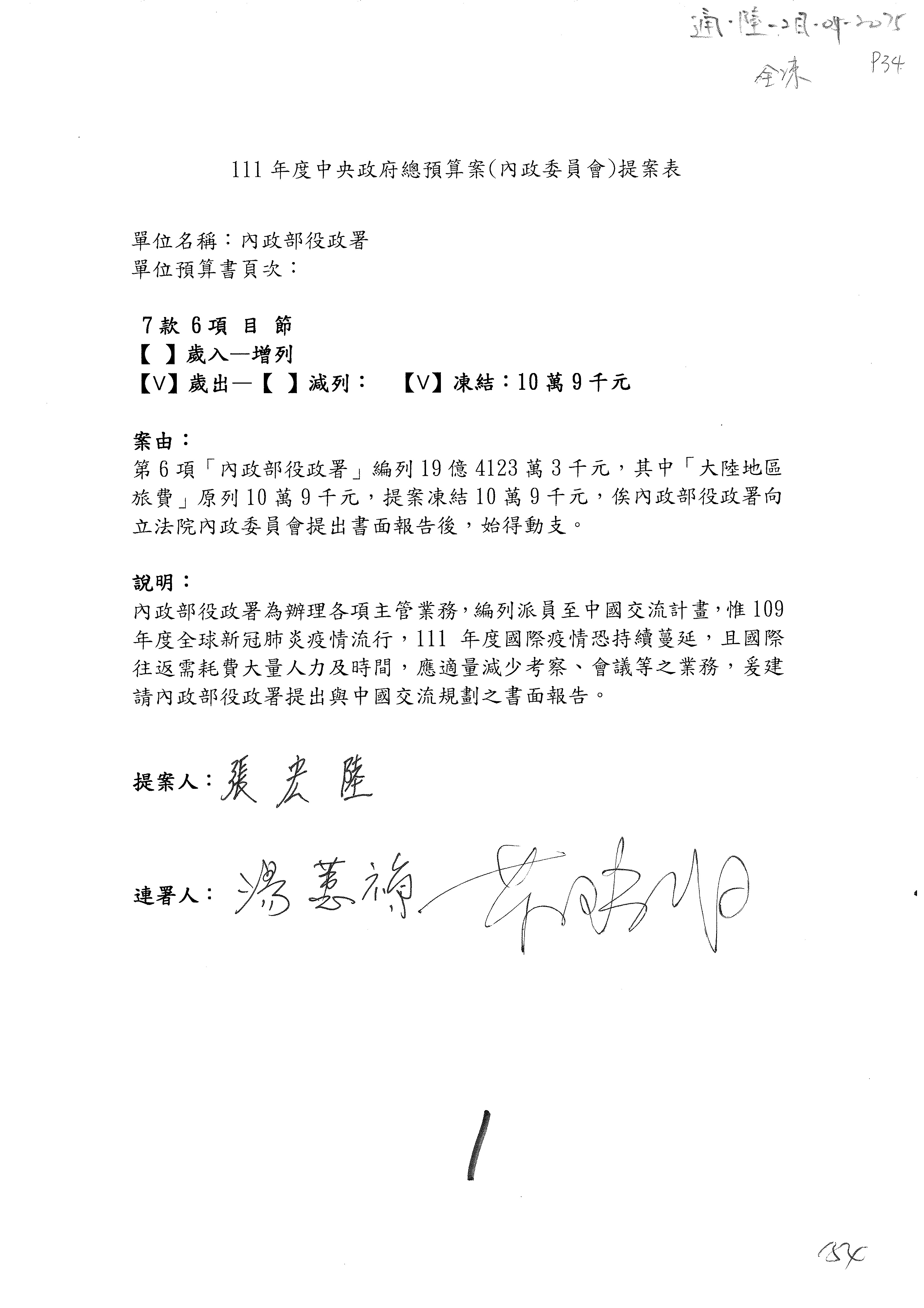 張委員宏陸:我跟吳琪銘委員兩個大陸地區旅費的提案就併到國外的部分一起處理。
