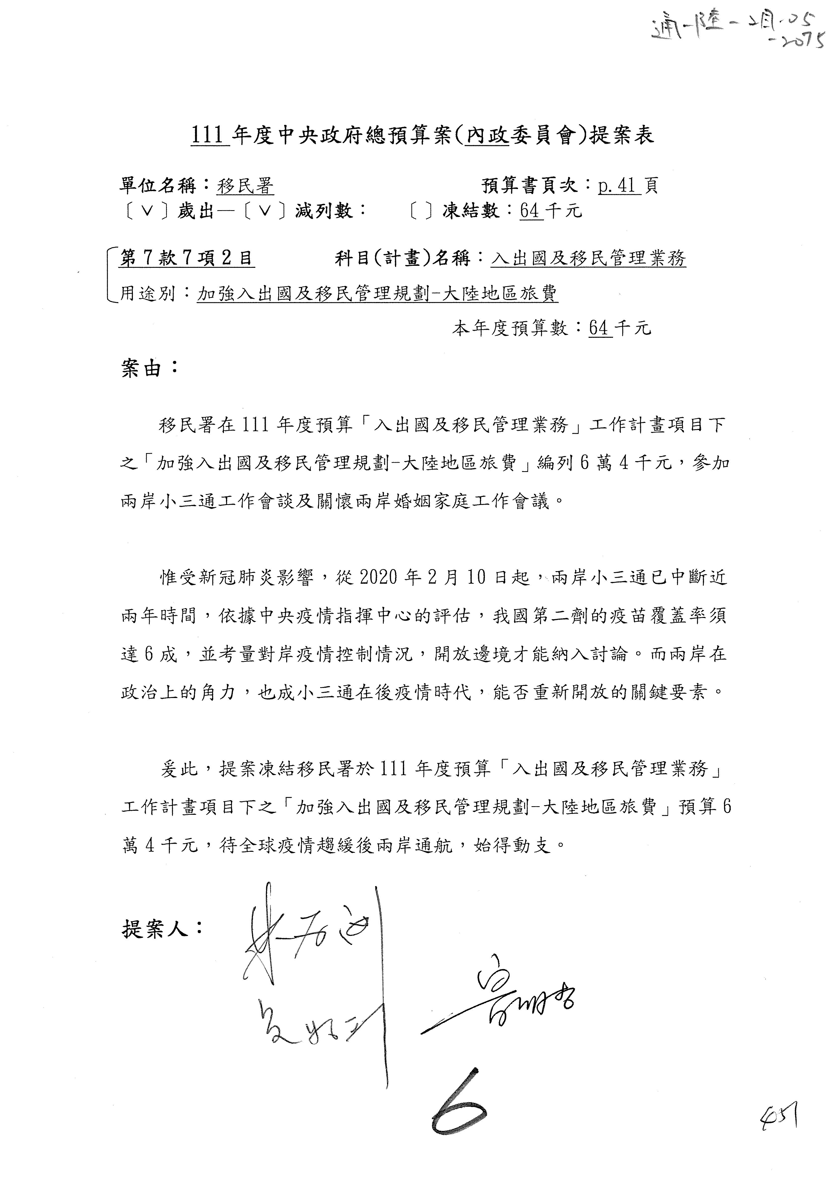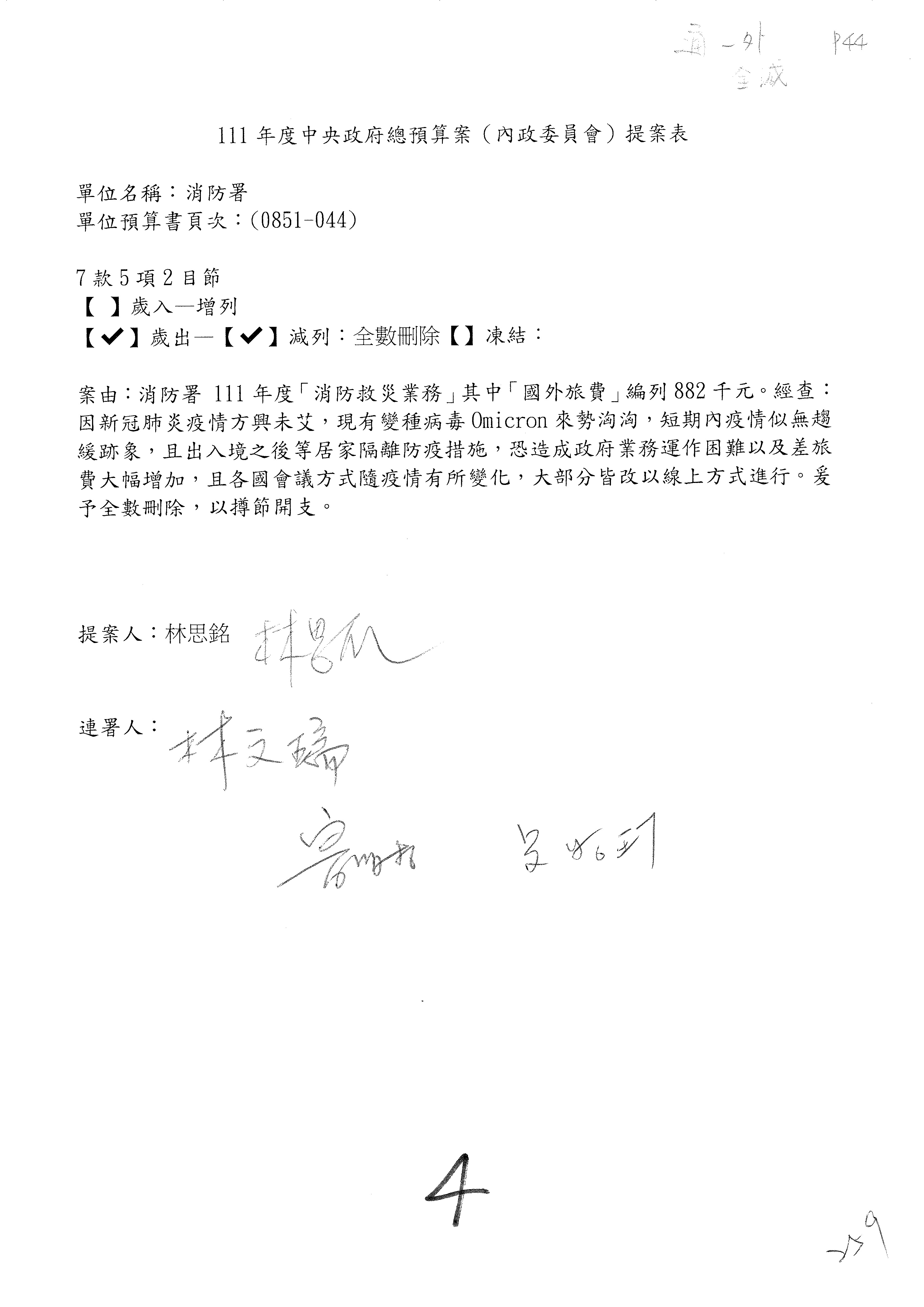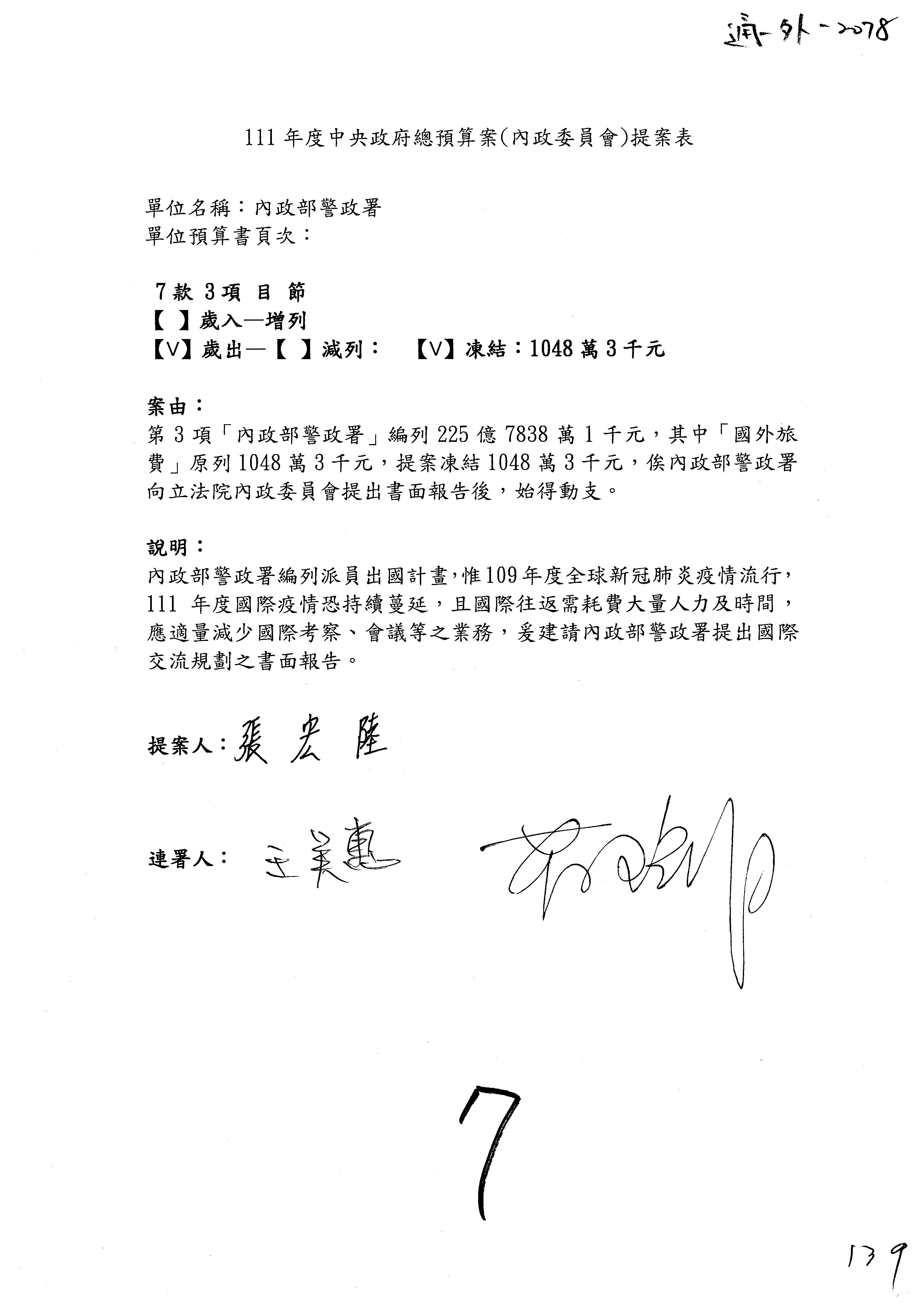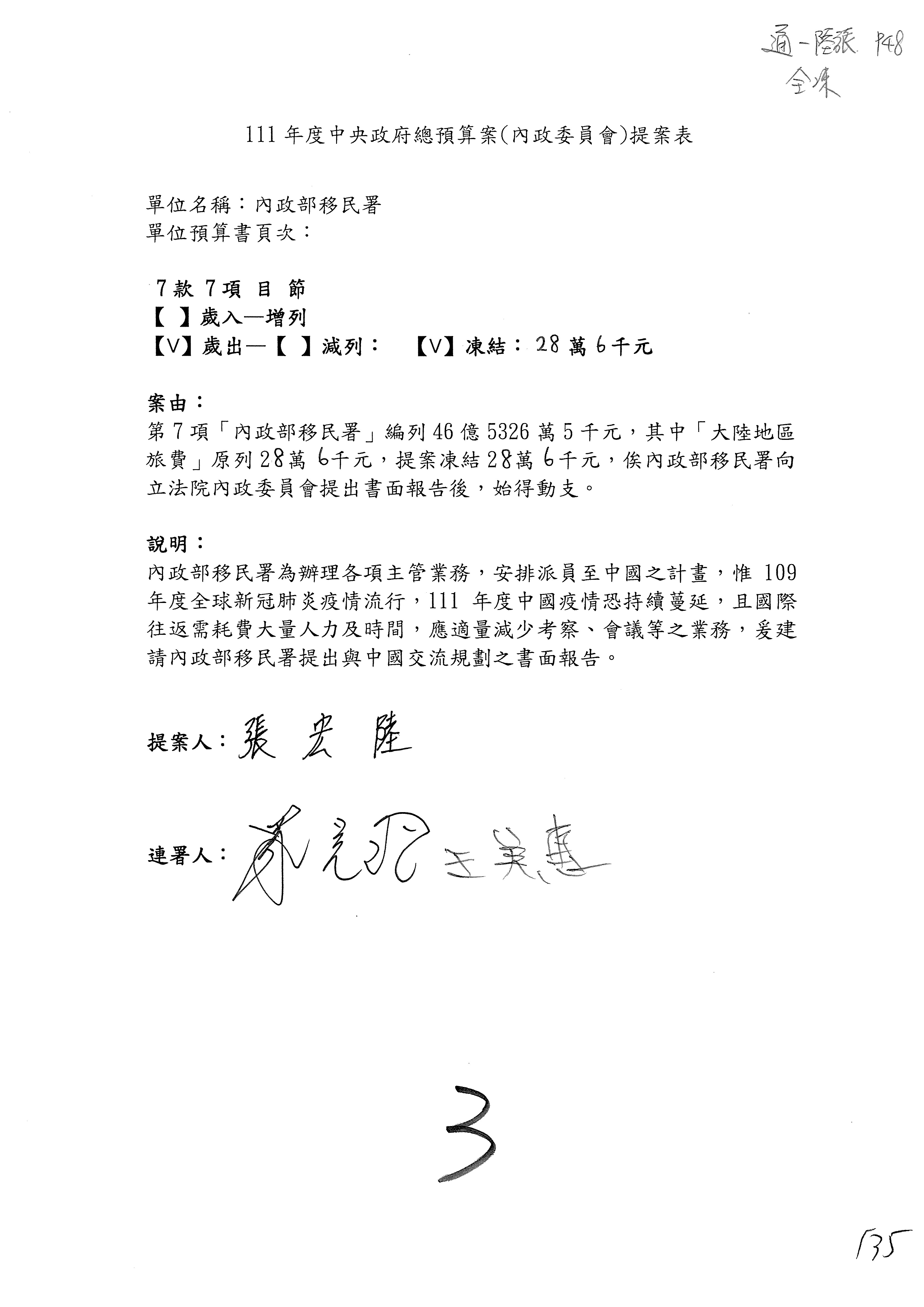 張委員宏陸:我跟吳琪銘委員兩個大陸地區旅費的提案就併到國外的部分一起處理。