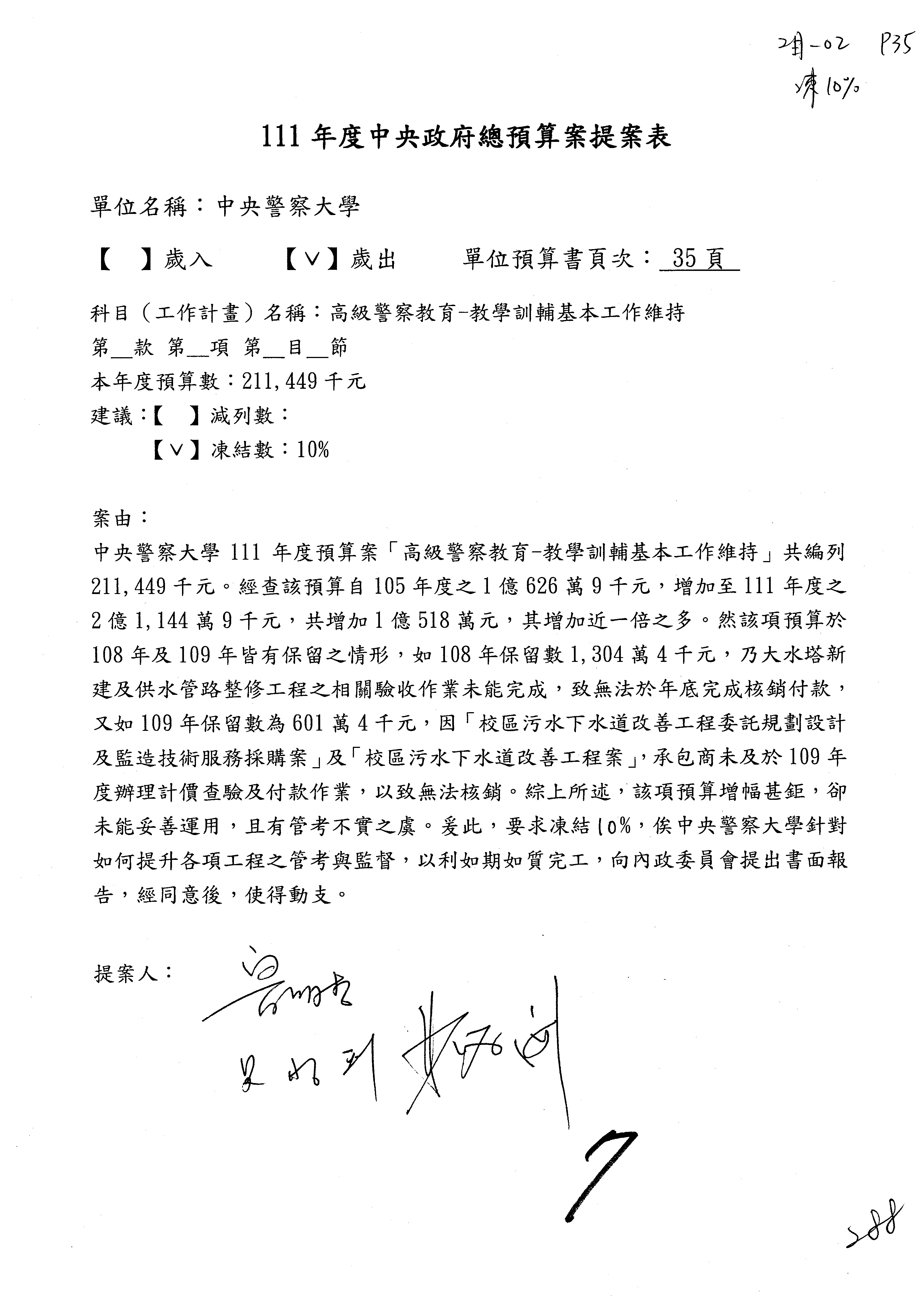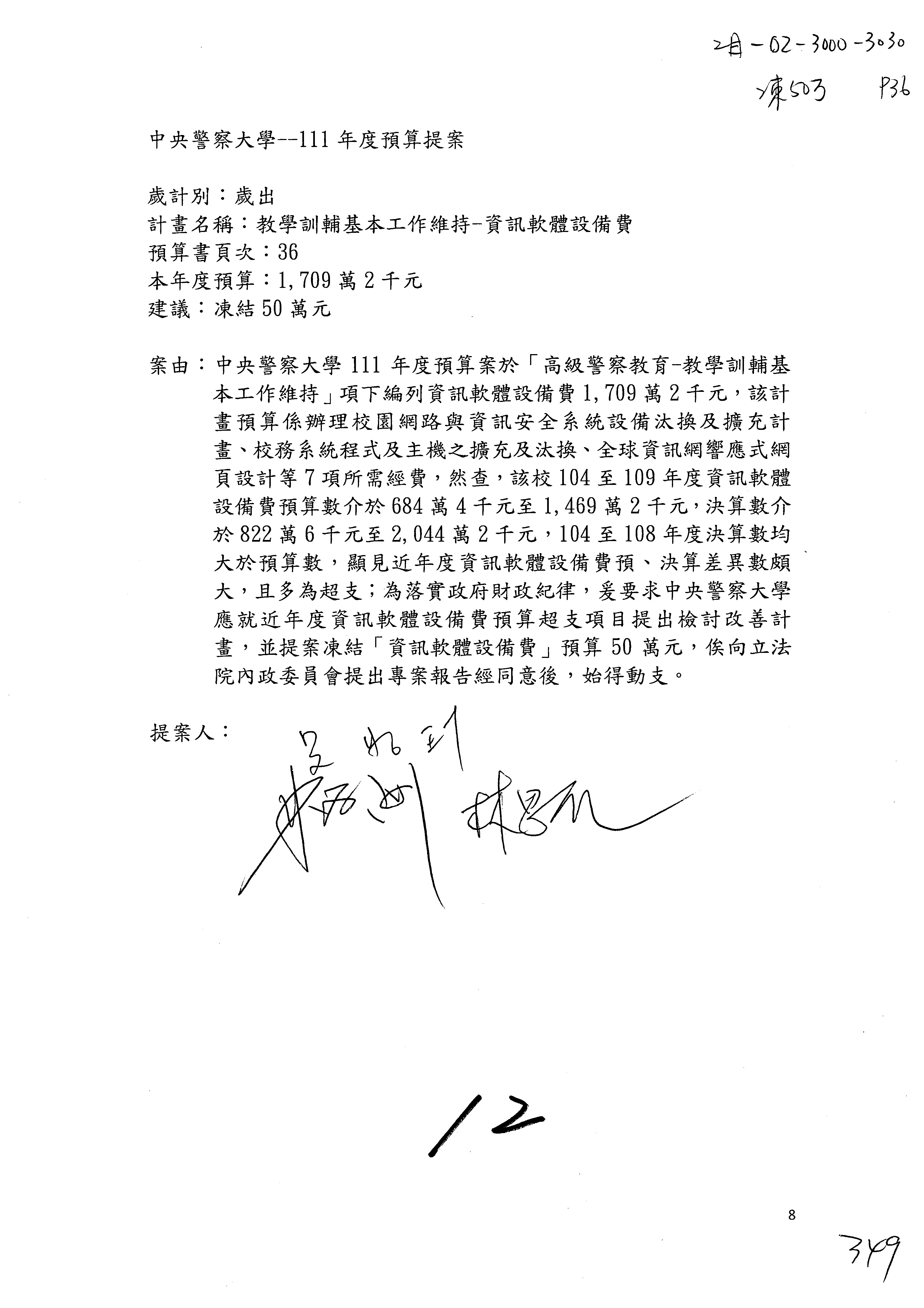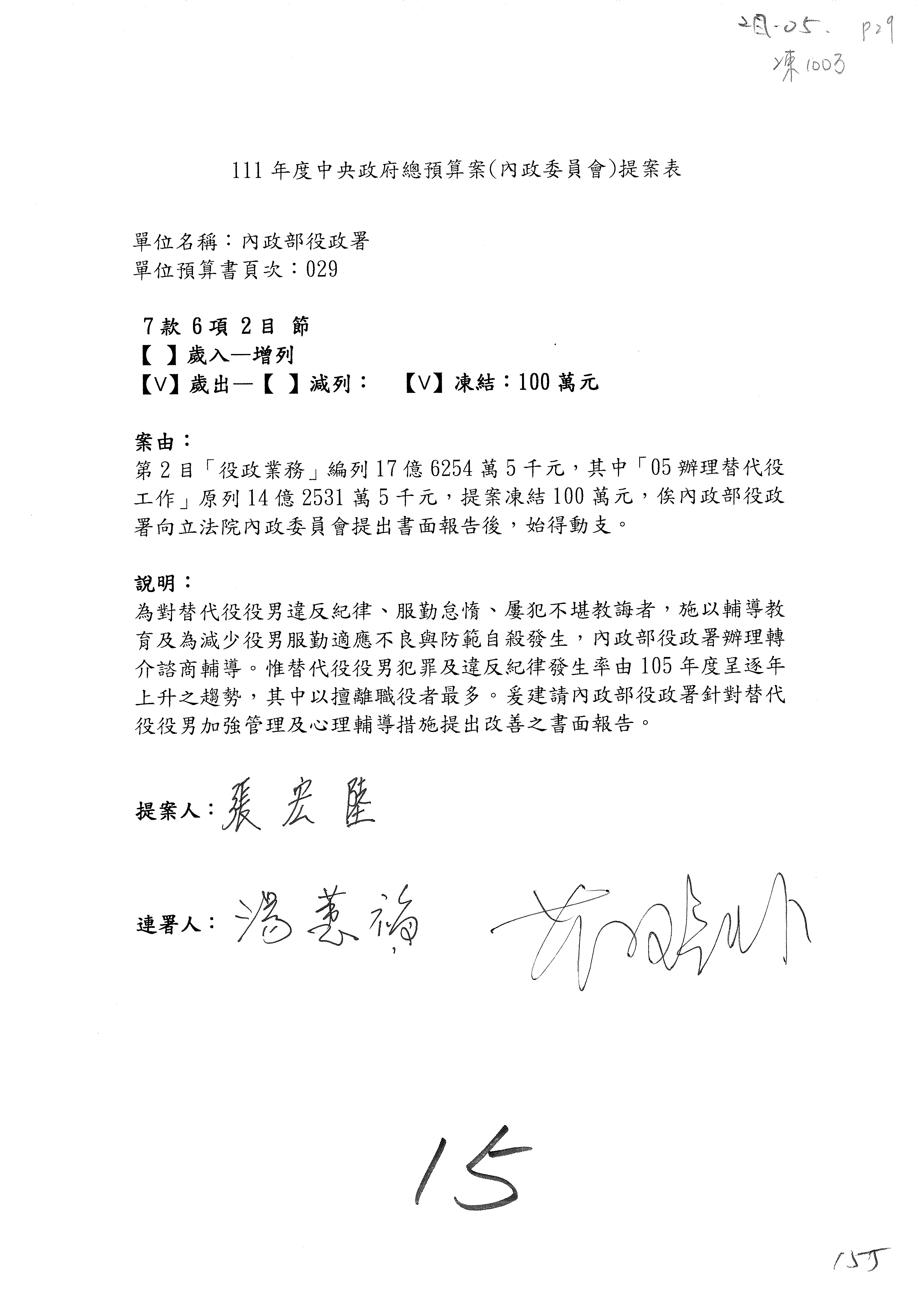 張委員宏陸:召委,我看整目凍100萬元或200萬元,請他們提報告給所有的委員,這樣……