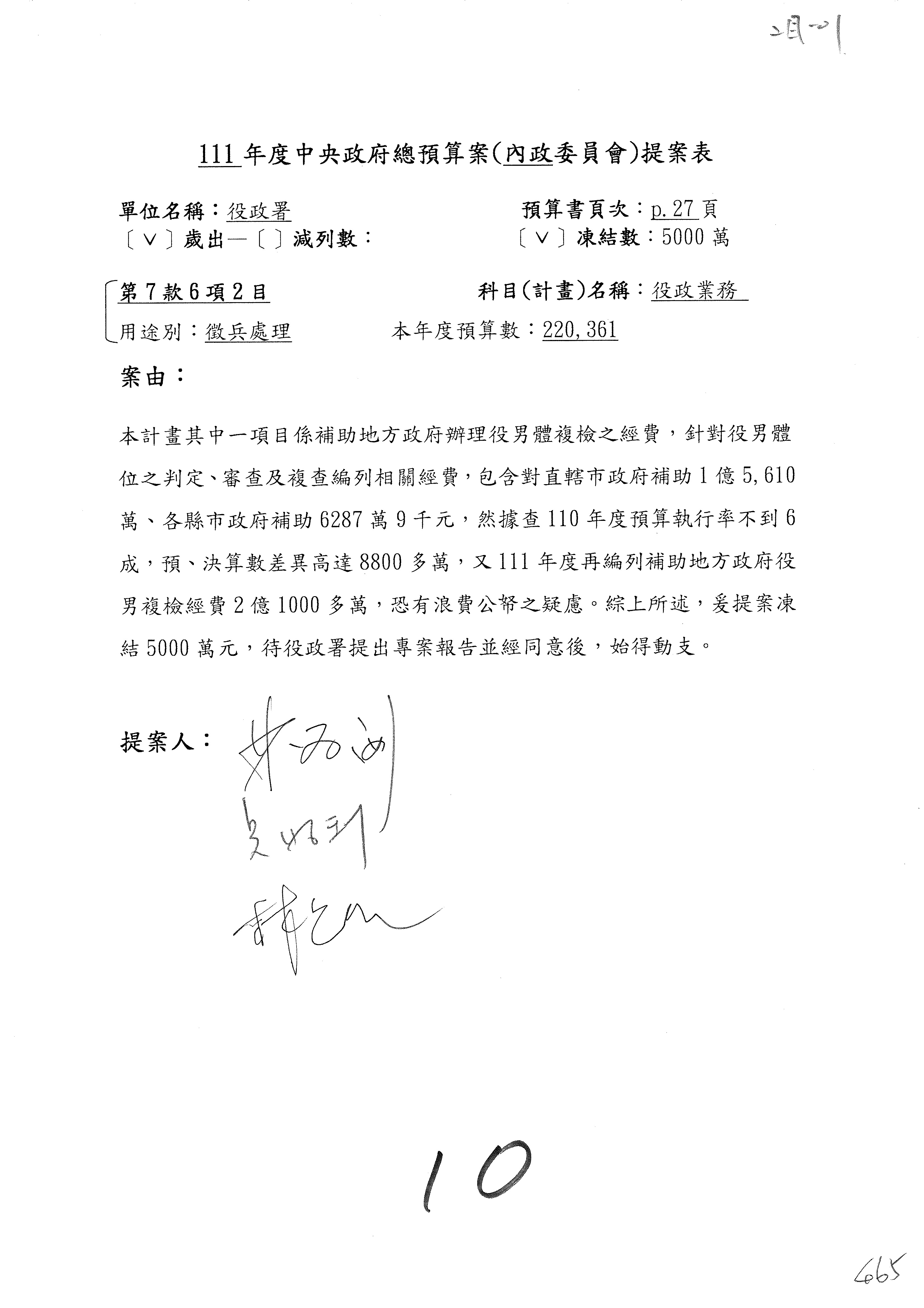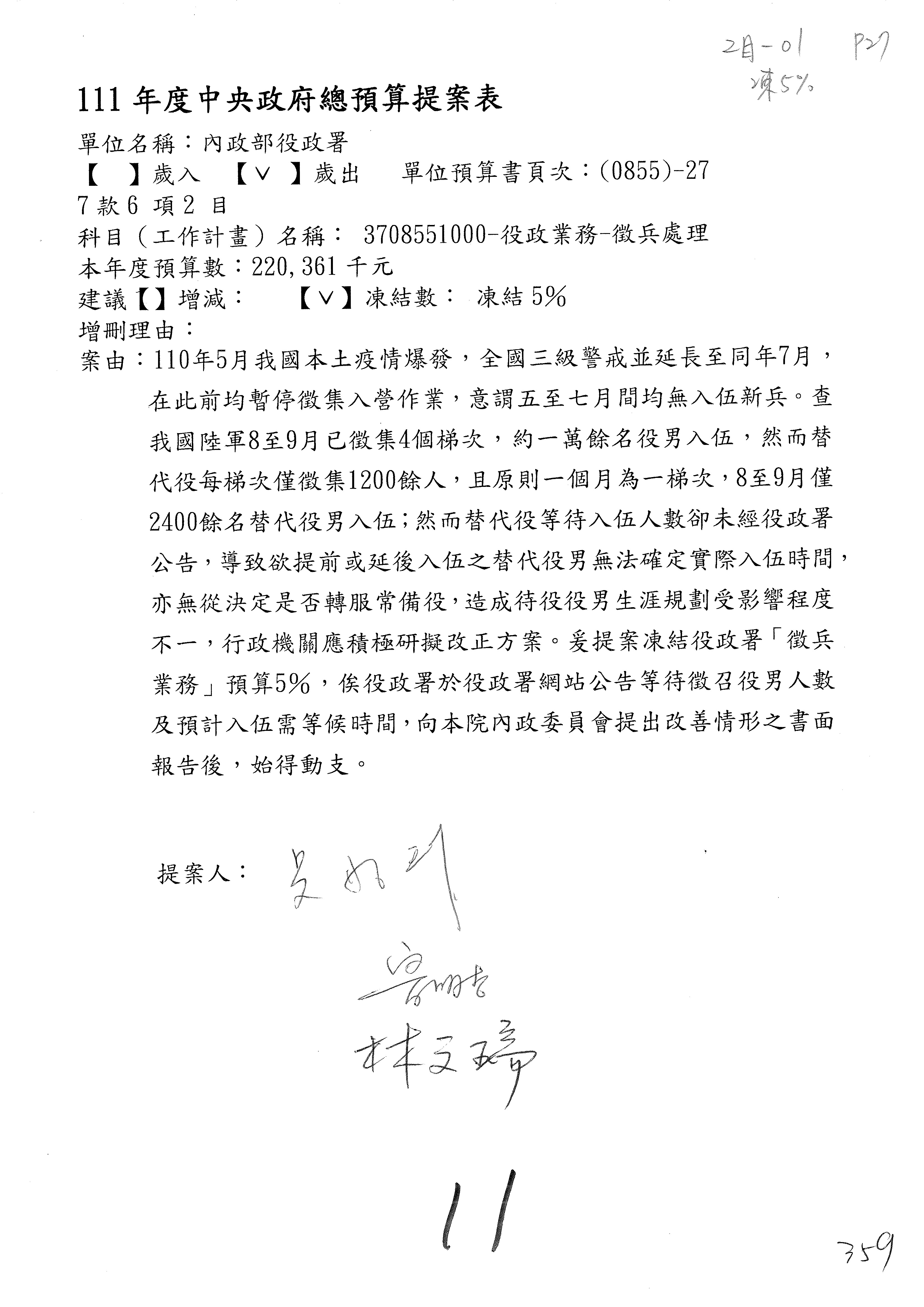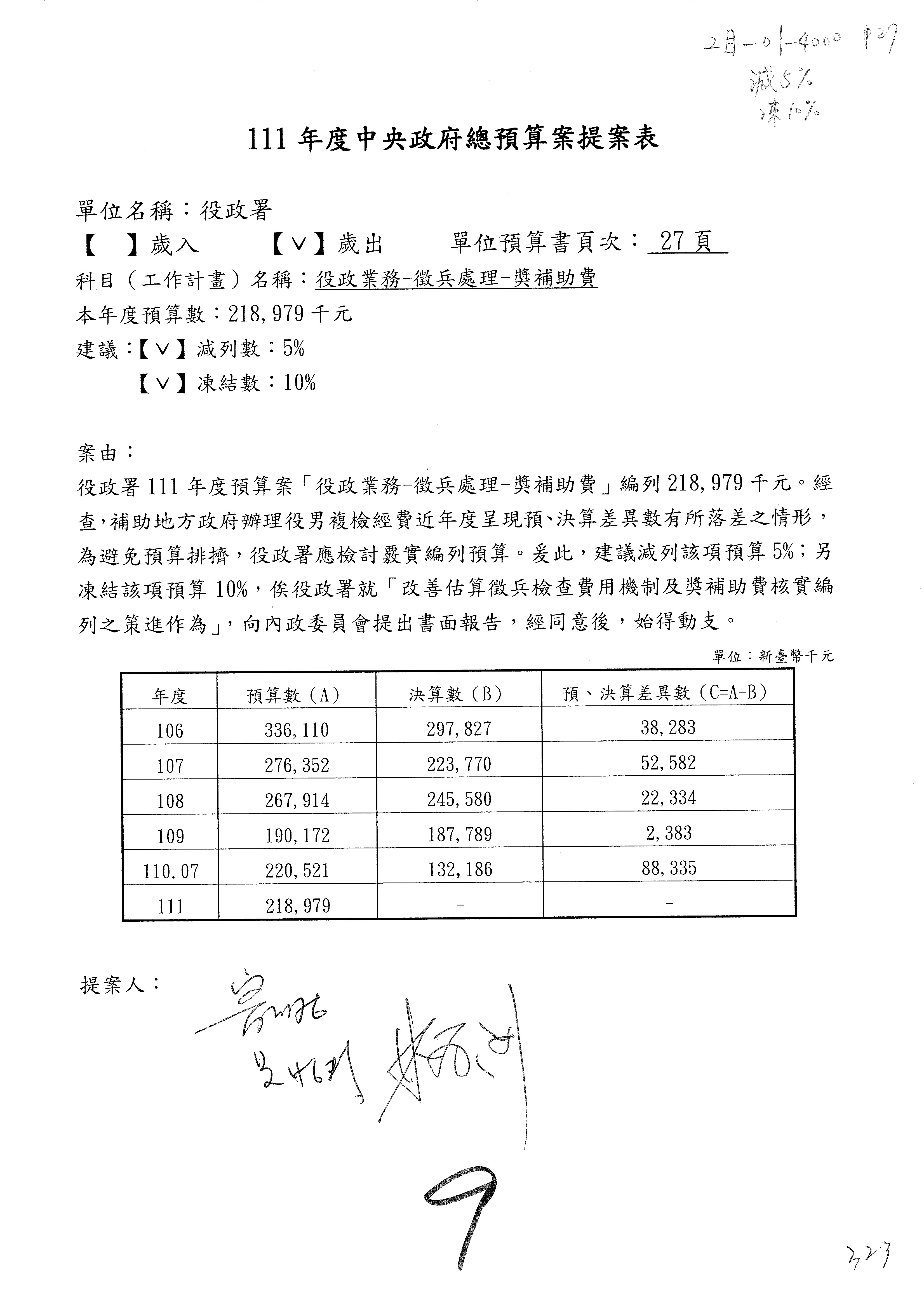 主席:現在講的是第26案,凍結十分之一,那這樣子,因為我要尊重委員的提案,如果要凍少一點的話,看其他委員是不是要幫忙他們講話,我沒有辦法替他們講話。
