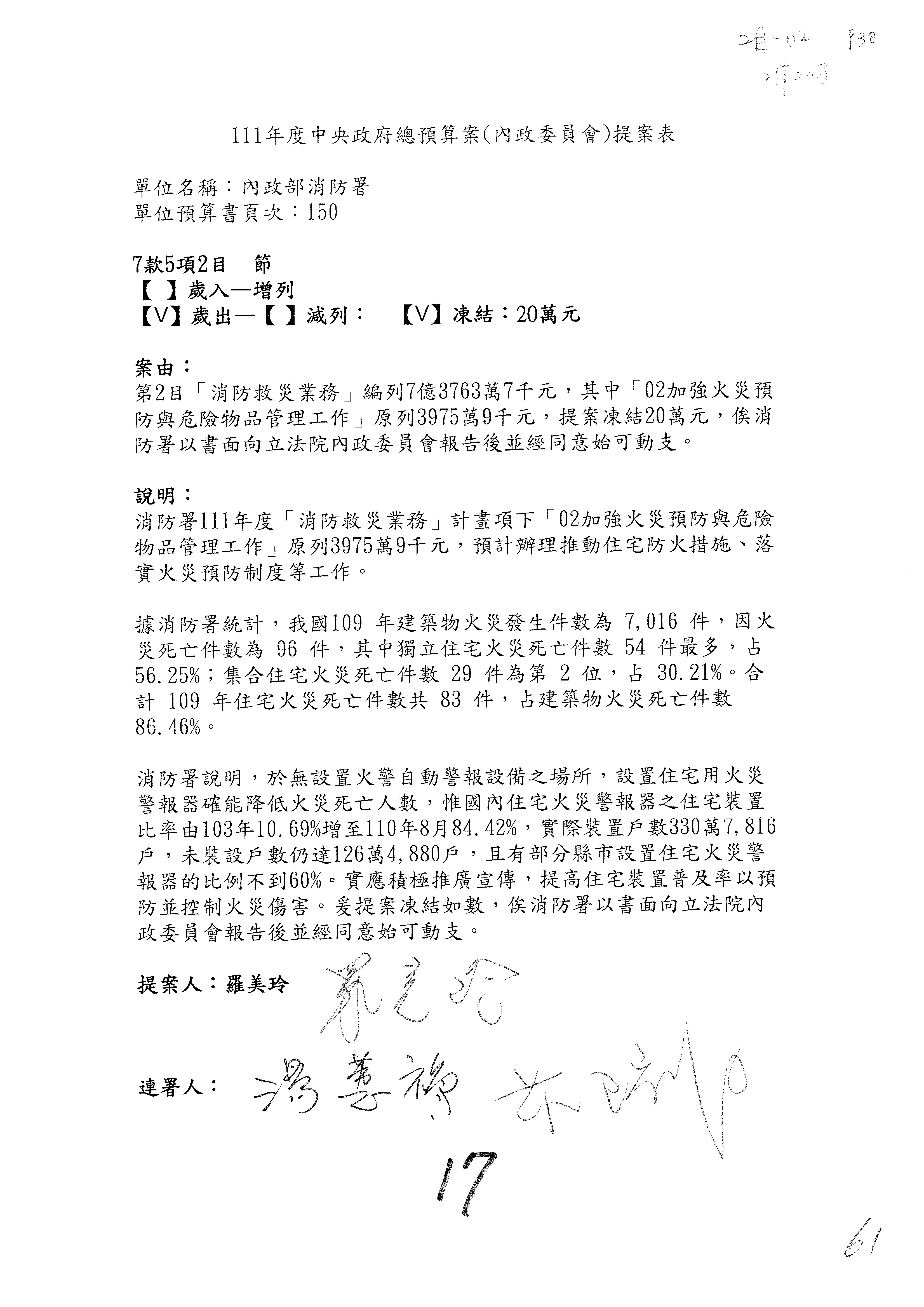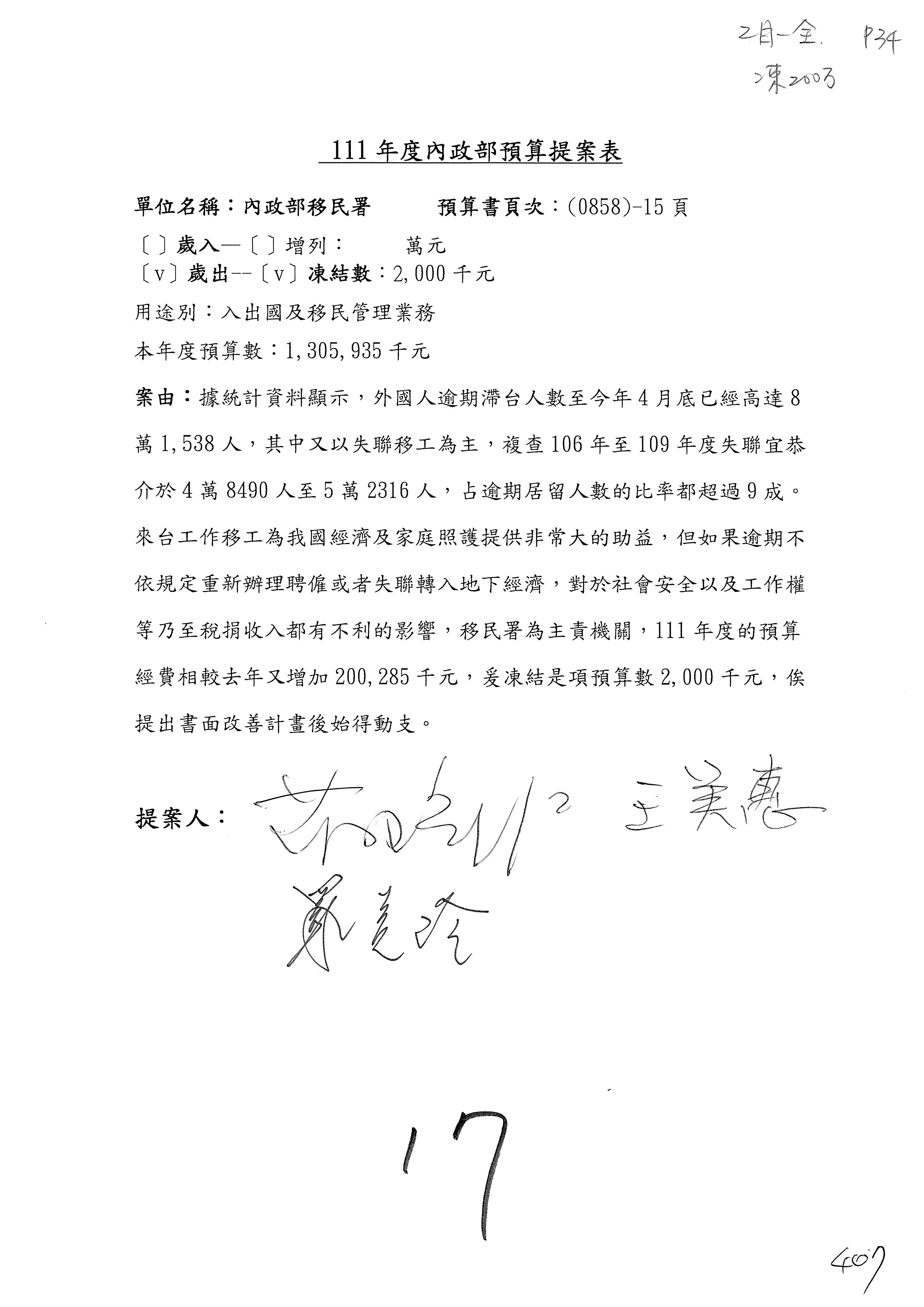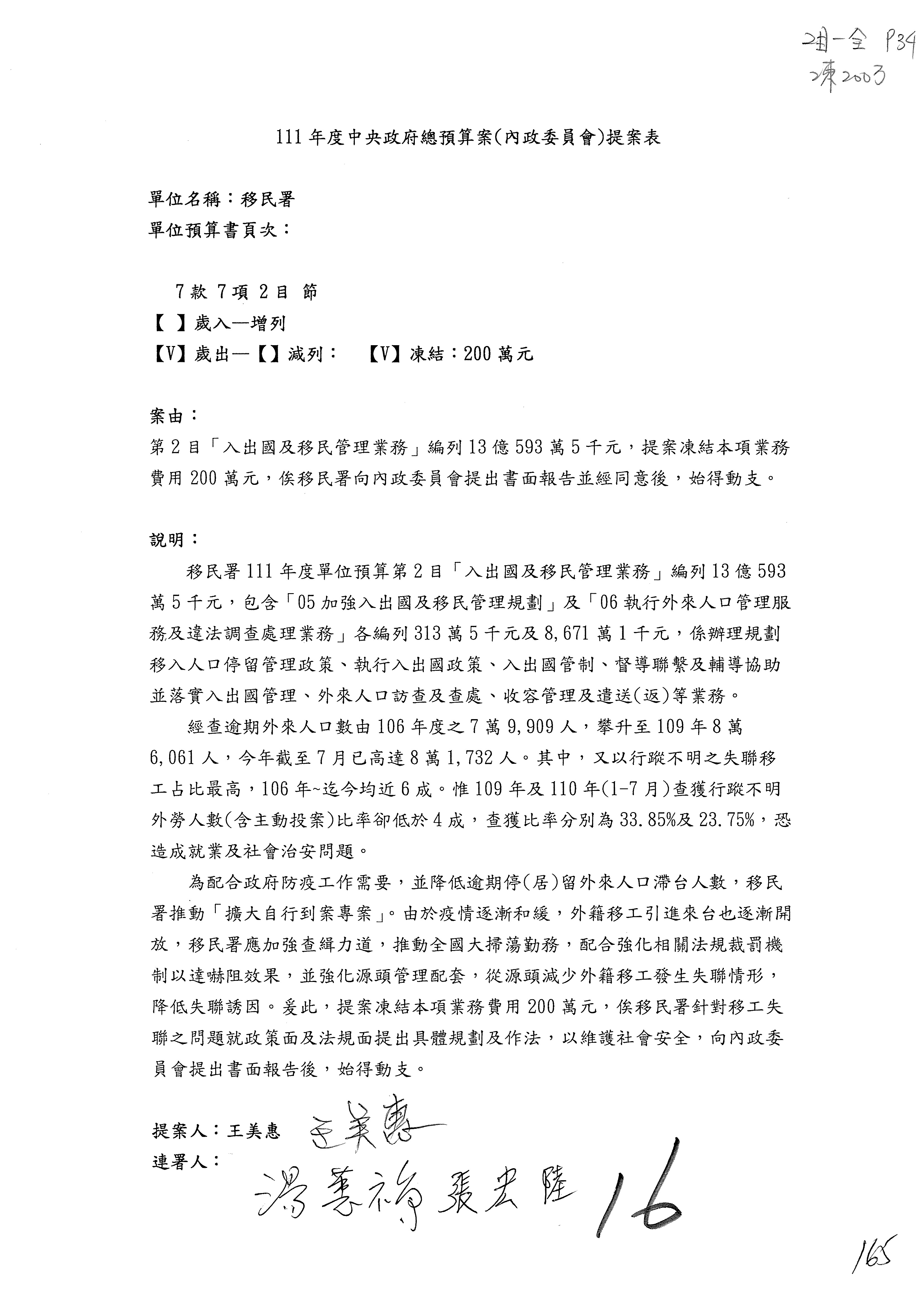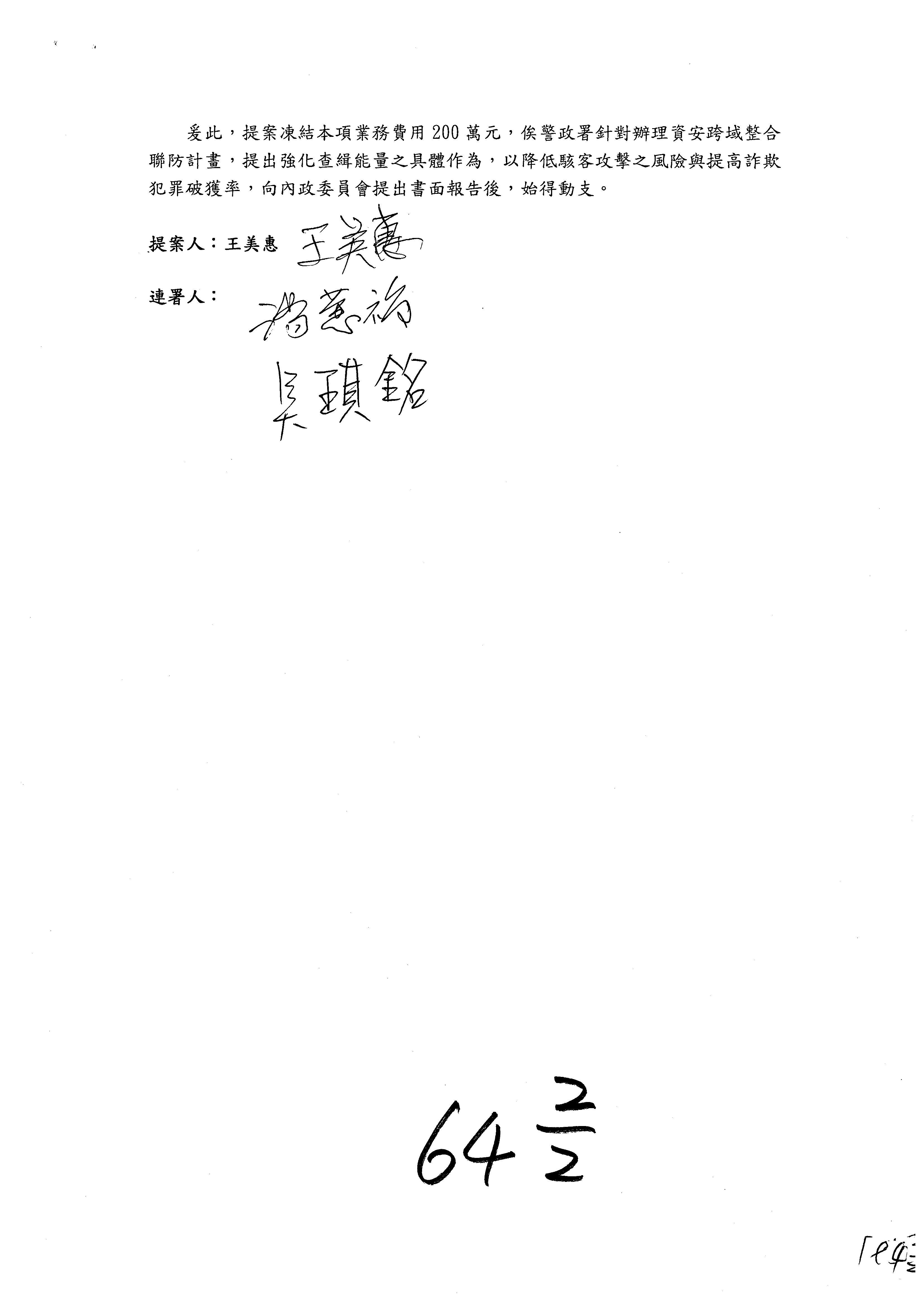 王委員美惠:召委,最後一遍,凍結200萬元。
