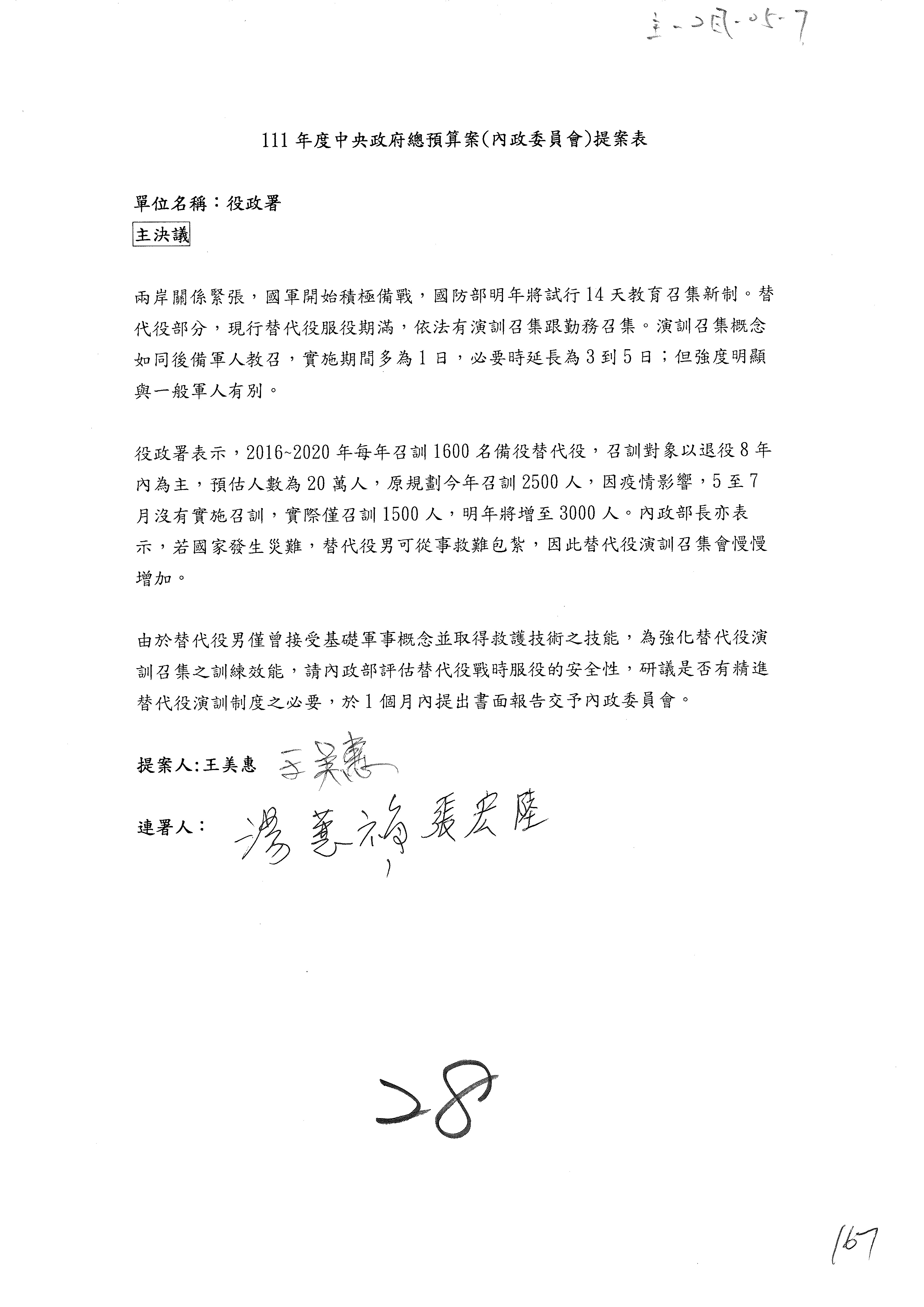 王委員美惠:召委,之前他們有到我辦公室說明,我覺得安全也要注意,訓練時也要相當地用心。