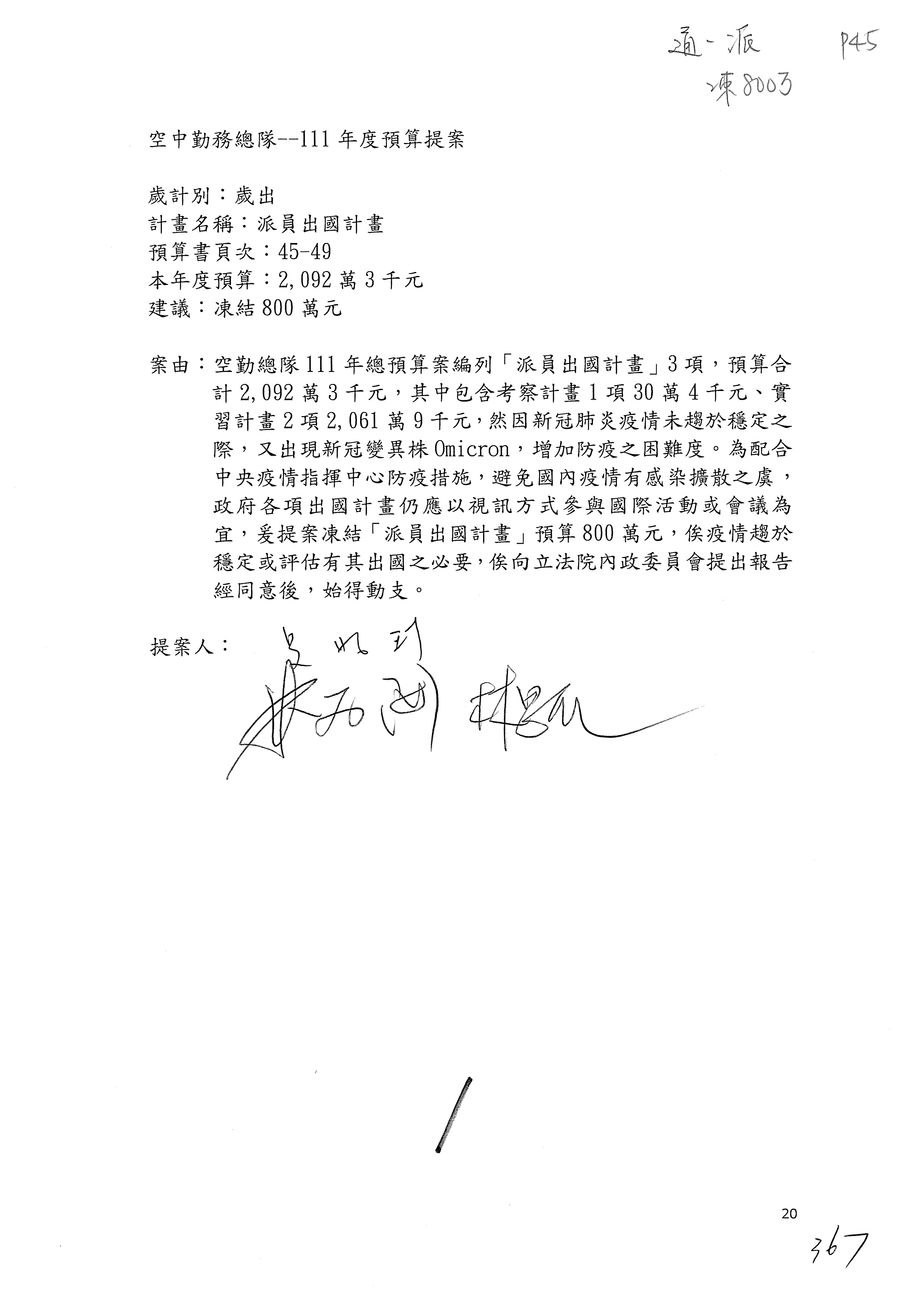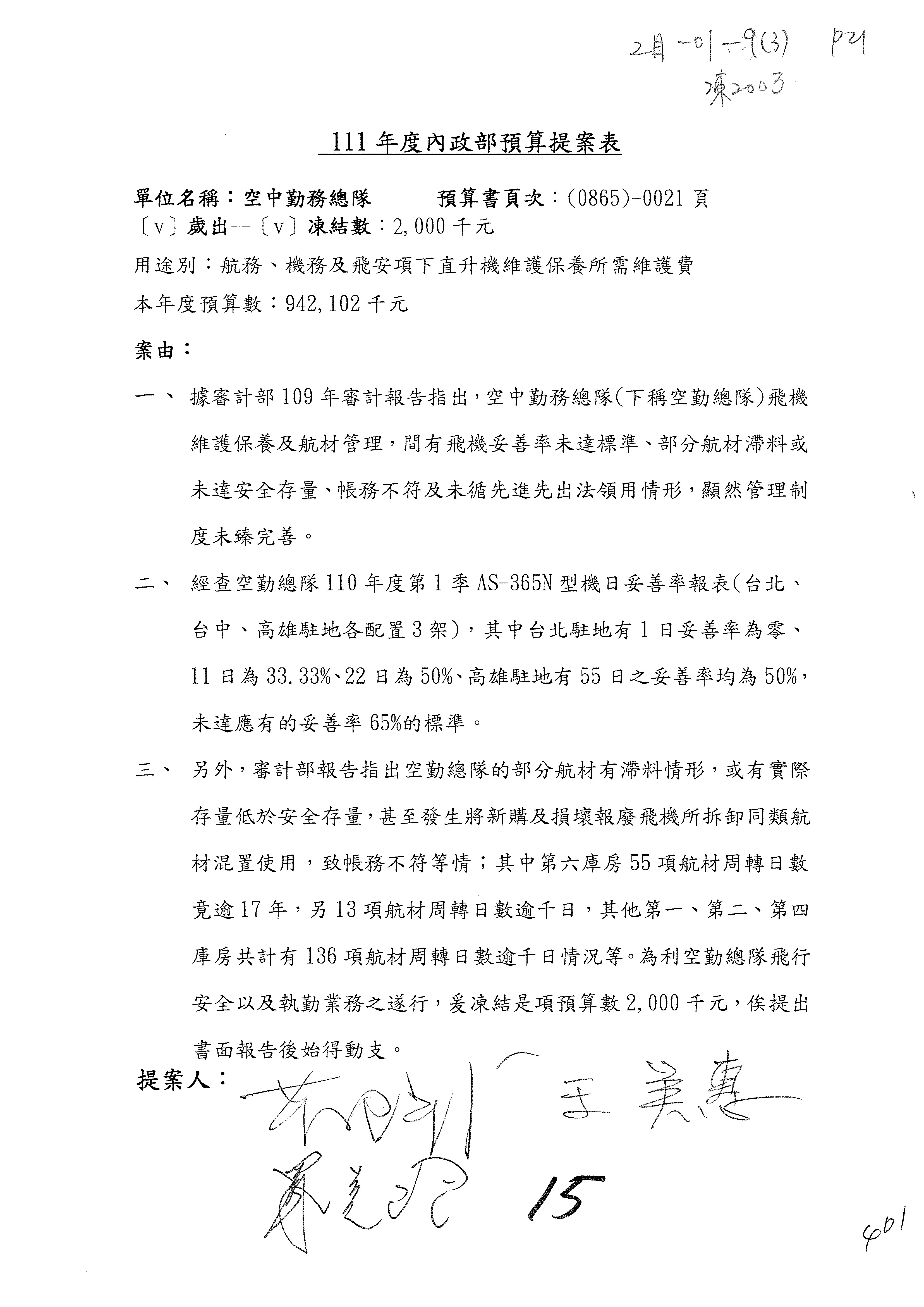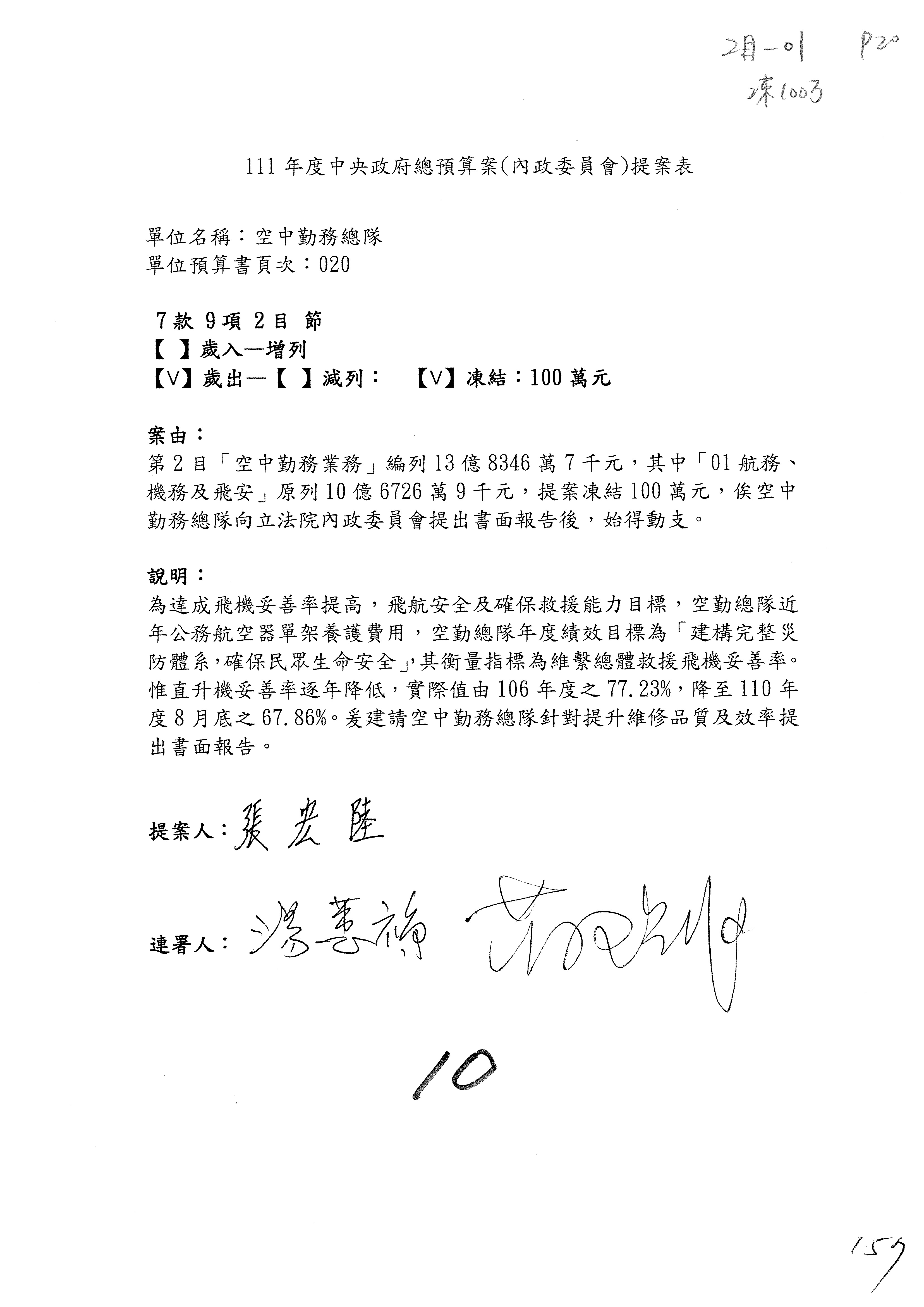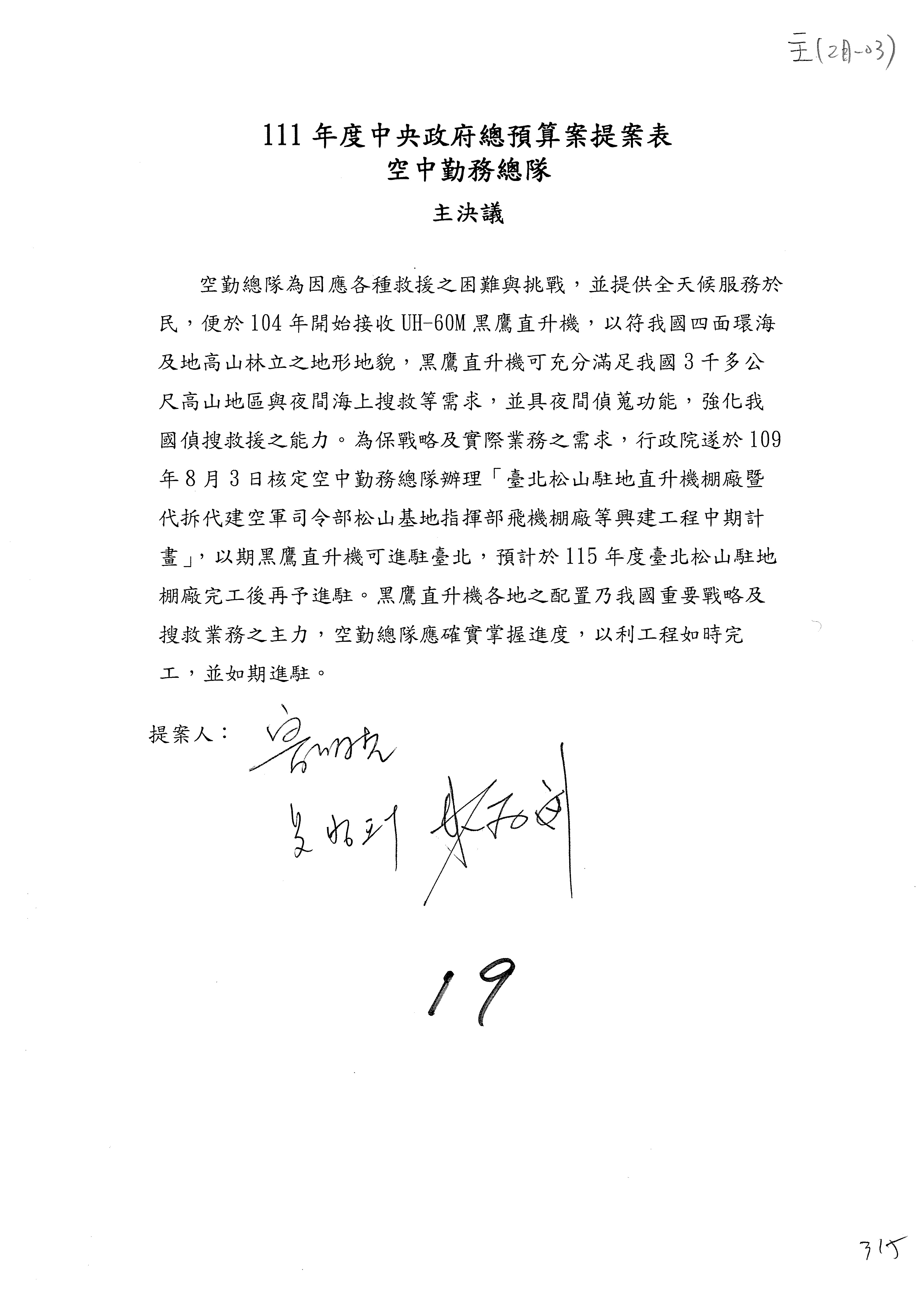 役政署人員可以先行離開,接下來進行空中勤務總隊預算協商。