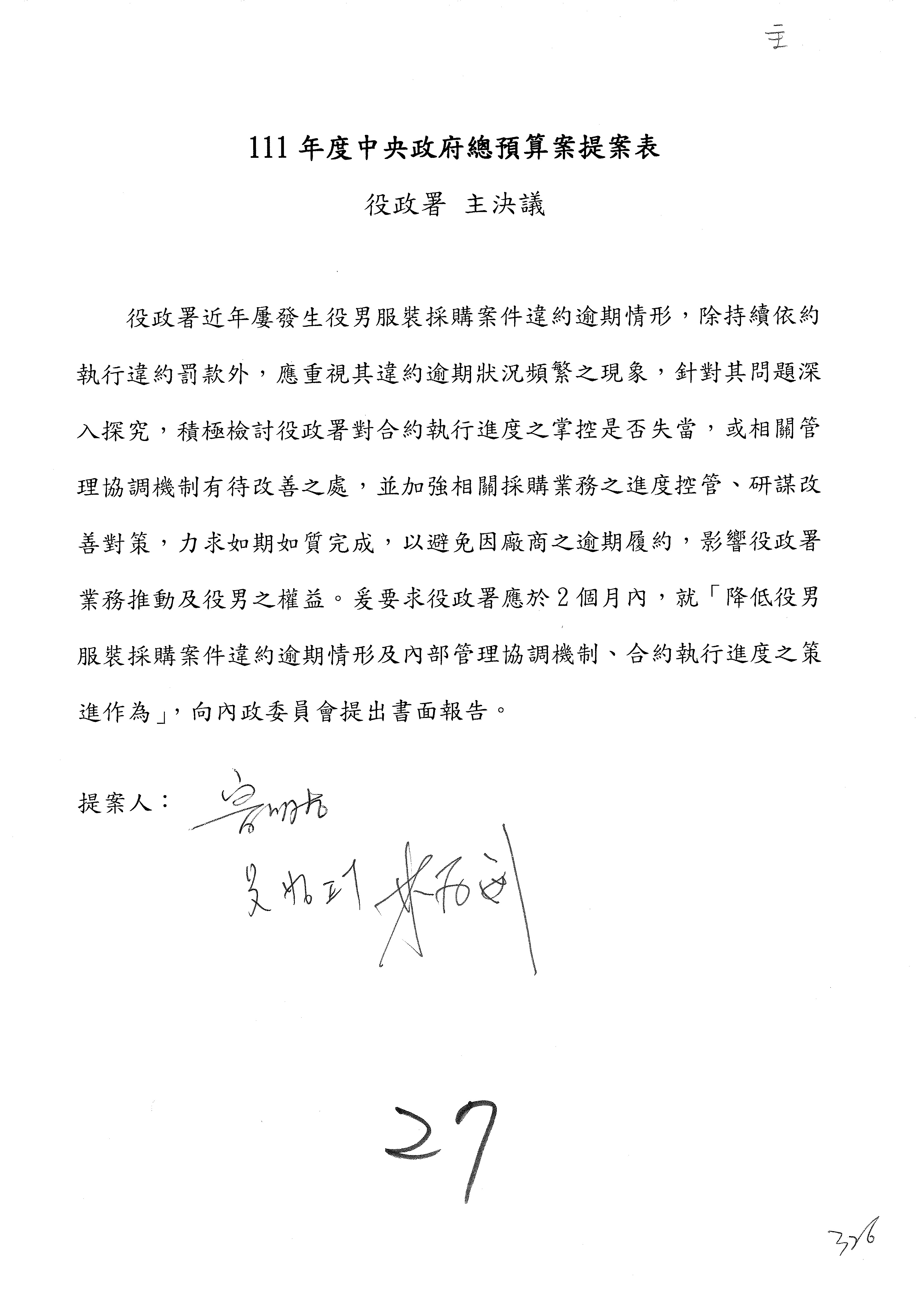 主席:這是莊委員瑞雄的提案,第26案修正通過,凍結50萬元,提書面報告。