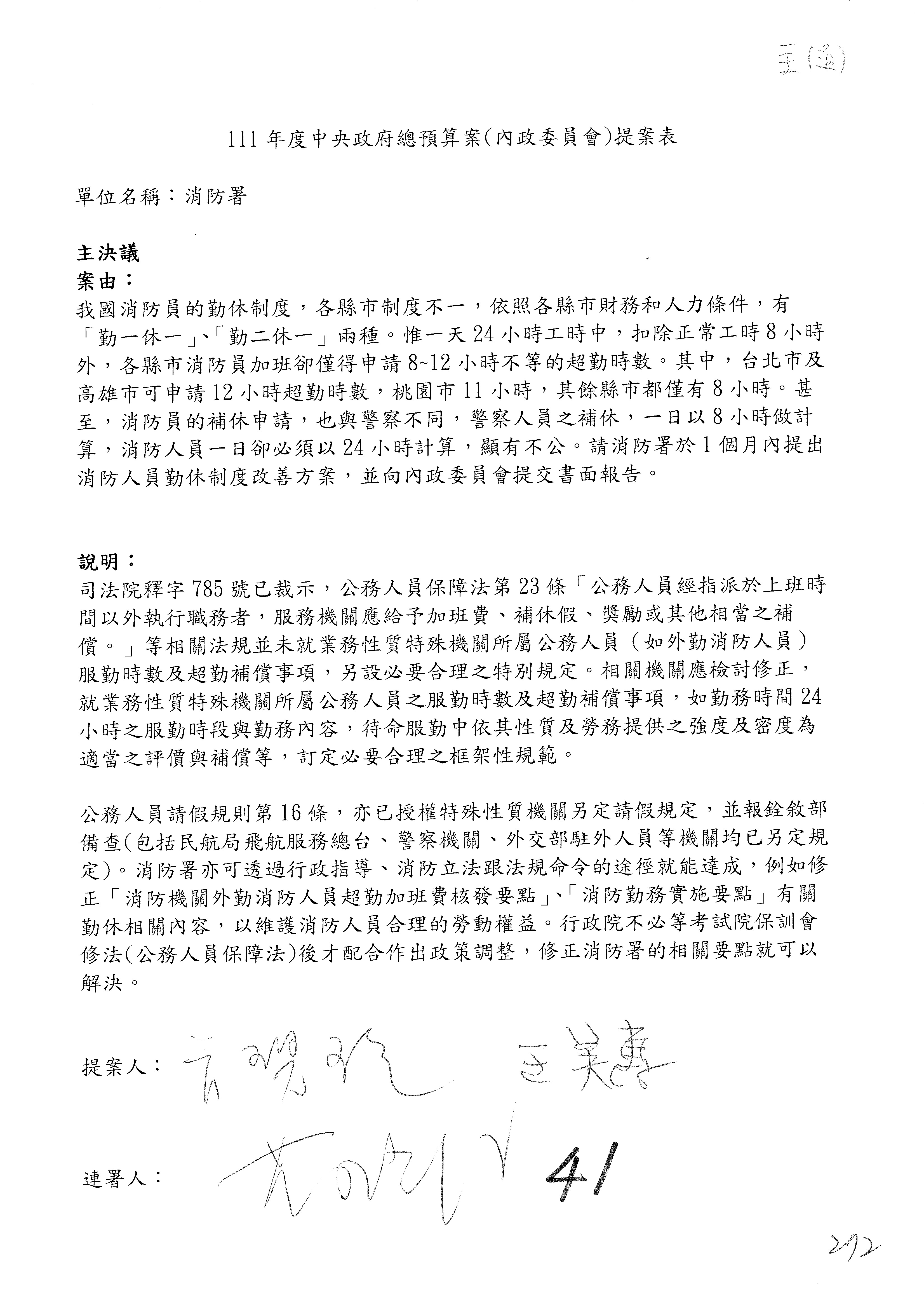 魯委員明哲:第17案,你寫的字比我原案還多喔,我以為是總隊長幫我提案呢!