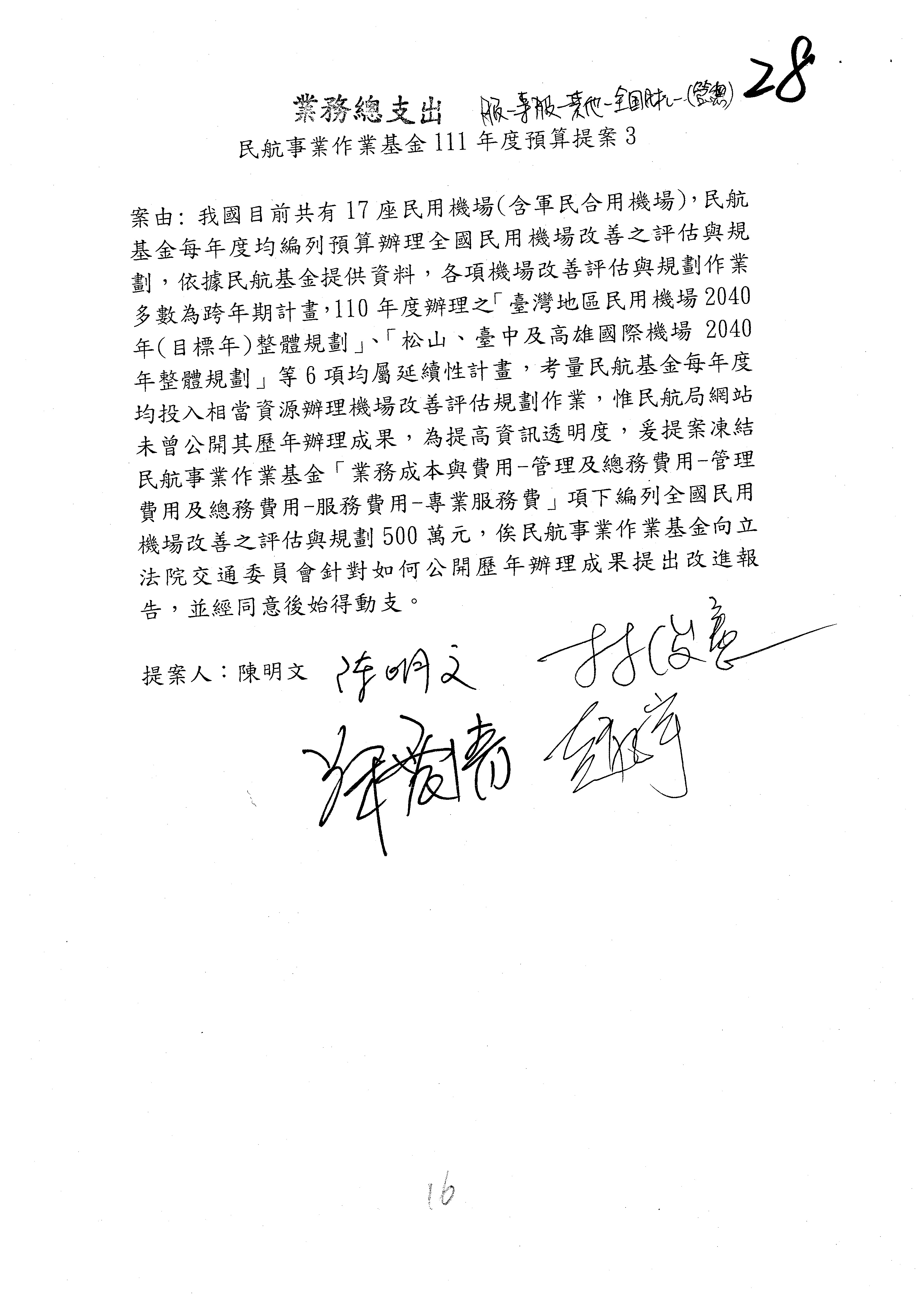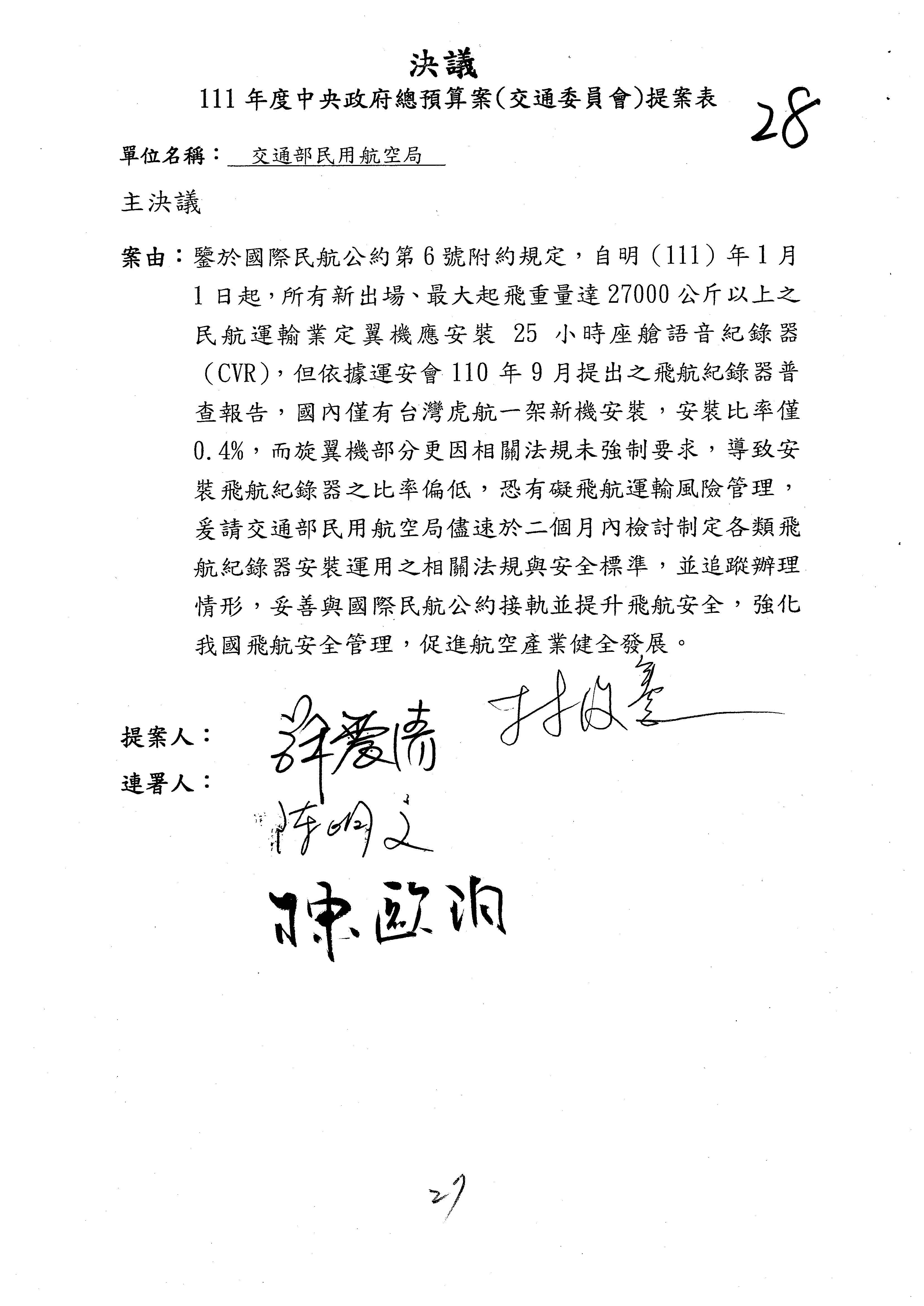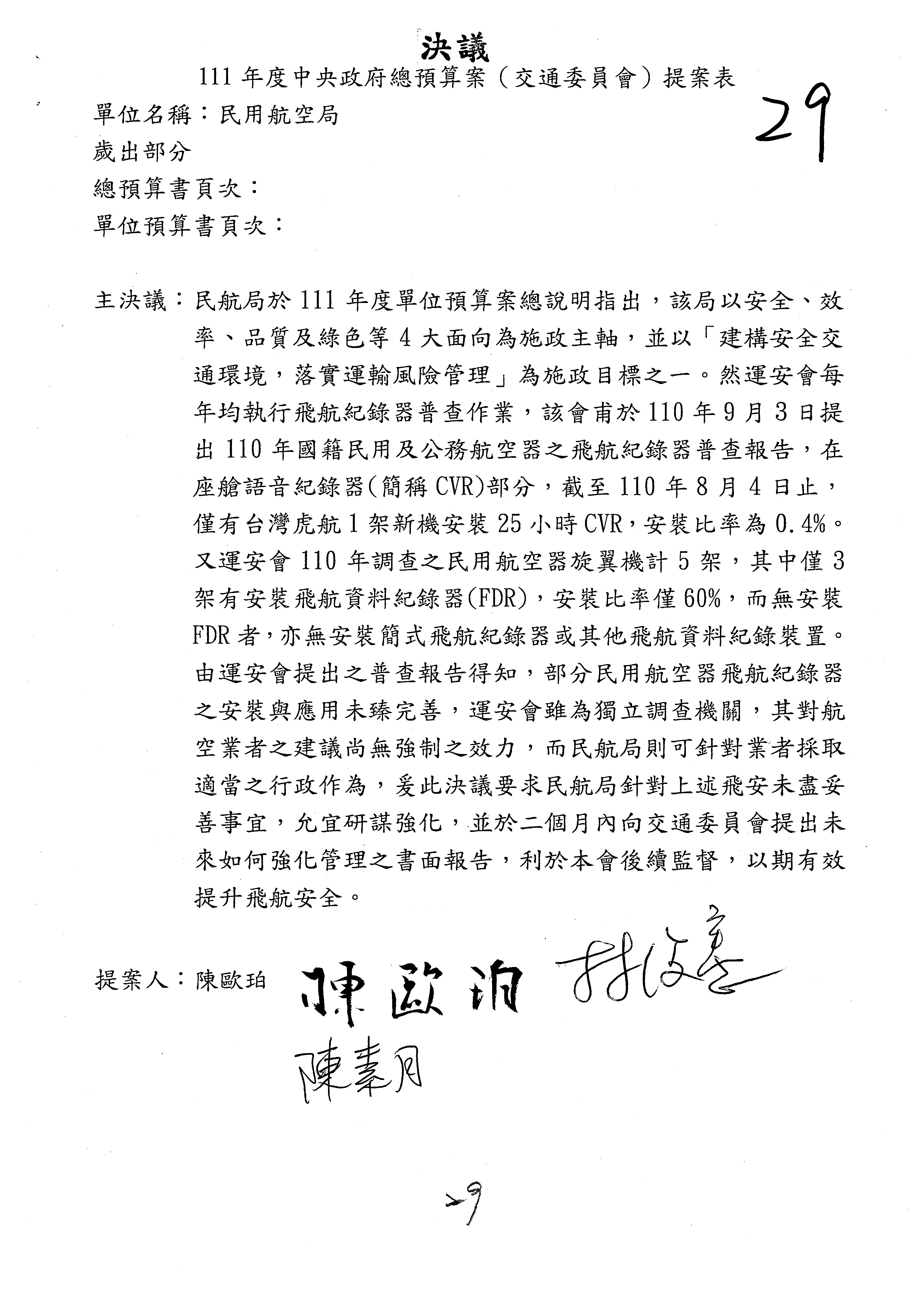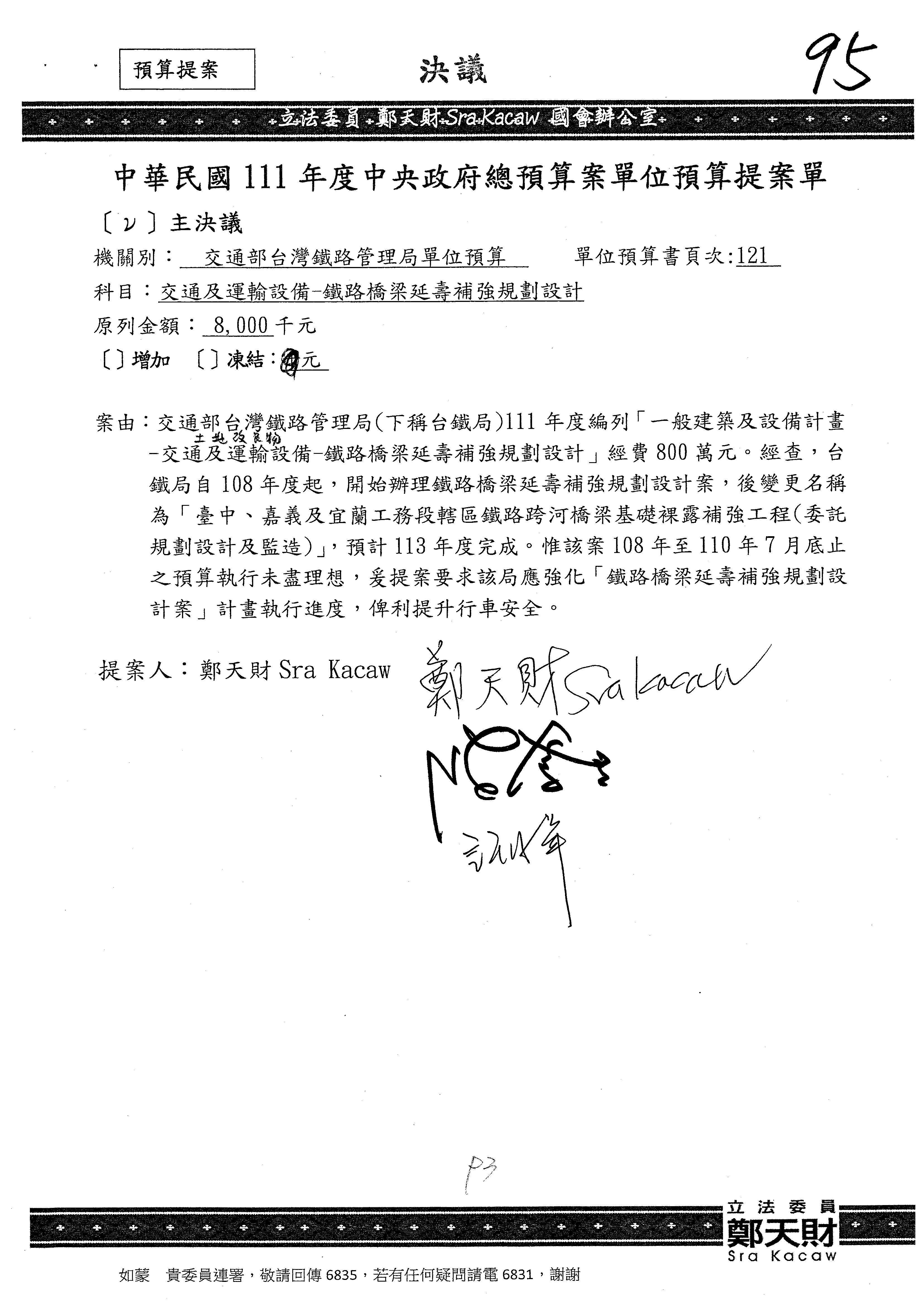 杜局長微:不好意思,報告召委,第93案有一個修正建議,就是倒數第2行有「合理預算及旅客保險額度……」能不能修成「合理預算及研議旅客保險……」?