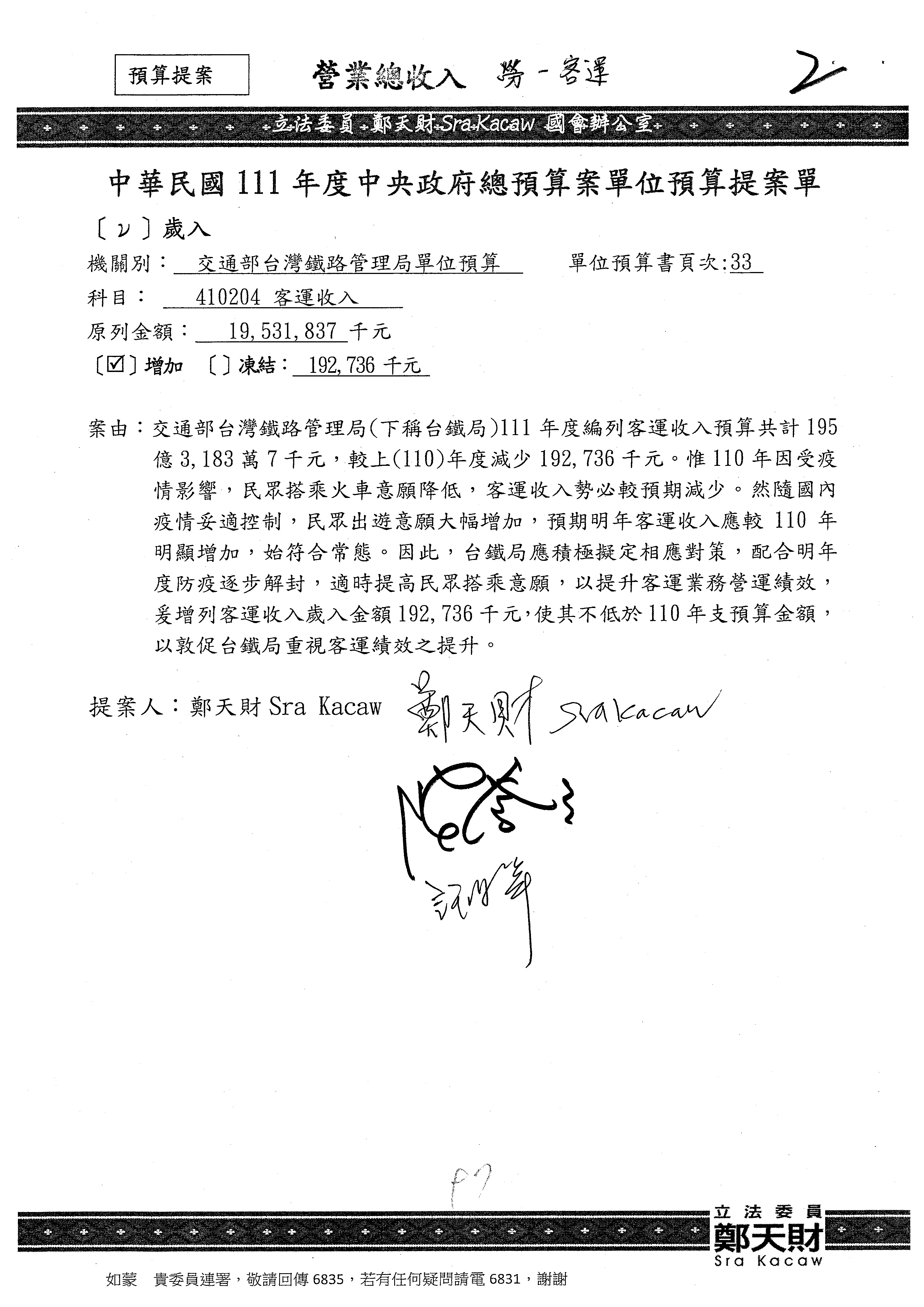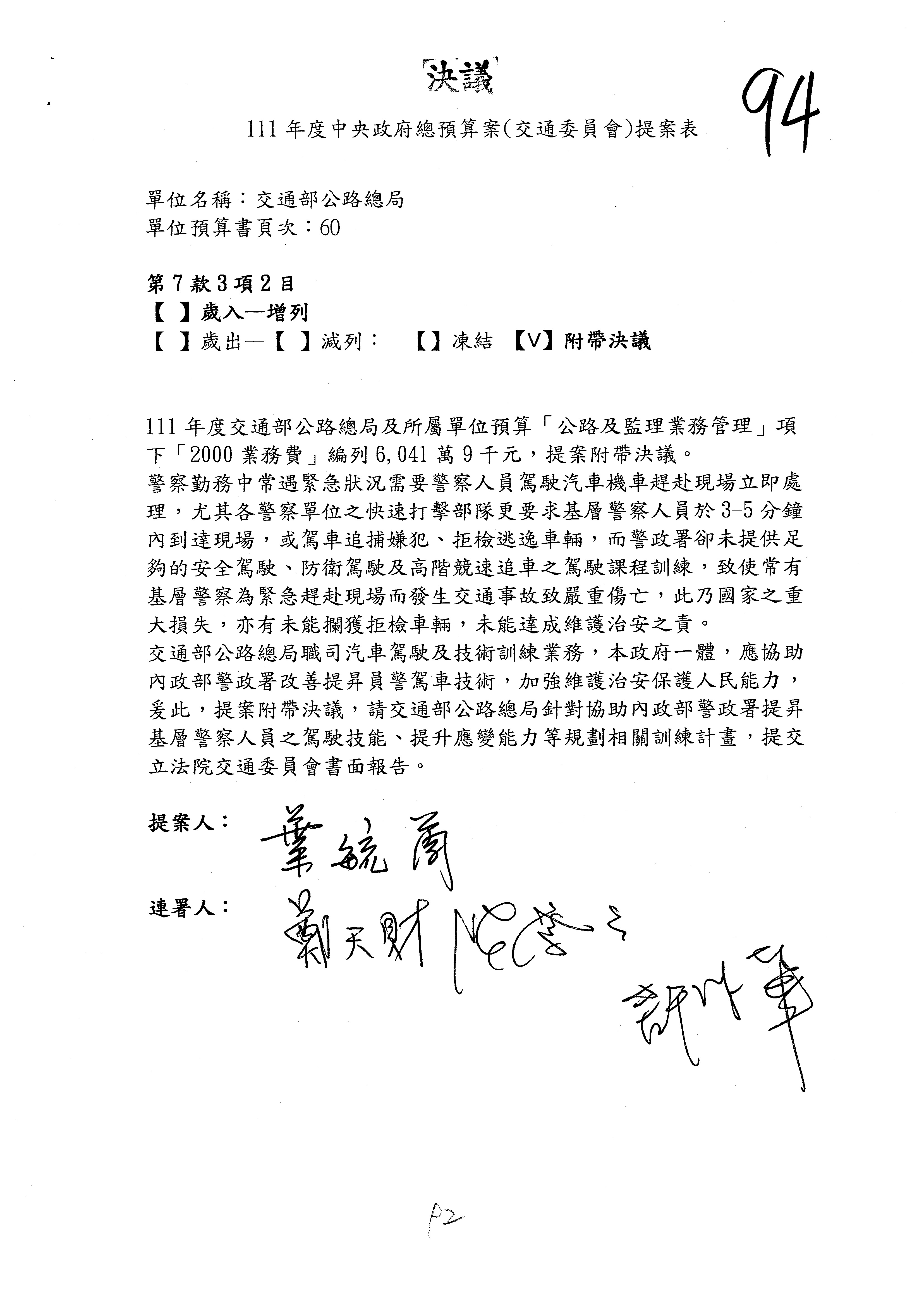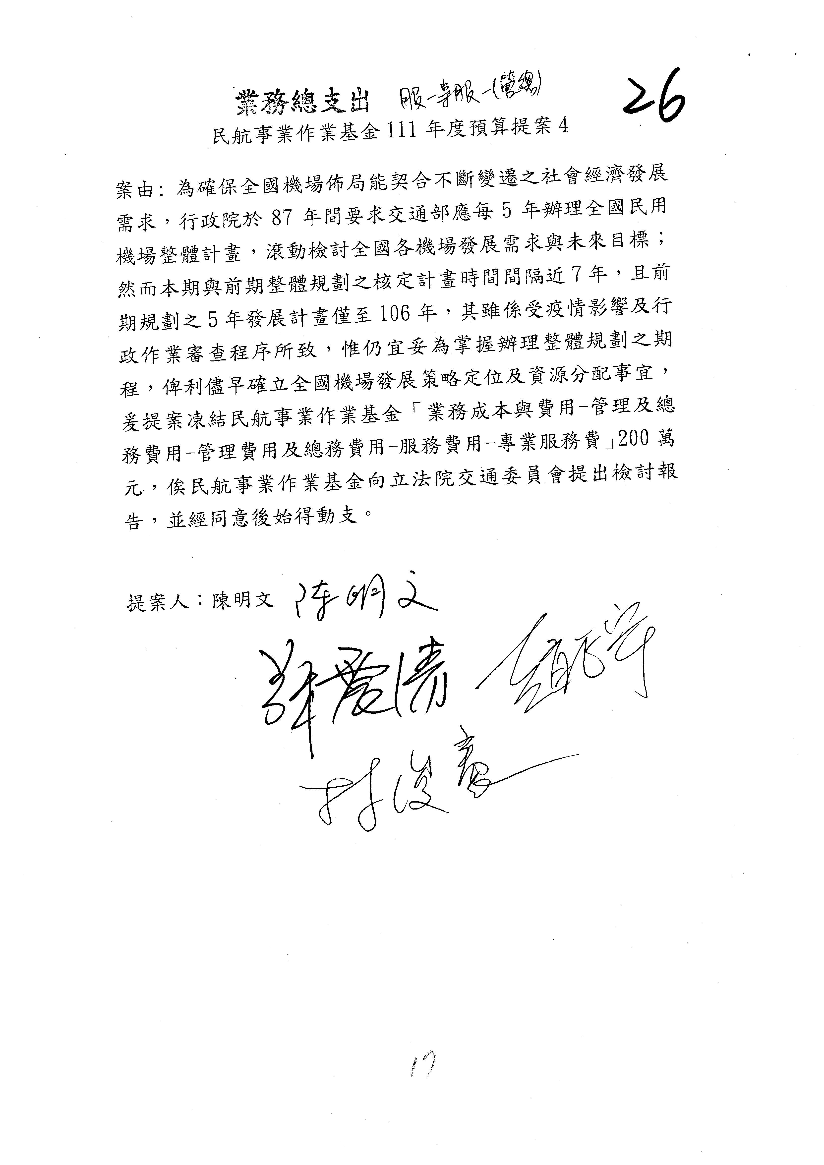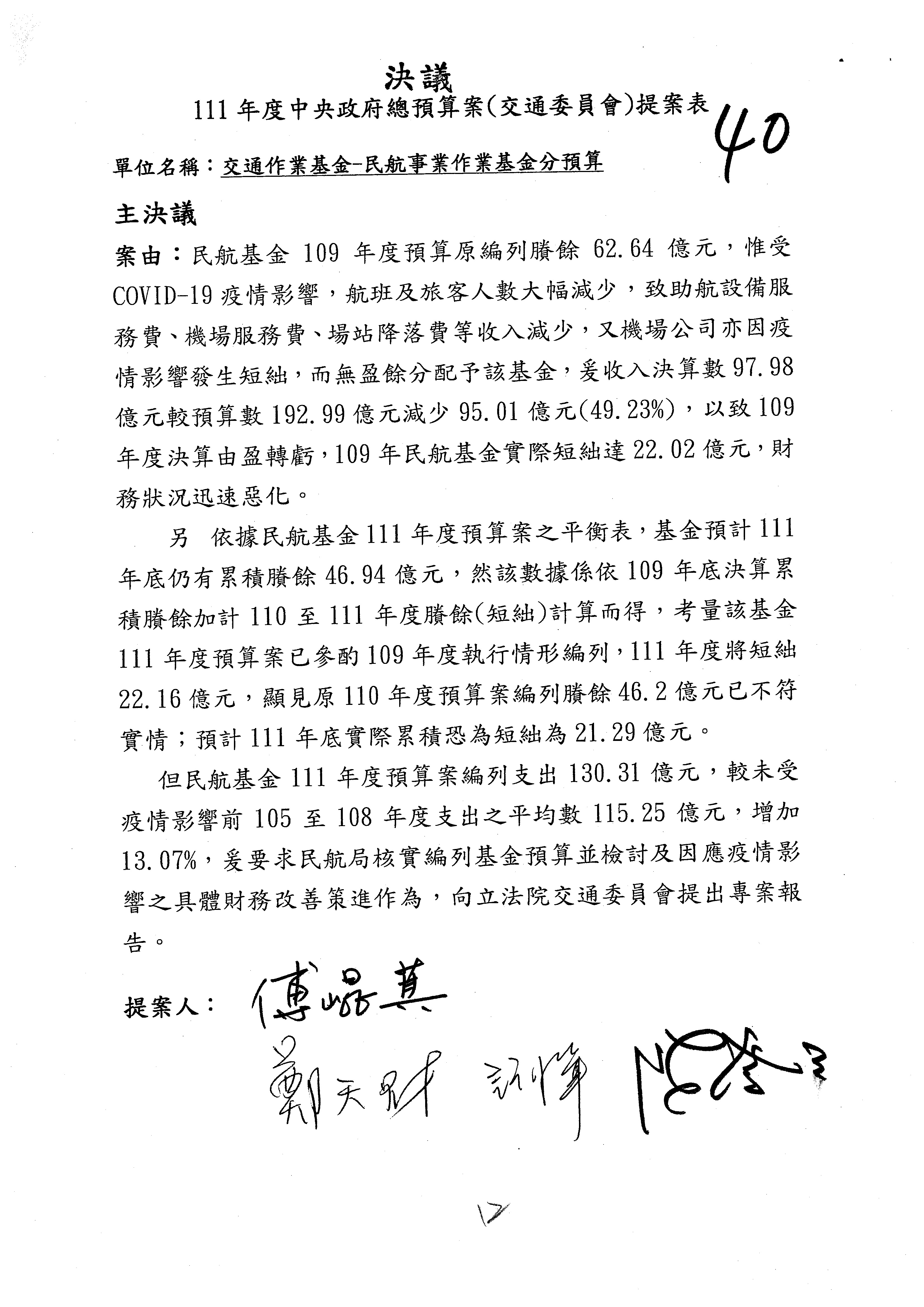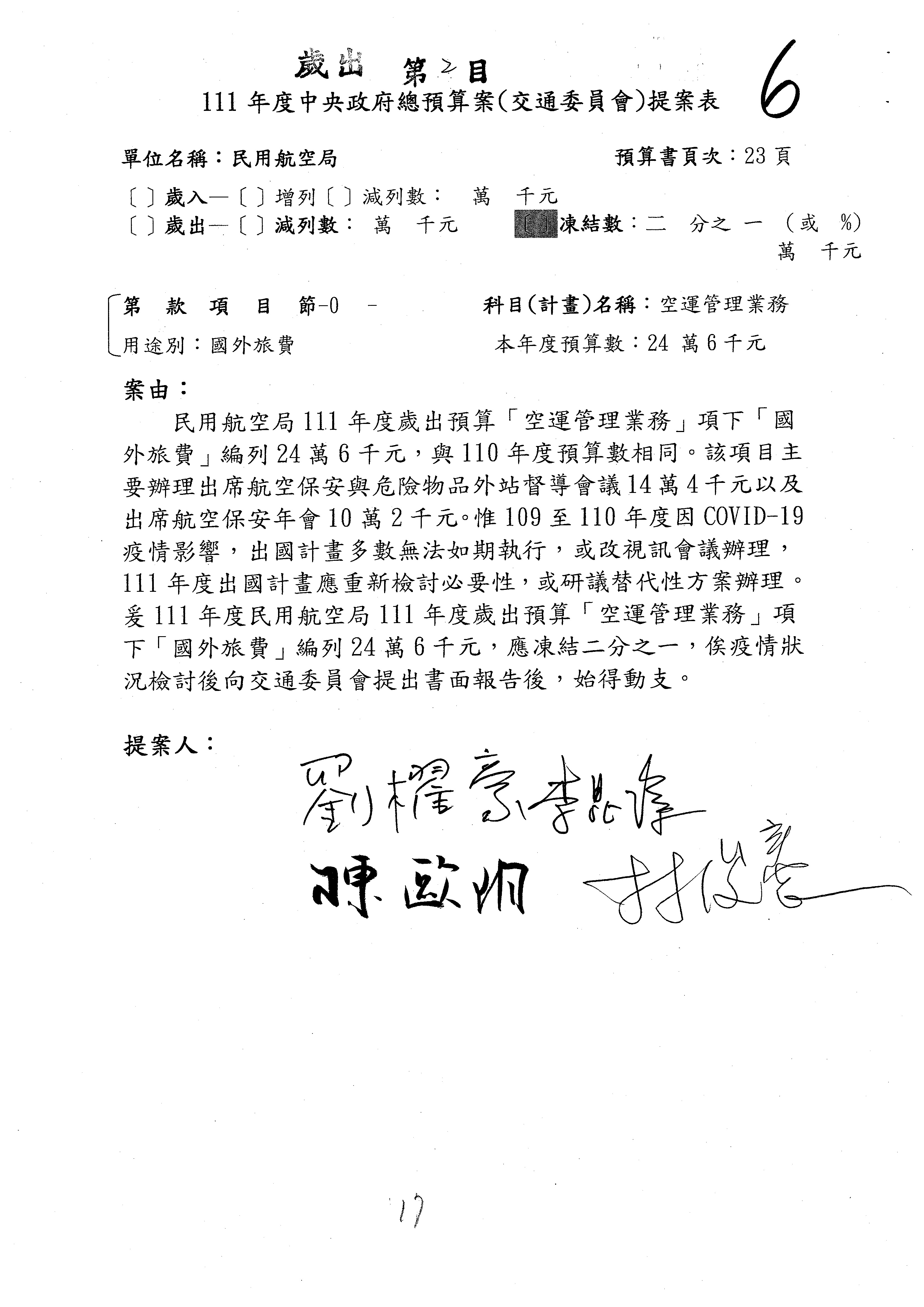 杜局長微:不好意思,報告召委,第93案有一個修正建議,就是倒數第2行有「合理預算及旅客保險額度……」能不能修成「合理預算及研議旅客保險……」?
