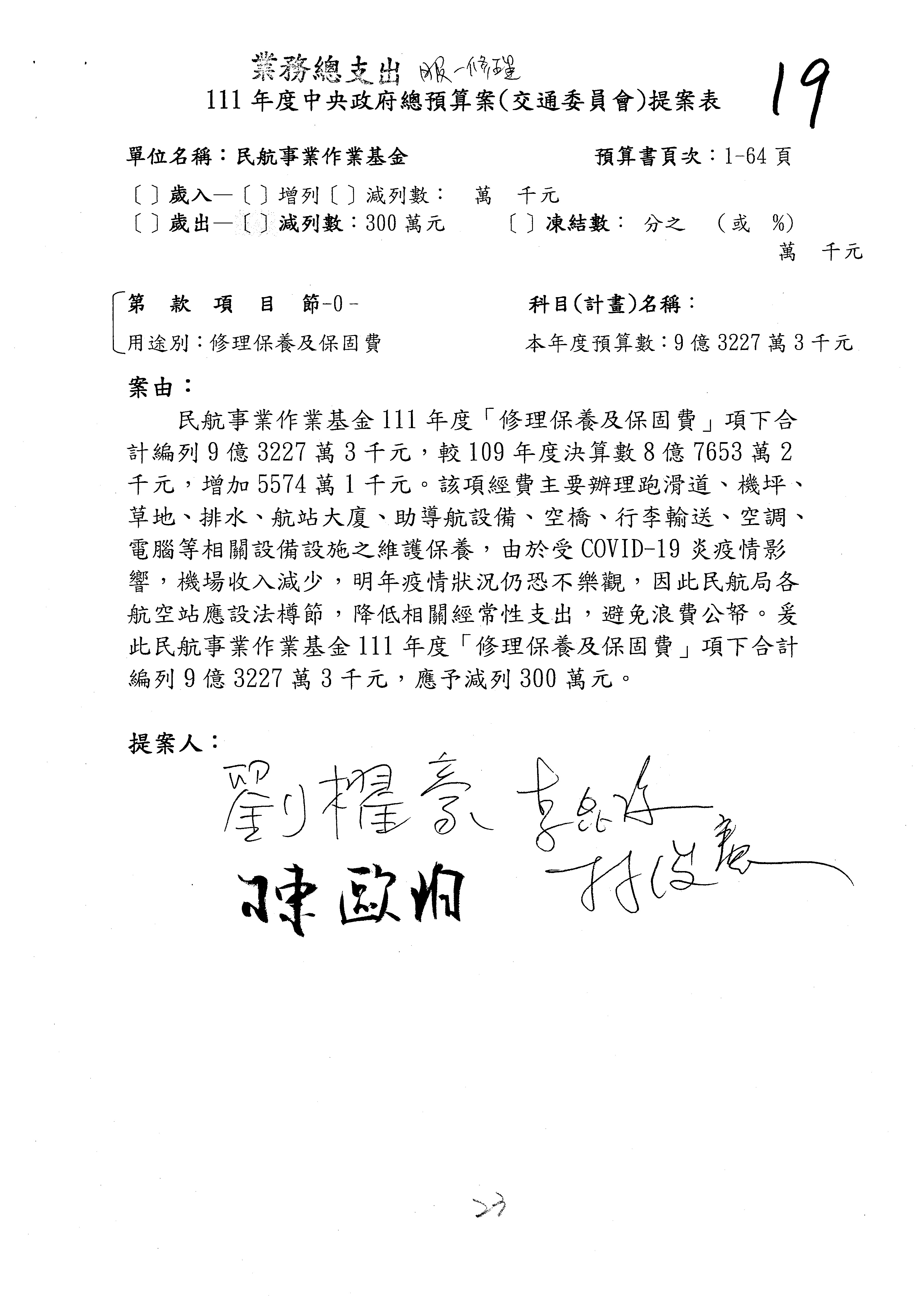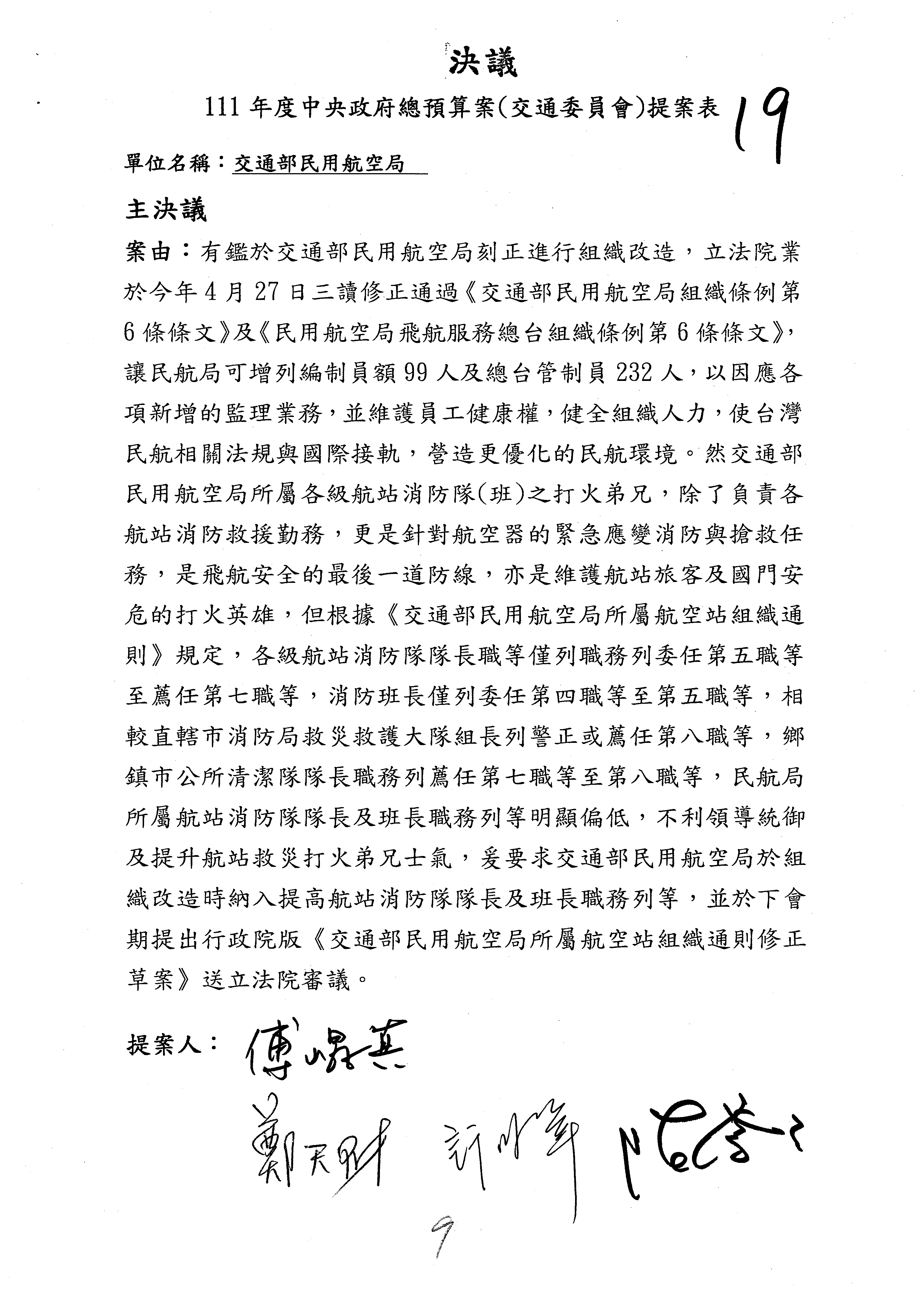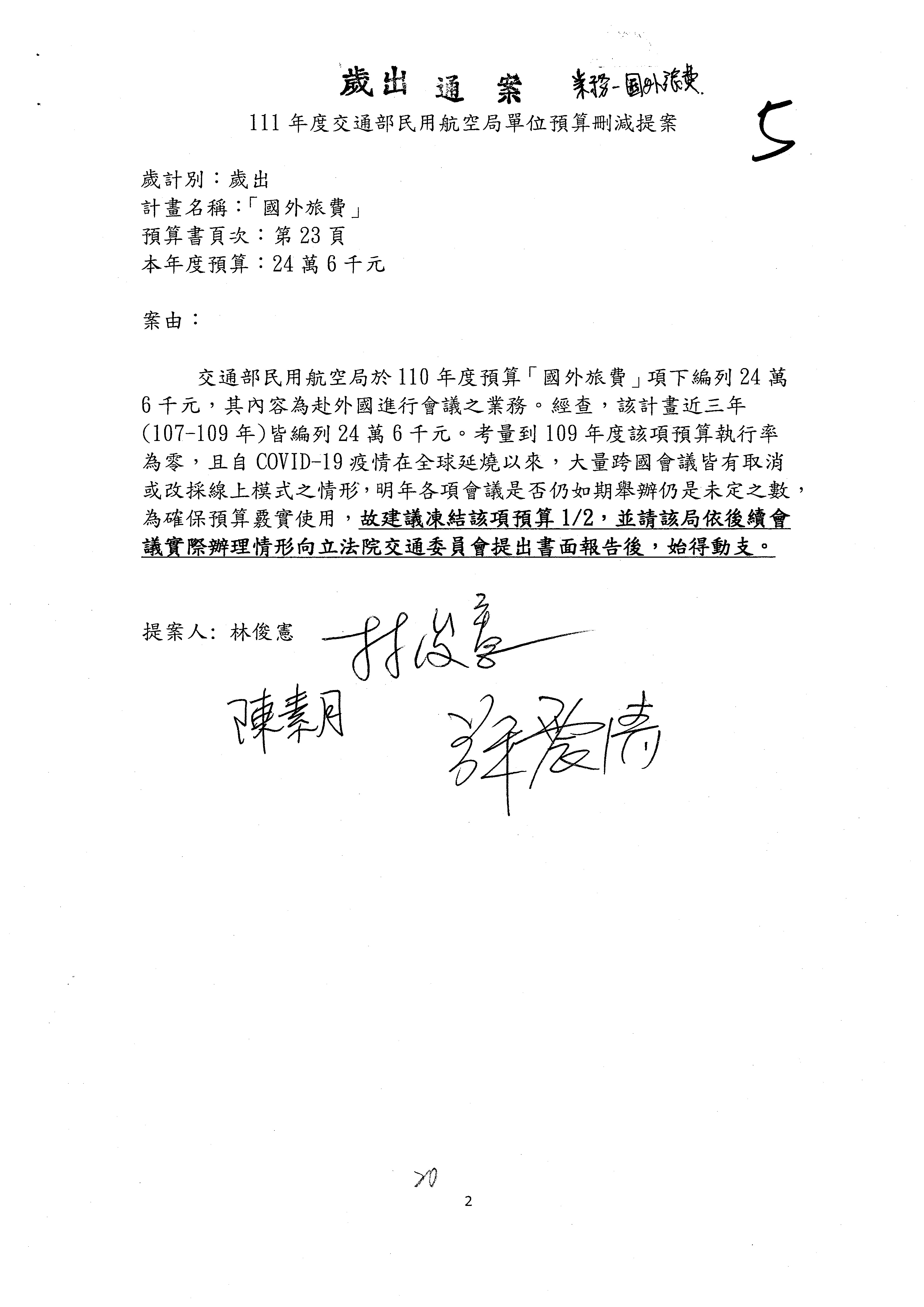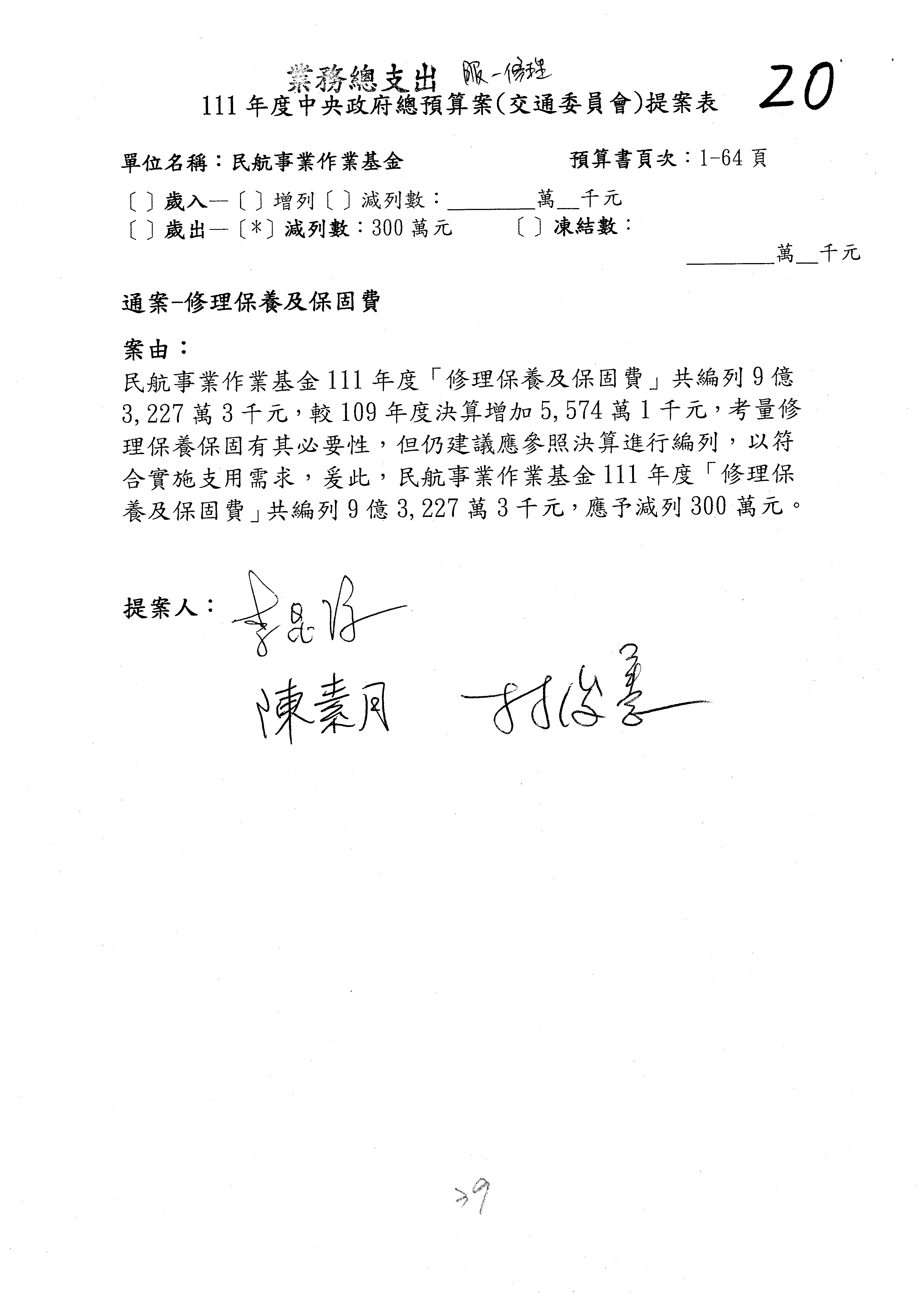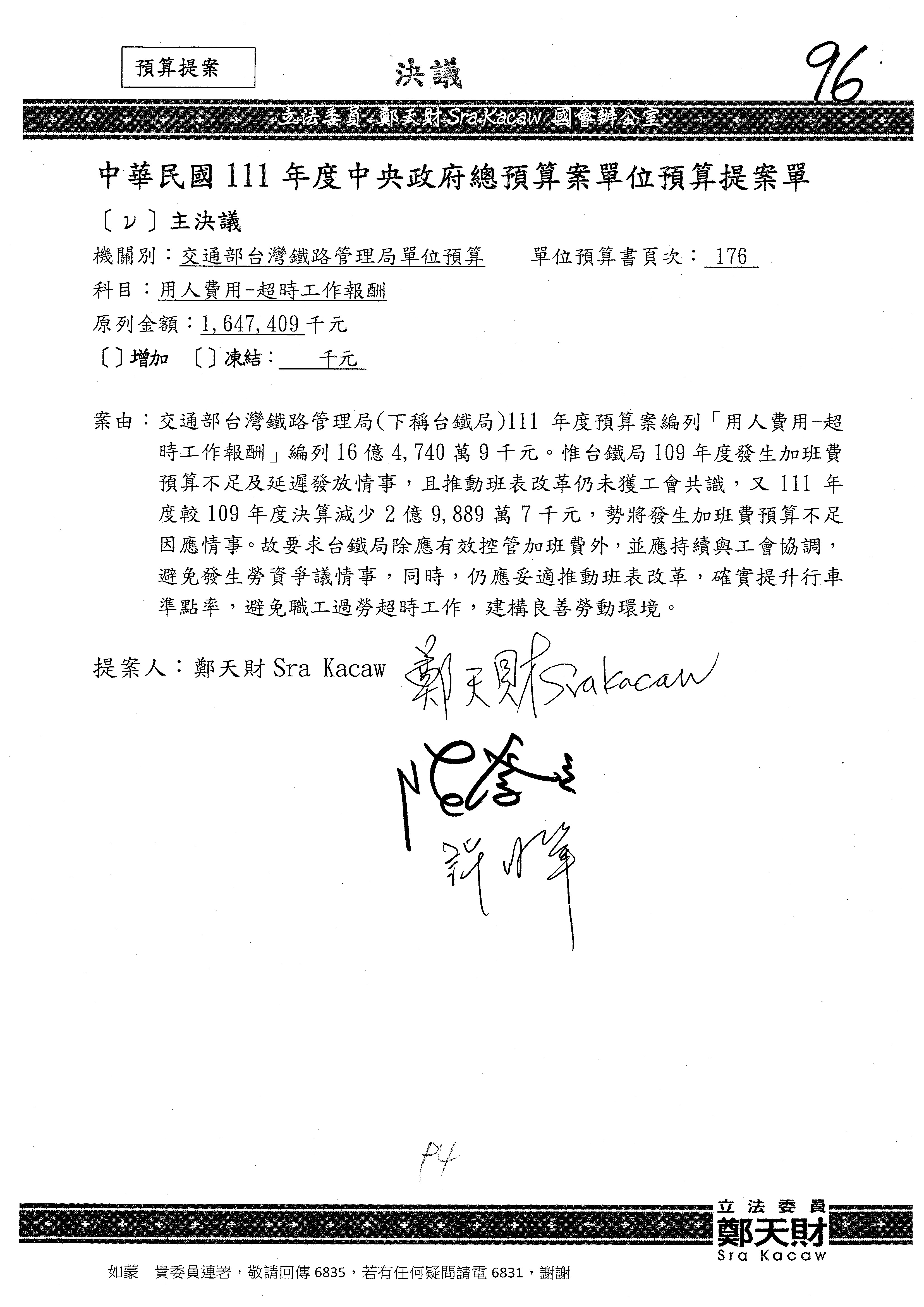杜局長微:不好意思,報告召委,第93案有一個修正建議,就是倒數第2行有「合理預算及旅客保險額度……」能不能修成「合理預算及研議旅客保險……」?