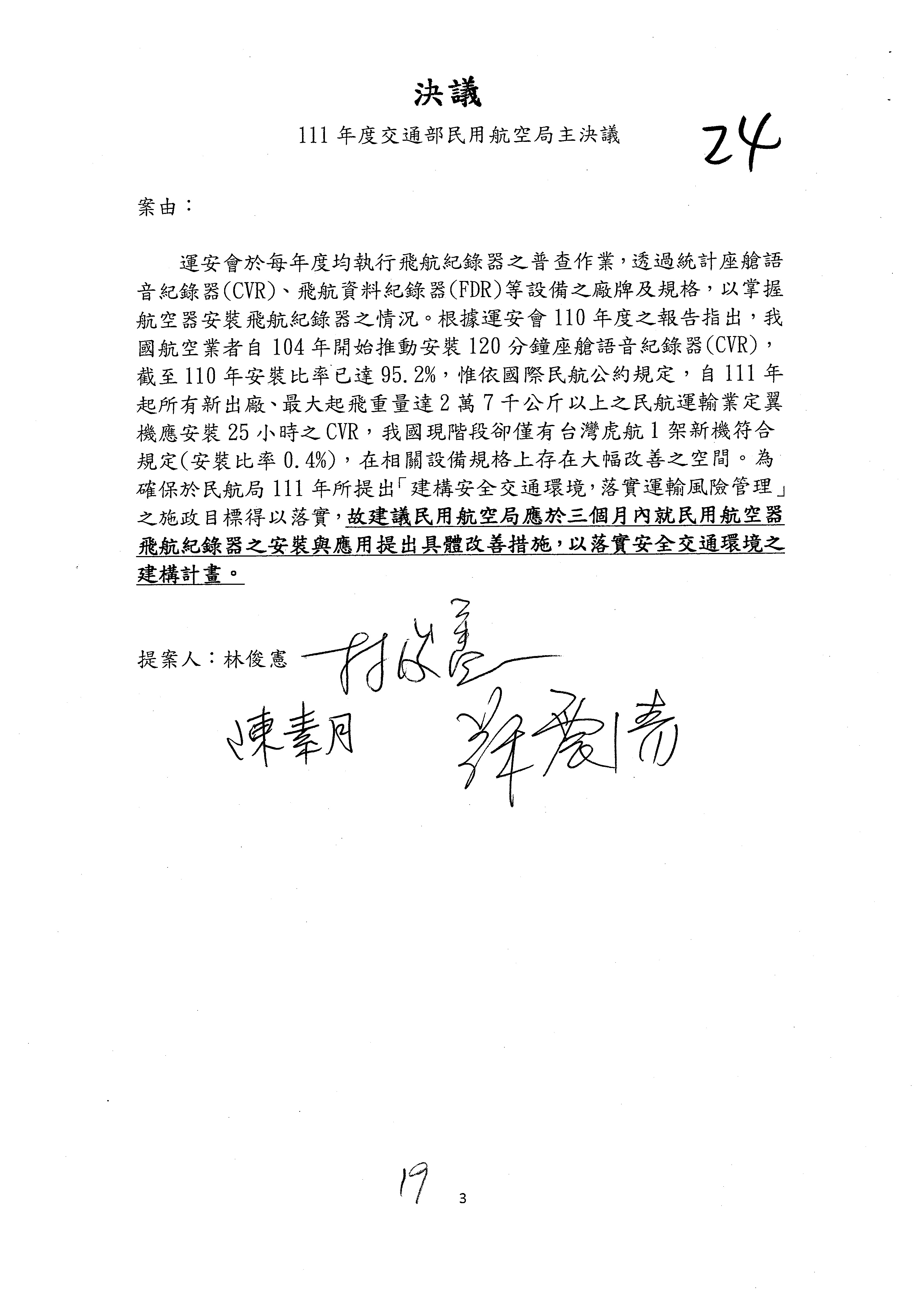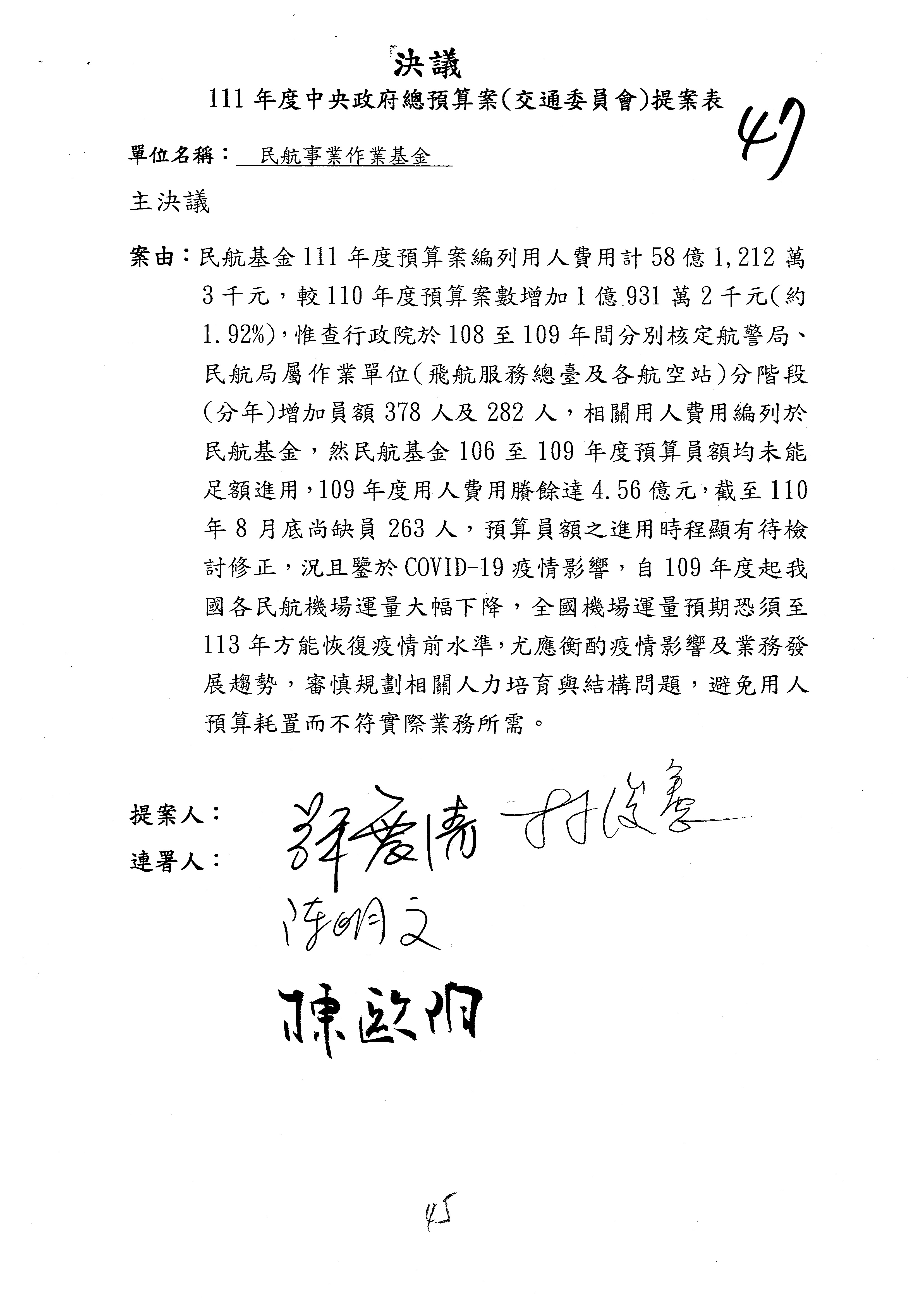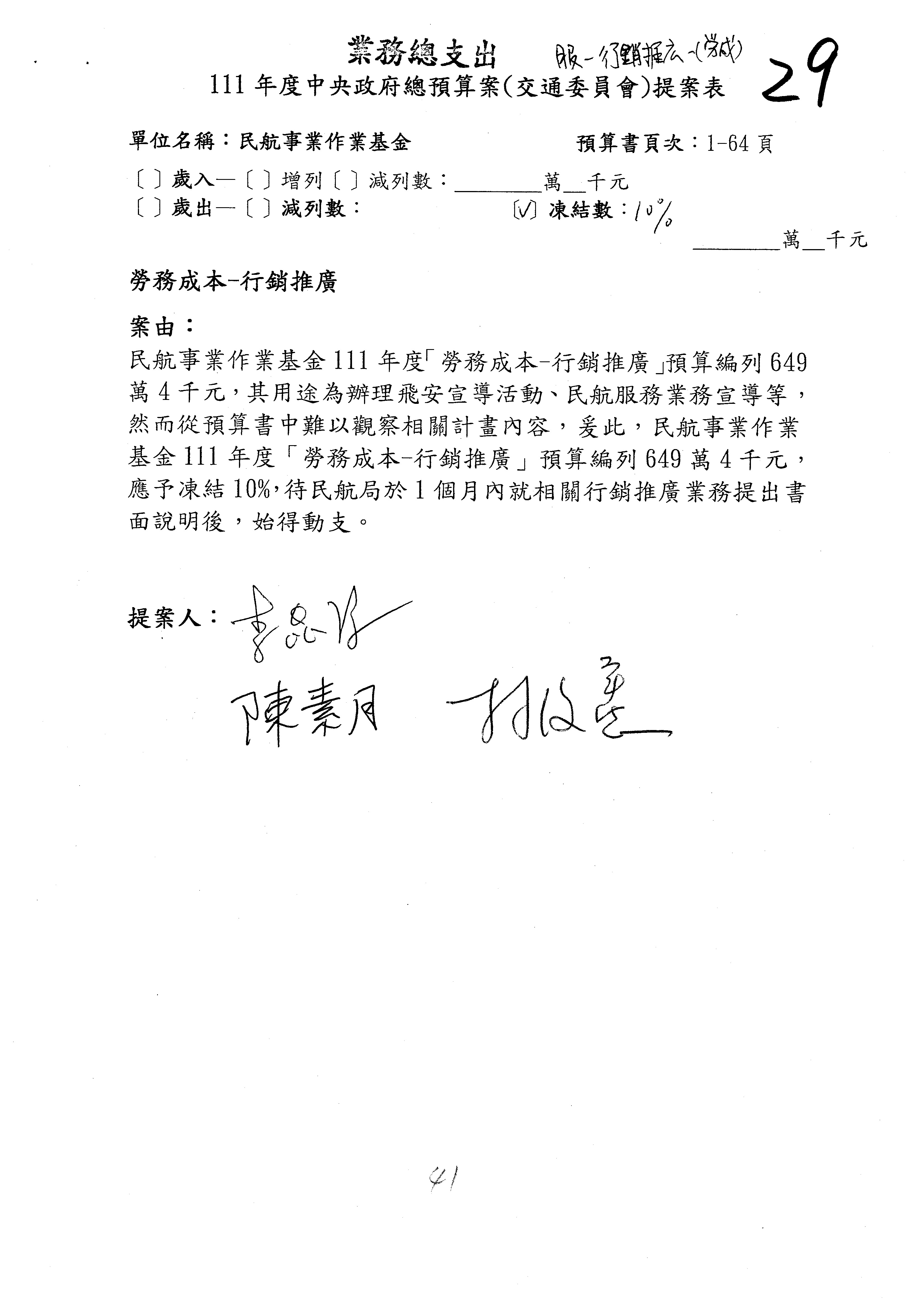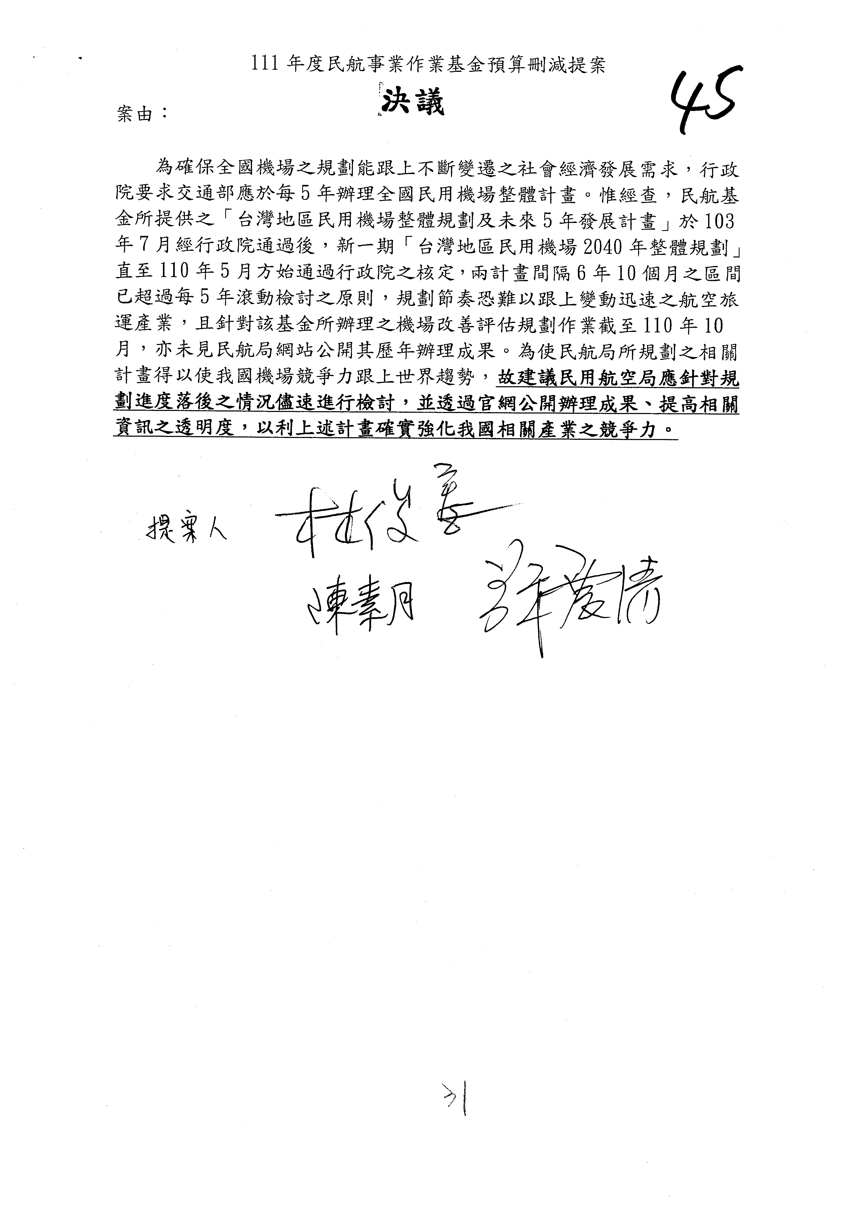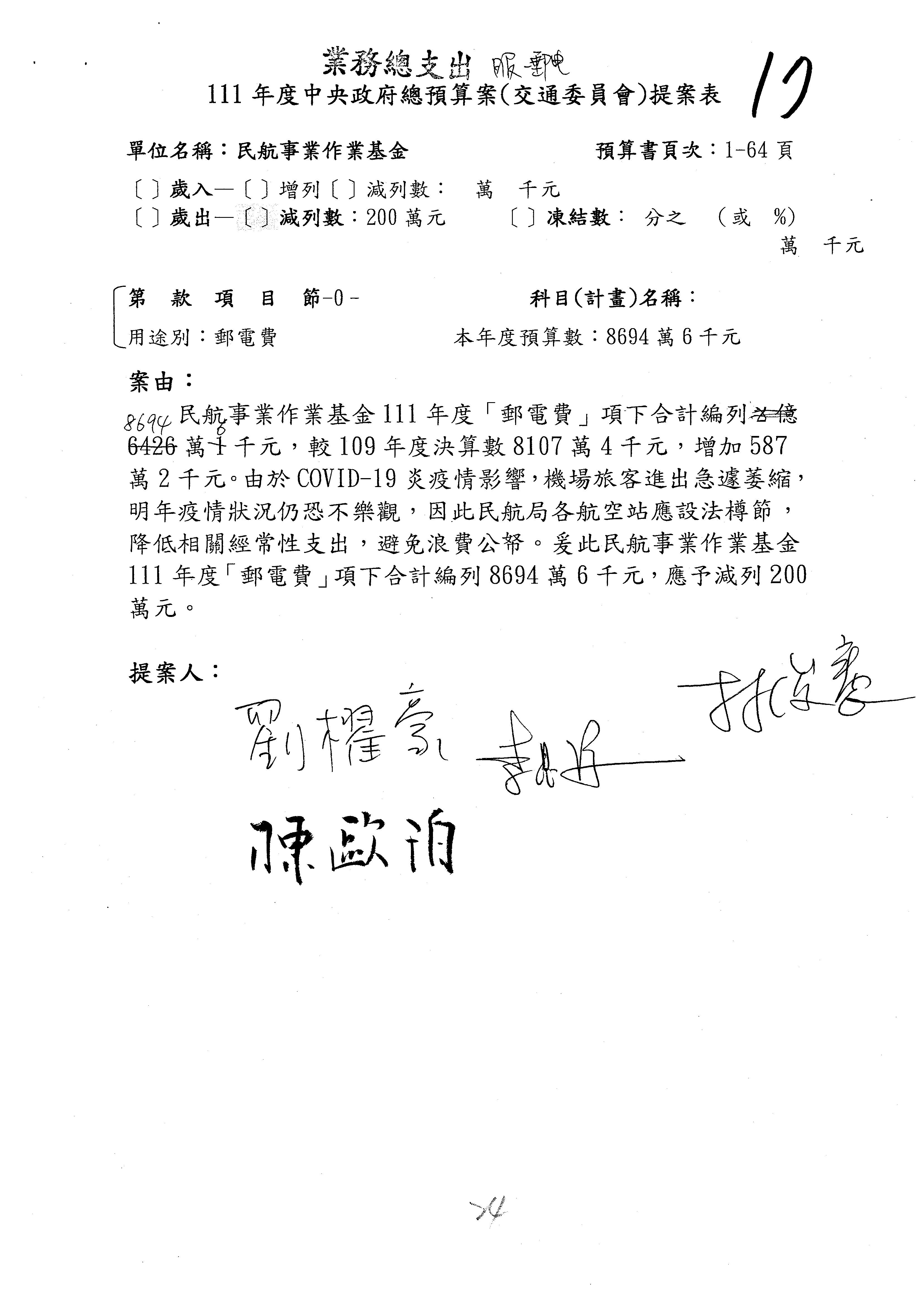 杜局長微:不好意思,報告召委,第93案有一個修正建議,就是倒數第2行有「合理預算及旅客保險額度……」能不能修成「合理預算及研議旅客保險……」?