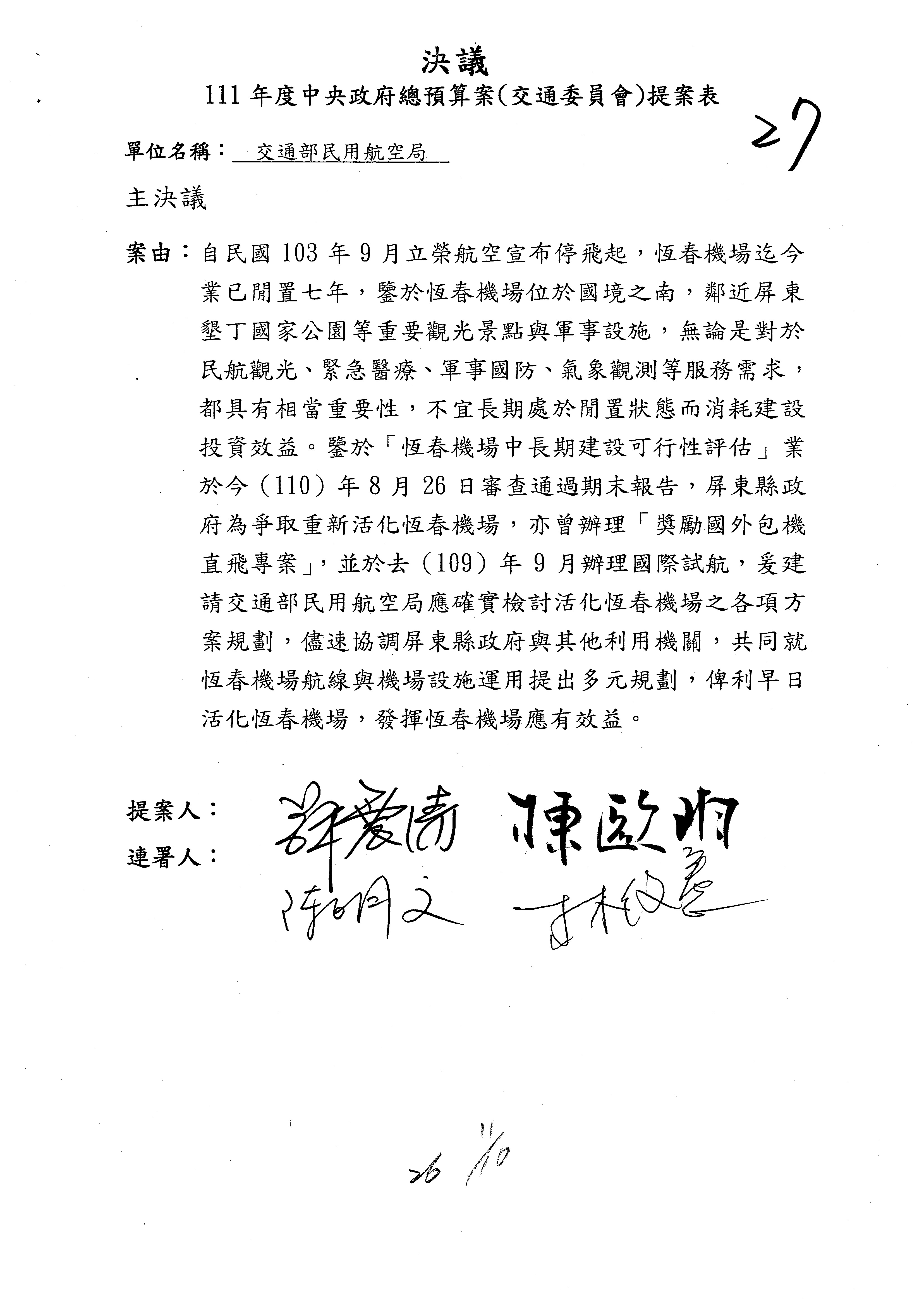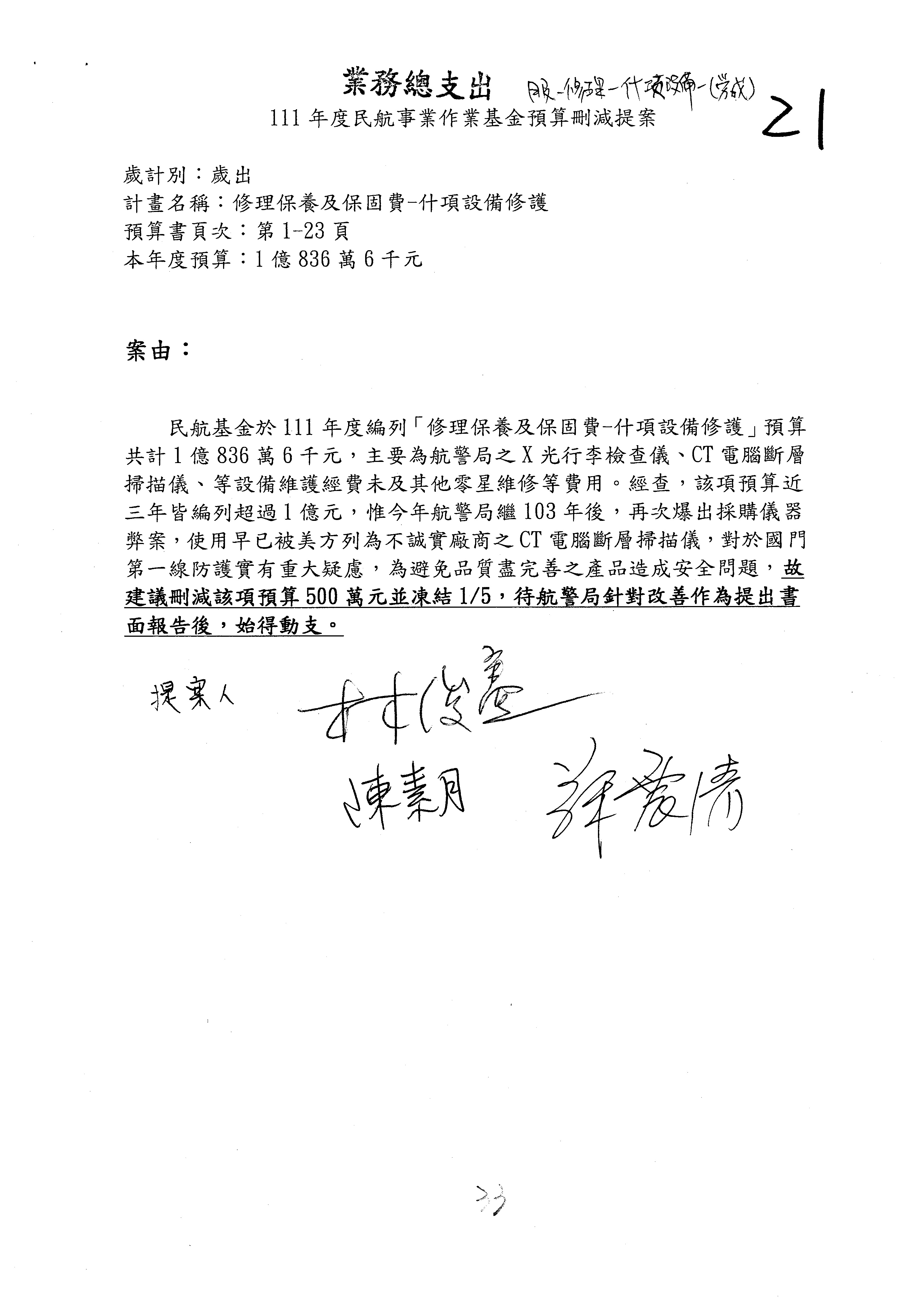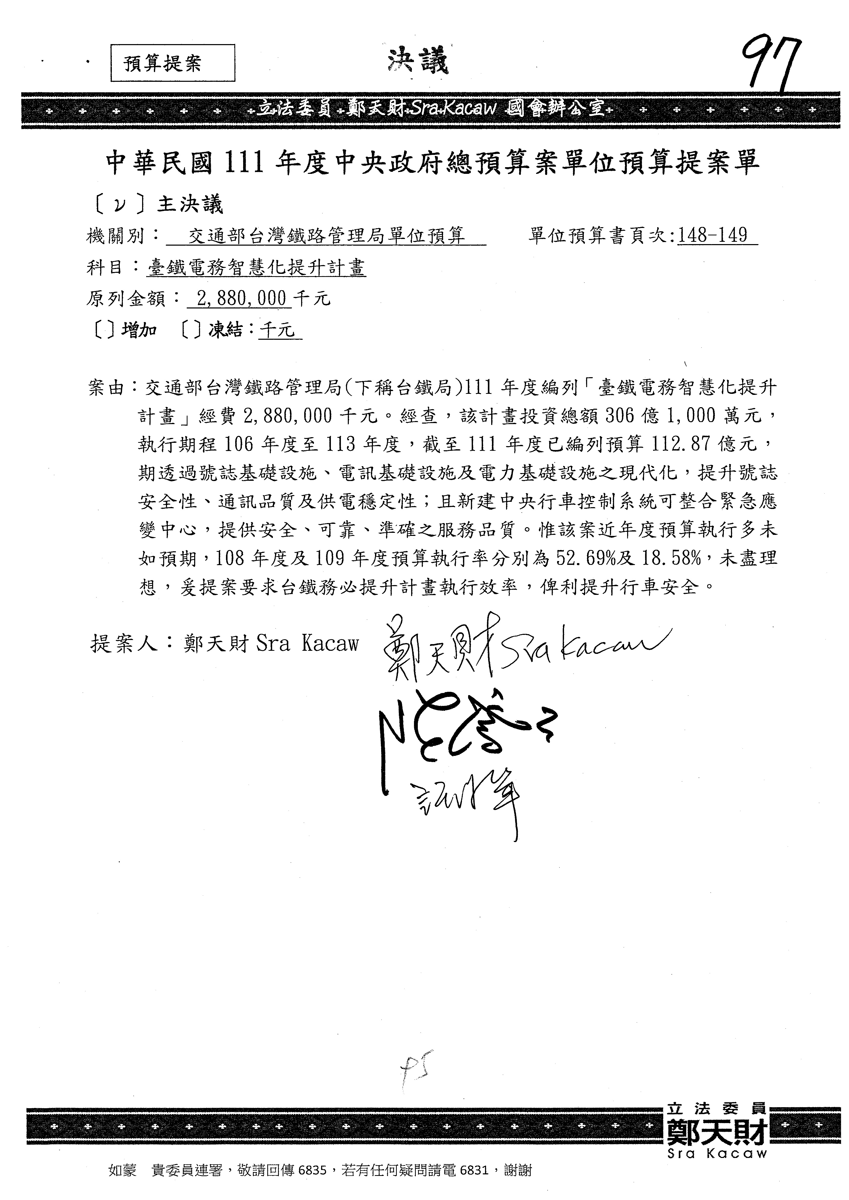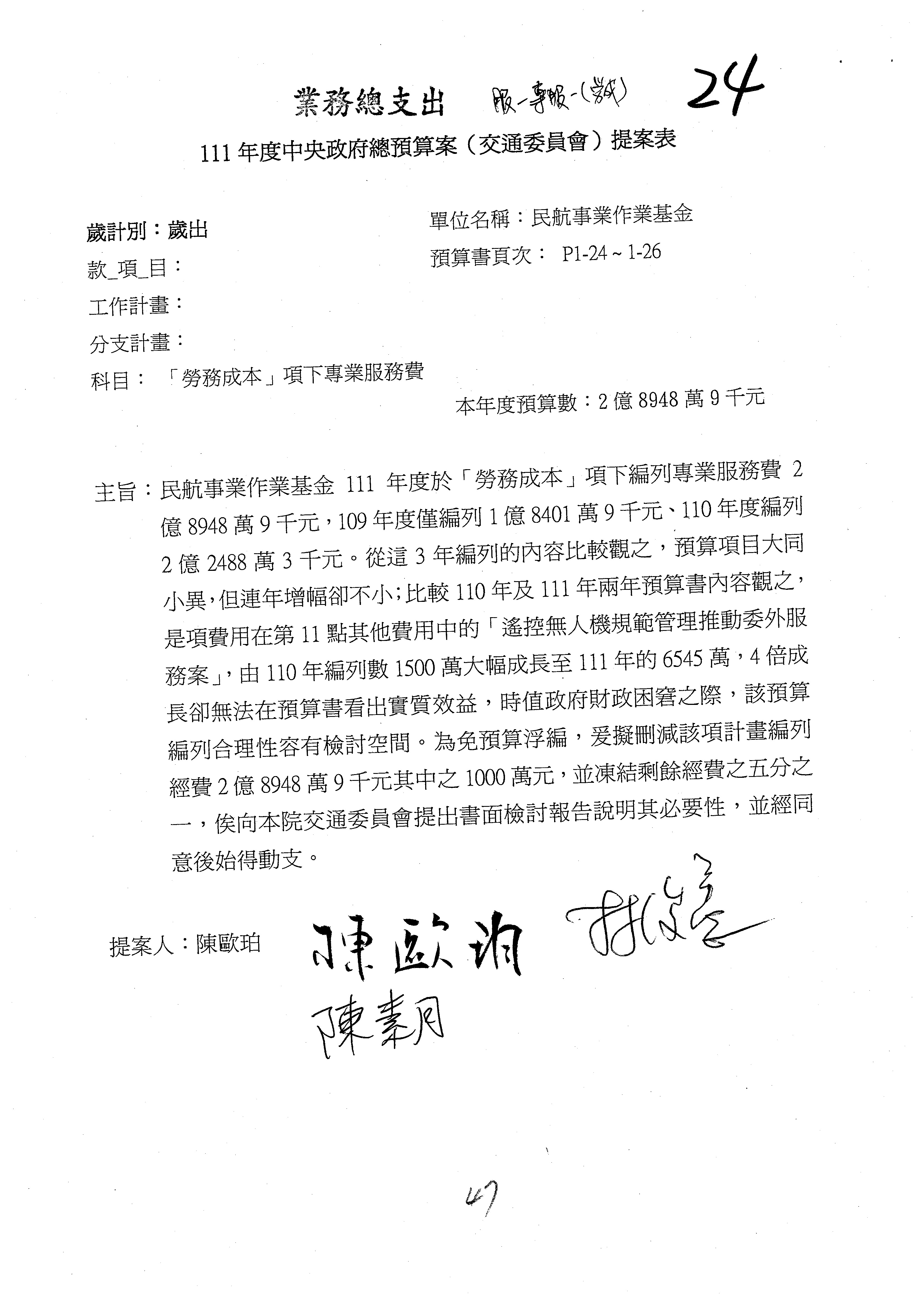 杜局長微:不好意思,報告召委,第93案有一個修正建議,就是倒數第2行有「合理預算及旅客保險額度……」能不能修成「合理預算及研議旅客保險……」?