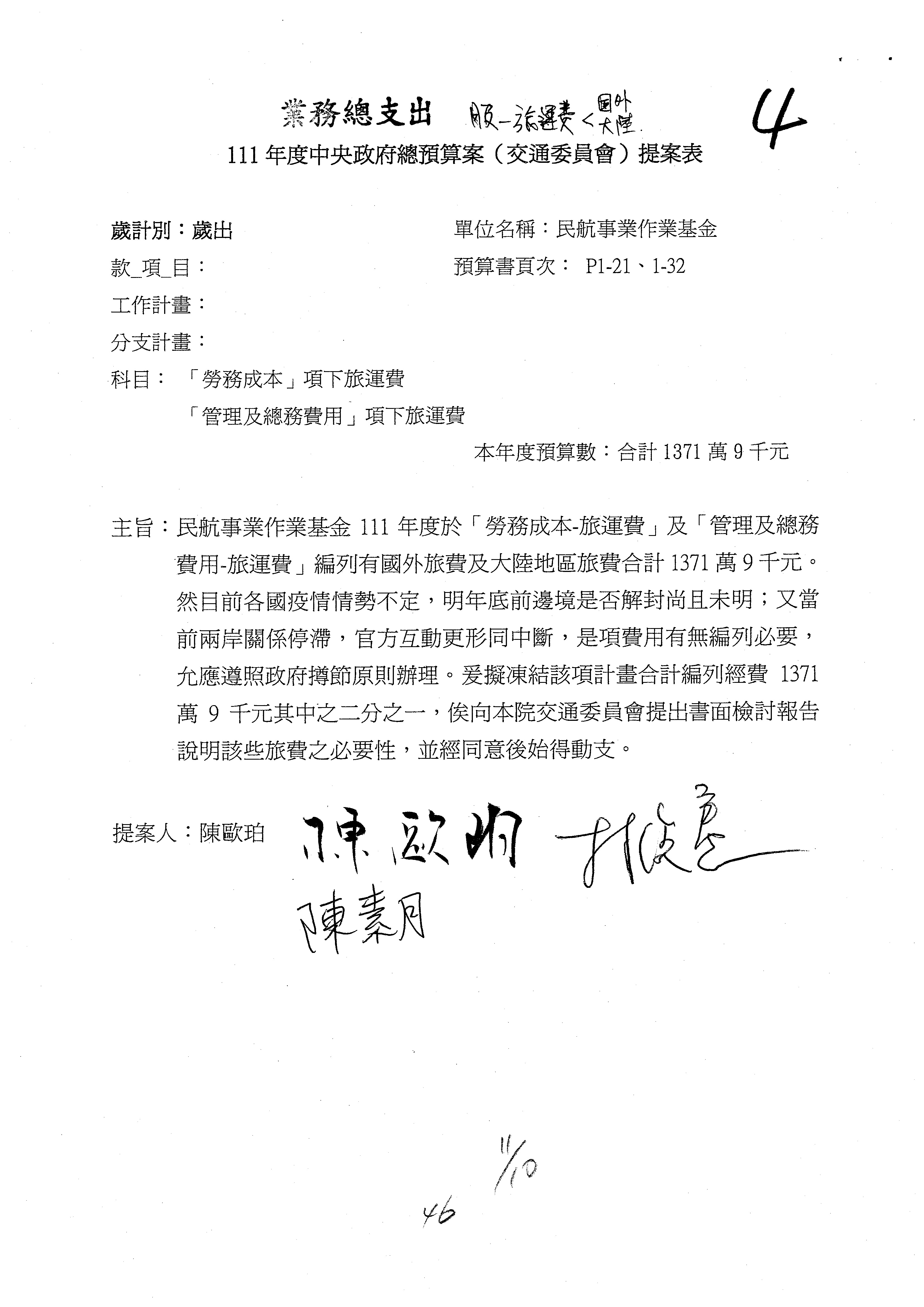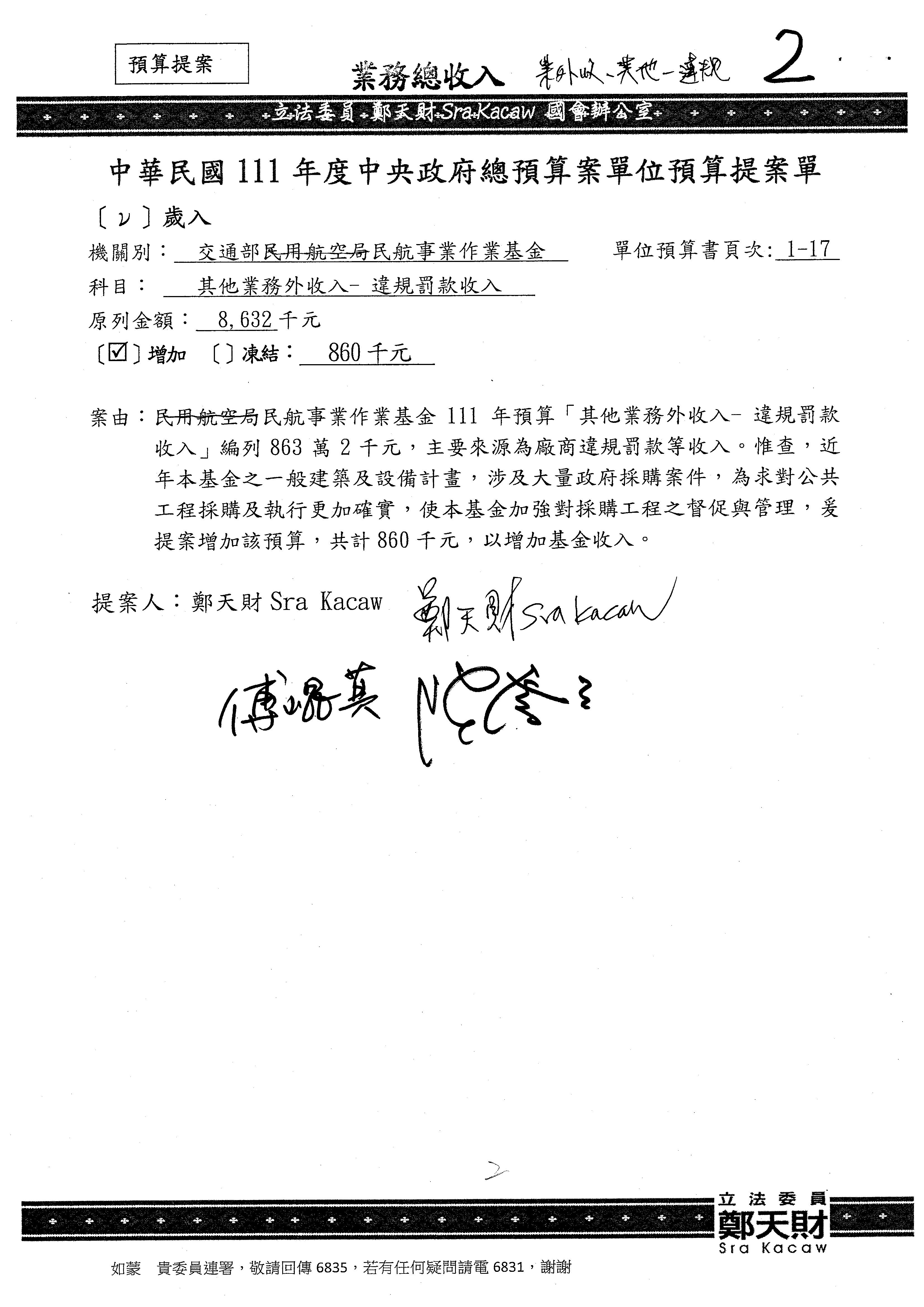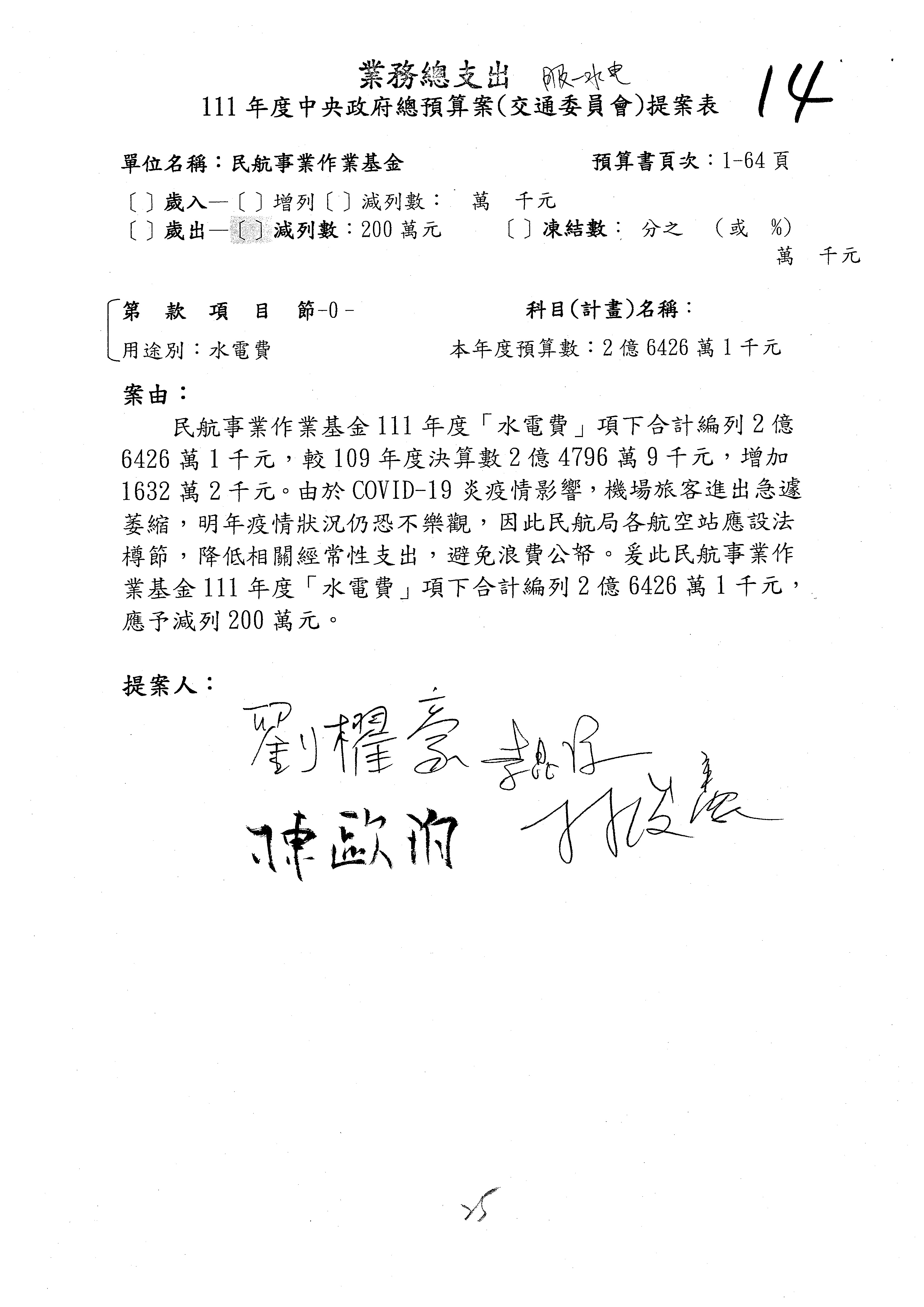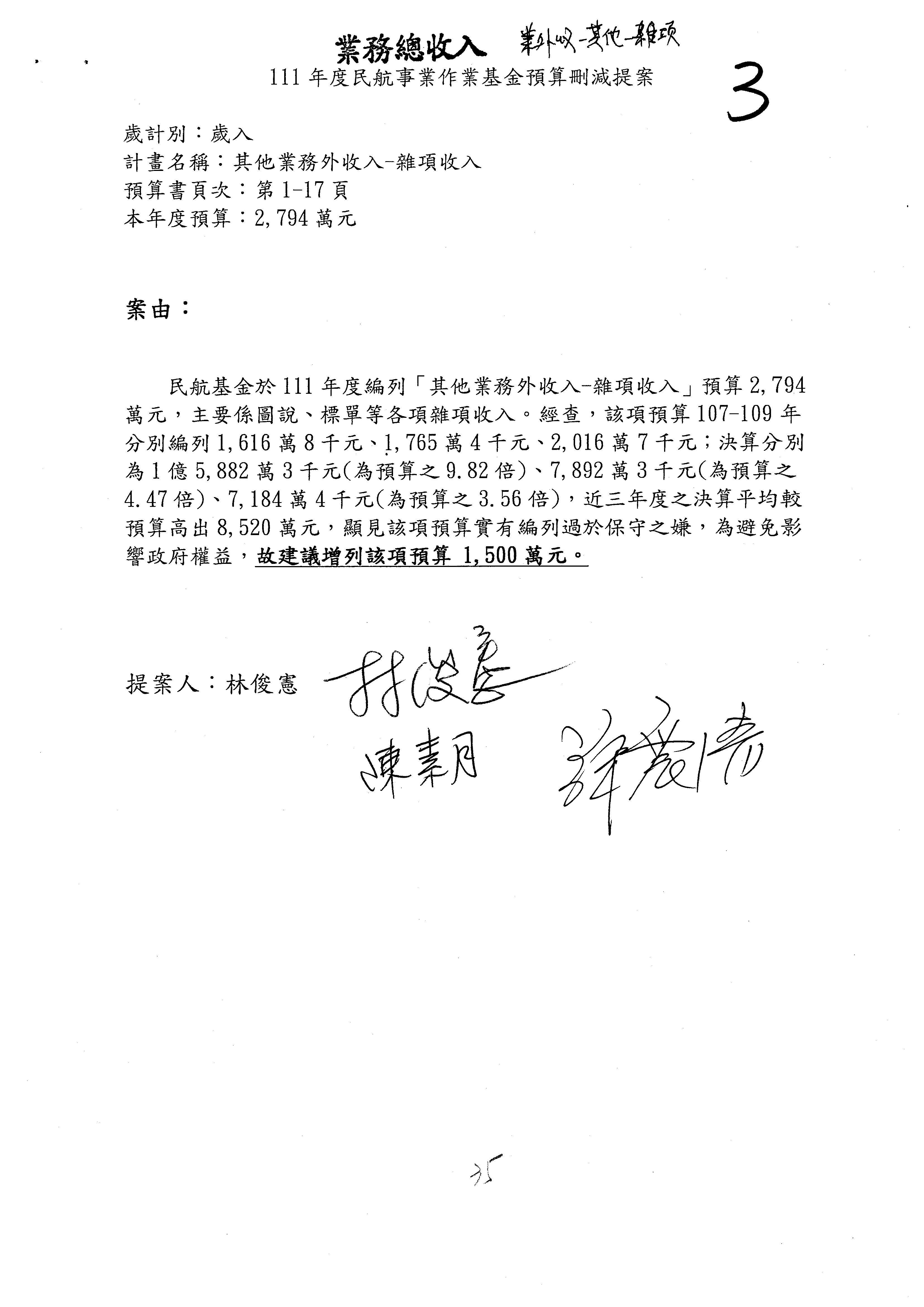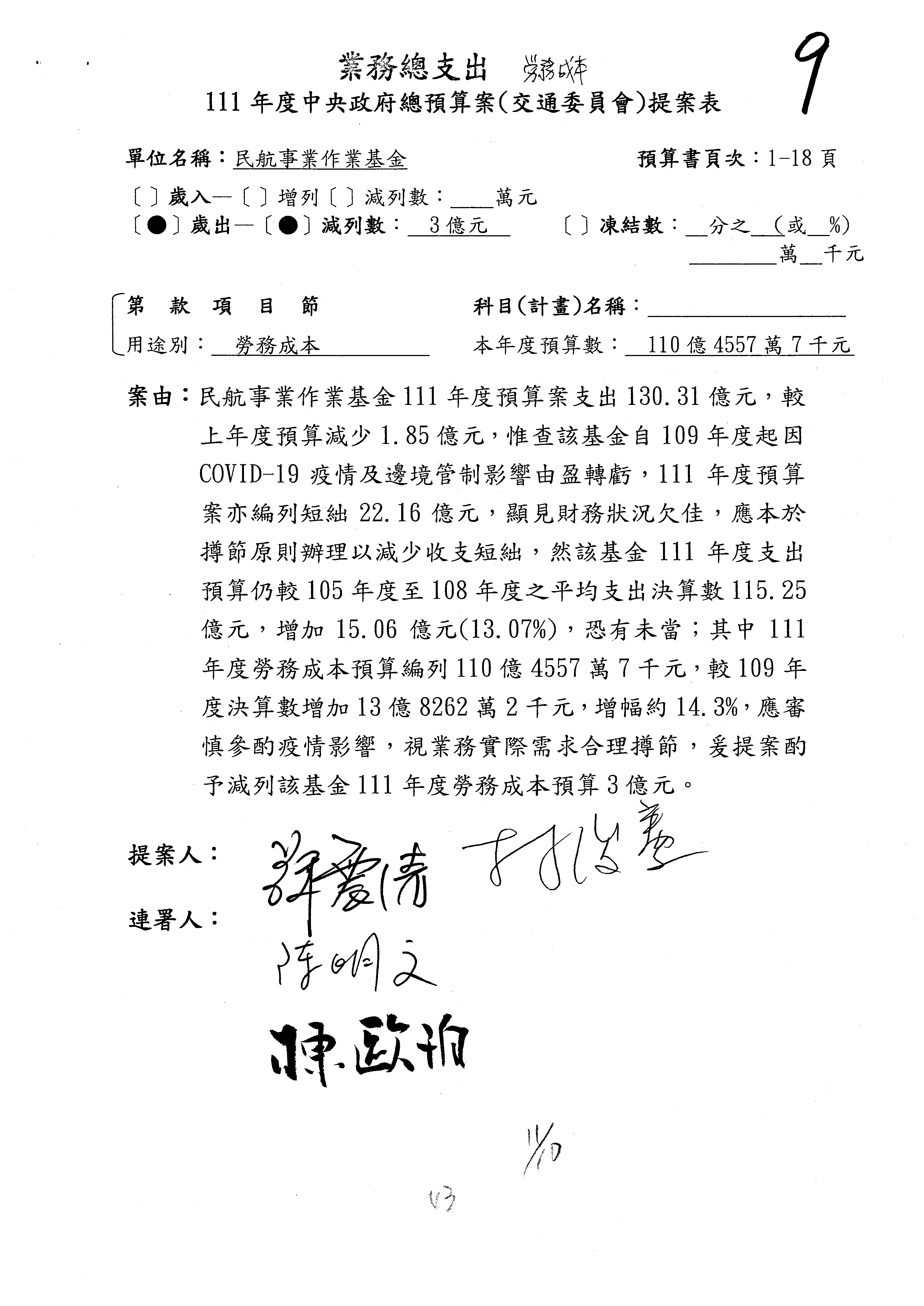 杜局長微:不好意思,報告召委,第93案有一個修正建議,就是倒數第2行有「合理預算及旅客保險額度……」能不能修成「合理預算及研議旅客保險……」?