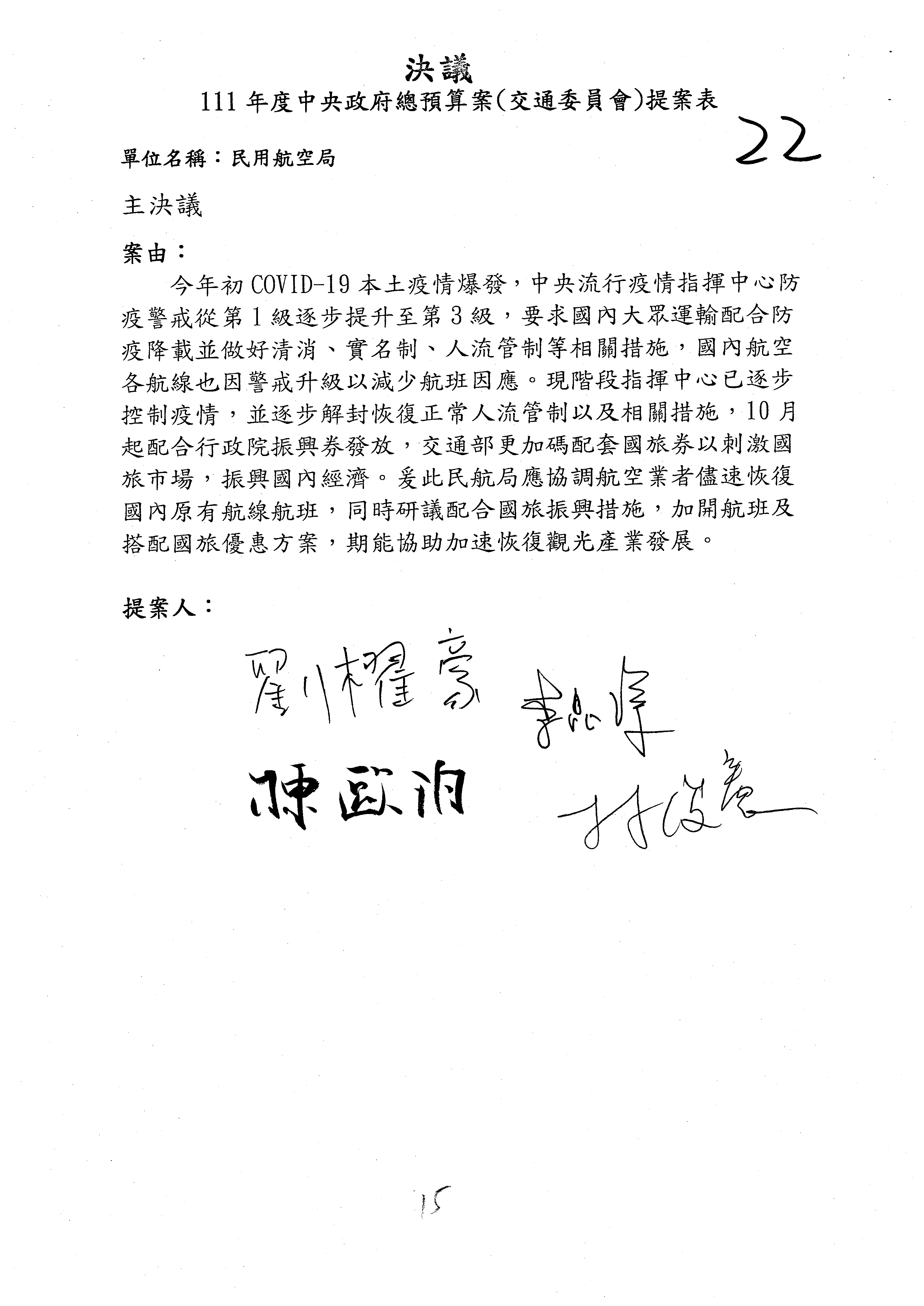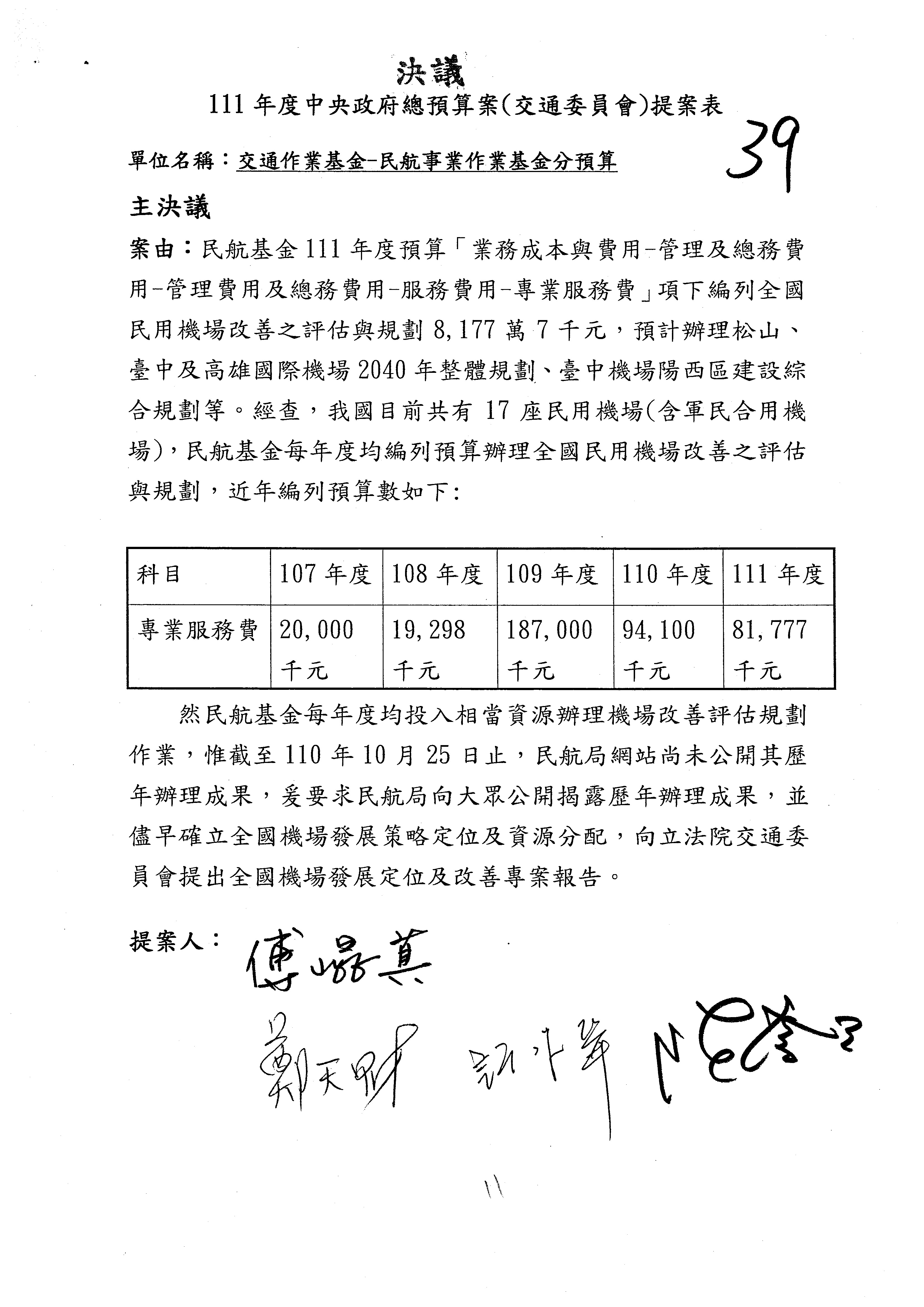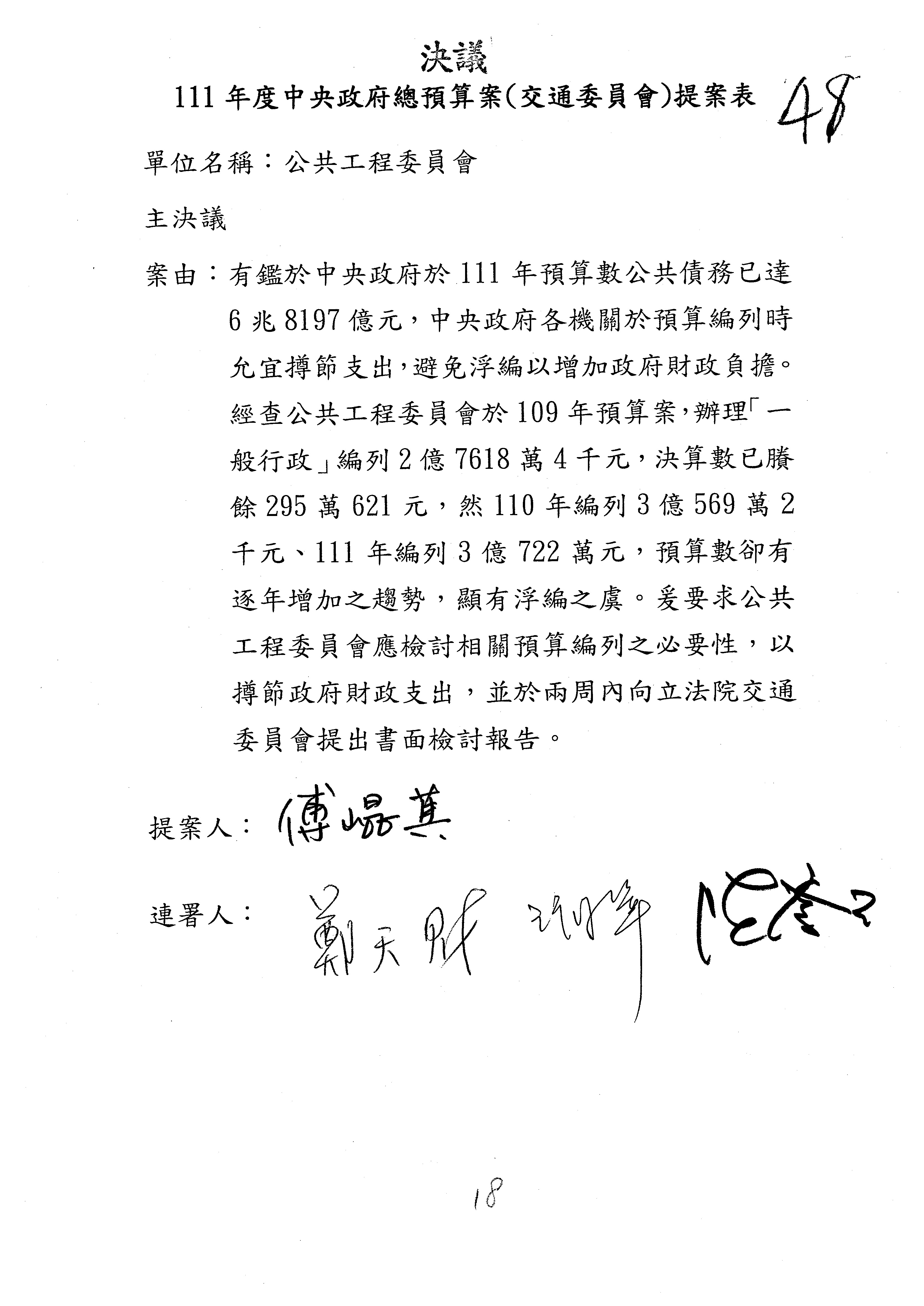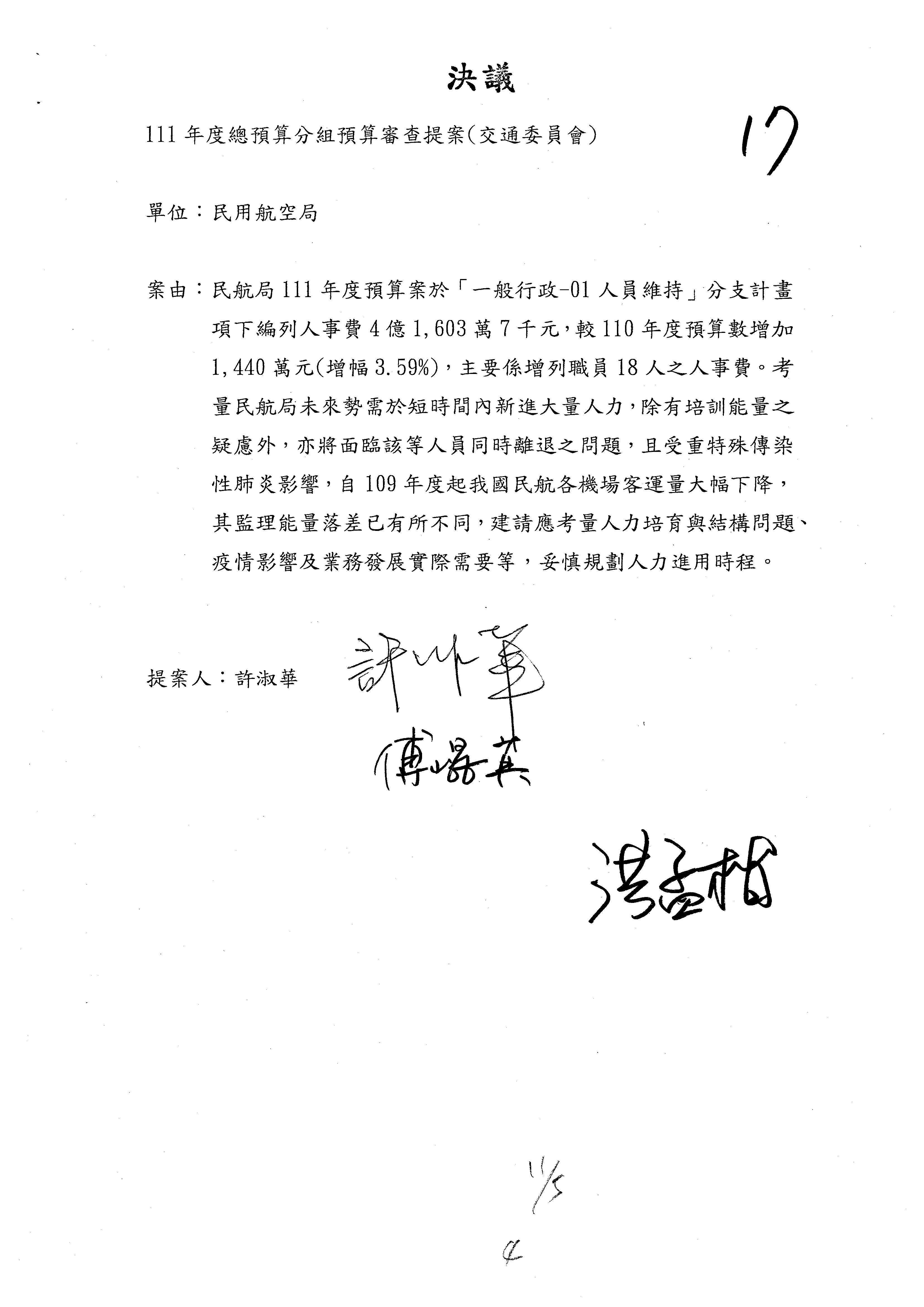 3.111年度行政院公共工程委員會、交通部觀光局及所屬、公路總局及所屬、民用航空局單位預算、交通部主管民航事業作業基金非營業預算及臺灣鐵路管理局營業預算均審查完畢。