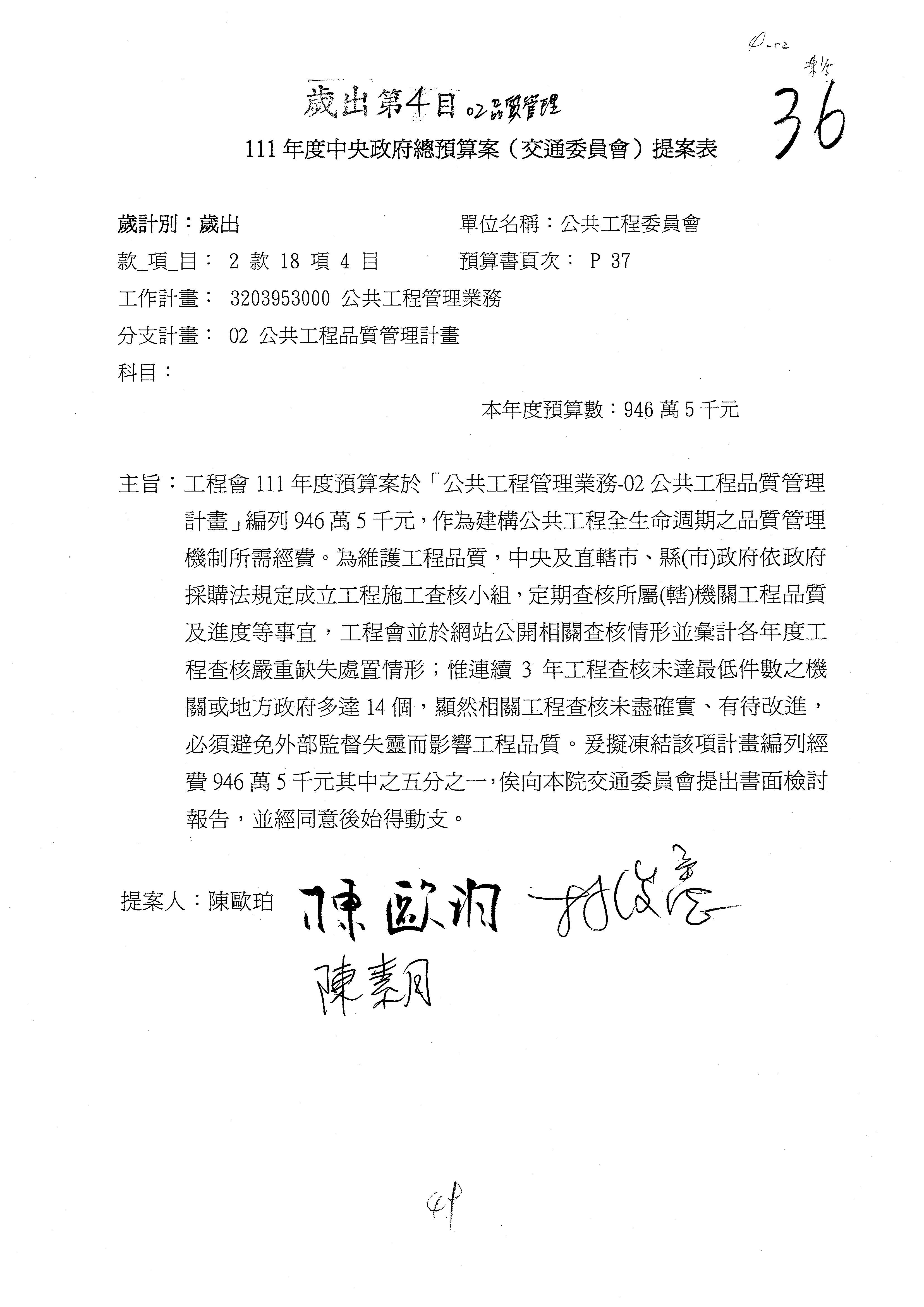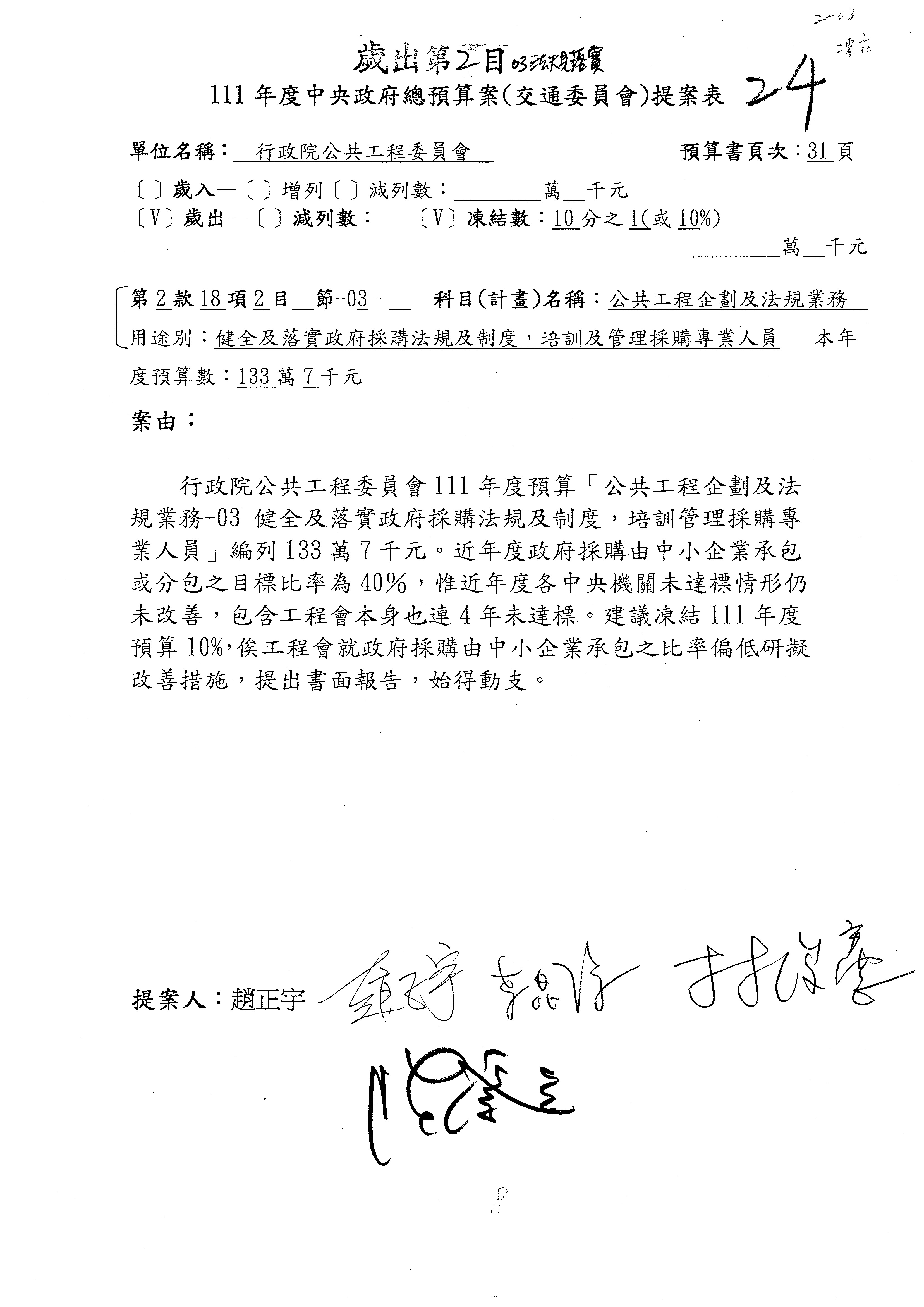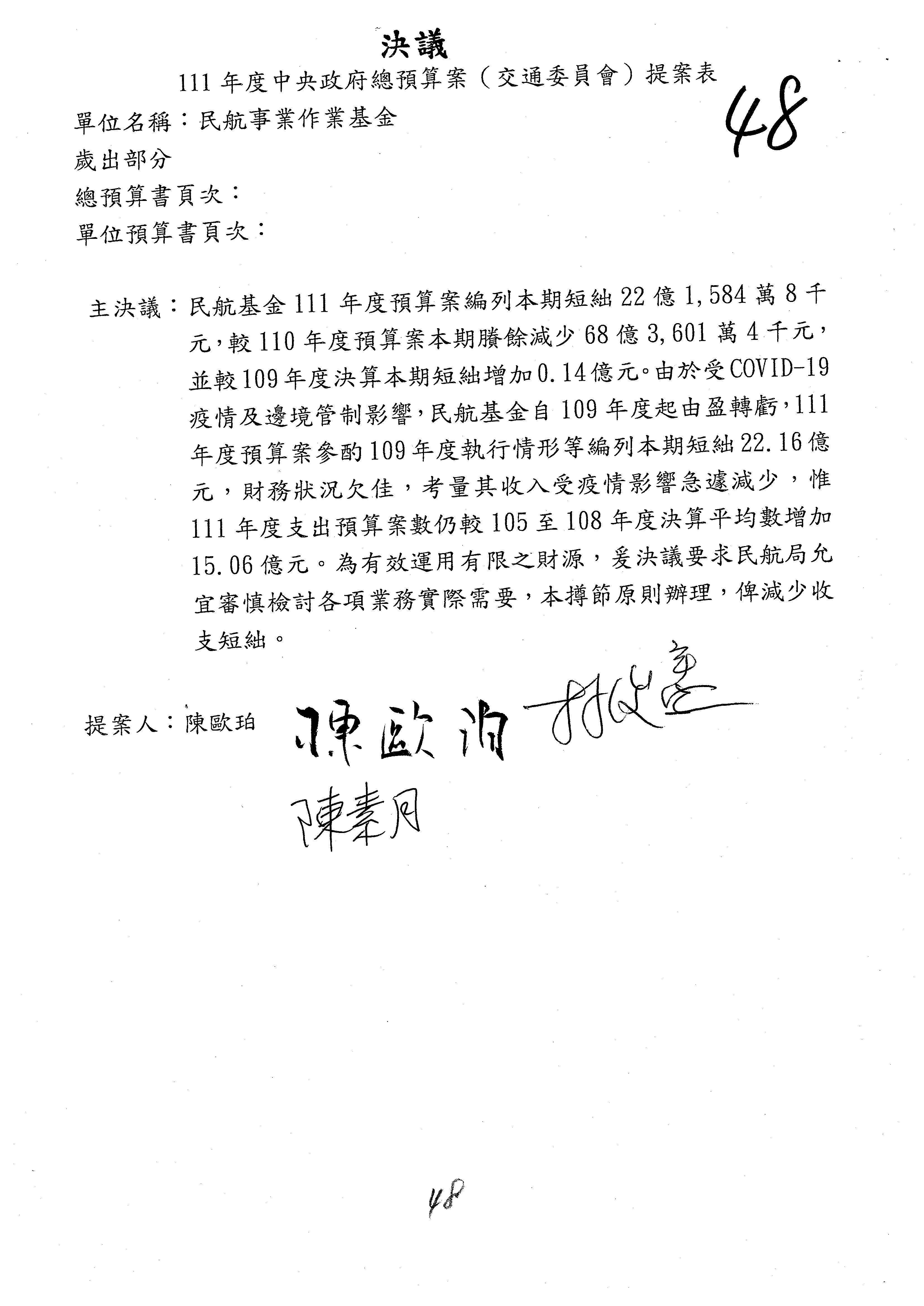 3.111年度行政院公共工程委員會、交通部觀光局及所屬、公路總局及所屬、民用航空局單位預算、交通部主管民航事業作業基金非營業預算及臺灣鐵路管理局營業預算均審查完畢。