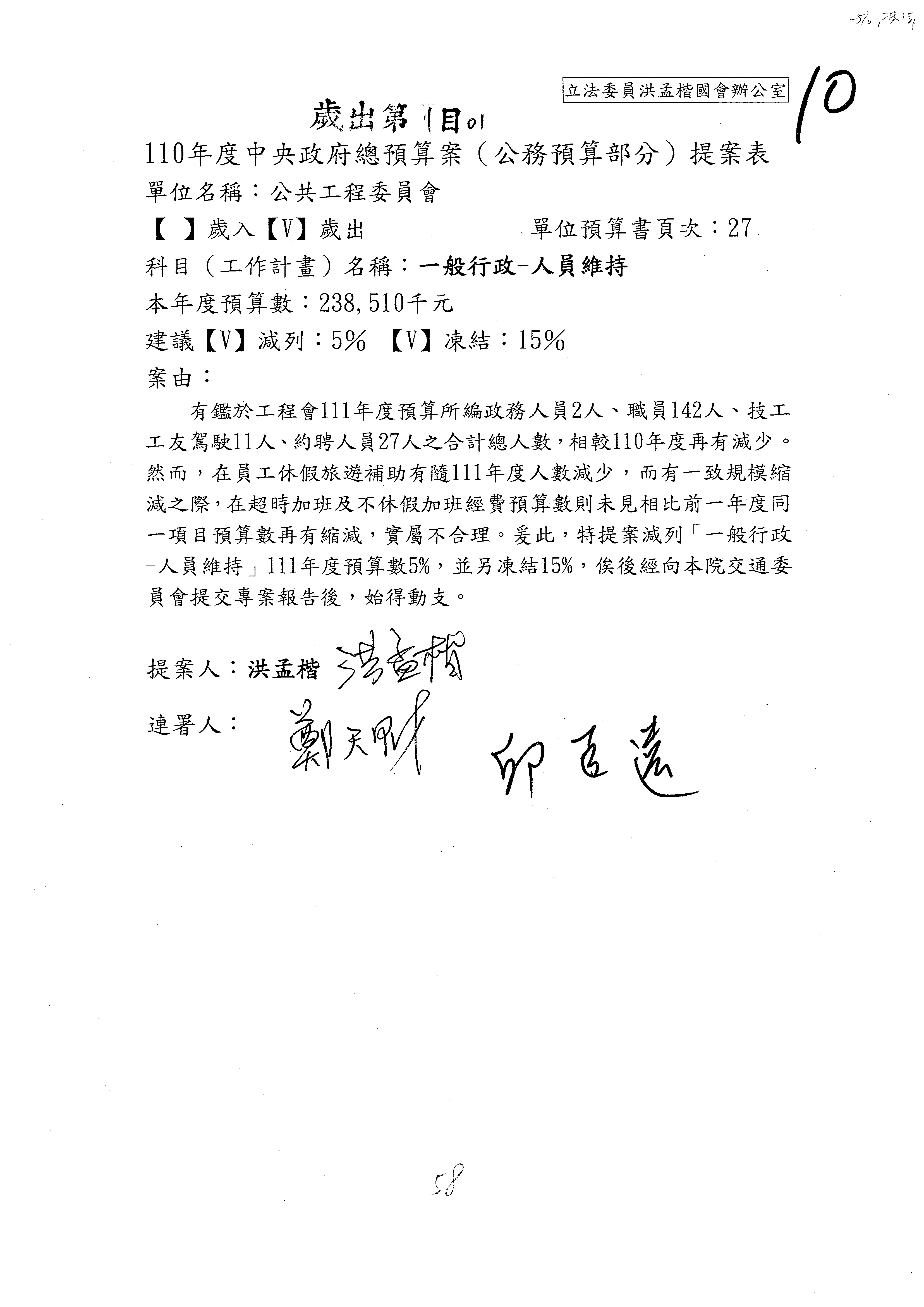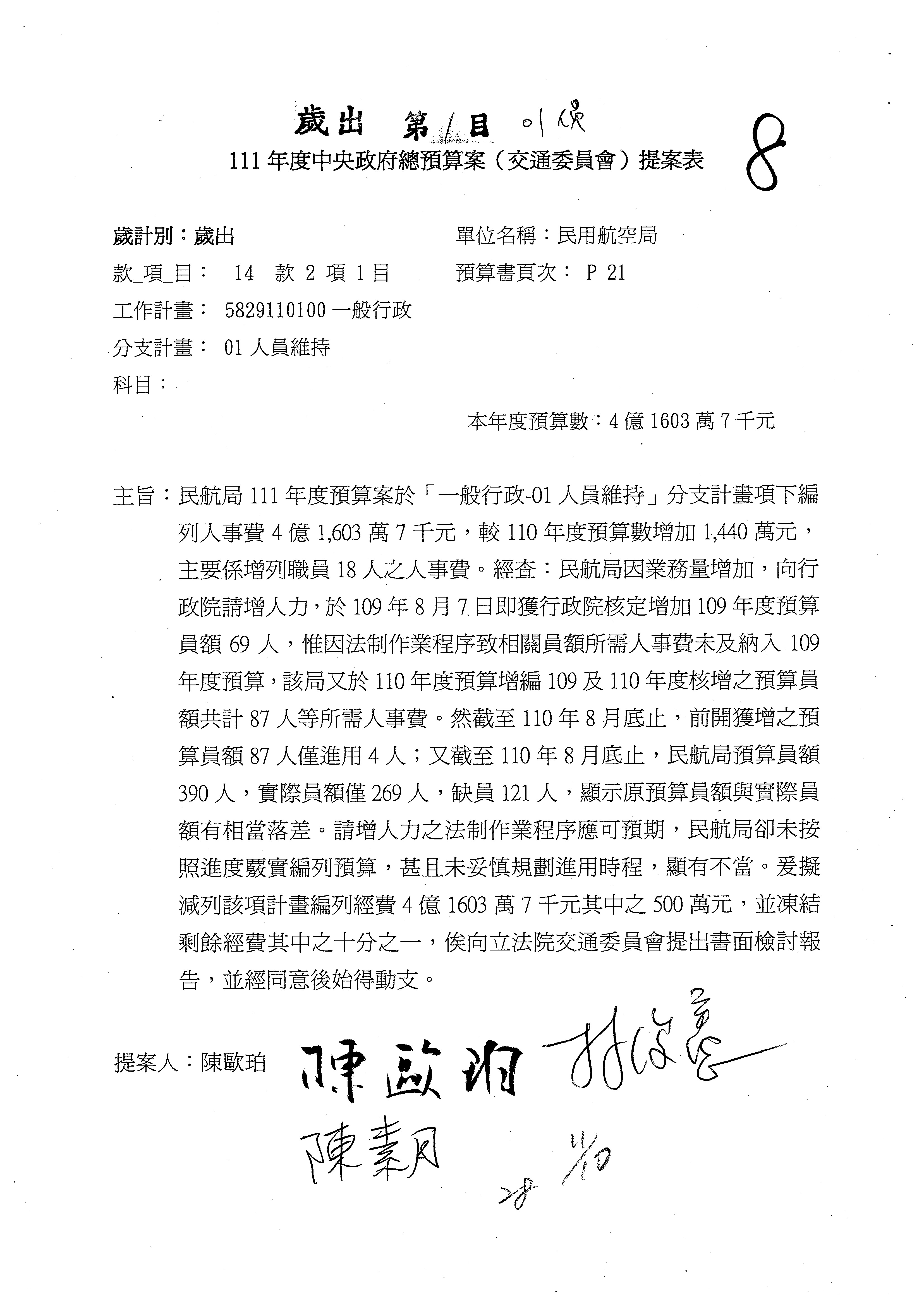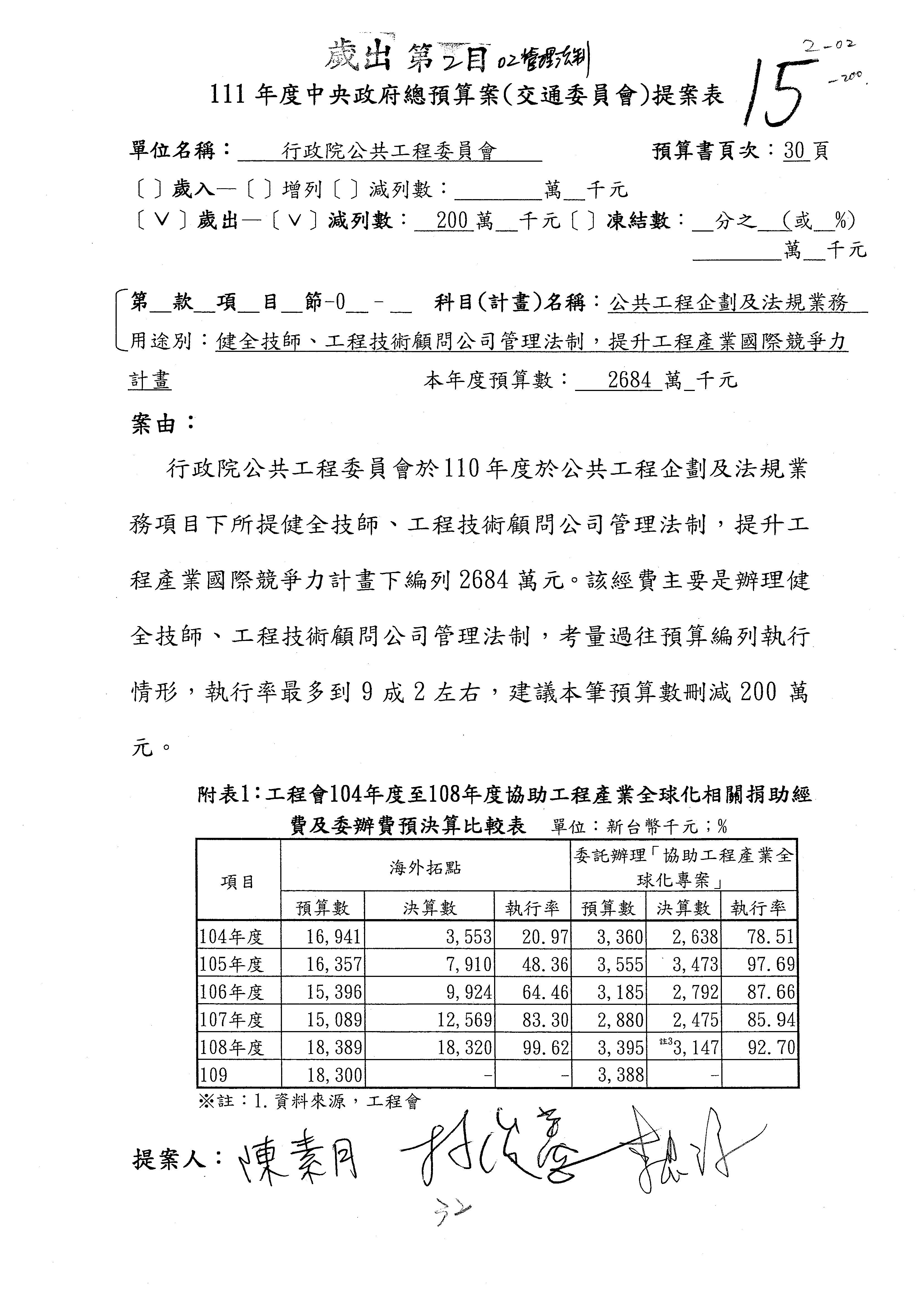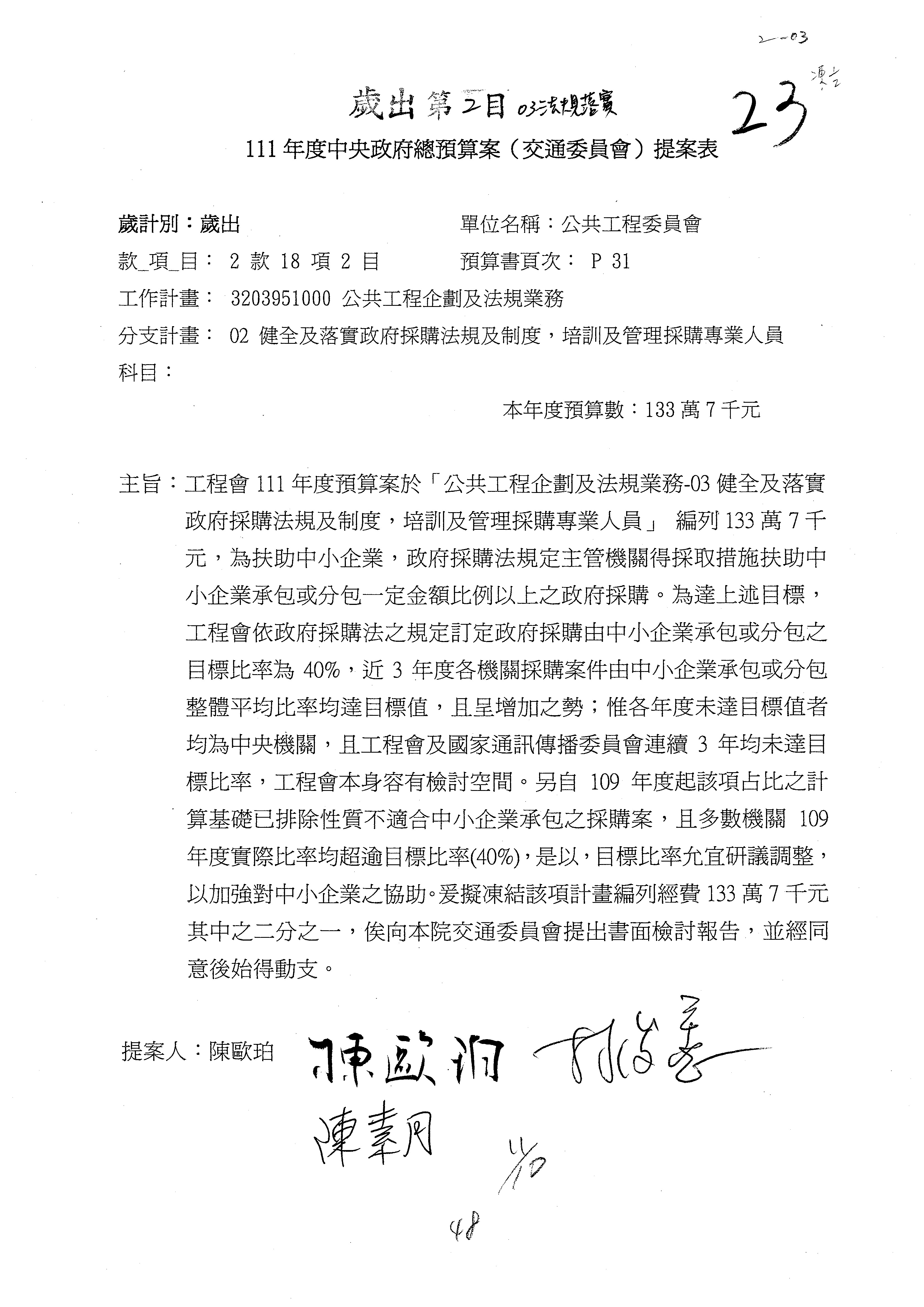 3.111年度行政院公共工程委員會、交通部觀光局及所屬、公路總局及所屬、民用航空局單位預算、交通部主管民航事業作業基金非營業預算及臺灣鐵路管理局營業預算均審查完畢。