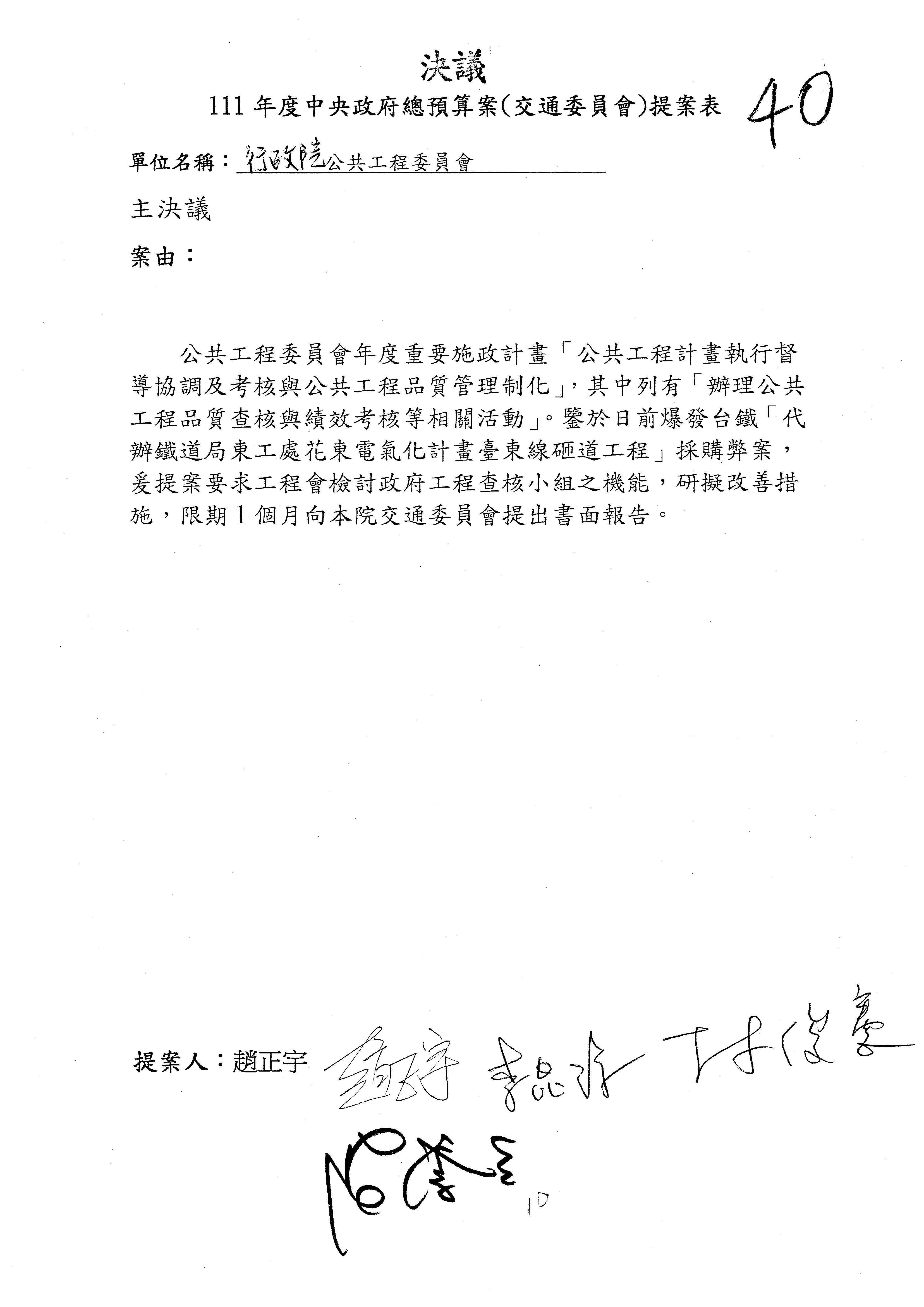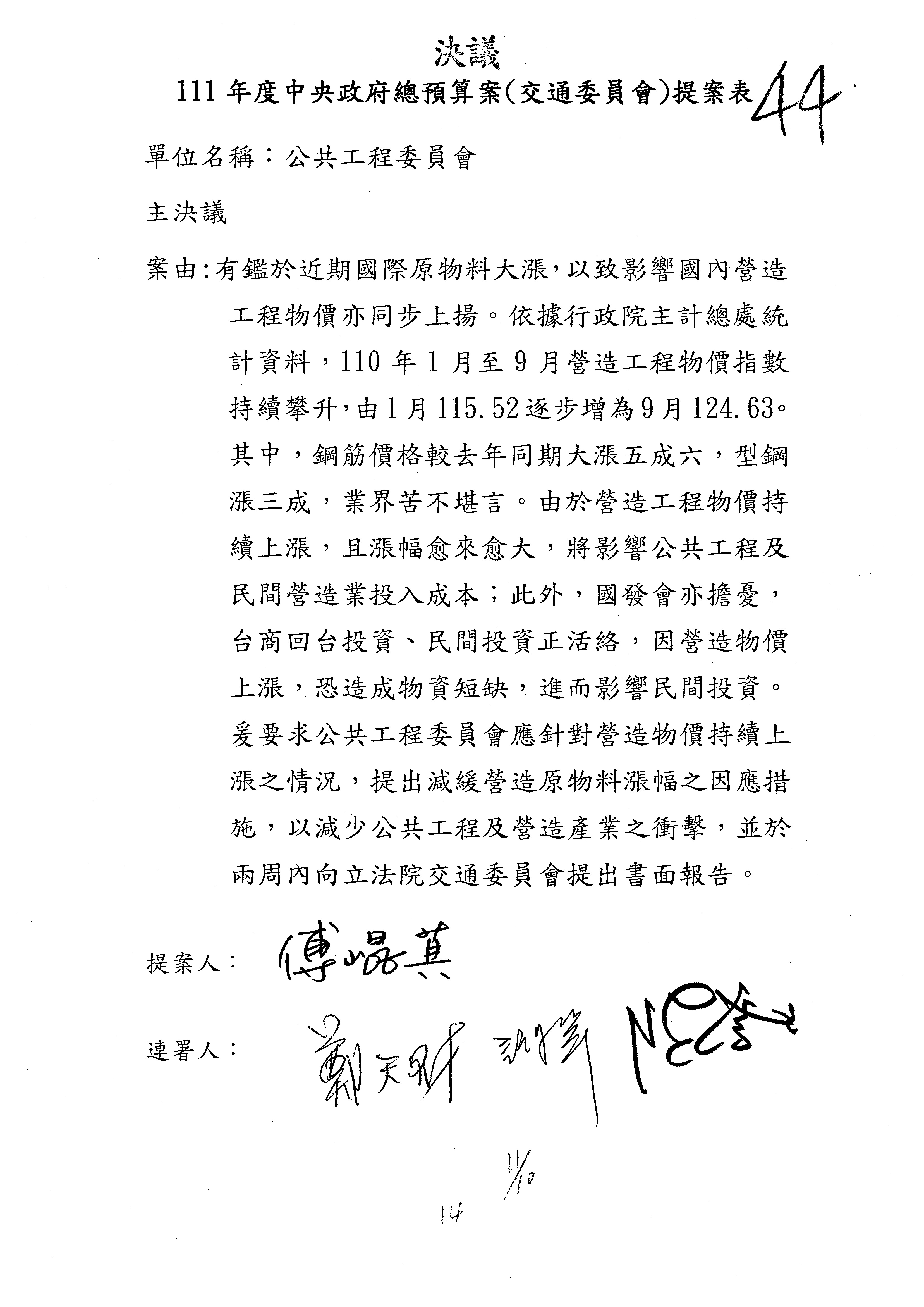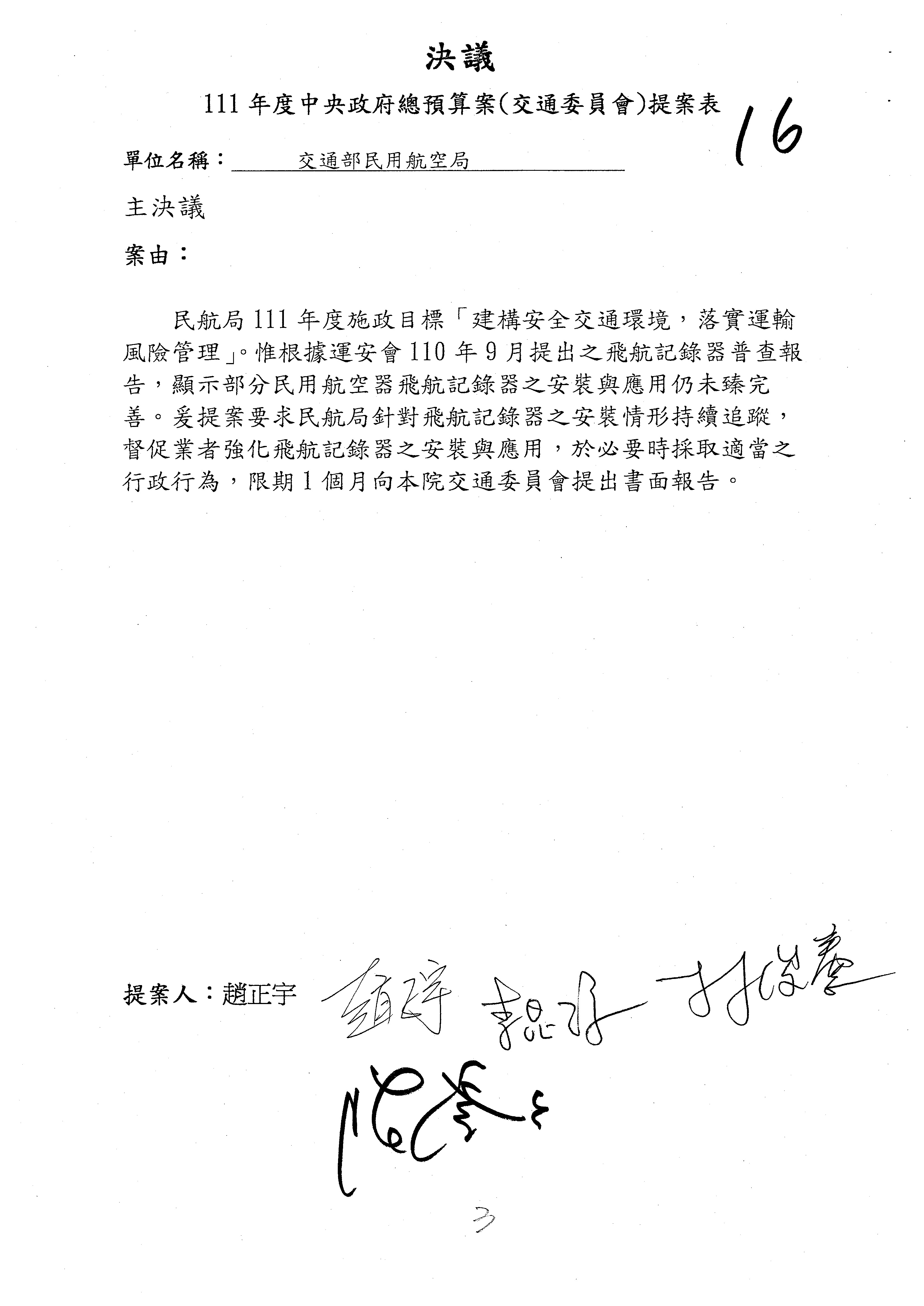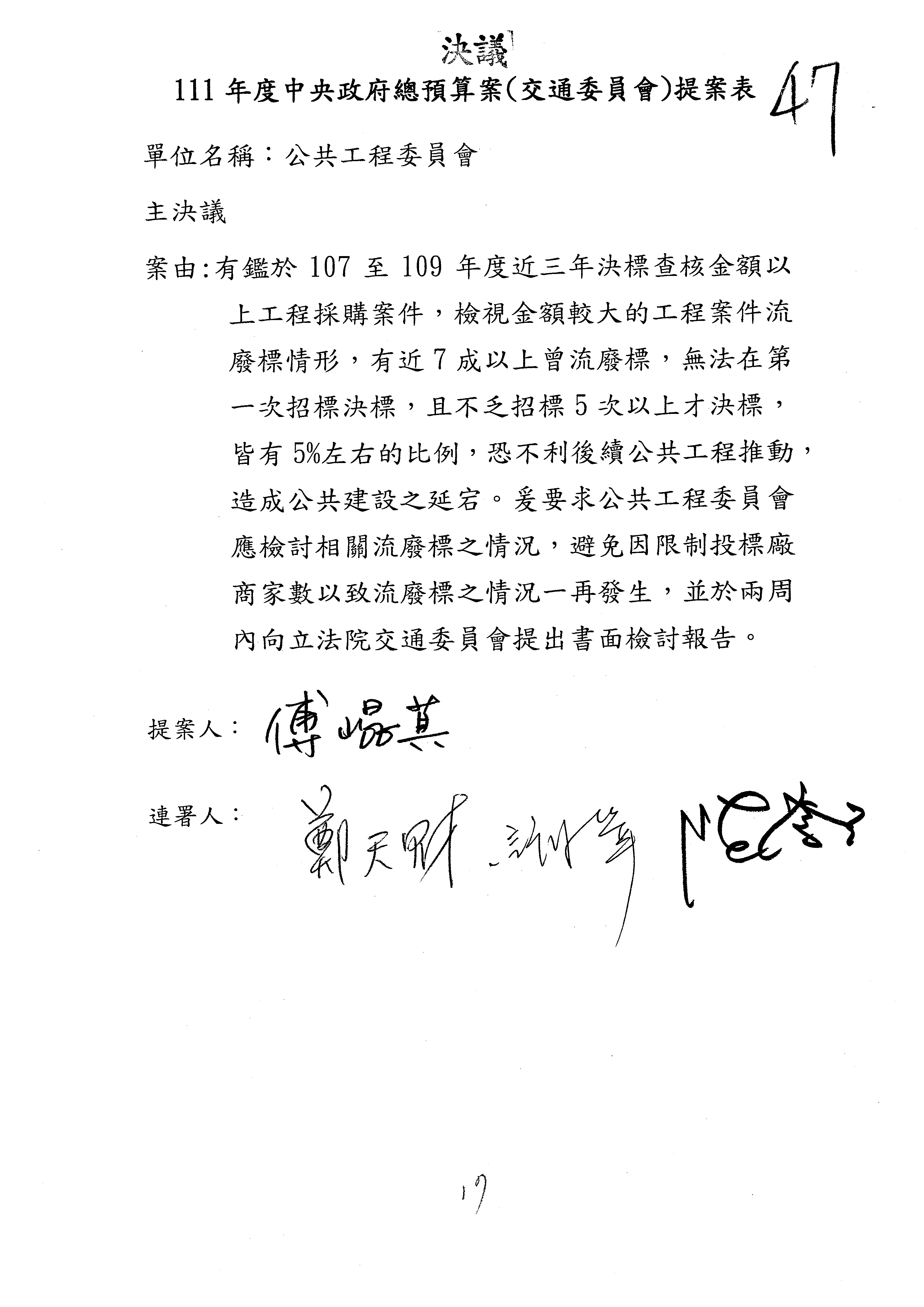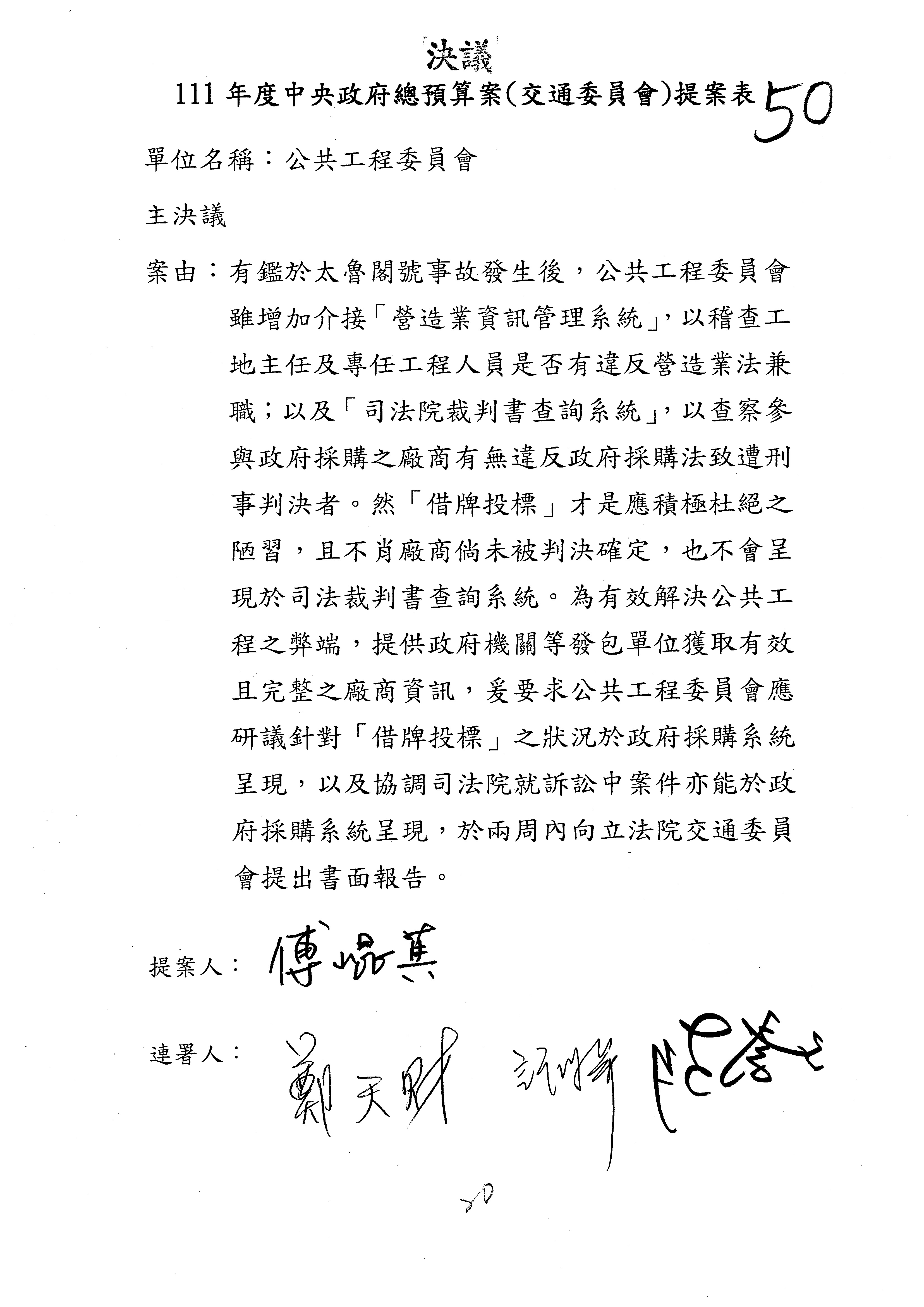 3.如有委員對於提案補簽,列入紀錄並刊登公報。