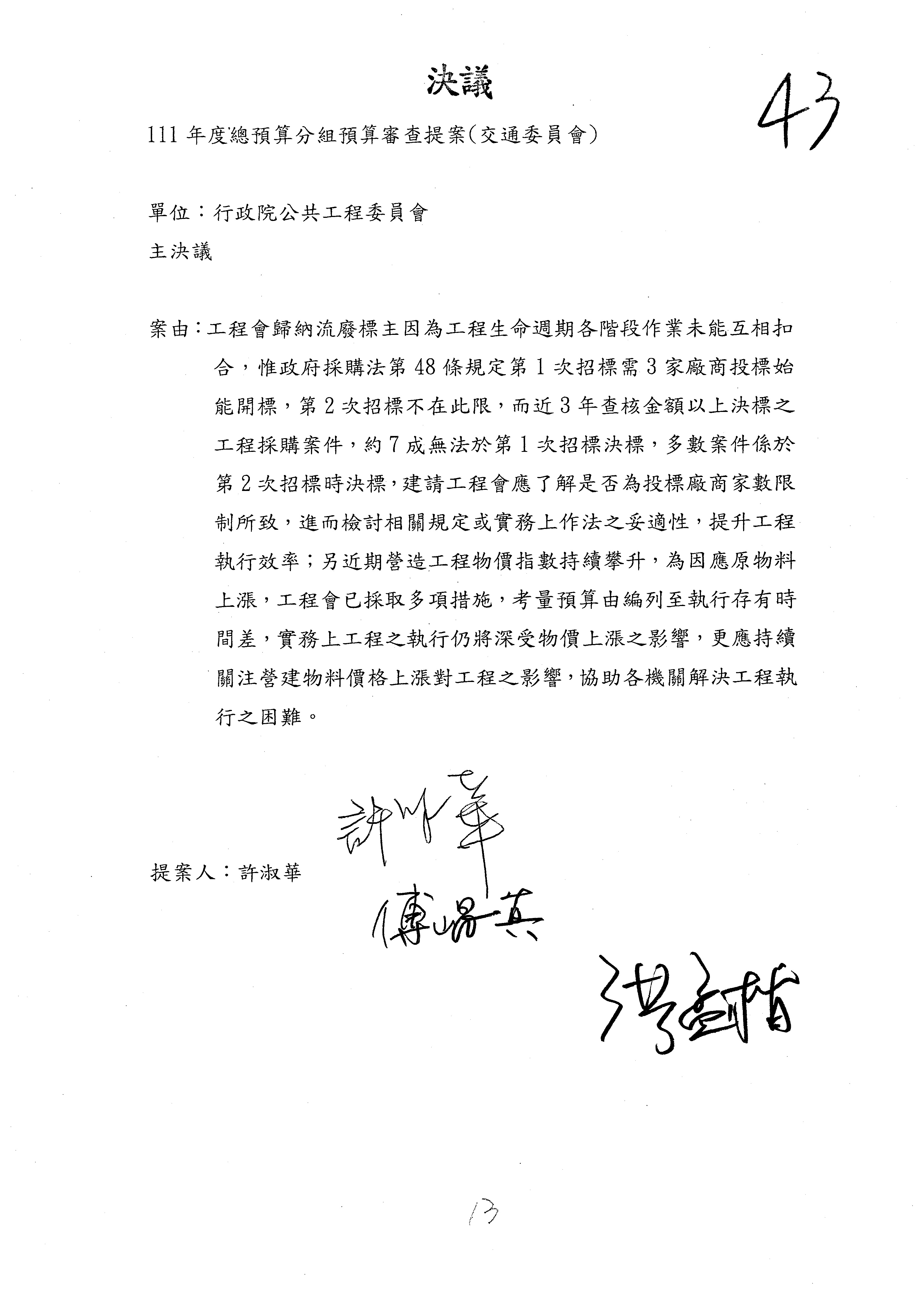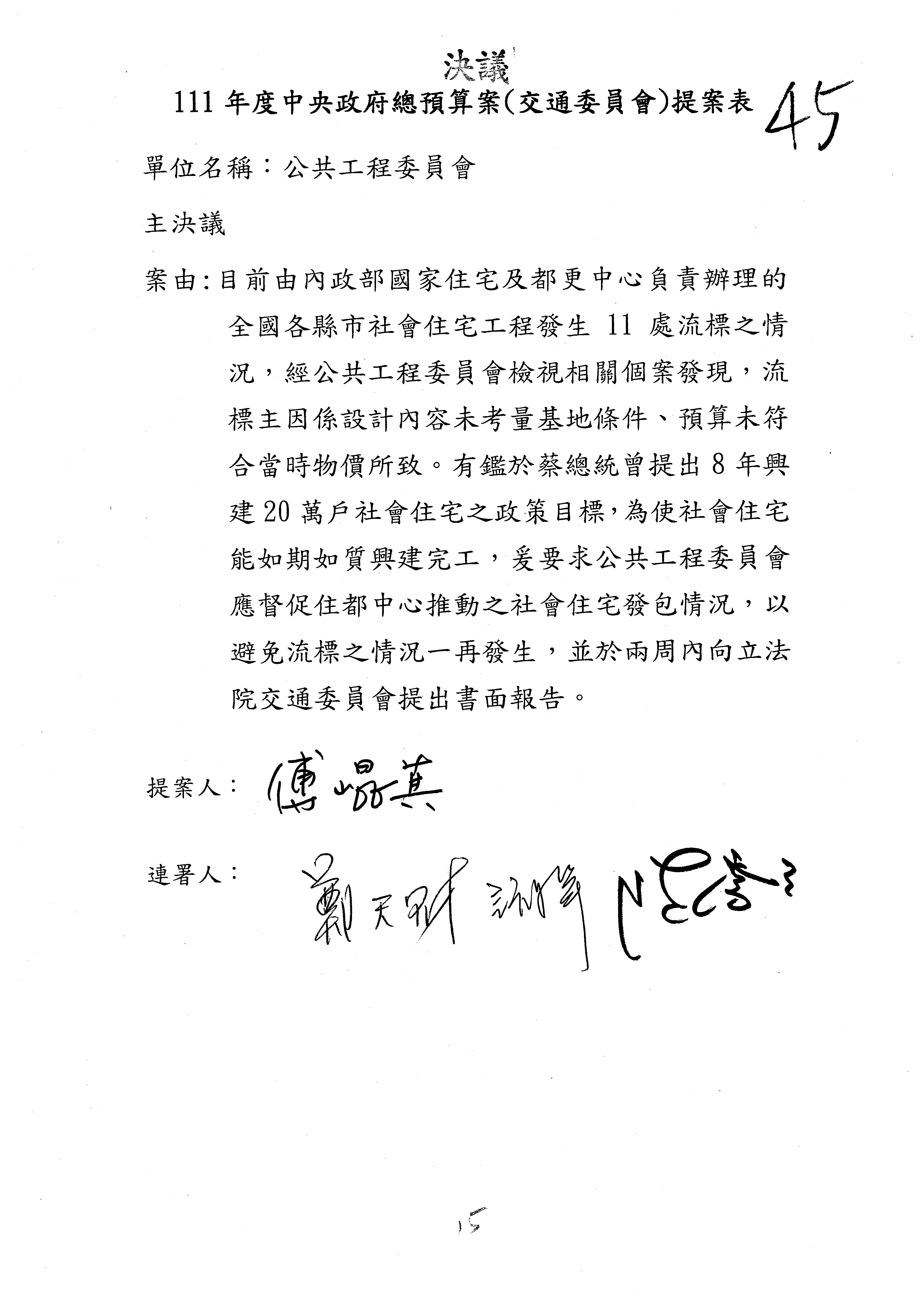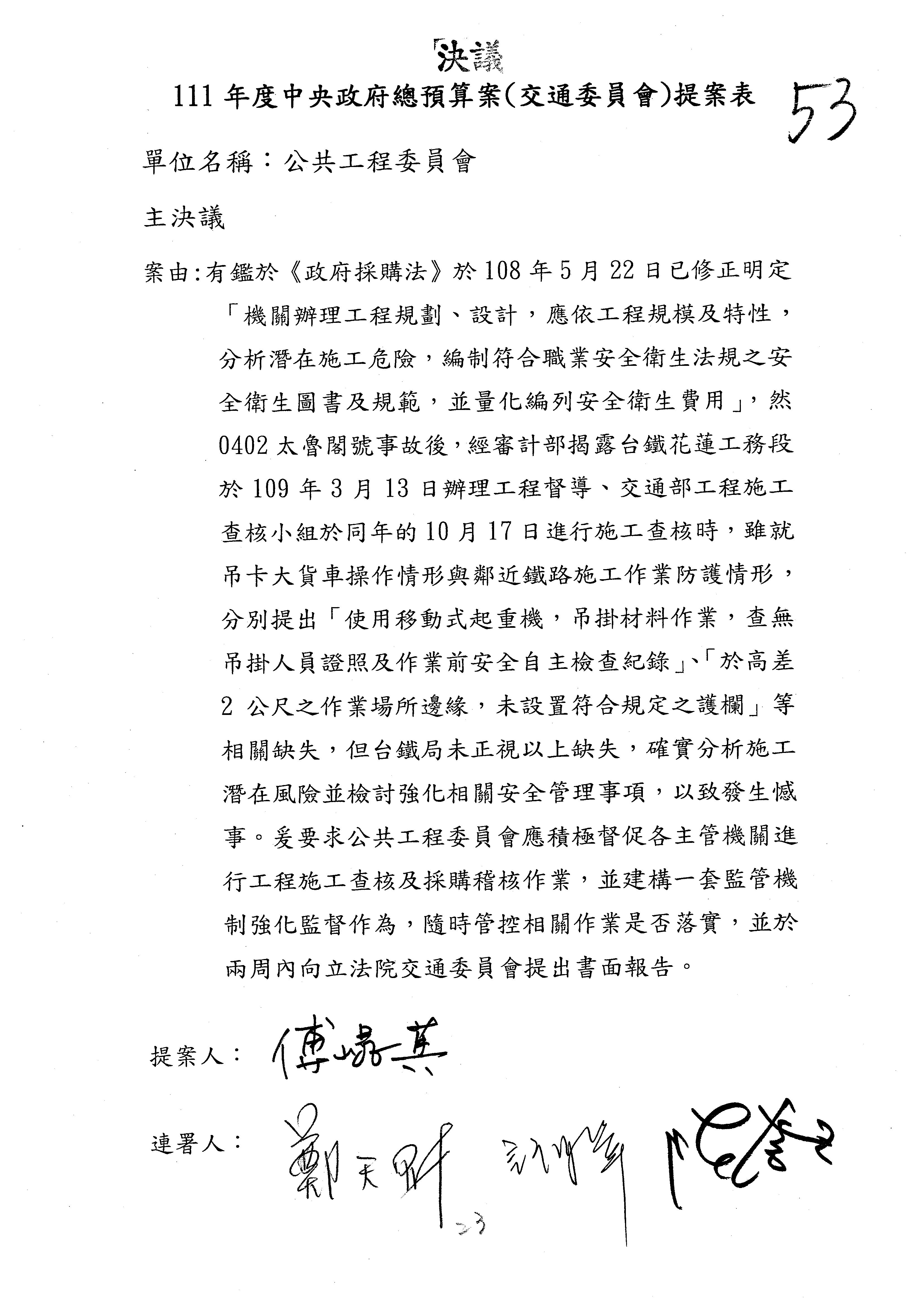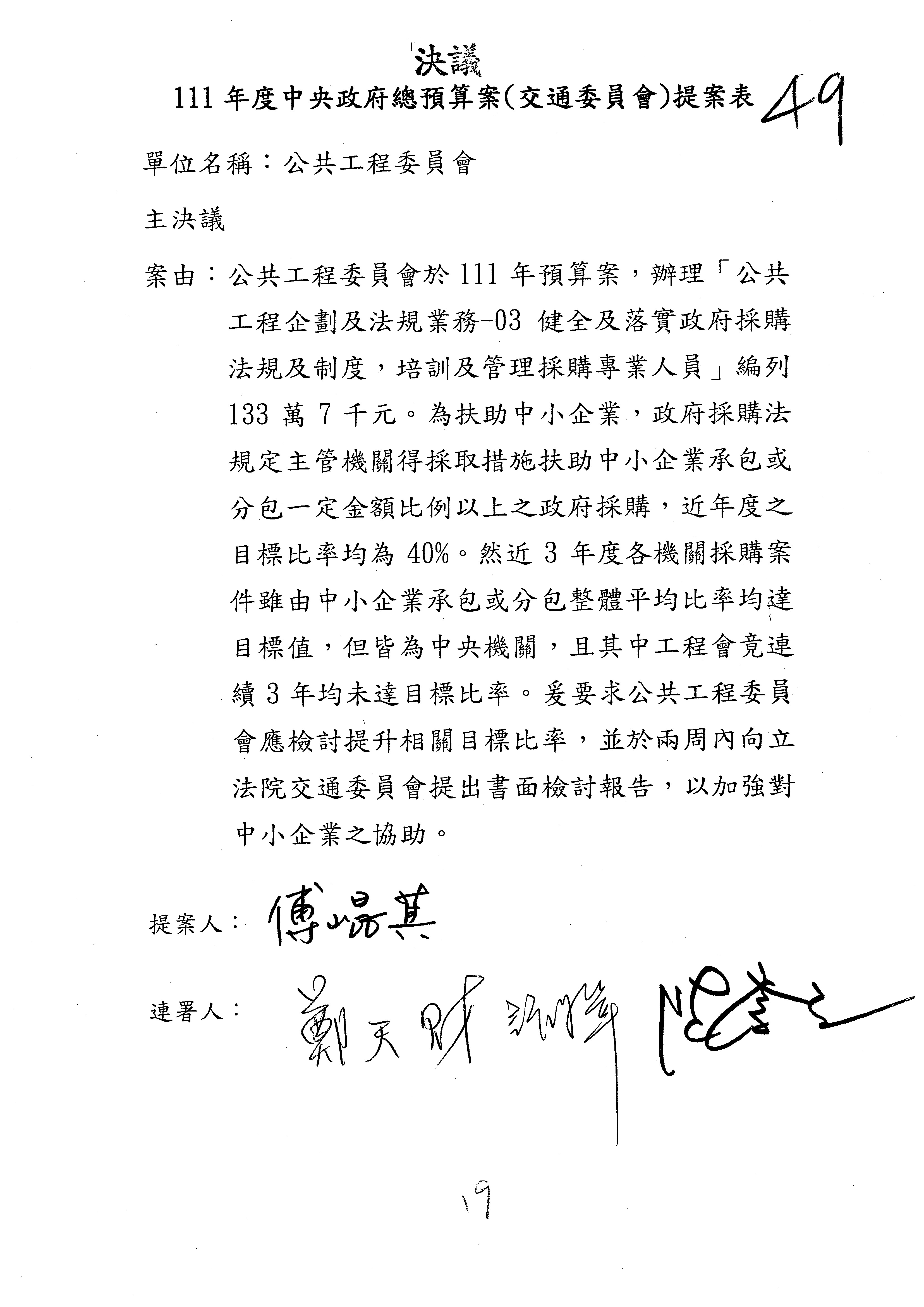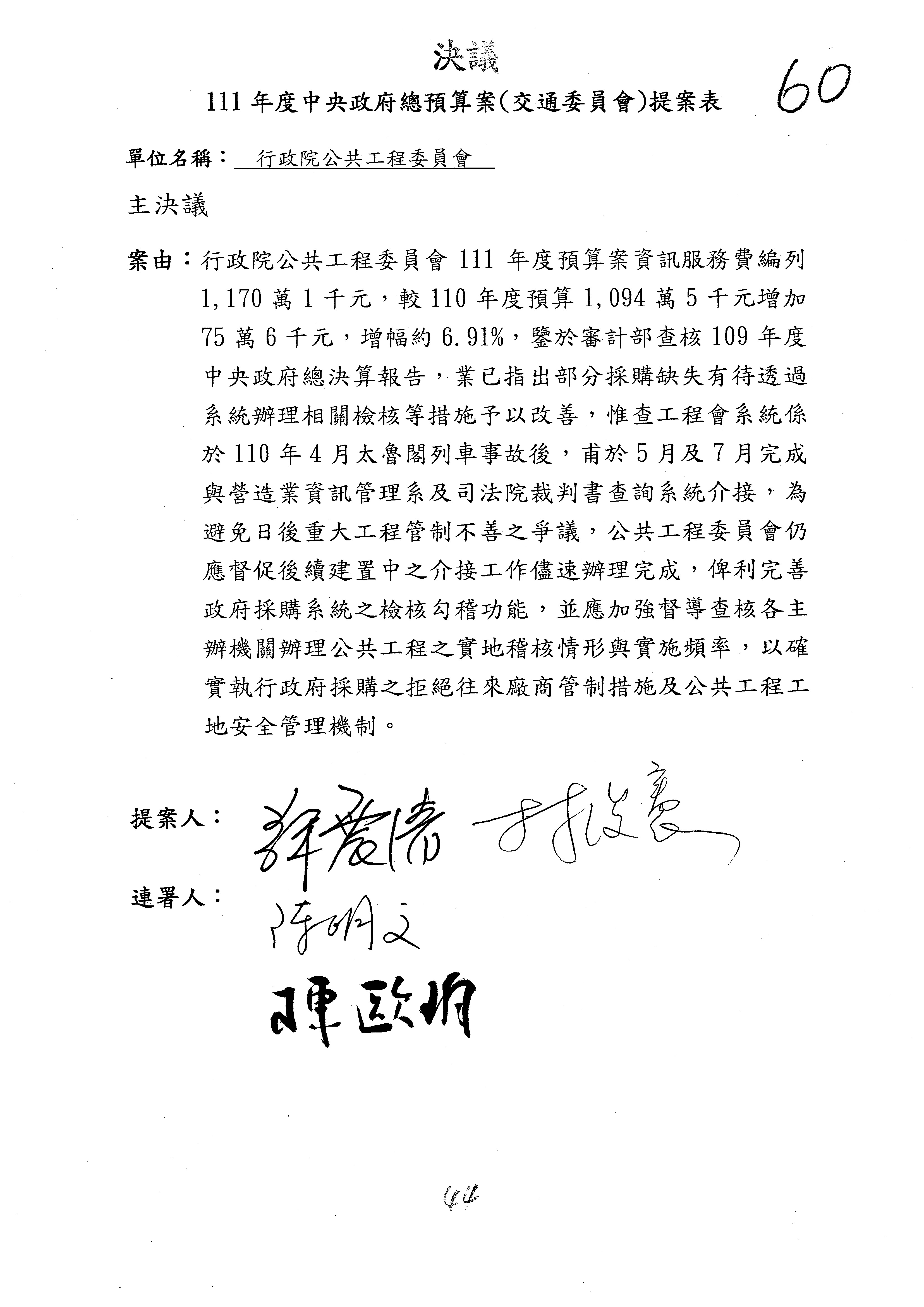 3.如有委員對於提案補簽,列入紀錄並刊登公報。
