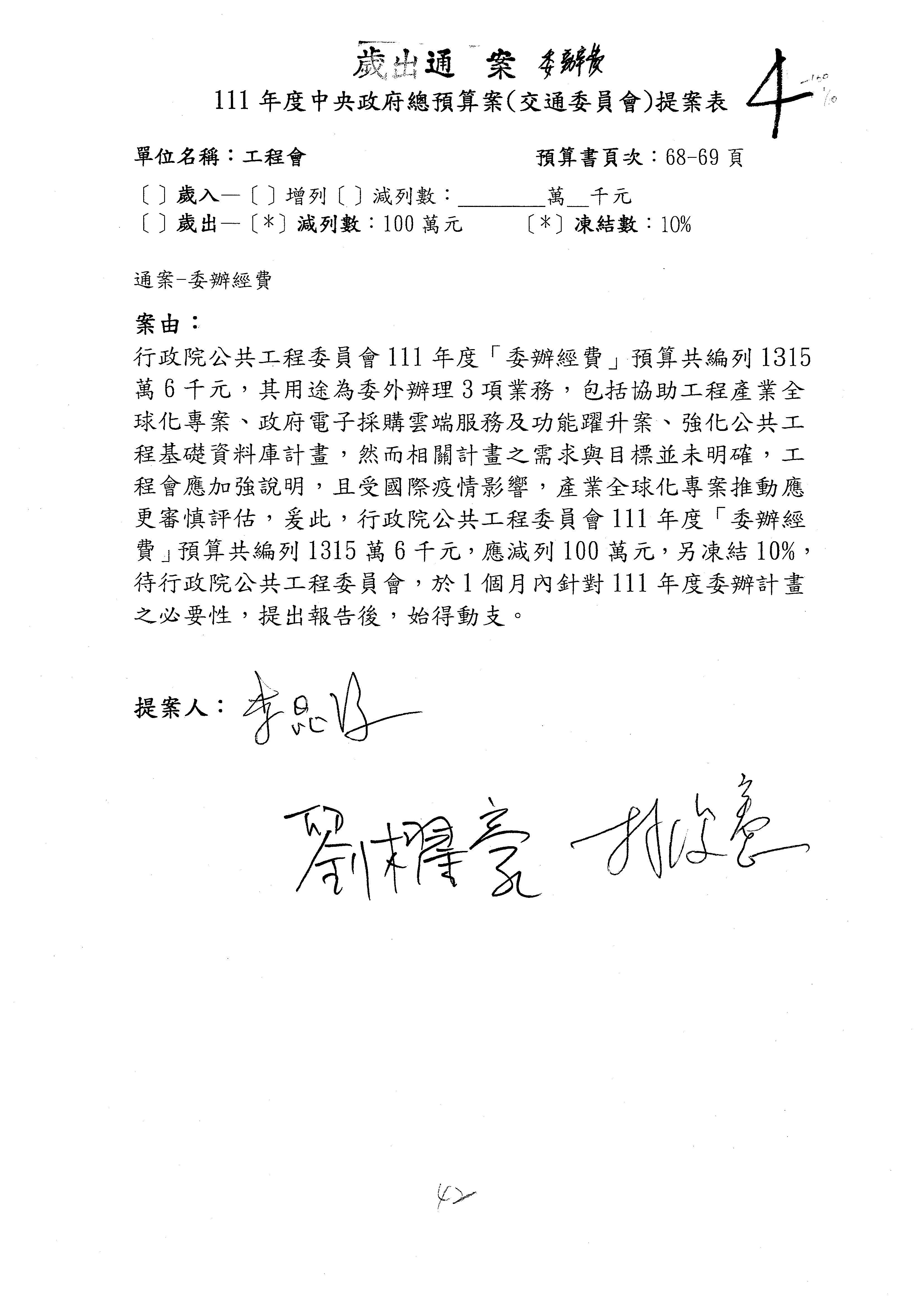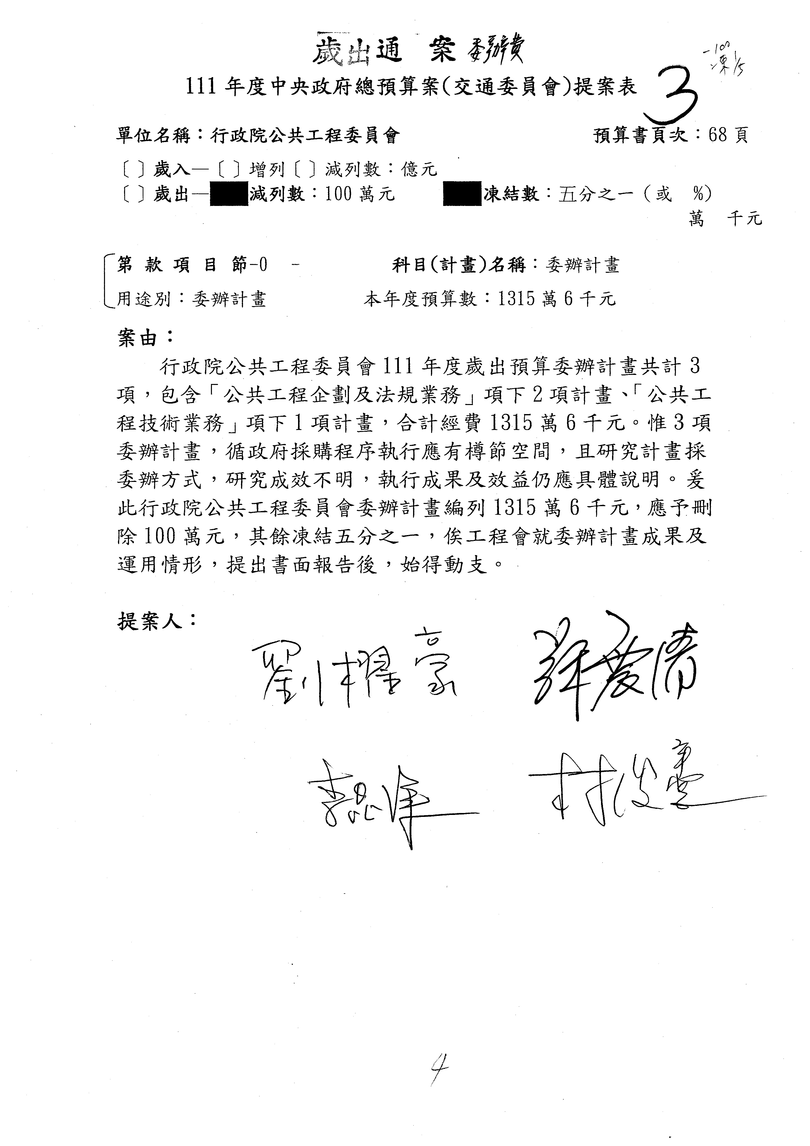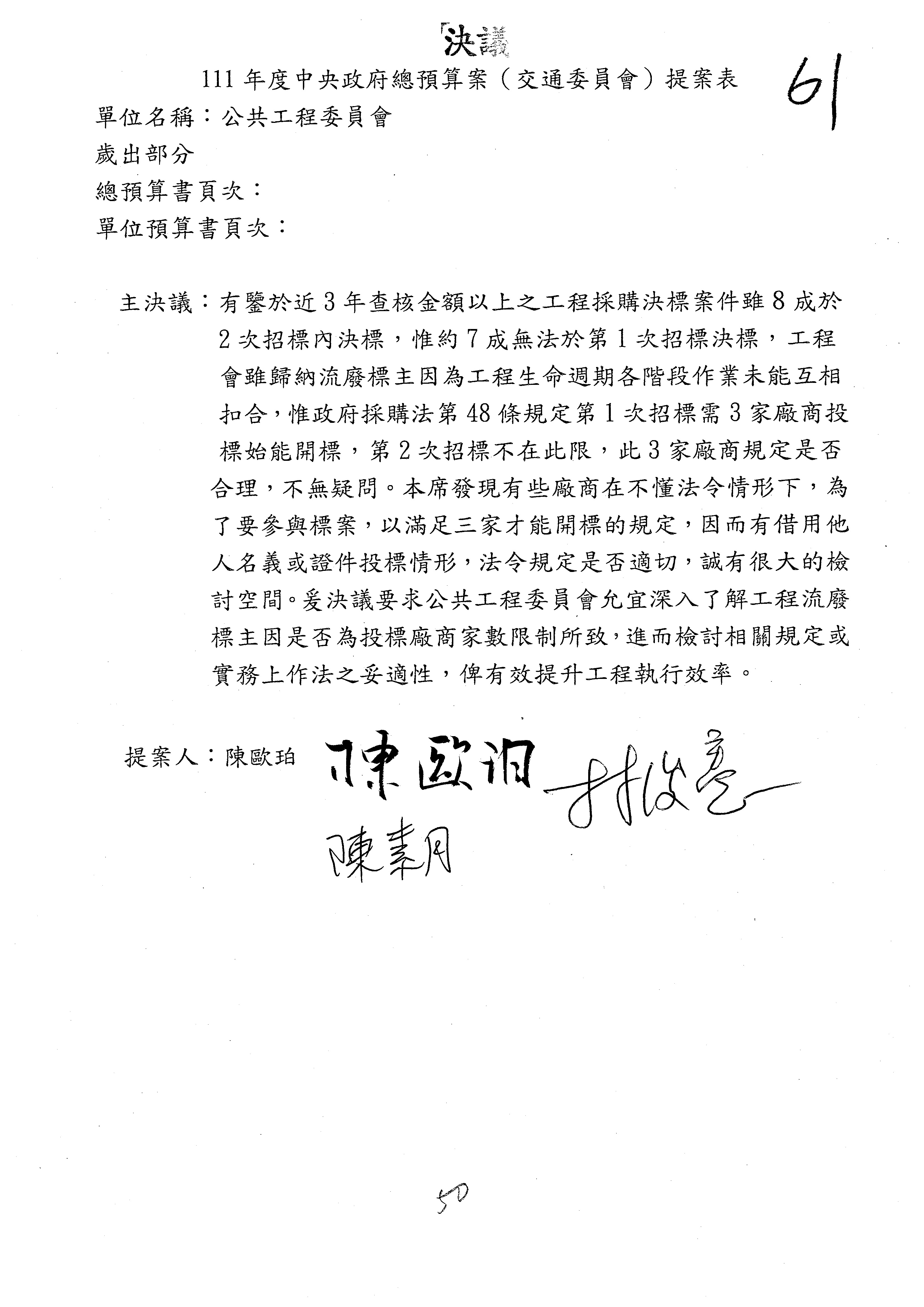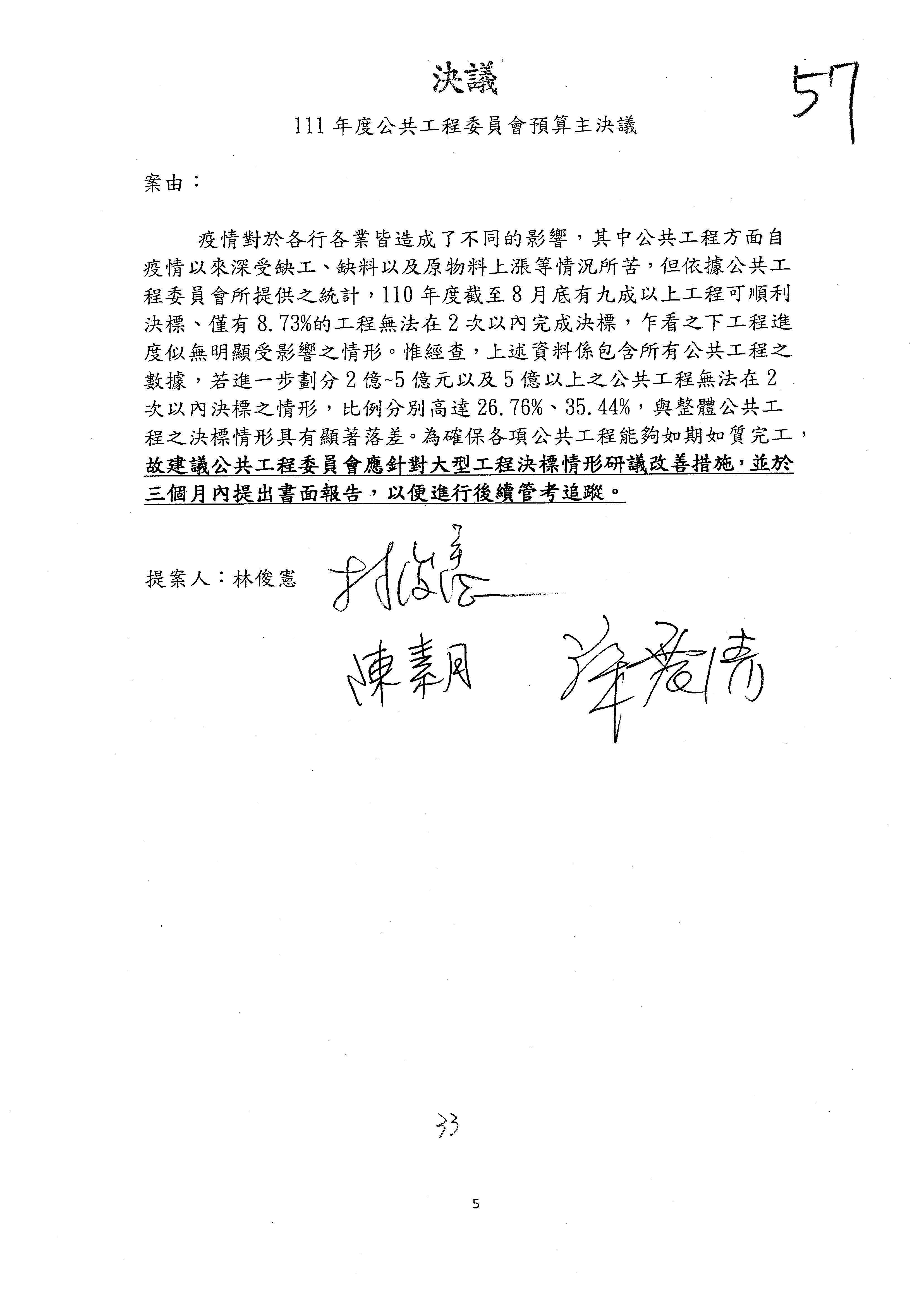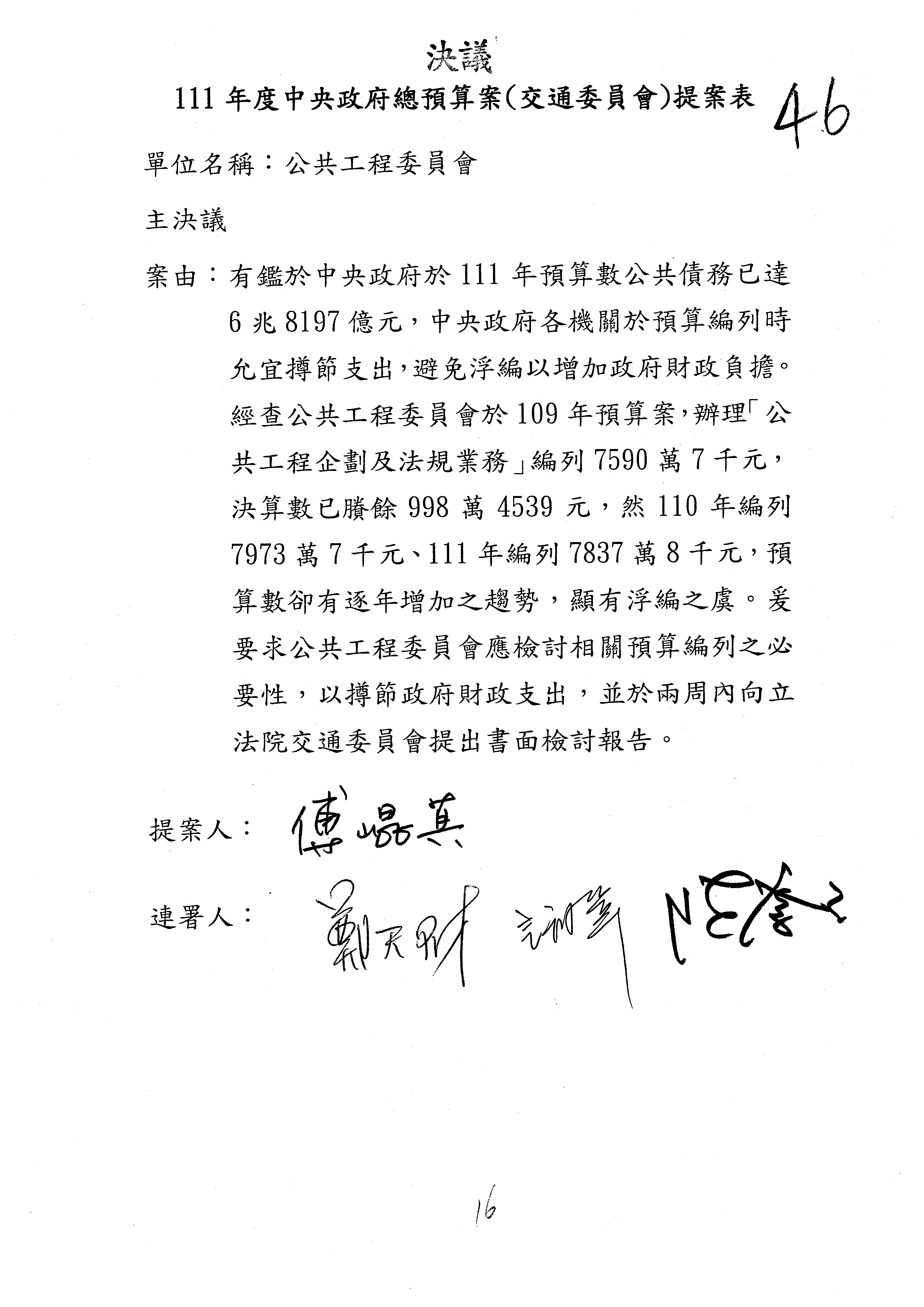 3.如有委員對於提案補簽,列入紀錄並刊登公報。