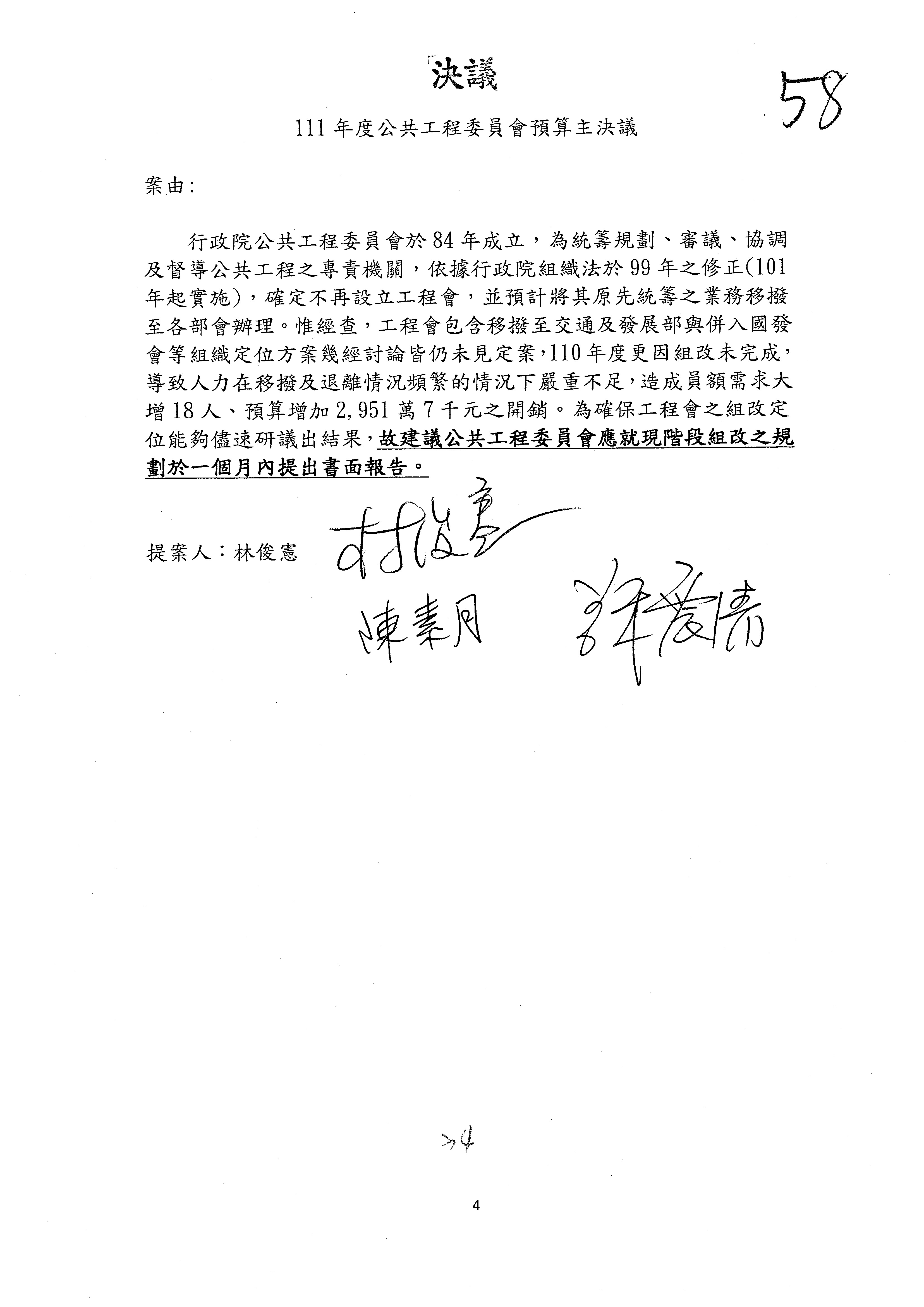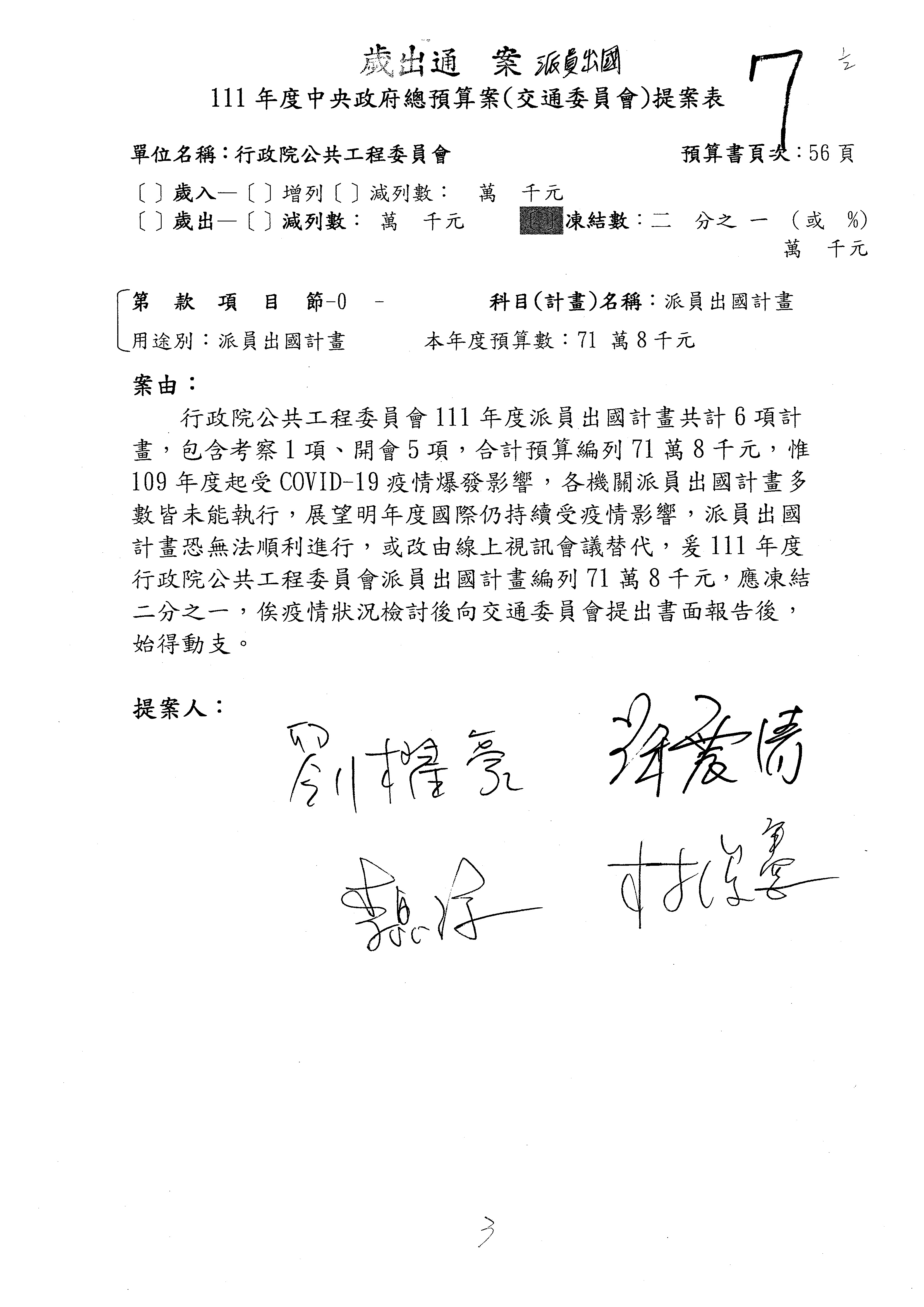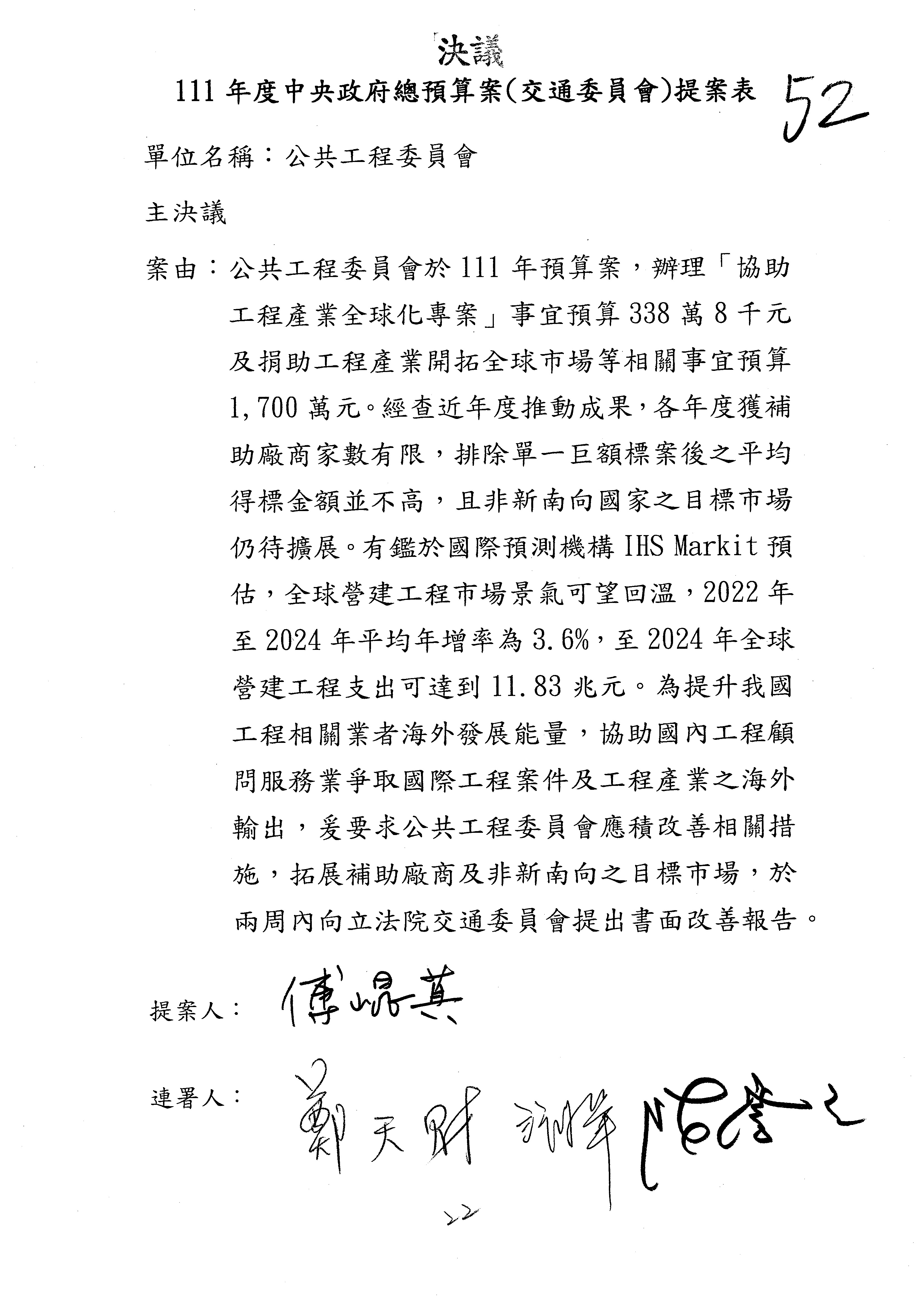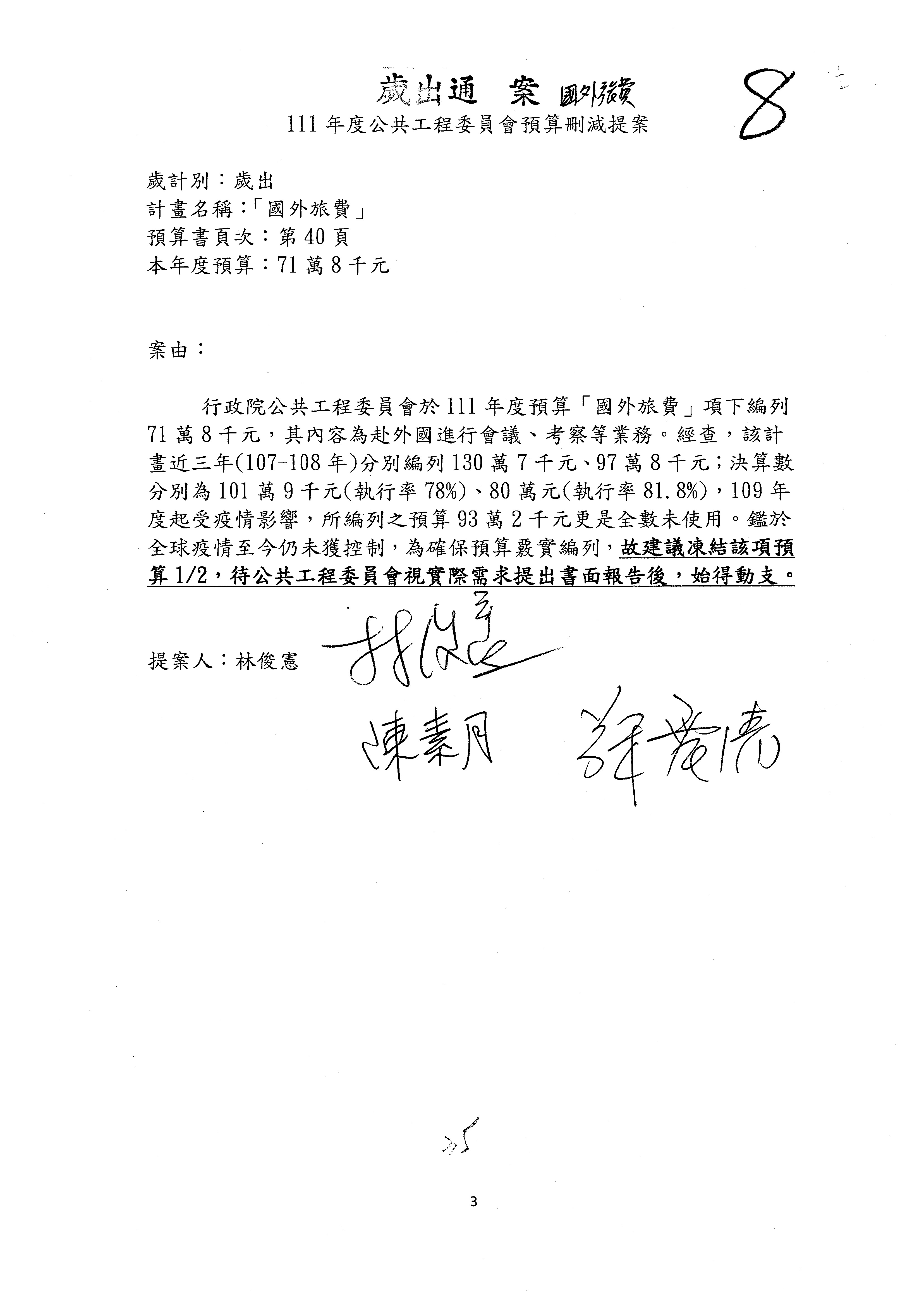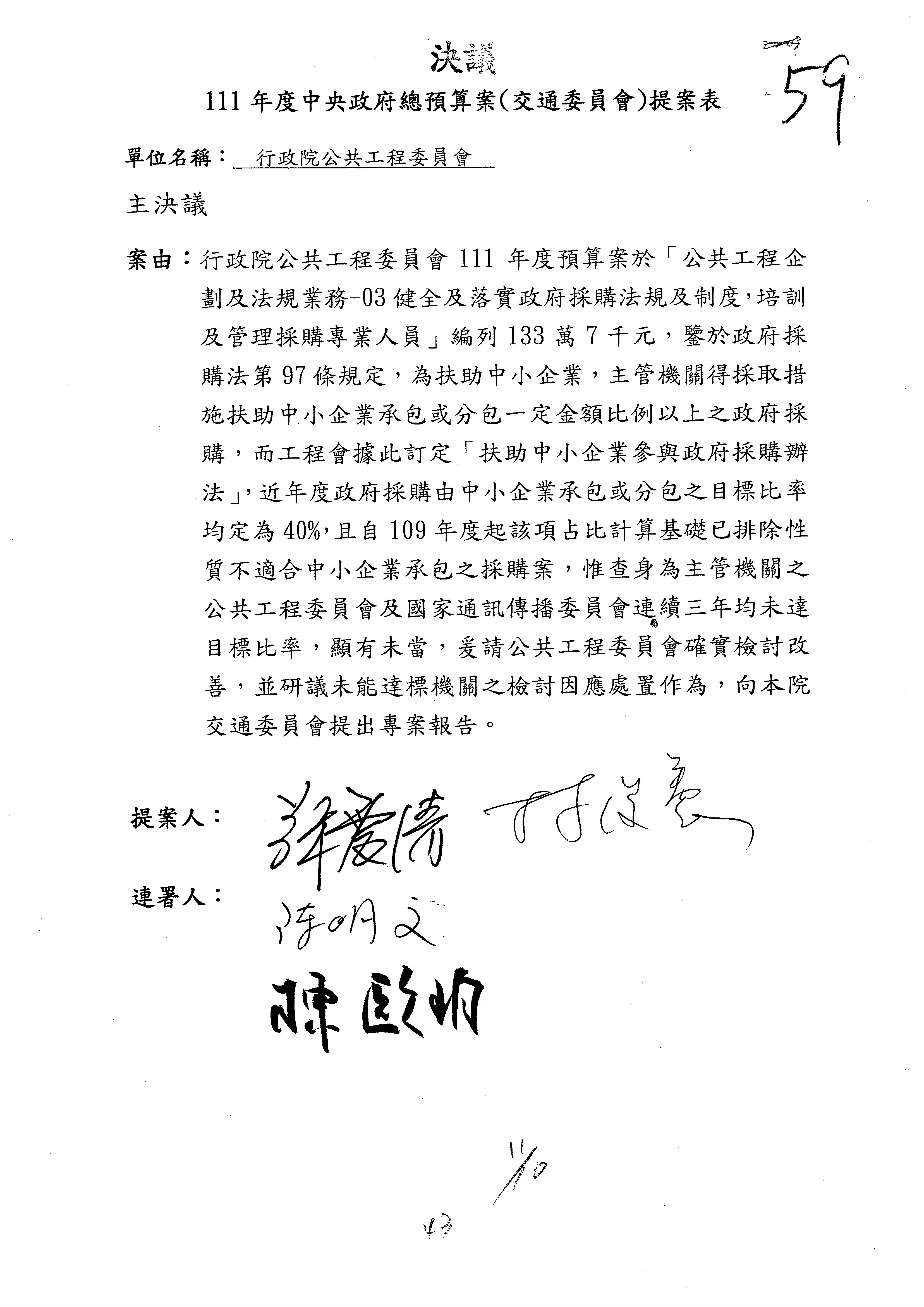 3.如有委員對於提案補簽,列入紀錄並刊登公報。