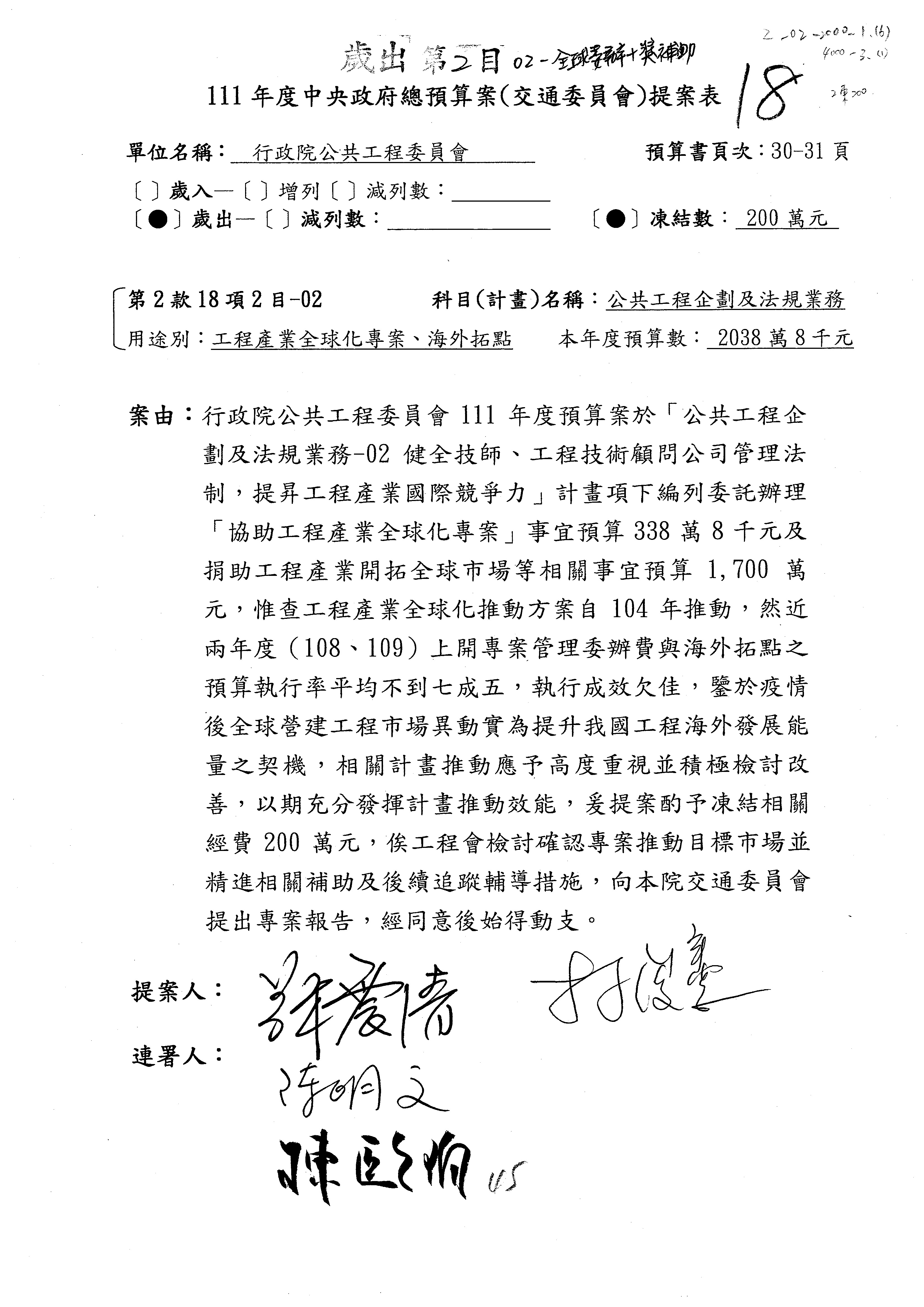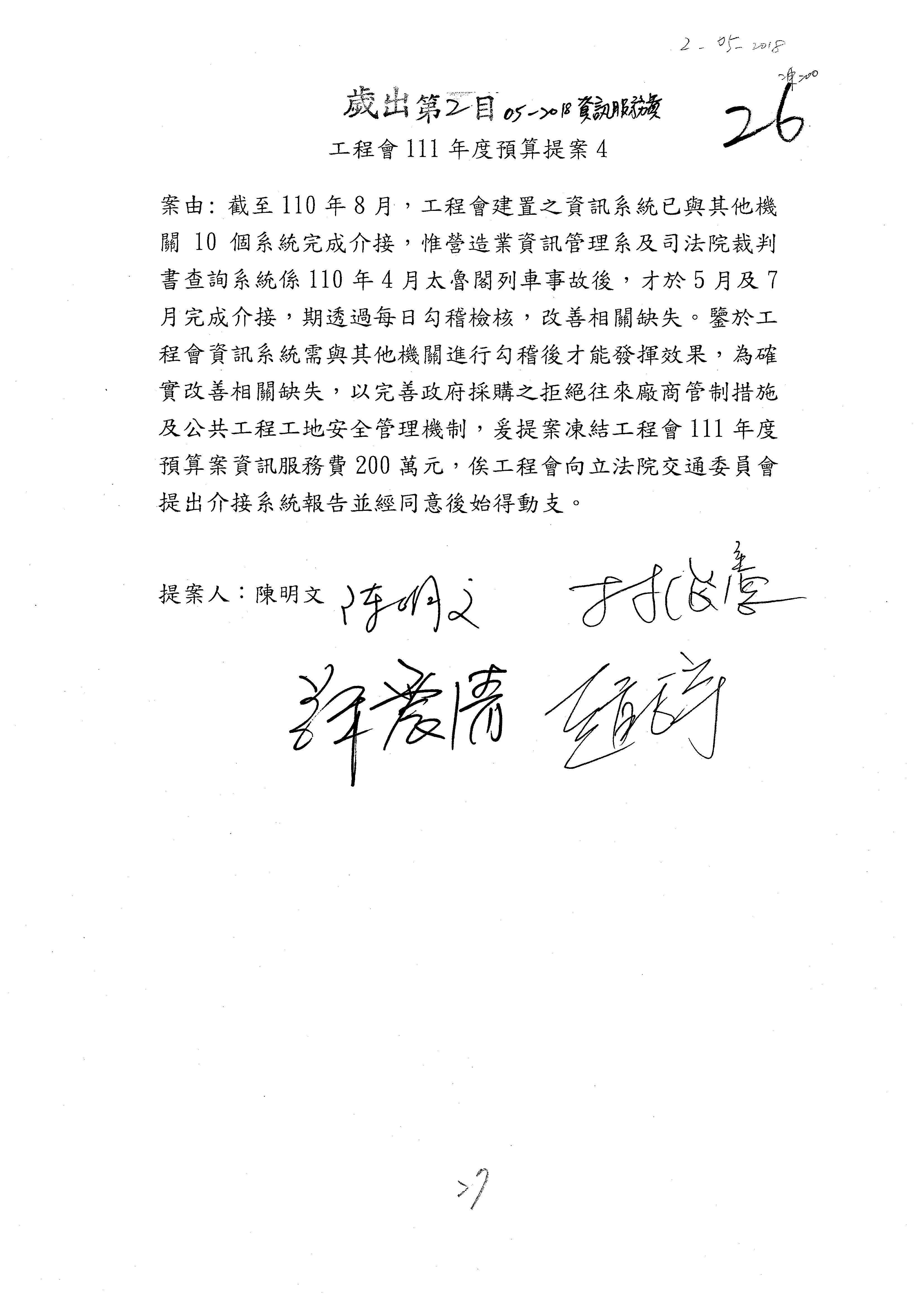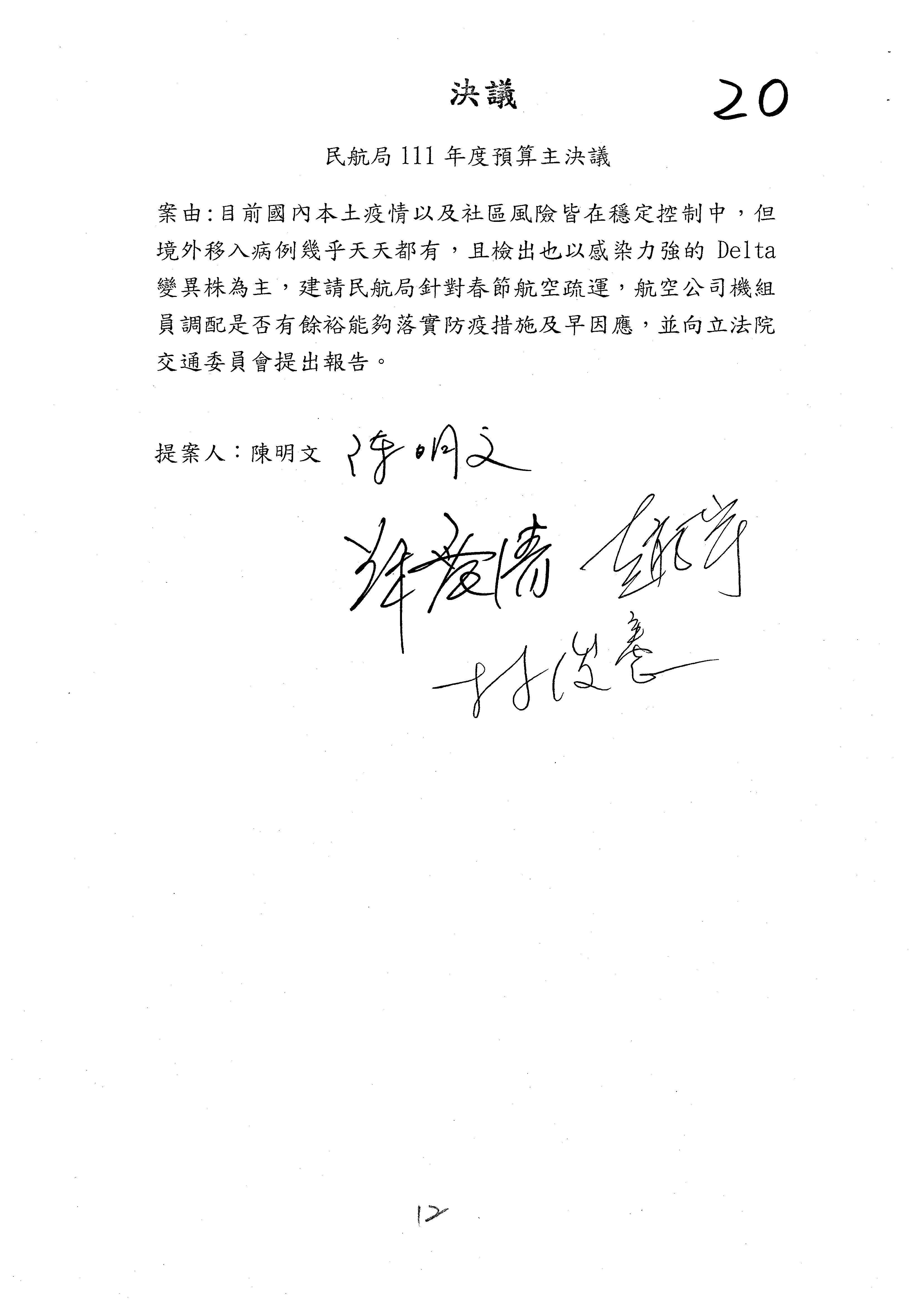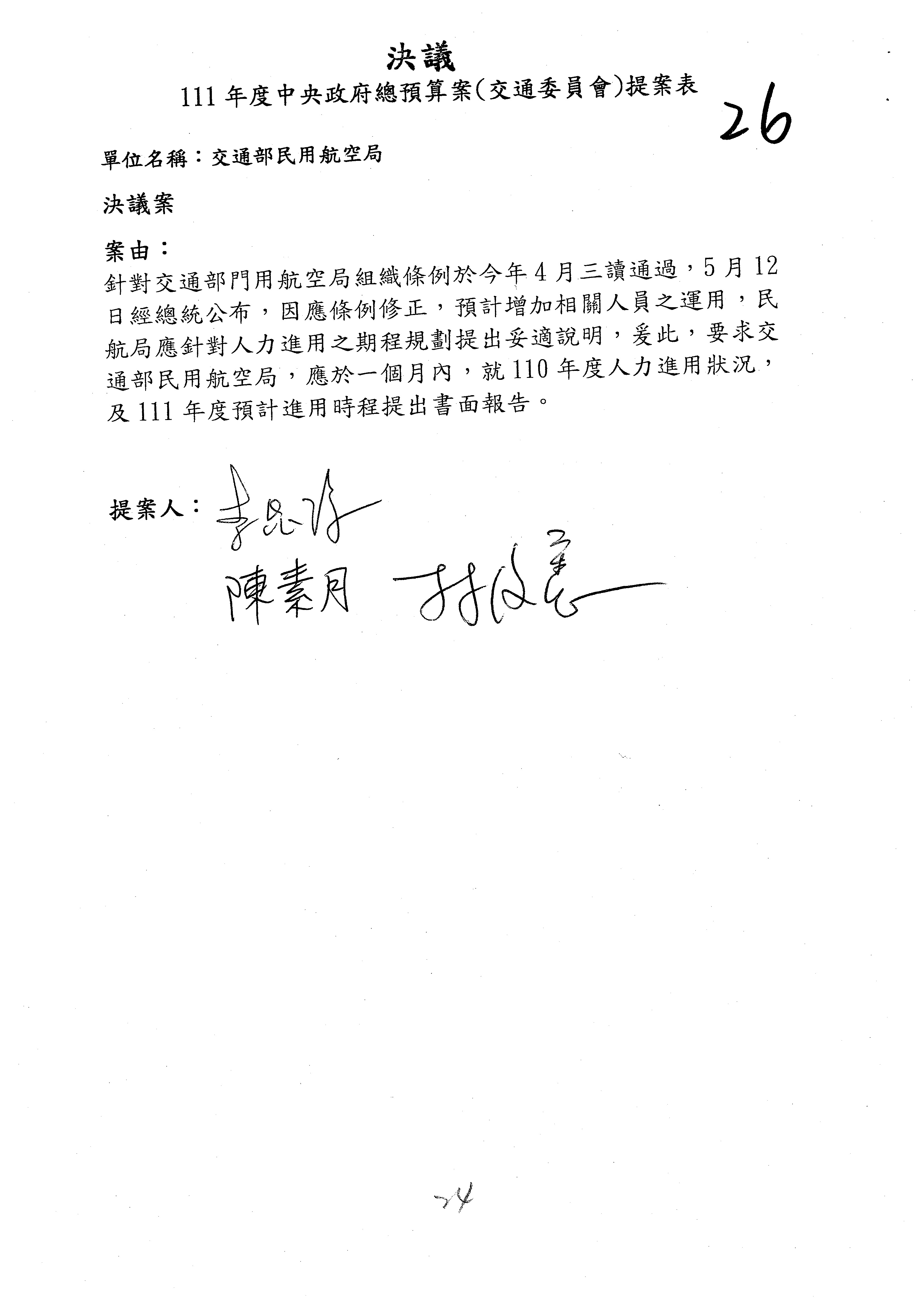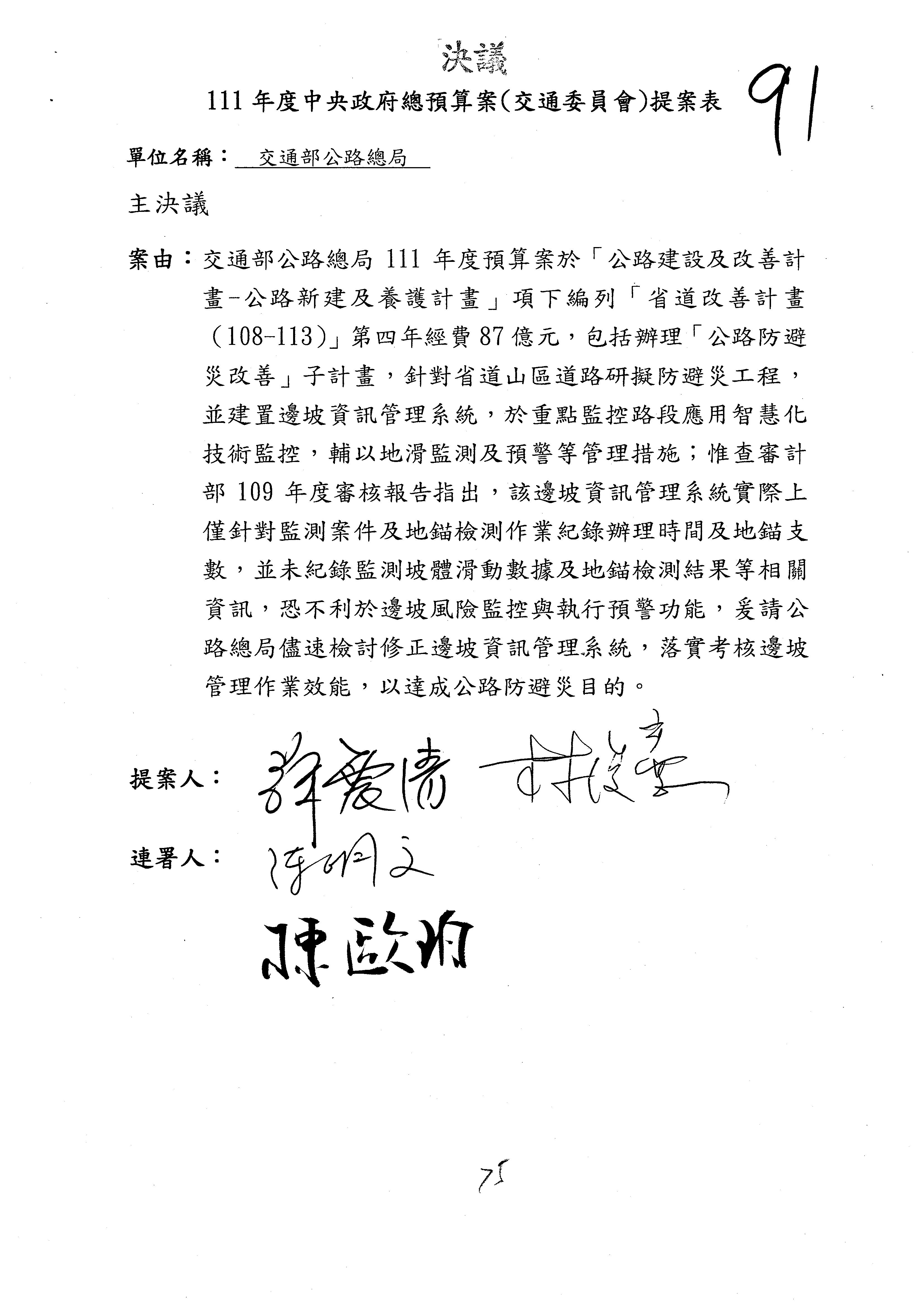 3.如有委員對於提案補簽,列入紀錄並刊登公報。