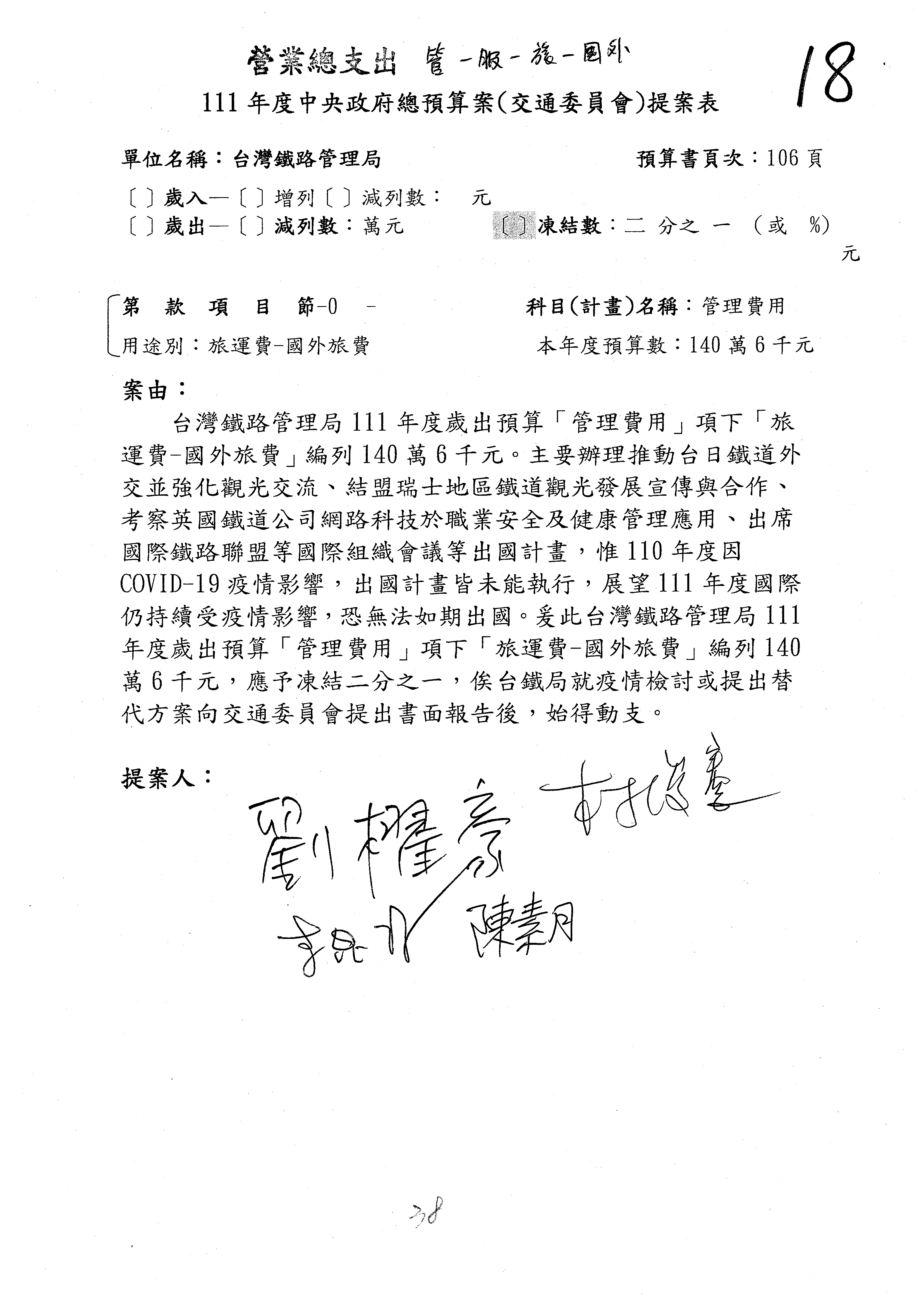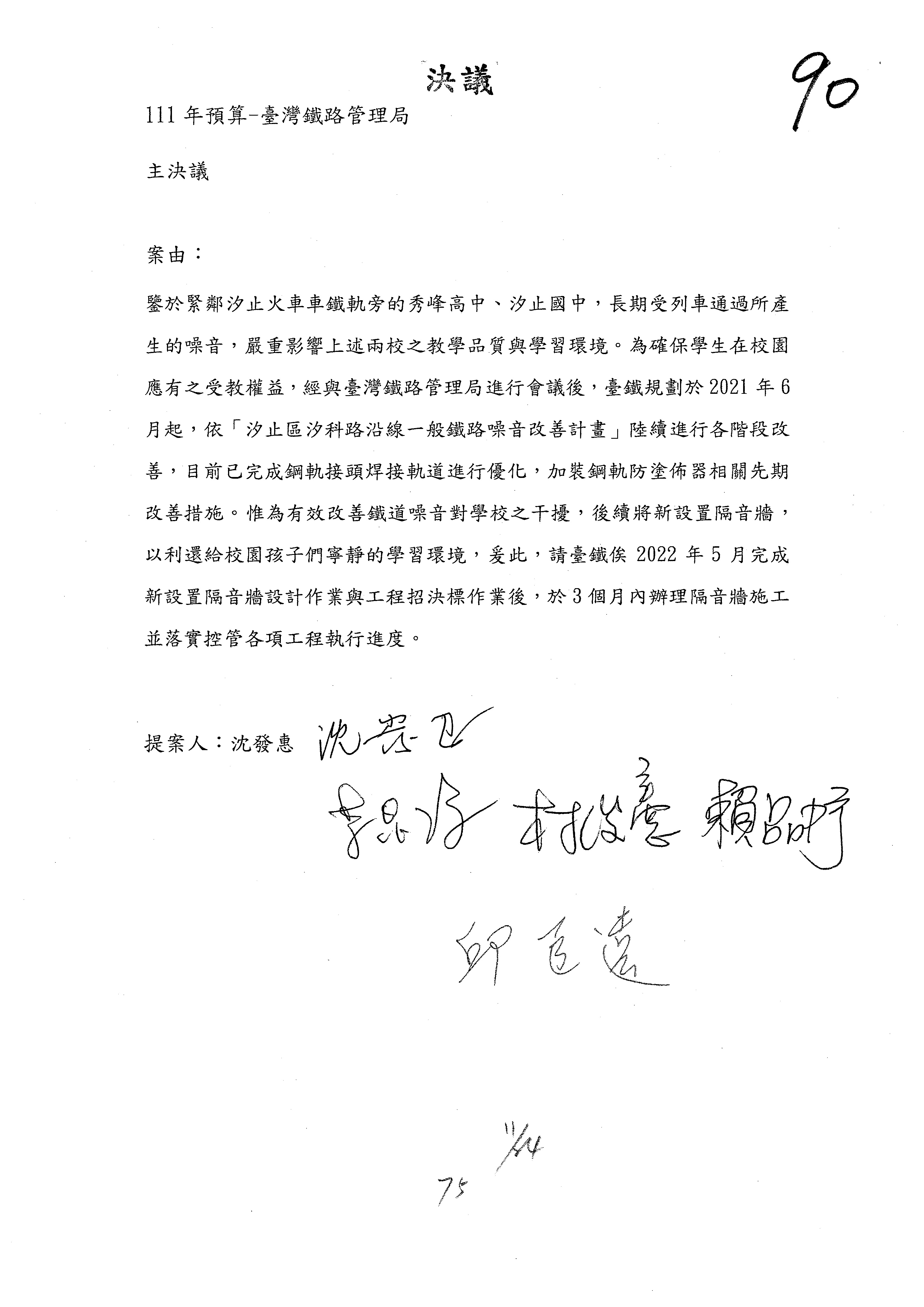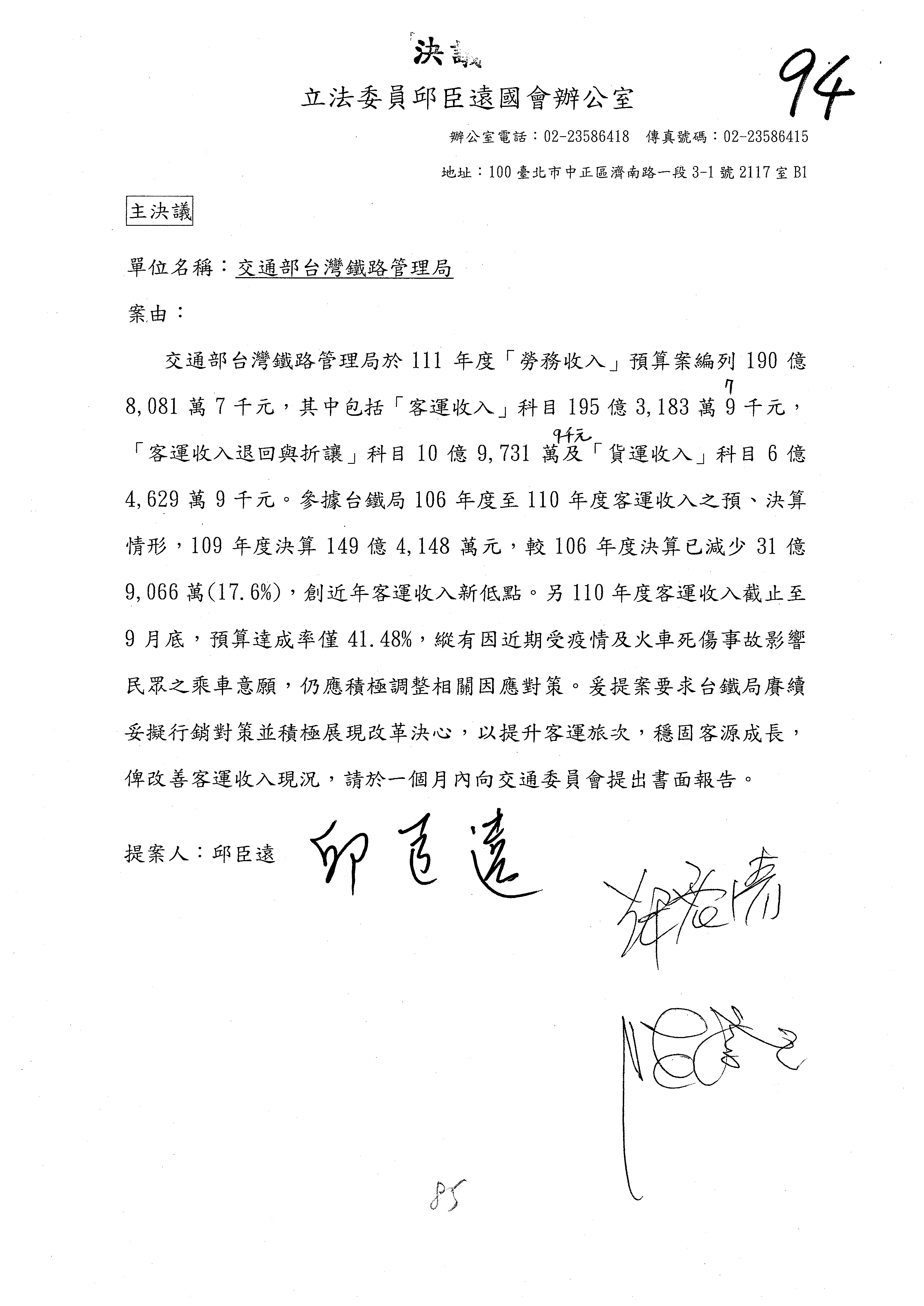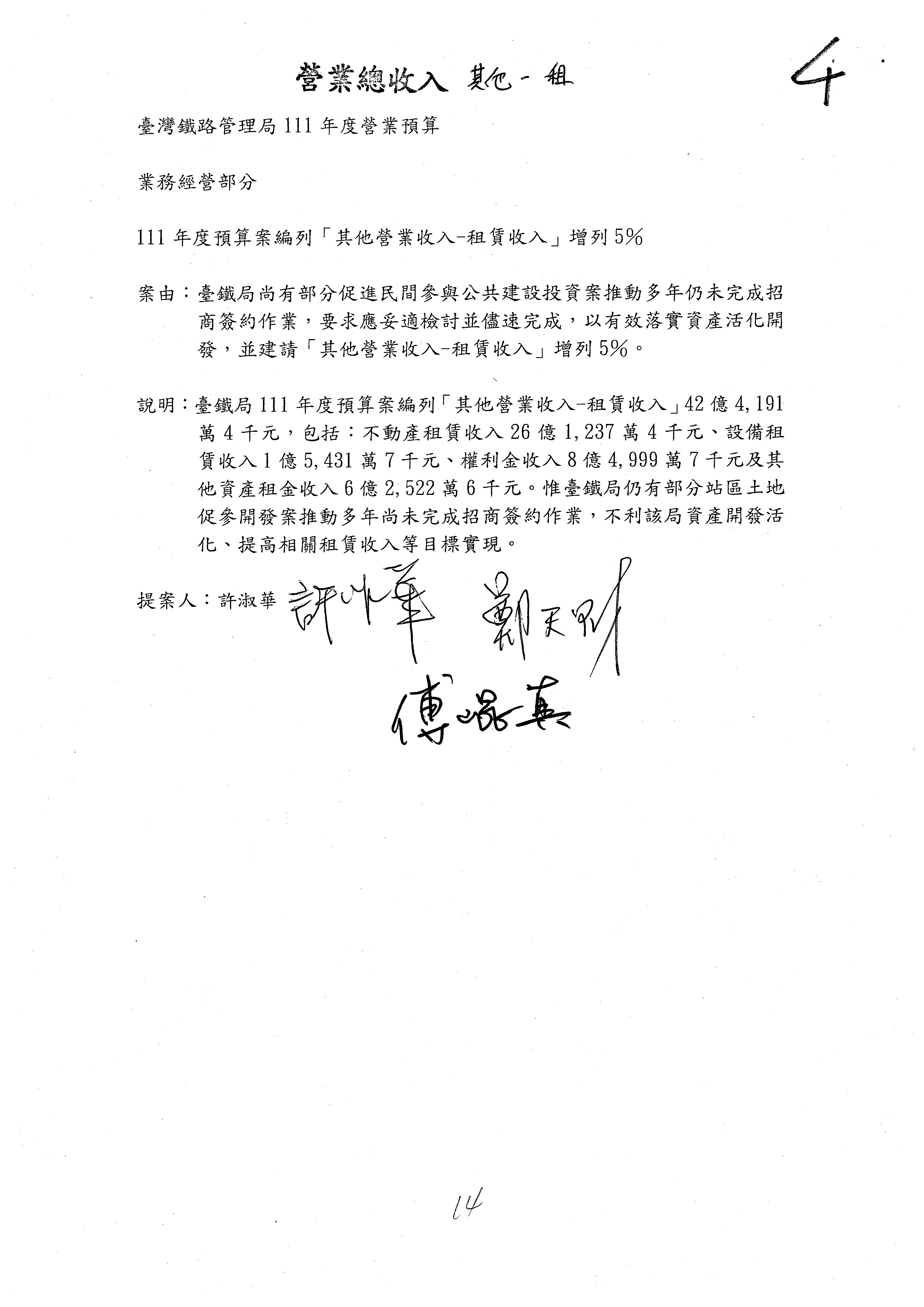 杜局長微:第78案建議倒數第3行的最後兩個字開始「應做出改善檢討報告……」,後面「並」刪掉,直接改為「爰要求臺鐵局於一個月內向立法院交通委員會提出書面改善檢討報告」。