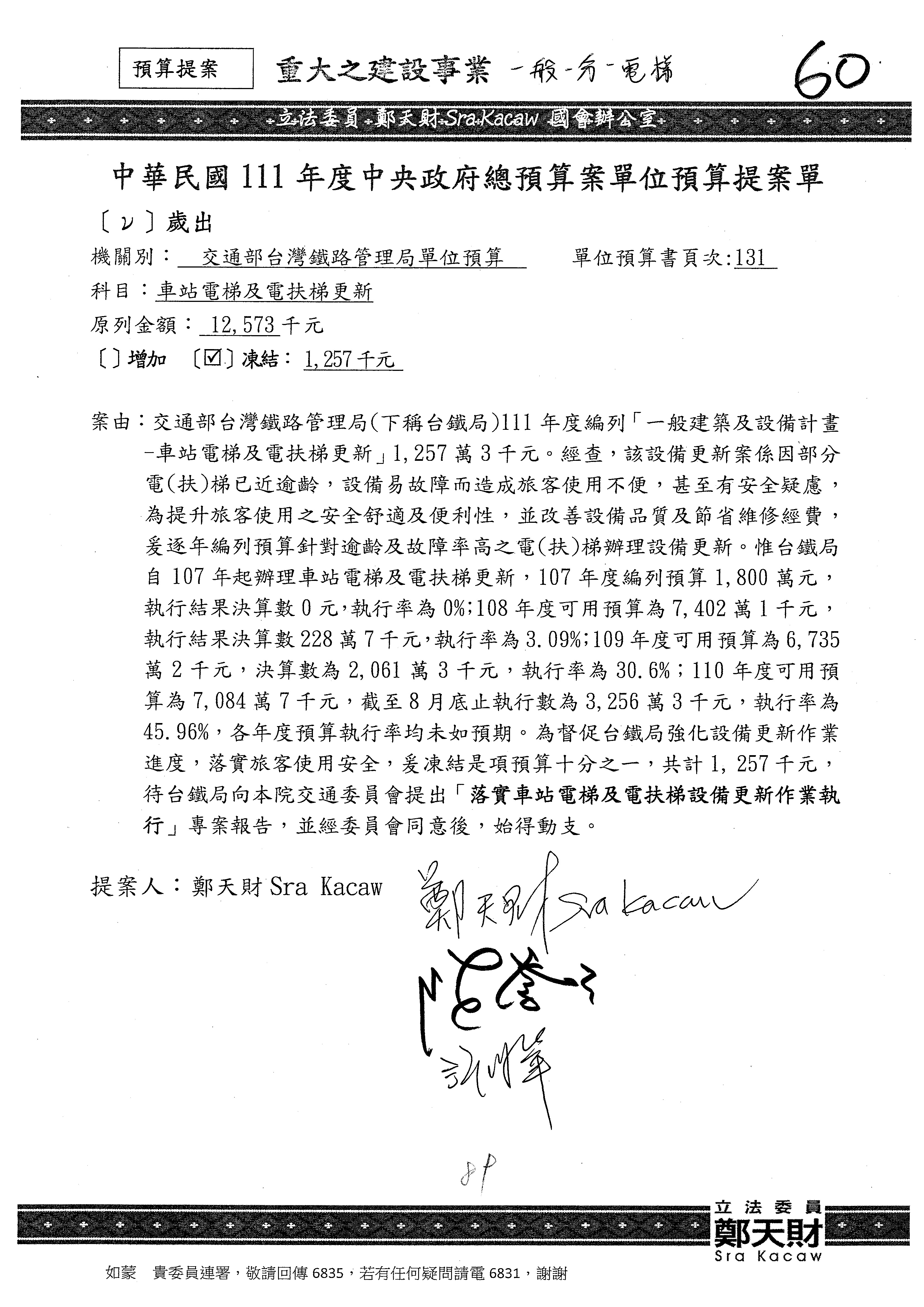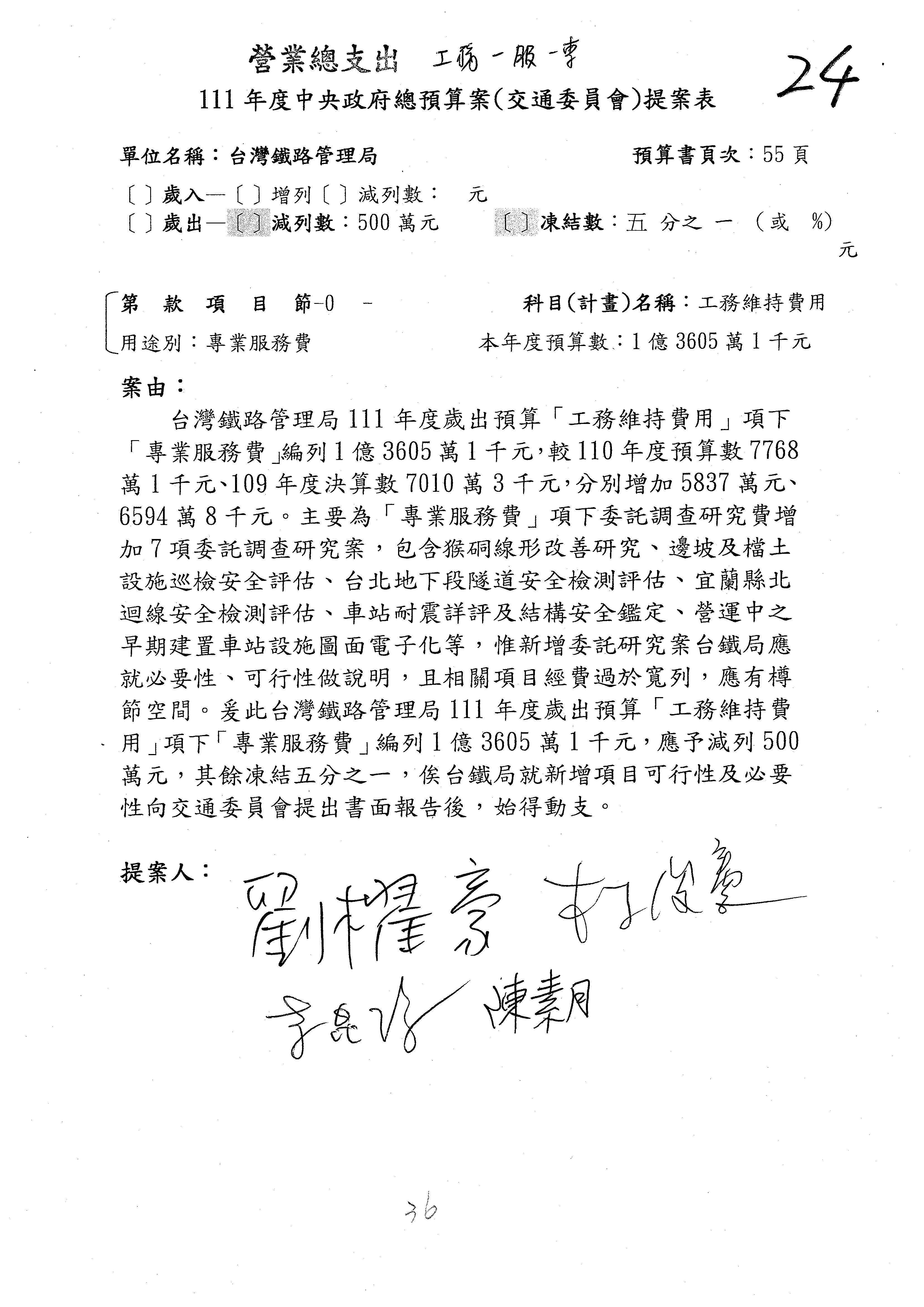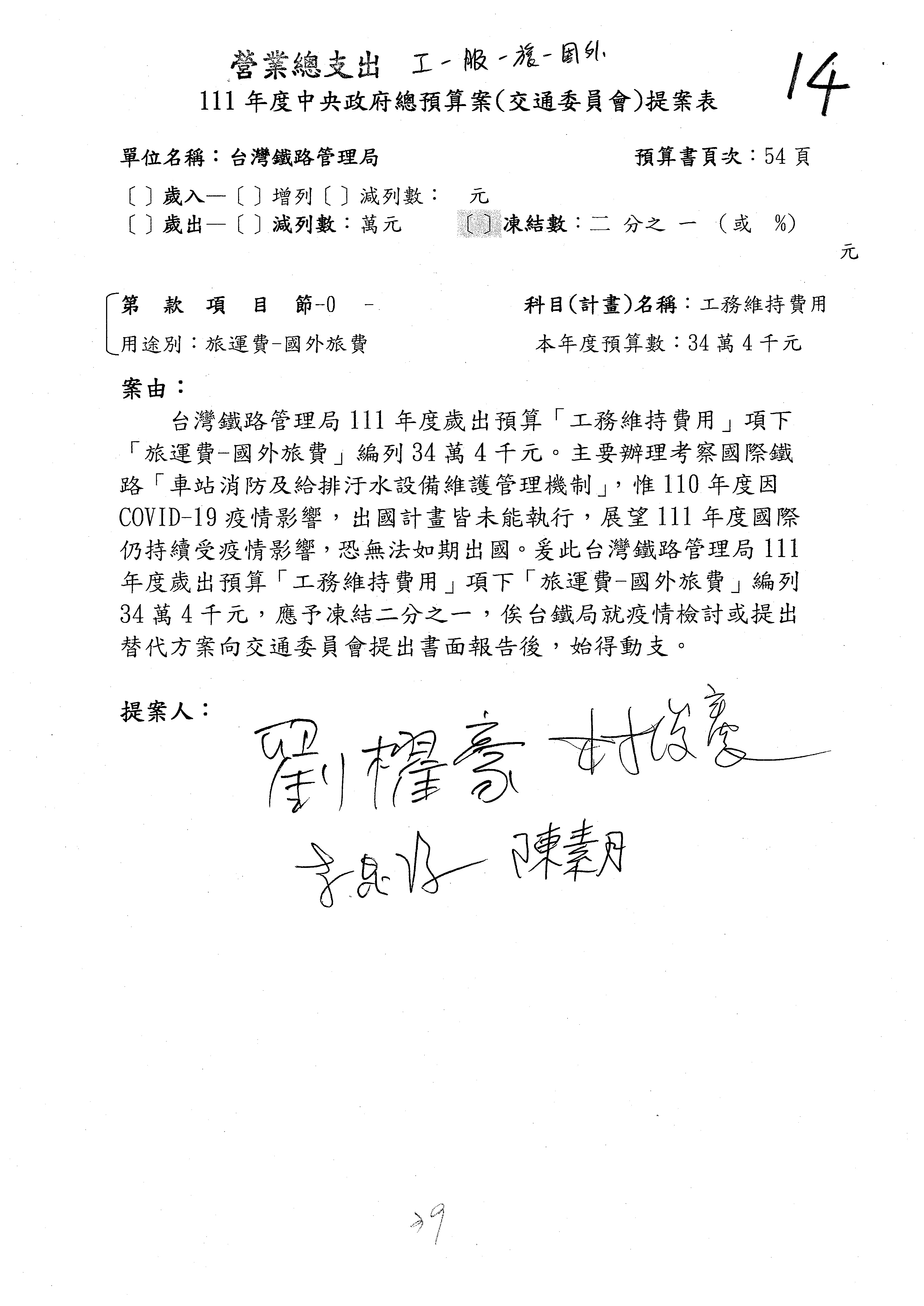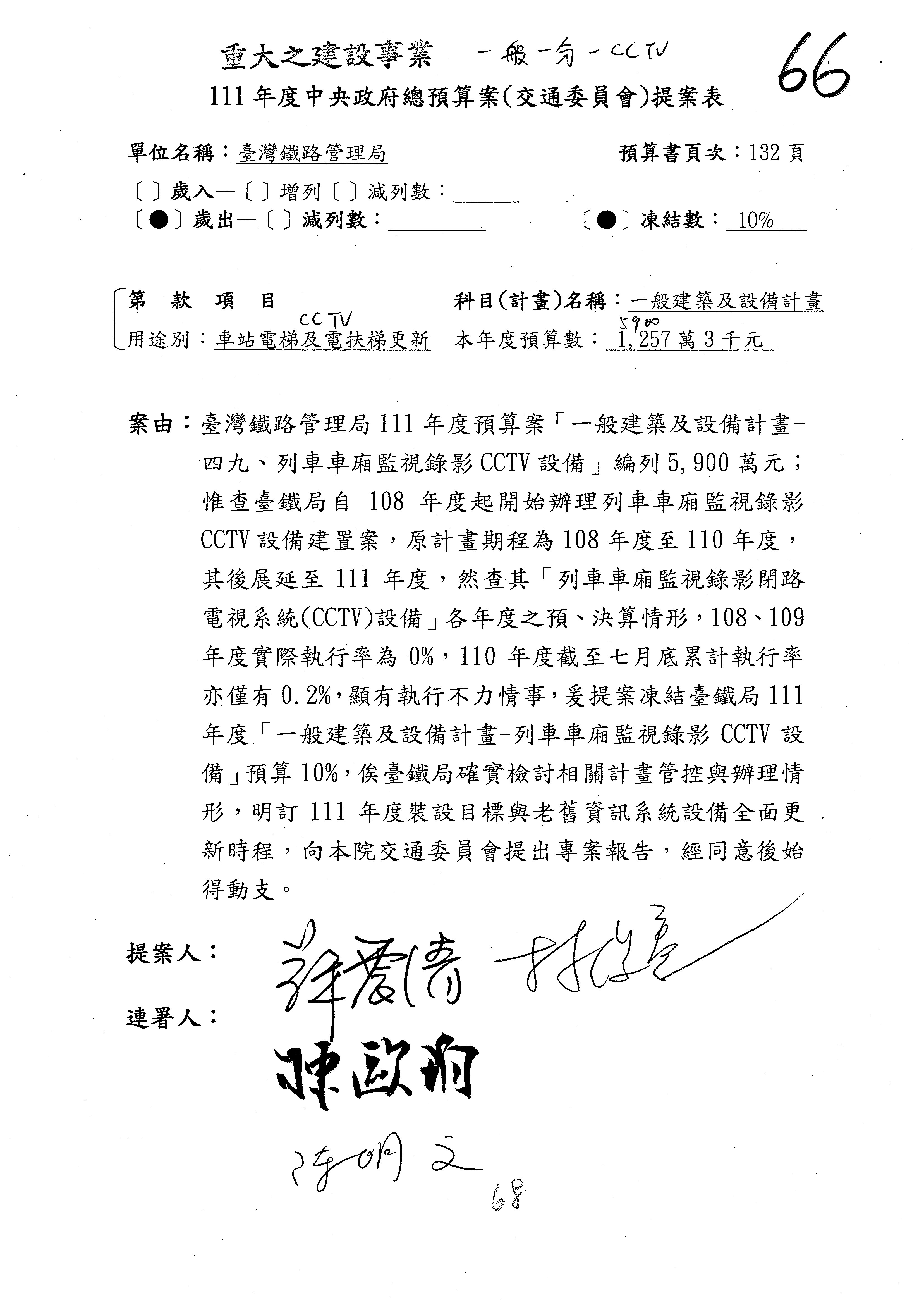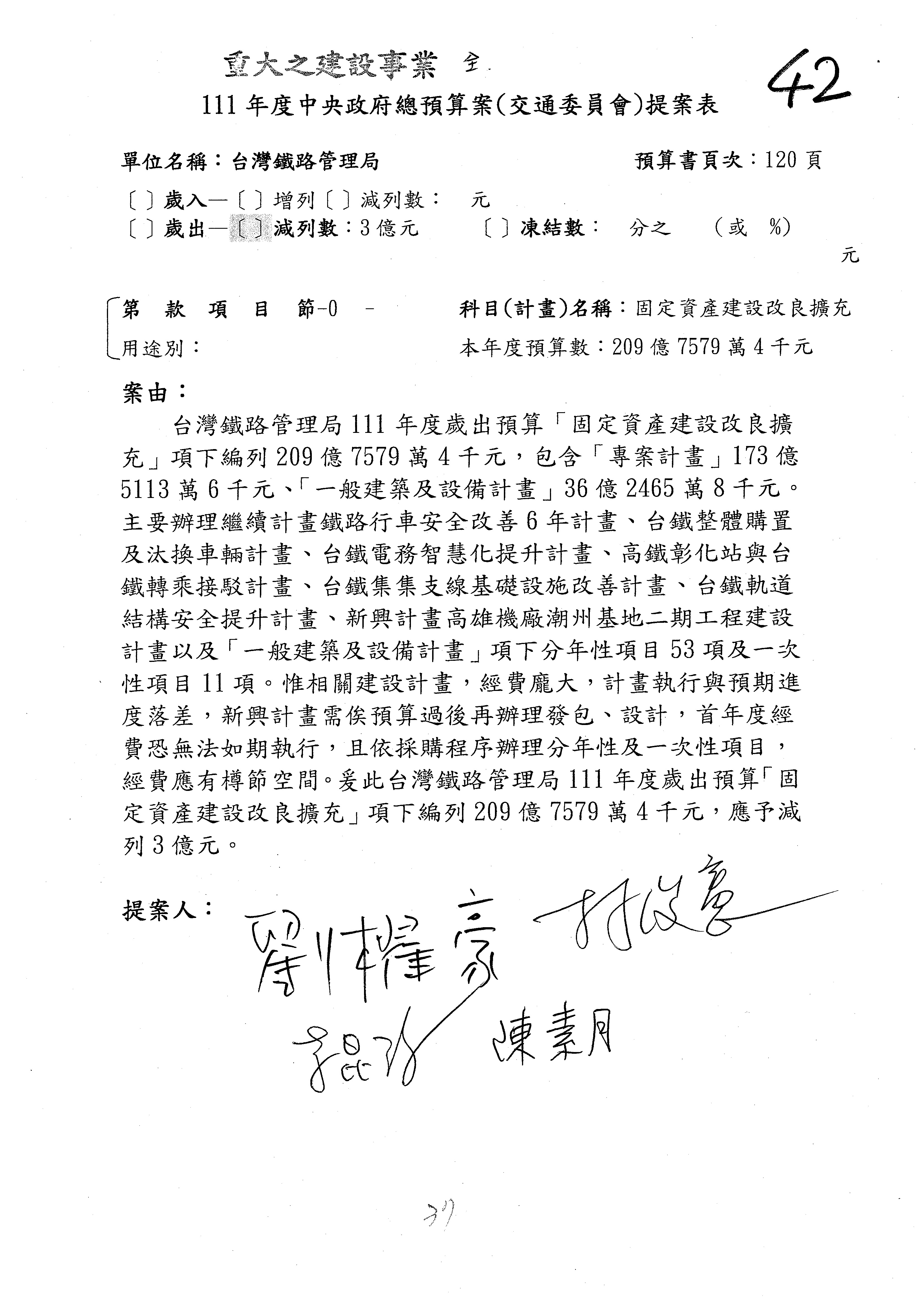 杜局長微:第78案建議倒數第3行的最後兩個字開始「應做出改善檢討報告……」,後面「並」刪掉,直接改為「爰要求臺鐵局於一個月內向立法院交通委員會提出書面改善檢討報告」。