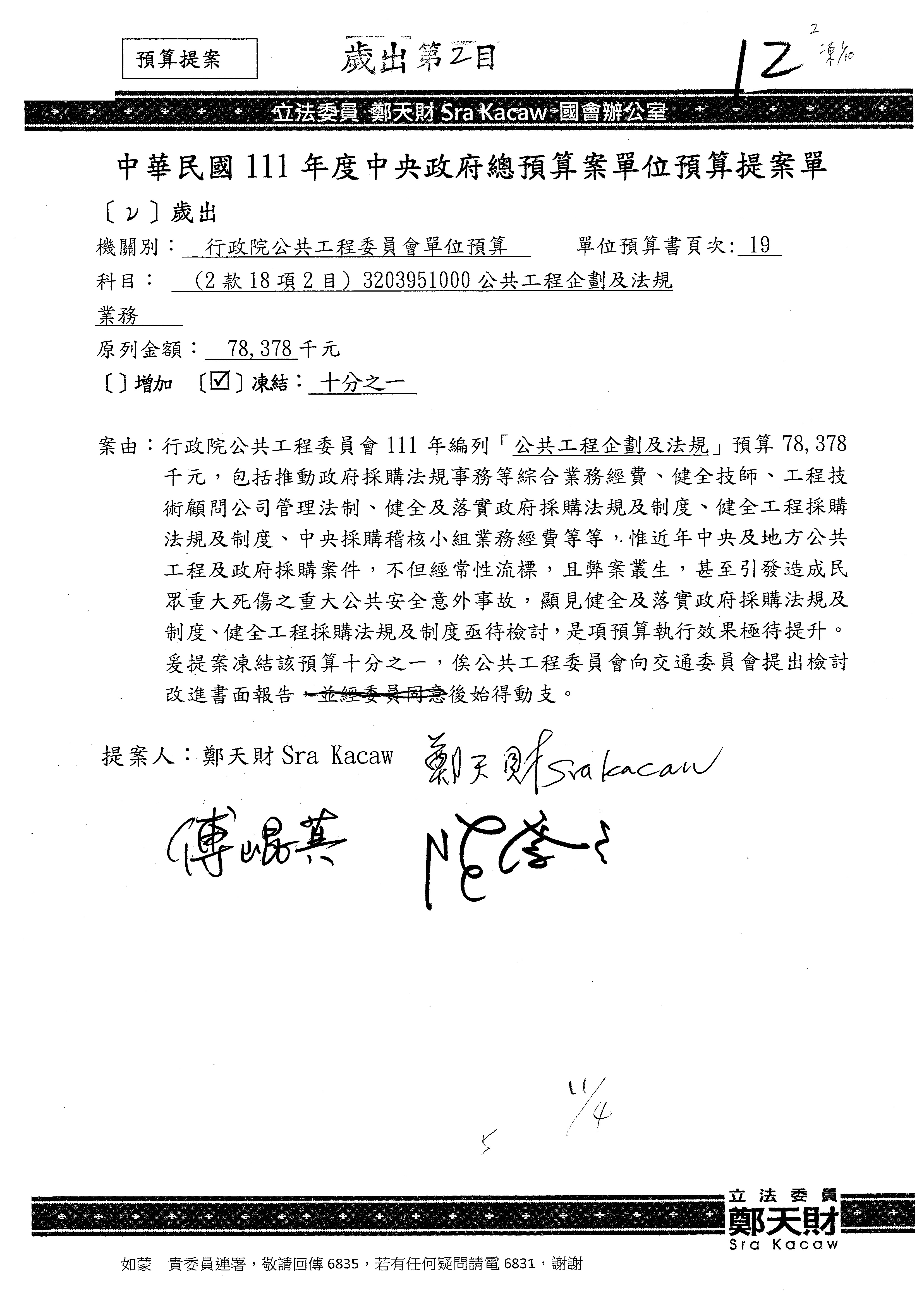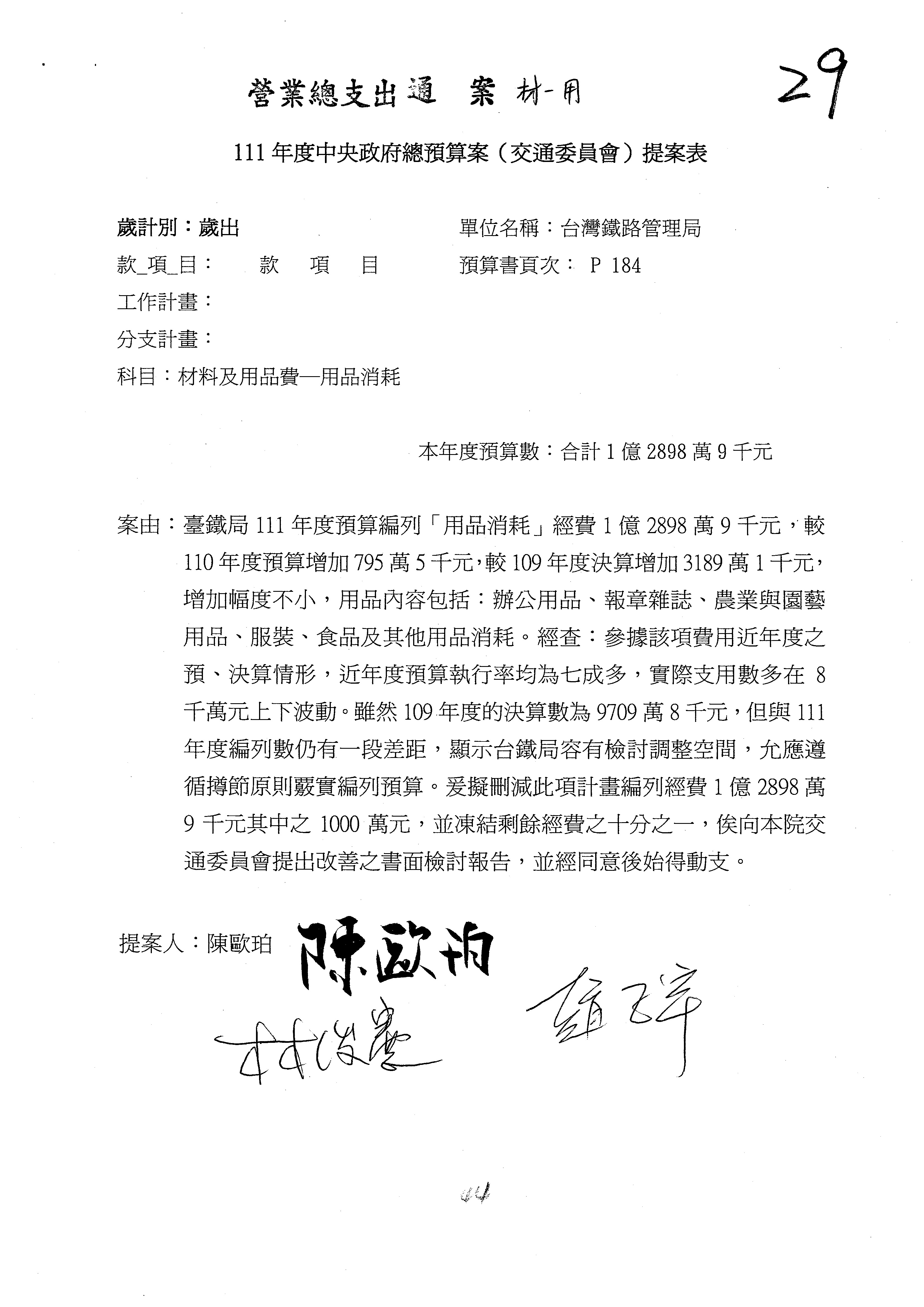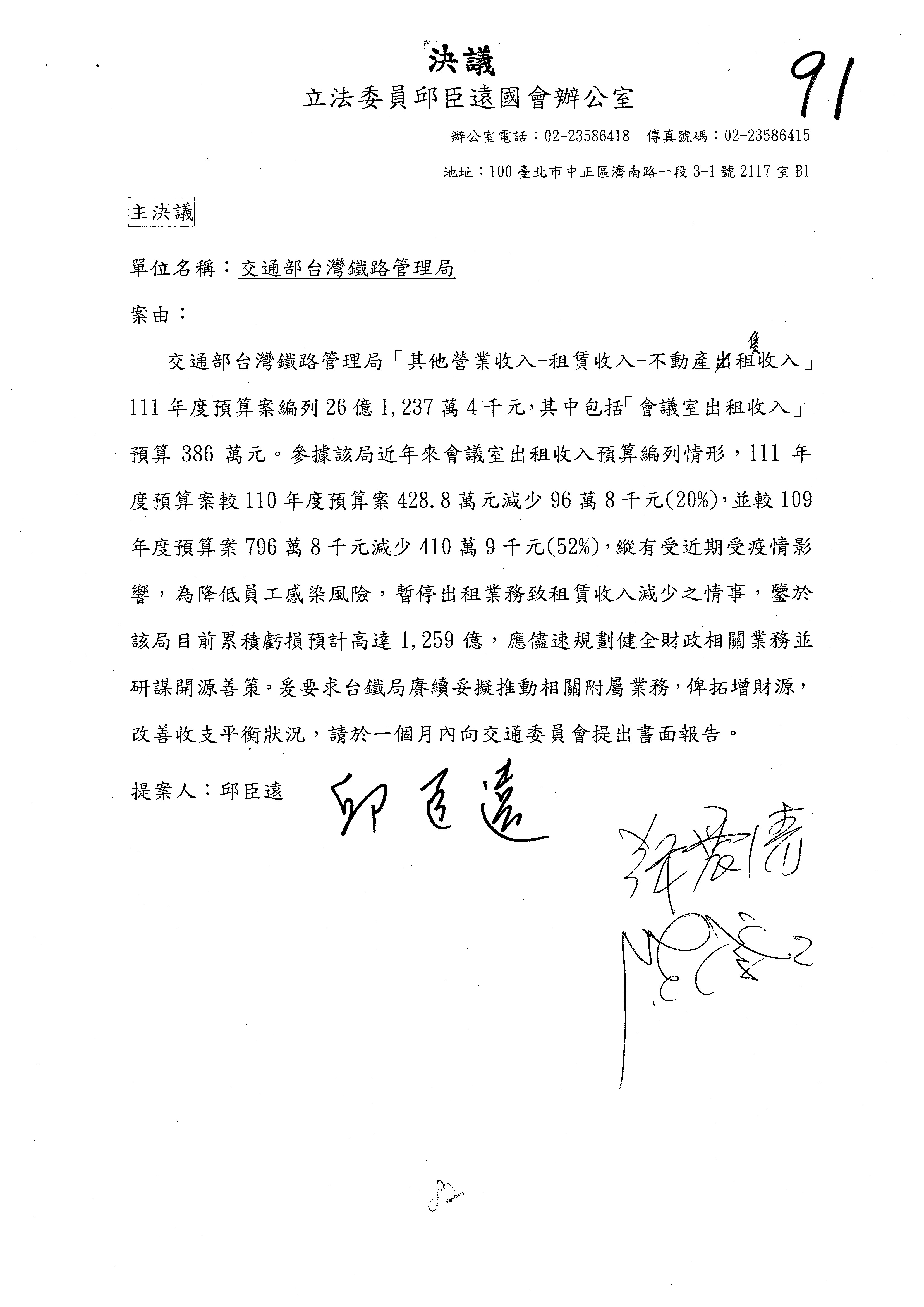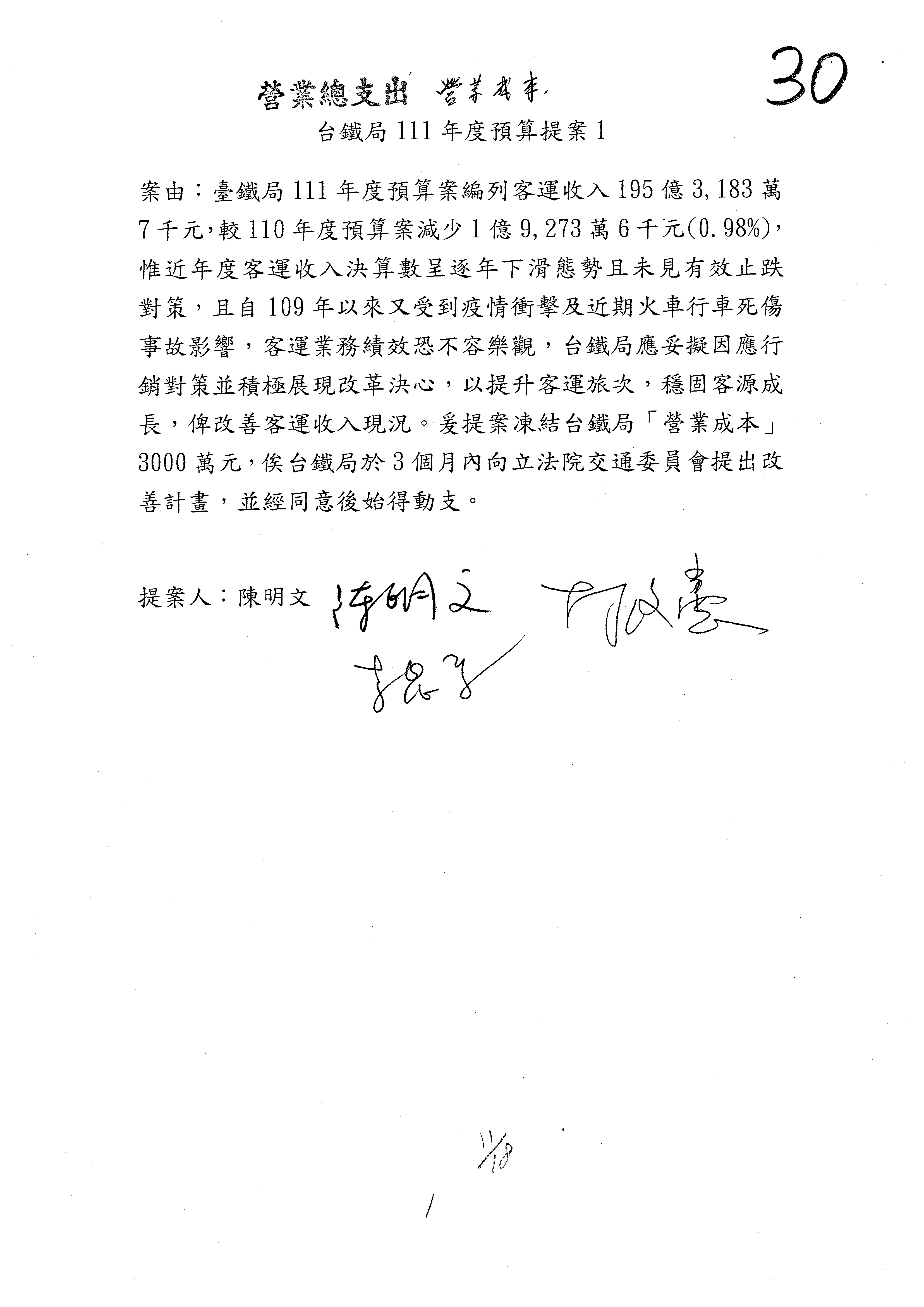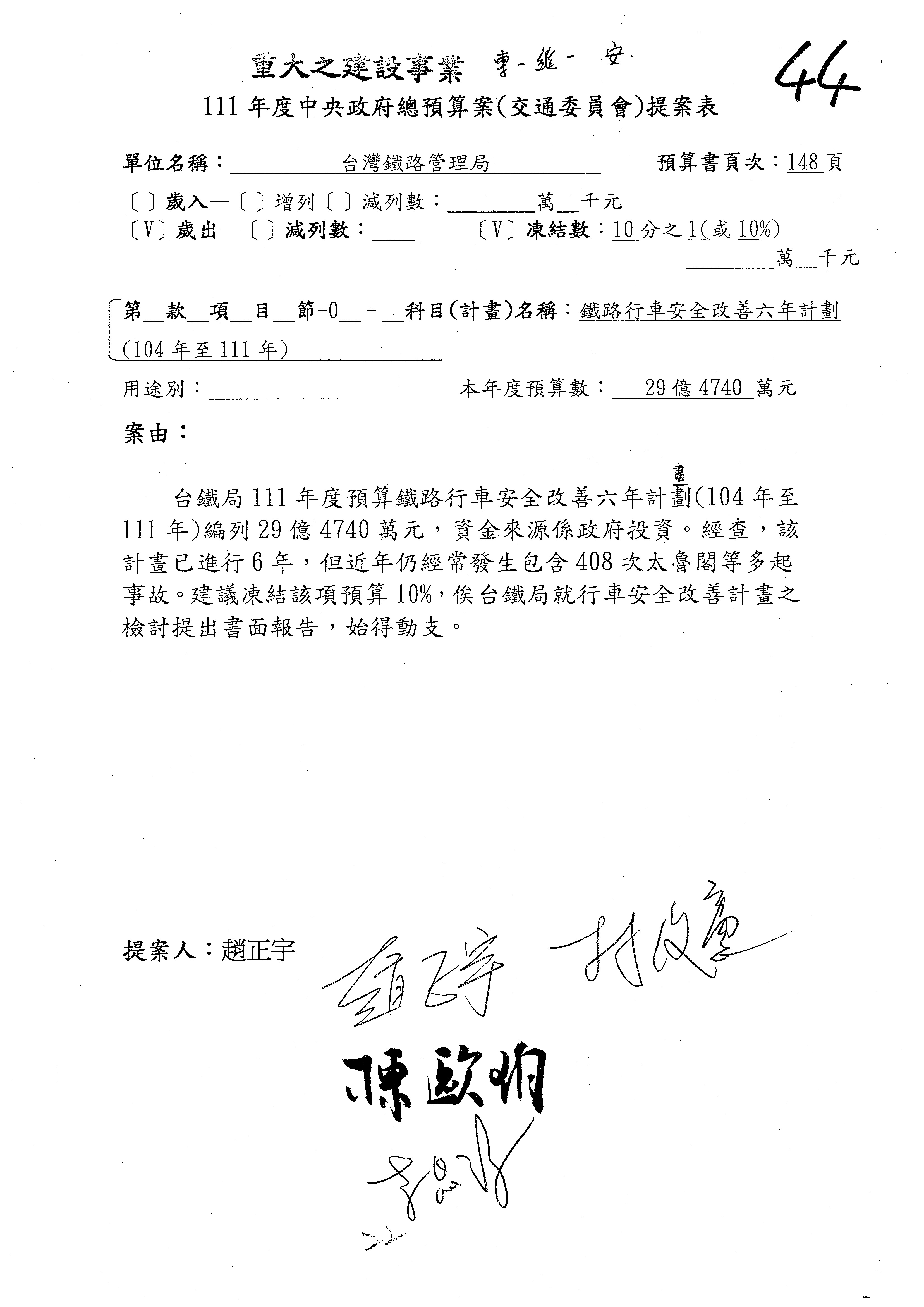 杜局長微:第78案建議倒數第3行的最後兩個字開始「應做出改善檢討報告……」,後面「並」刪掉,直接改為「爰要求臺鐵局於一個月內向立法院交通委員會提出書面改善檢討報告」。