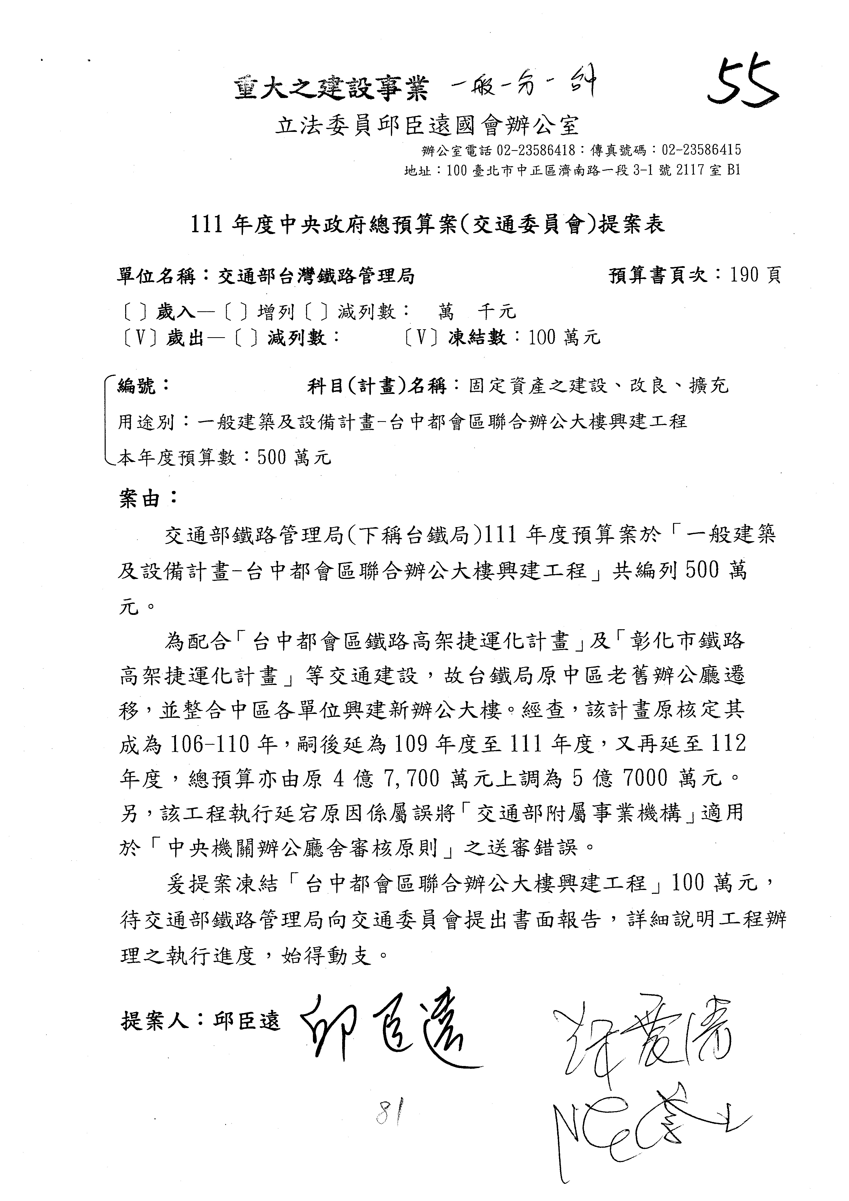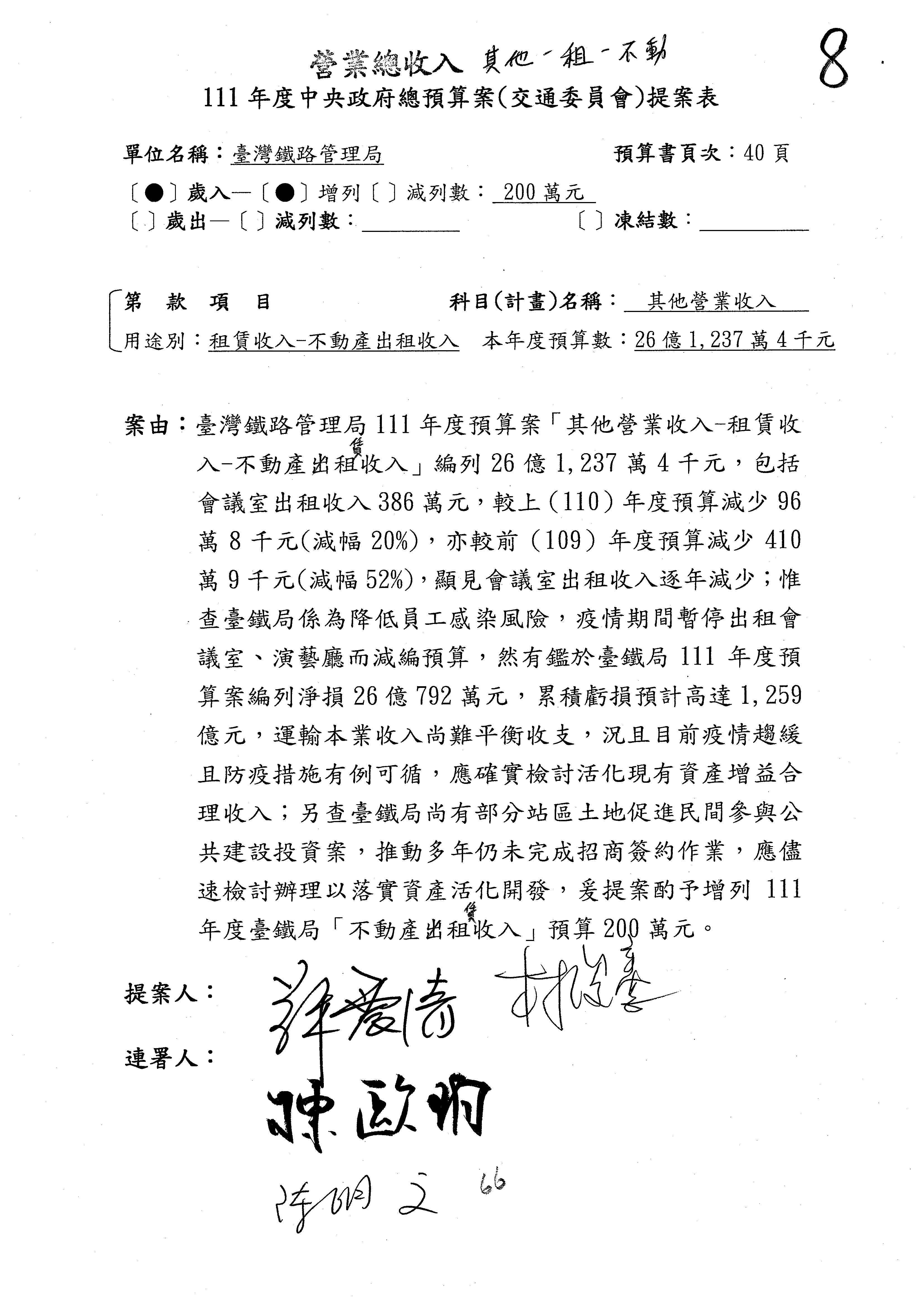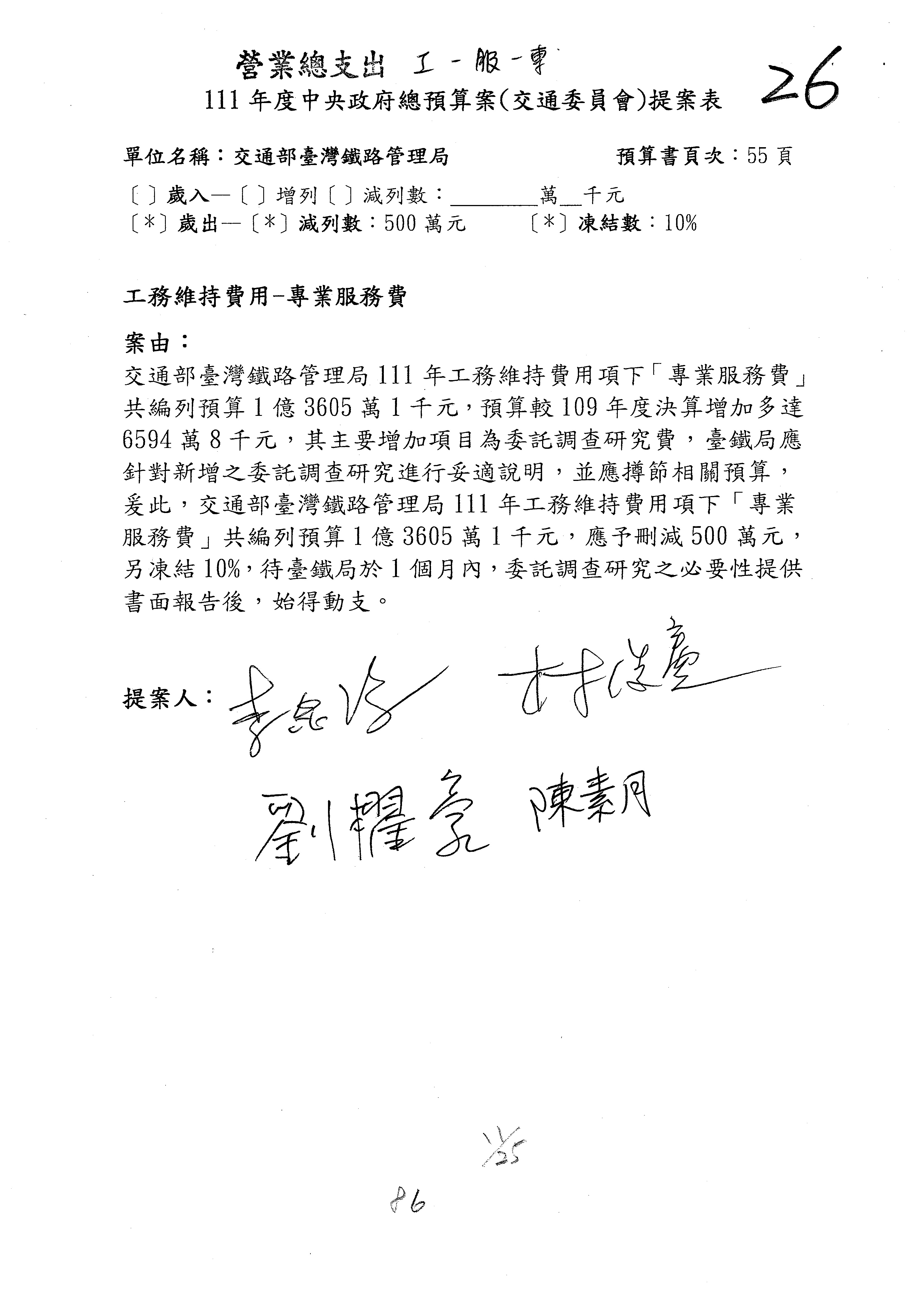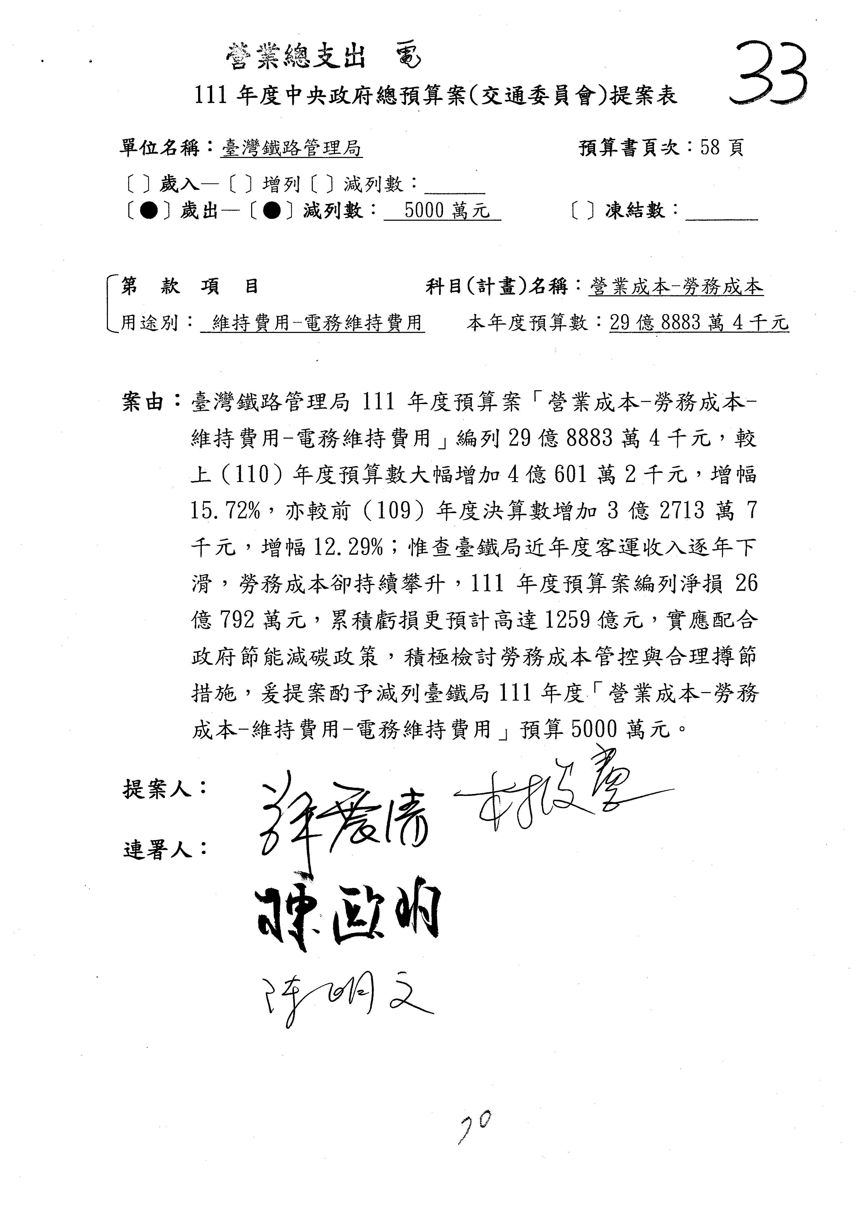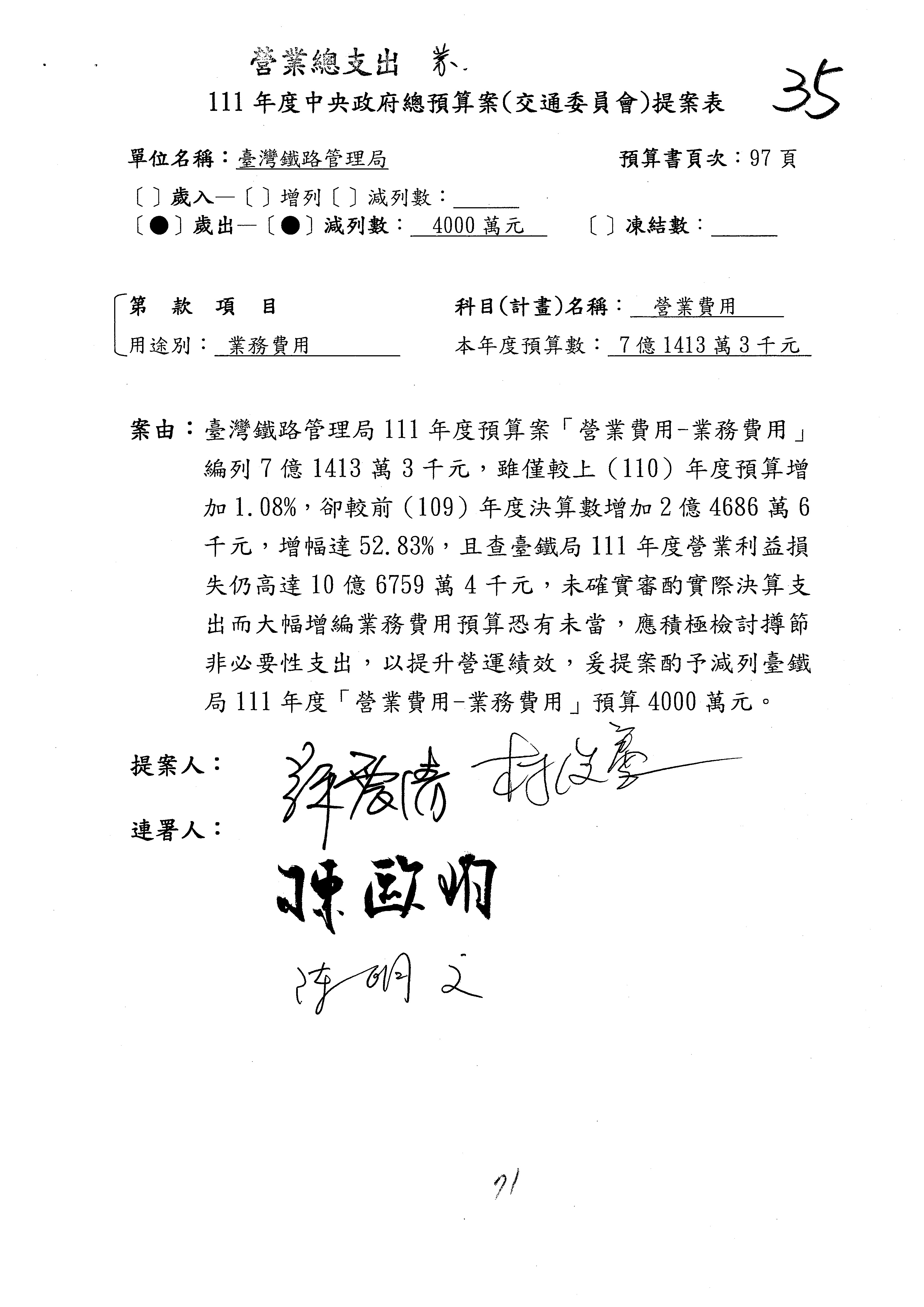 杜局長微:第78案建議倒數第3行的最後兩個字開始「應做出改善檢討報告……」,後面「並」刪掉,直接改為「爰要求臺鐵局於一個月內向立法院交通委員會提出書面改善檢討報告」。