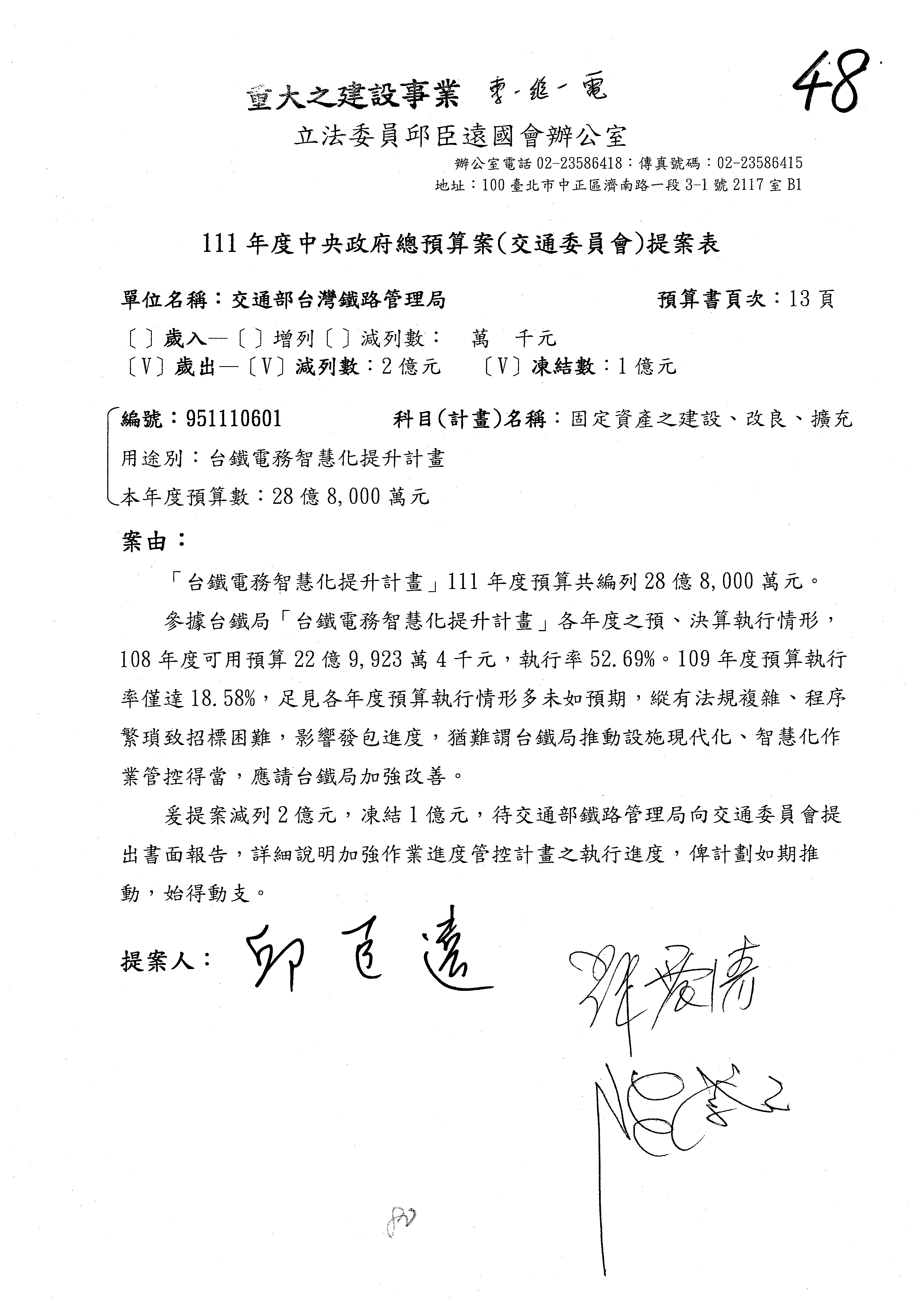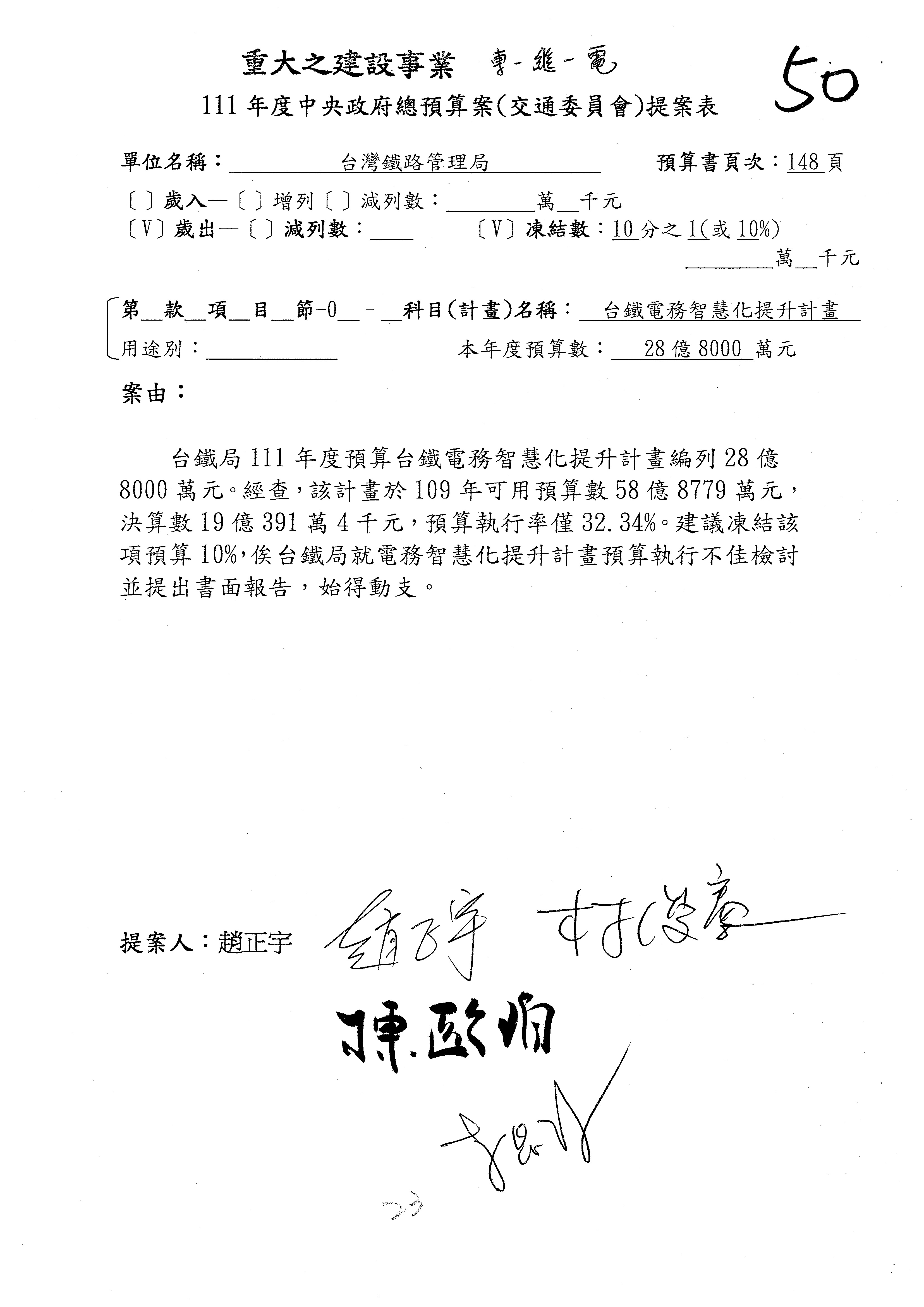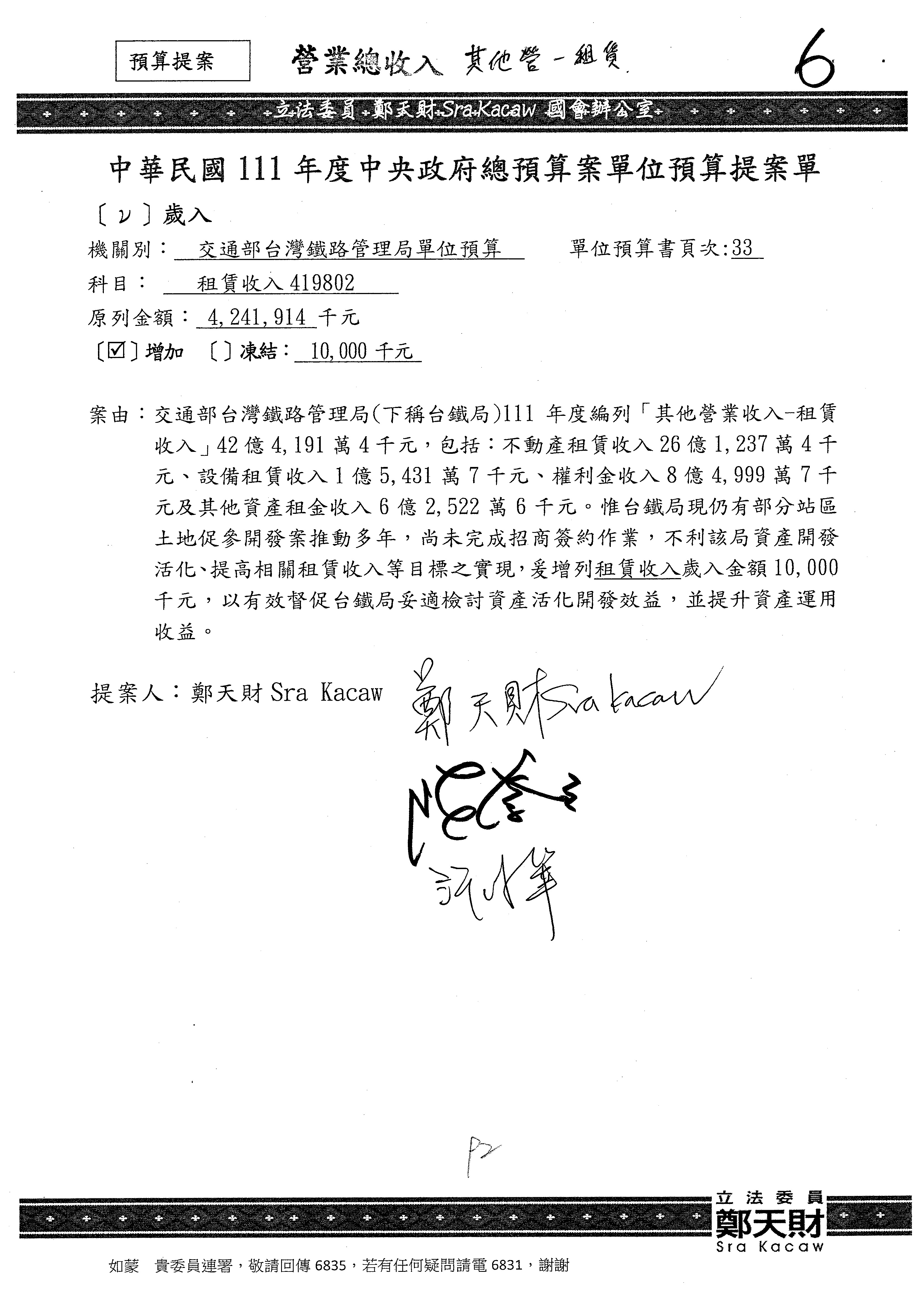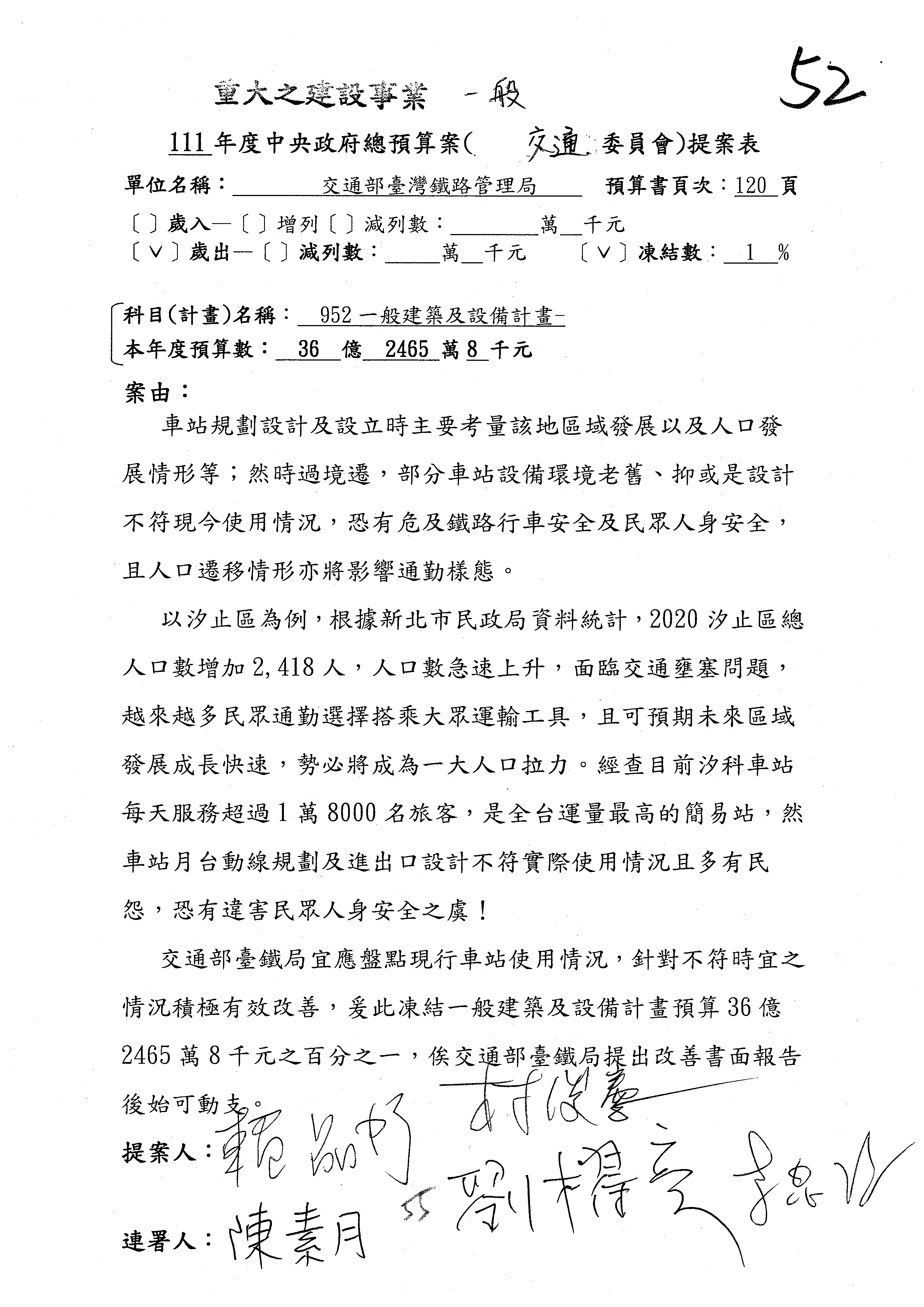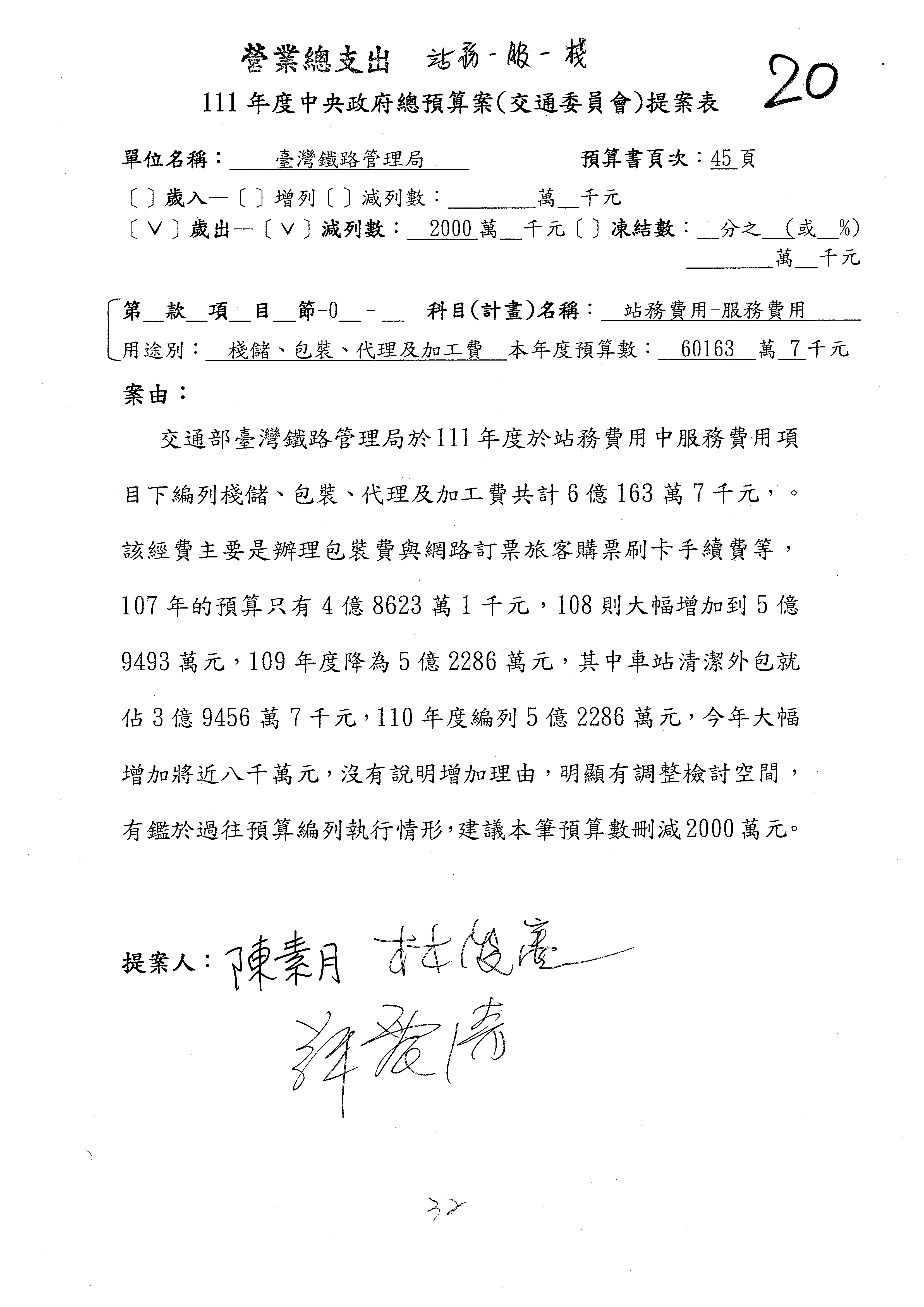杜局長微:第78案建議倒數第3行的最後兩個字開始「應做出改善檢討報告……」,後面「並」刪掉,直接改為「爰要求臺鐵局於一個月內向立法院交通委員會提出書面改善檢討報告」。